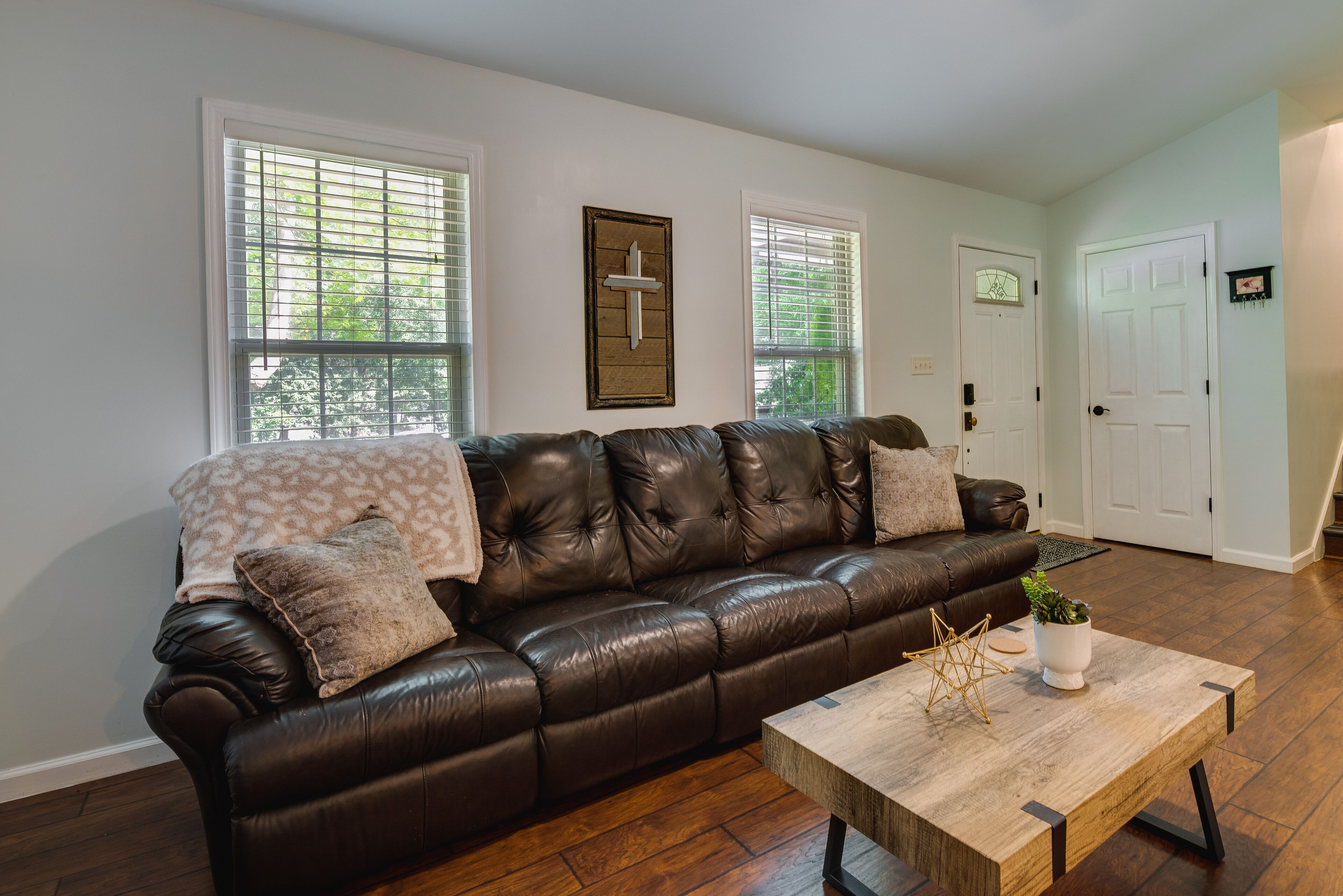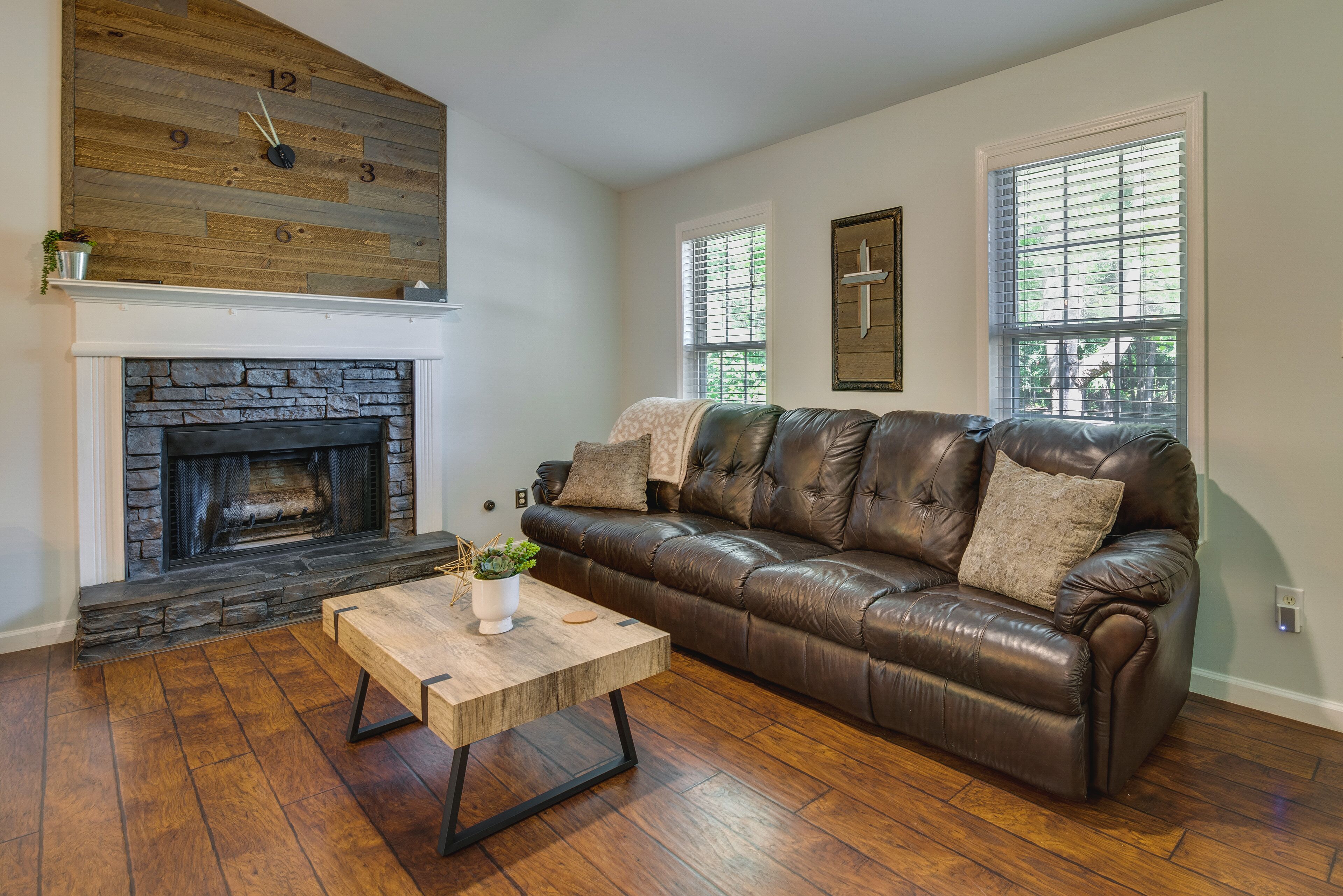 Charming Temple Home: Sunroom & Private Backyard! Make the most of your next trip to Temple with a stay at this charming 3-bedroom, 2-bath vacation rental. Primely located within 10 miles of local attractions — like Lake Buckhorn and Little Tallapoosa Park — this fully furnished, family-friendly home offers countless amenities to keep the whole crew comfortable. Enjoy a family meal al fresco on the patio, then spend the rest of the afternoon relaxing in the sunroom while watching shows on the Smart TV. And don't forget to head to Atlanta!-- THE PROPERTY --Free WiFi | Family Friendly | Essentials | 1,200 Sq FtBedroom 1: King Bed | Bedroom 2: Full Bed | Bedroom 3: Full BedOUTDOOR SPACE: Covered front porch, patio, seating & diningINDOOR AMENITIES: Dining table, fireplace (decorative only), work desk, shower/tub comboKITCHEN: Well-equipped w/ refrigerator, ice maker, microwave, dishwasher, dishware/flatware, stove/oven, cooking basics, coffee maker, toasterGENERAL: Keyless entry, linens/towels, central A/C & heating, washer & dryer w/ detergent, hair dryer, hangers, iron/board, trash bags/paper towelsFAQ: Outdoor staircase required to enter, additional interior stairs required to access all bedrooms on 2nd floor, 1 exterior security camera (facing out)PARKING: Garage (2 vehicles), driveway (5 vehicles), free street parking, trailer parking allowed on-site-- THE LOCATION --OPT OUTSIDE: Little Tallapoosa Park (8 miles), Lake Buckhorn (10 miles), East Carrollton Park (13 miles), John Tanner Park (17 miles)LOCAL TRAILS: North Lakeshore Greenbelt Trailhead (13 miles), Norman Creek Trail (15 miles), Clinton Nature Preserve (17 miles), Sweetwater Creek State Park (27 miles)ATLANTA ATTRACTIONS (42 miles): Atlanta Botanical Garden, High Museum of Art, Atlanta History Center, SkyView AtlantaAIRPORT: Hartsfield-Jackson Atlanta International Airport (48 miles)-- REST EASY WITH US --Evolve makes it easy to find and book properties you’ll never want to leave. You can relax knowing that our properties will always be ready for you and that we’ll answer the phone 24/7. Even better, if anything is off about your stay, we’ll make it right. You can count on our homes and our people to make you feel welcome--because we know what vacation means to you.-- POLICIES --- No smoking- No pets allowed- No events, parties, or large gatherings- Must be at least 25 years old to book- Additional fees and taxes may apply- Photo ID may be required upon check-in- NOTE: This property requires using an outdoor staircase to enter and additional interior stairs are required to access all of the bedrooms on the 2nd floor- NOTE: The fireplace is not available for guest use- NOTE: Your safety matters. This property features 1 exterior security camera. It is a Ring doorbell device located on the front door, facing toward the entrance area. The camera is outward facing and does not look into any interior spaces. It records video and sound when activated by motion, and will record when it first senses motion until 30 seconds after the last motion is detected