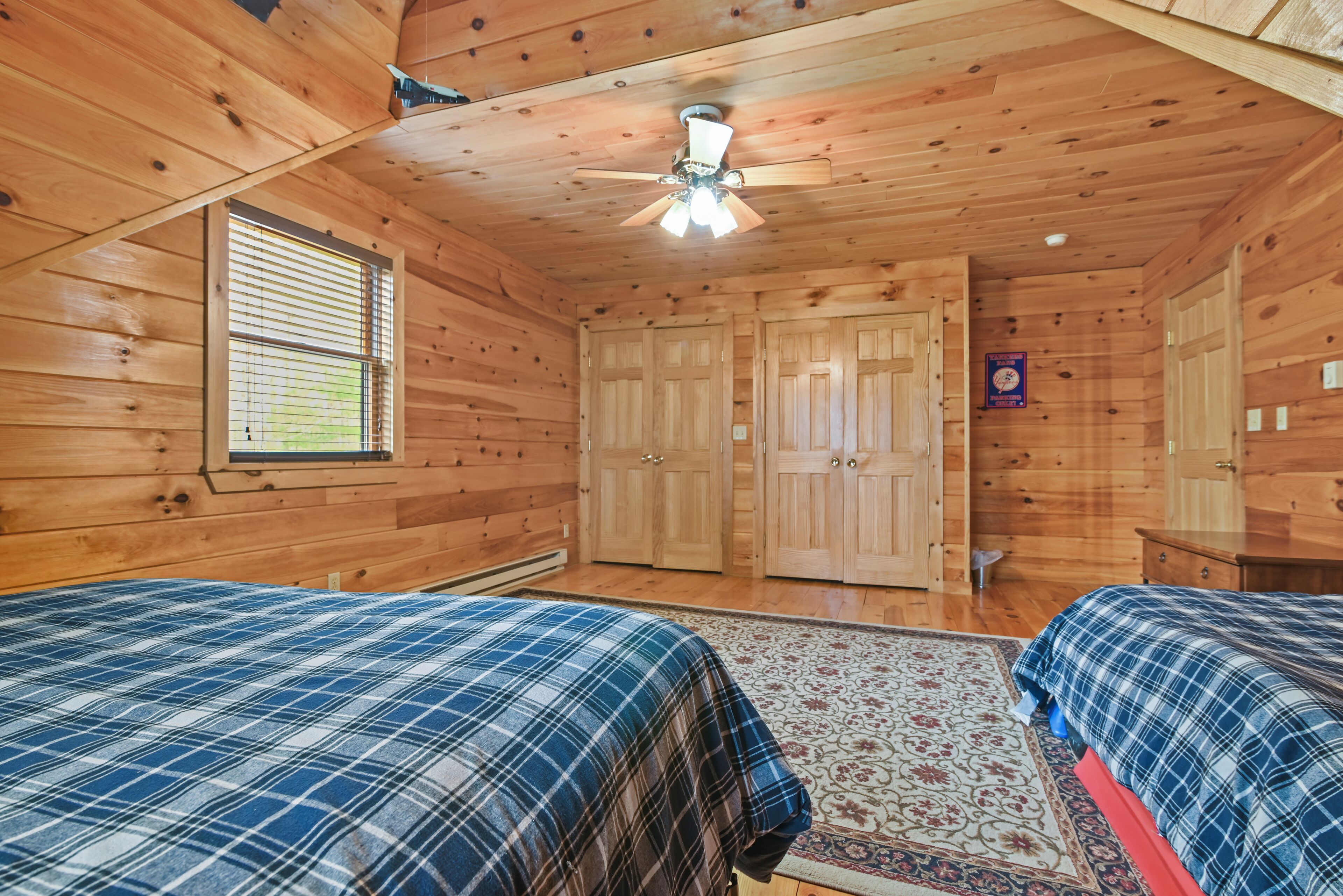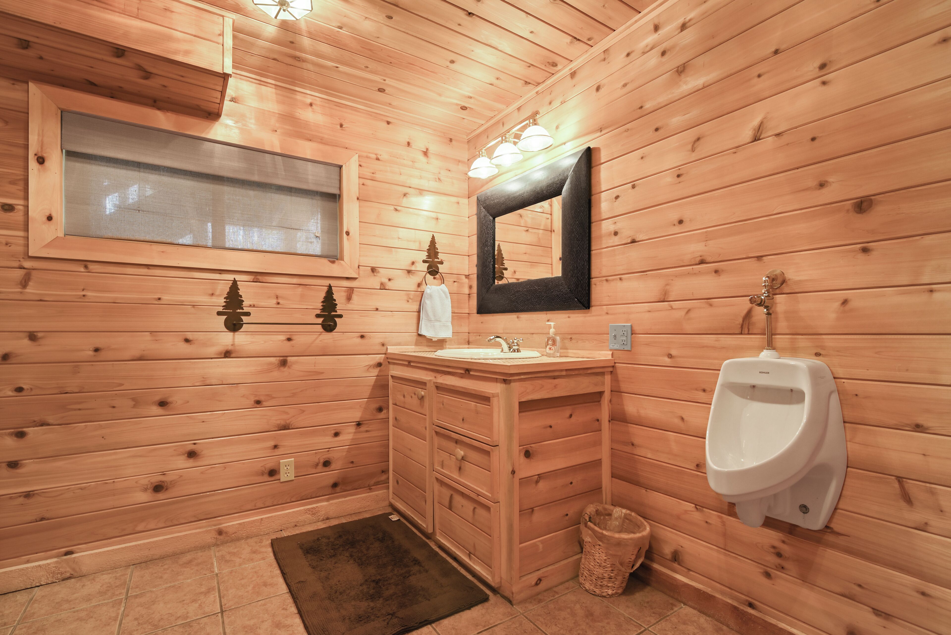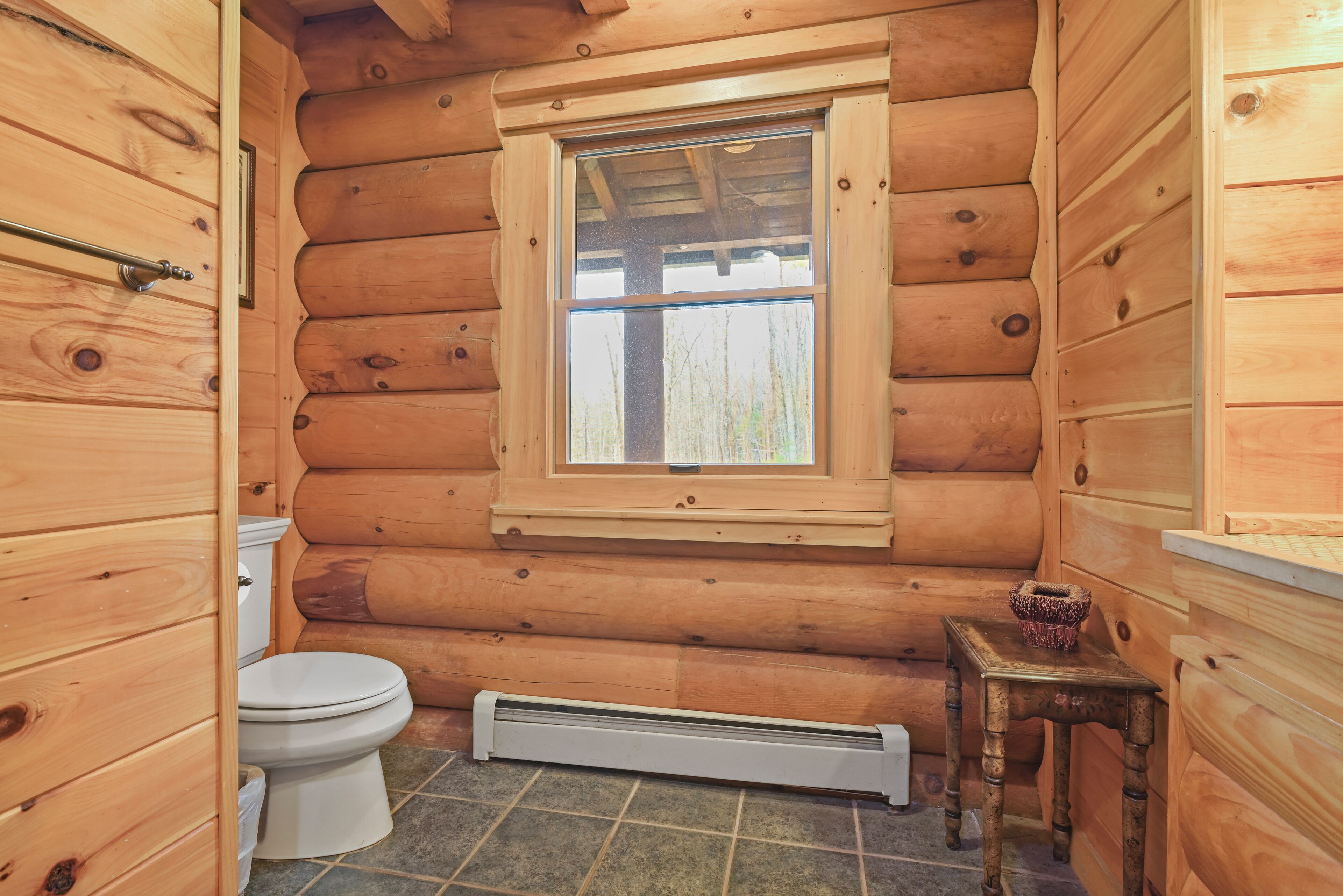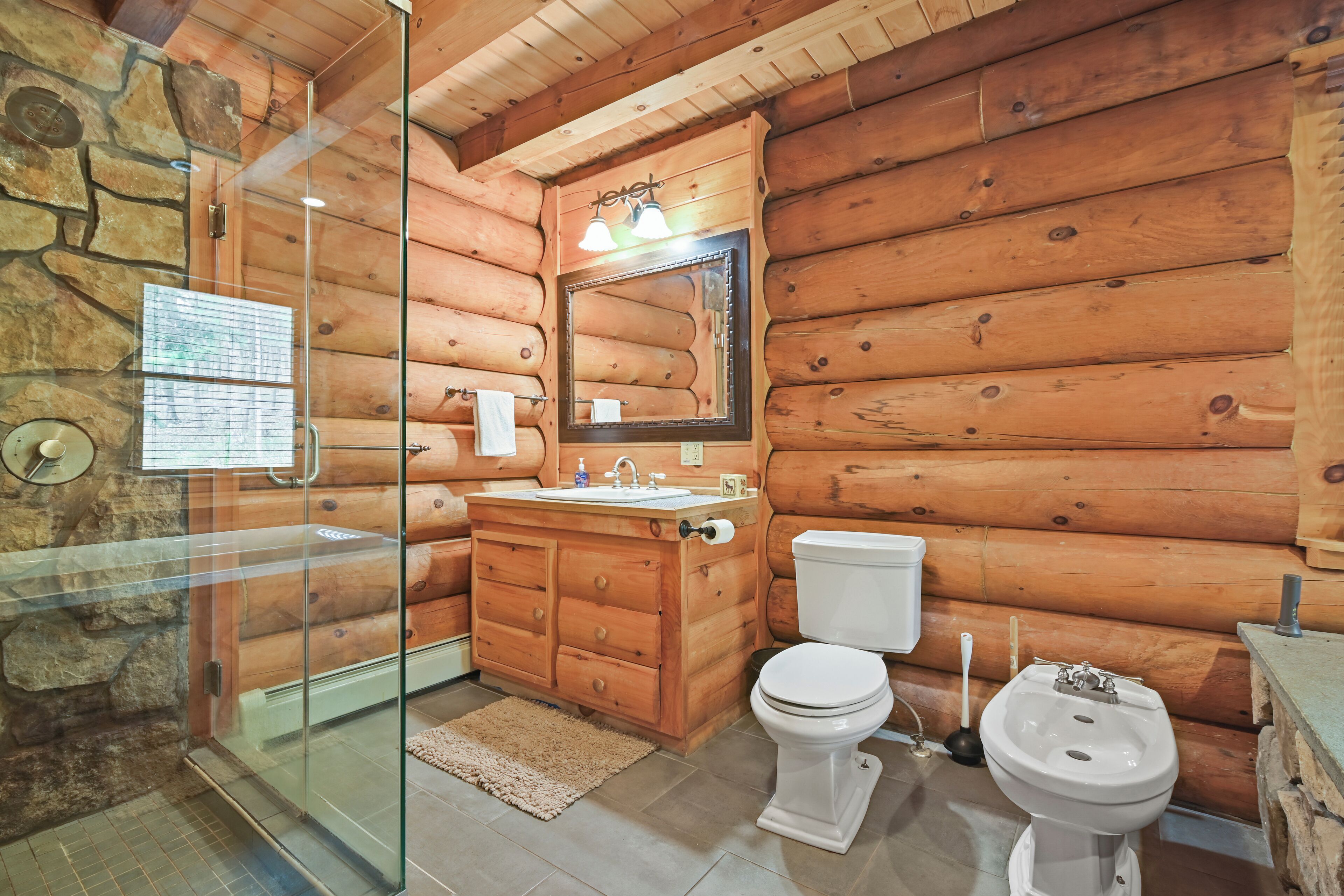 Luxury Lakefront Custom Log Home. Perfect for Ski Trips & Getaways! Swim off the dock or fish for bass and perch in the private 2 acre stocked lake, hike around the 17+ acres of privacy, enjoy camp fires out doors, play billards and video games in the family room, entertain at the wet bar, and take in the private mountain views from the livingroom from this beautiful custom log home. Home features a Master Suite on the first floor (king bed, overflow tub, massage shower), plus 5 additional bedrooms, 4 bathrooms, a massive 2 story stone fireplace. Gameroom, pool table, and large screen TVs provide for endless indoor entertainment, and the 17 acre playground makes this a top family vacation destination in the Lake Region/Lake Wallenpaupack! The property is just minutes from the free public boat launch on Lake Wallenpaupack. Put the boat in for the day and have fun on the 5,700 acre Lake Wallenpaupack, and still be home in time for dinner!
