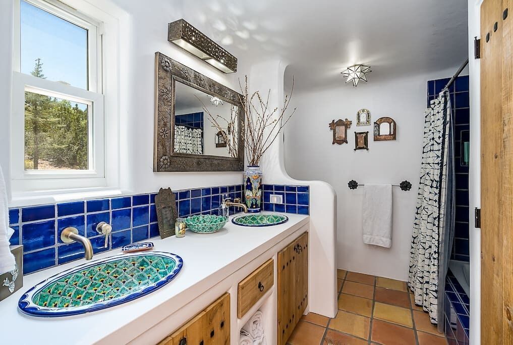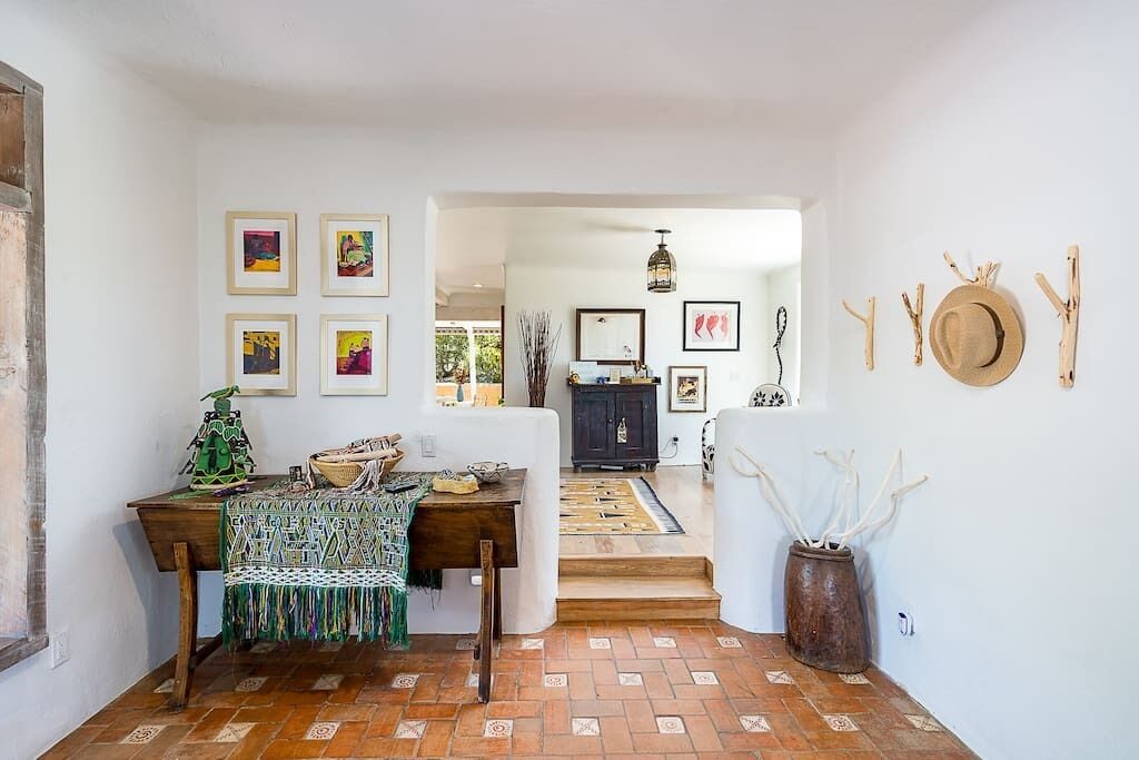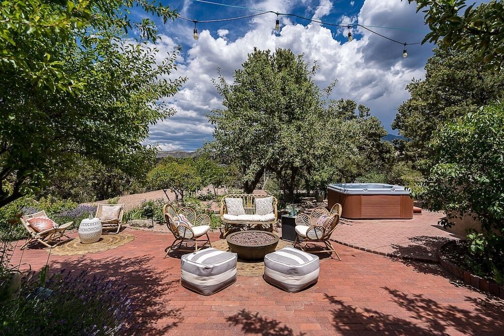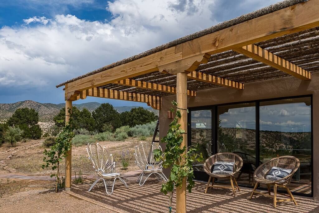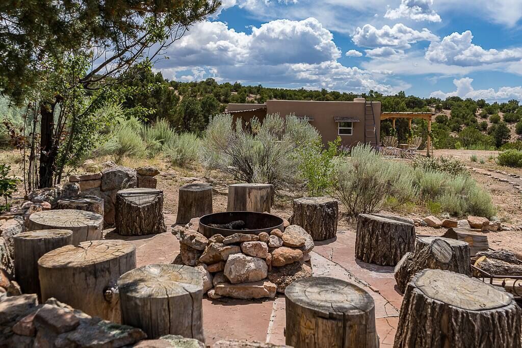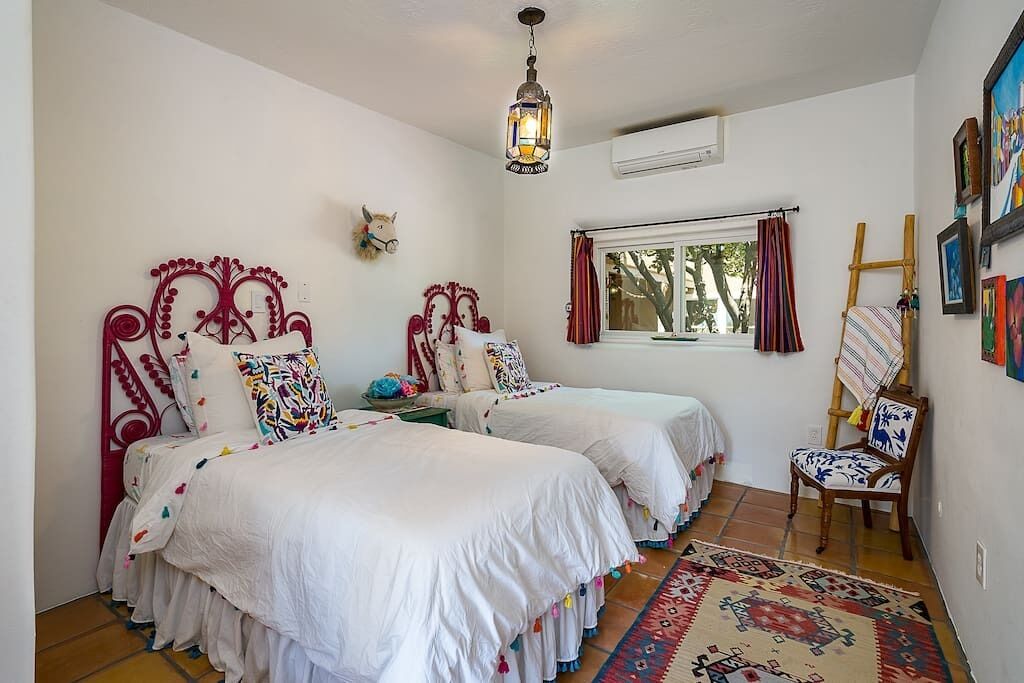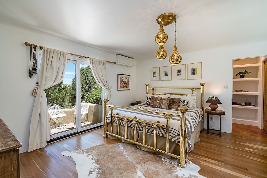 Authentic Luxury Villa with Mountains & Mesa Views (Ideal for long term bookings Summary:Our spacious pueblo home is a beautiful and unique 5-acre property in Santa Fe, New Mexico. It features amazing 300-degree views of the mesas and canyons of the Sangre de Christo and Jemez Mountains. Our home offers an irresistible invitation to adventure.Whether you’re looking for an adventure, a relaxing getaway, or simply to unwind amidst nature, our home, Luna Vista, offers a peaceful and serene experience.The Space:Located approx 18 minutes to the Santa Fe Plaza, Luna Vista sits in a charming and picturesque area surrounded by breathtaking mountains and endless desert views. Our traditionally designed Pueblo home has modern amenities and all the comforts you might need. You are sure to enjoy the charm and warmth Santa Fe has to offer. The main house showcases outstanding artistic design, A/C and heat in every room, an easy and open flow throughout the adobe. It also features Smart/Apple TV, numerous panoramic windows with lots of natural light, and all the ambiance northern New Mexico provides. The layout of the main house: 3 bedrooms, 2 bathrooms, an open kitchen, dining room with seating for 8, living room, sitting room, sunroom, outdoor dining area, and expansive front and back patio areas with a hot tub. The master bedroom is spacious, bright, and relaxing. It features its own a luxurious king-size bed, attached bathroom, Nespresso machine, and private terrace with picturesque views of the desert and mountains. The guest bedrooms feature one full-size bed, and two twin beds (very convenient for families with kids). Another full bathroom is shared between the two bedrooms. The living room is a very special spot in our house offering huge panoramic windows with breathtaking views. Like our entire home, the living room is decorated with lovely artwork and details specific to Santa Fe and the unique cultures it represents. There is plenty of space to relax with a comfortable couch, banco, leather armchairs, and a fireplace. The room comfortably holds 10 and is perfect for evenings spent with family and friends.If you enjoy cooking, our award-winning kitchen is fully stocked and has plenty of counter space for several people to be cooking together. Our kitchen features state of the art appliances and our lighted patio has a propane grill, place settings for up to 12 persons, and all-season entertaining. Santa Fe’s amazing weather allows for dining inside or outdoors most of the year. Our indoor dining room features a fireplace for warm and cozy evenings, while our outdoor dining area is the perfect spot to enjoy your breakfast and morning coffee. Our private oasis is set on 5 scenic acres, offering numerous terraced patio areas, flower gardens, and outdoor games and activities. Our firepit with seating for 10 is the perfect place for s’mores, while the gas-firepit on the back patio is a great place to unwind and stargaze at the end of your day. Our hot tub and hammock each provide their own opportunity to relax while taking in the mountain views and clean air. The property offers various places to walk and take in the many different and breathtaking views that surround us. For a more Zen and contemplative experience, enjoy our labyrinth. Another unique feature at our home is the art studio, which is included in your rental. The studio has a ping-pong table, panoramic views of the mountains, with plenty of covered outdoor seating, including two sun loungers, another outdoor table with seating for four, and additional seating for taking in your favorite bottle of wine, margarita, and a magnificent sunset.Luna Vista invites you to experience all of northern New Mexico’s natural beauty in the most unique and memorable way!Off our main house is our guest Casita. Our two homes are 20 yards apart, connected by an enchanting courtyard and gardens. Our casita sleeps an additional 4 people in two bedrooms. Both the main home and the guest casita are included in your rental. The casita features two traditional kiva fireplaces, large picture windows, hardwood and Saltillo floors, stunning exposed beam ceilings, a full bathroom, and a kitchenette. Our Casita will remind you of a luxurious hotel villa embracing the area's raw aesthetic of mountains, deserts, vegetation, and all that is known as the Santa Fe desert vibe. The layout of the casita: 2 bedrooms, 1-bathroom, open living room, eating area, and kitchenette. The living room is spacious and offers amazing views. It features artistic and unique decor, a comfortable couch with Smart/Apple TV, an eating area for two, and unforgettable mountain views. The kitchenette is stocked with coffee, including a Nespresso machine, microwave, small refrigerator. The master bedroom offers a queen-size Tempur-Pedic adjustable bed, with views of the surrounding forest, while the second bedroom features two twin beds. Both bedrooms and the living room/kitchen area have A/C and heat. The bathroom has a full-size shower and tub with colorful Talavera tile. Come and join us for the ultimate vacation, staycation, reunion...and unforgettable experience!Remote work:In case remote work is in your daily schedule, we have you covered! At our villa, enjoy a ”laptop-friendly environment” with high-speed internet and numerous working areas to chose from whether indoors or outdoors.Guest Access:Guests have access to all 5 acres of our property. The grounds include:- Two fire pits- Gas grill- Colorful flower gardens and fruit trees- Lighted courtyard with seating- Outdoor dining area for 8 people - Front patio with seating- Hot tub- Art studio - Hiking areas and scenic trails within our immediate neighborhood- Labyrinth Other accommodations:-Unlimited wi-fi with boosters-Free parking with space for up to 6 cars-Washer and dryerThe Neighborhood:Located just 20 minutes from the Santa Fe Plaza and downtown, yet surrounded by desert and mountains, our uniquely located home capt