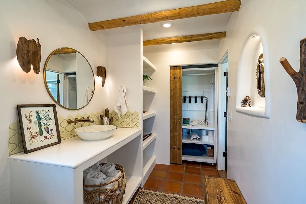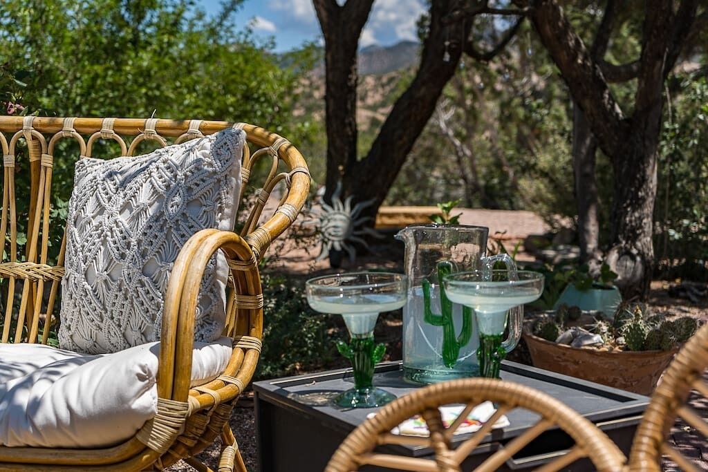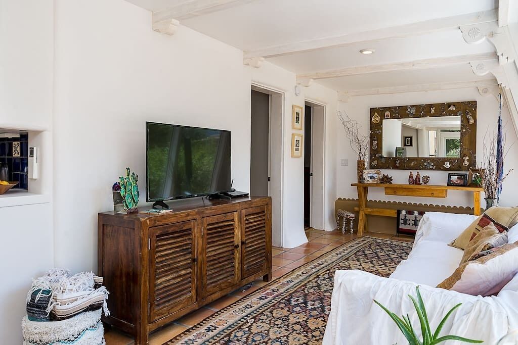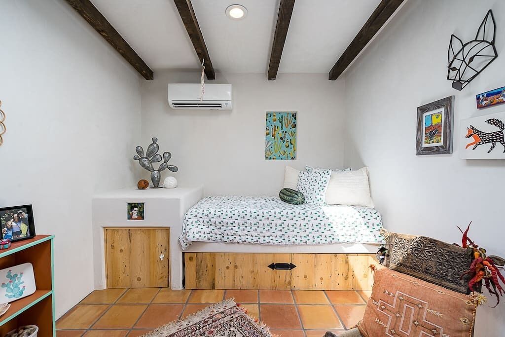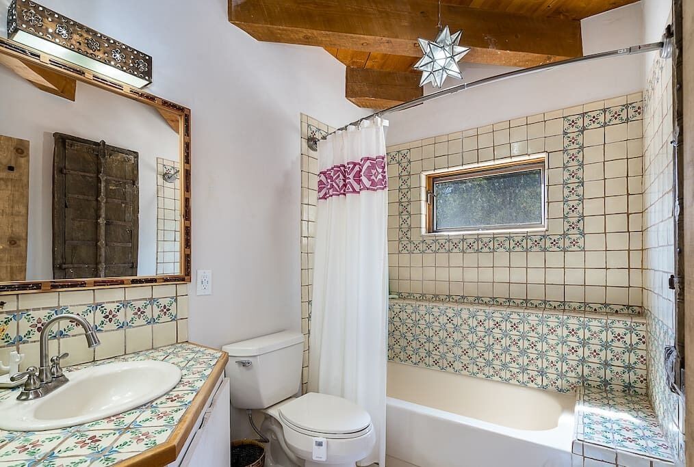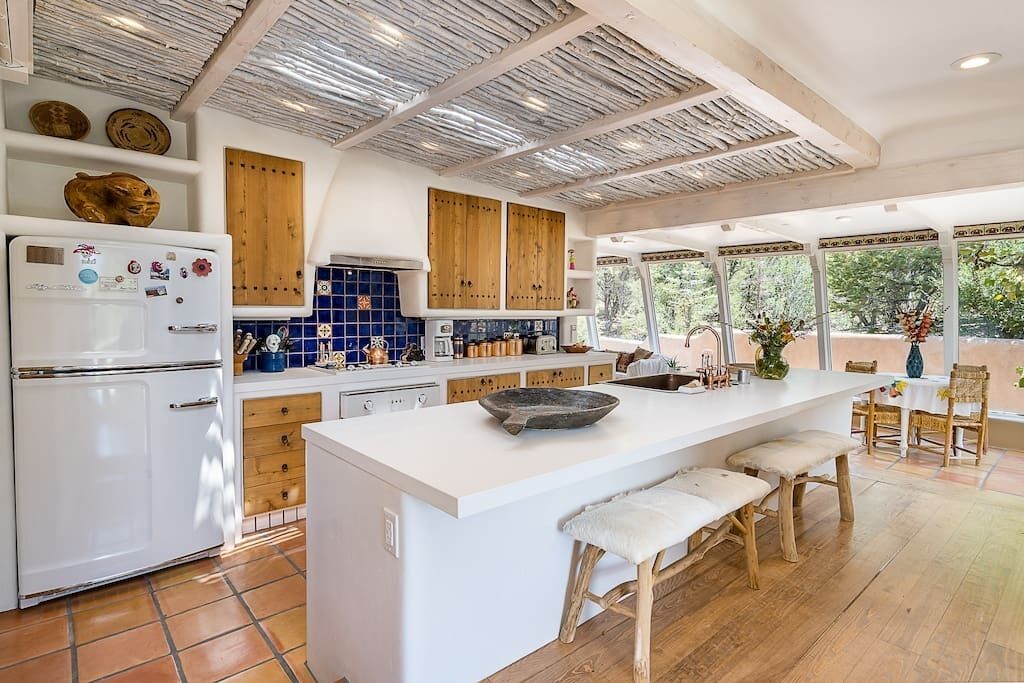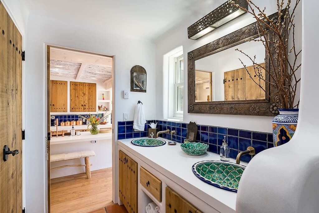 Authentic Luxury Villa with Mountains & Mesa Views (Ideal for long term bookings Summary:Our spacious pueblo home is a beautiful and unique 5-acre property in Santa Fe, New Mexico. It features amazing 300-degree views of the mesas and canyons of the Sangre de Christo and Jemez Mountains. Our home offers an irresistible invitation to adventure.Whether you’re looking for an adventure, a relaxing getaway, or simply to unwind amidst nature, our home, Luna Vista, offers a peaceful and serene experience.The Space:Located approx 18 minutes to the Santa Fe Plaza, Luna Vista sits in a charming and picturesque area surrounded by breathtaking mountains and endless desert views. Our traditionally designed Pueblo home has modern amenities and all the comforts you might need. You are sure to enjoy the charm and warmth Santa Fe has to offer. The main house showcases outstanding artistic design, A/C and heat in every room, an easy and open flow throughout the adobe. It also features Smart/Apple TV, numerous panoramic windows with lots of natural light, and all the ambiance northern New Mexico provides. The layout of the main house: 3 bedrooms, 2 bathrooms, an open kitchen, dining room with seating for 8, living room, sitting room, sunroom, outdoor dining area, and expansive front and back patio areas with a hot tub. The master bedroom is spacious, bright, and relaxing. It features its own a luxurious king-size bed, attached bathroom, Nespresso machine, and private terrace with picturesque views of the desert and mountains. The guest bedrooms feature one full-size bed, and two twin beds (very convenient for families with kids). Another full bathroom is shared between the two bedrooms. The living room is a very special spot in our house offering huge panoramic windows with breathtaking views. Like our entire home, the living room is decorated with lovely artwork and details specific to Santa Fe and the unique cultures it represents. There is plenty of space to relax with a comfortable couch, banco, leather armchairs, and a fireplace. The room comfortably holds 10 and is perfect for evenings spent with family and friends.If you enjoy cooking, our award-winning kitchen is fully stocked and has plenty of counter space for several people to be cooking together. Our kitchen features state of the art appliances and our lighted patio has a propane grill, place settings for up to 12 persons, and all-season entertaining. Santa Fe’s amazing weather allows for dining inside or outdoors most of the year. Our indoor dining room features a fireplace for warm and cozy evenings, while our outdoor dining area is the perfect spot to enjoy your breakfast and morning coffee. Our private oasis is set on 5 scenic acres, offering numerous terraced patio areas, flower gardens, and outdoor games and activities. Our firepit with seating for 10 is the perfect place for s’mores, while the gas-firepit on the back patio is a great place to unwind and stargaze at the end of your day. Our hot tub and hammock each provide their own opportunity to relax while taking in the mountain views and clean air. The property offers various places to walk and take in the many different and breathtaking views that surround us. For a more Zen and contemplative experience, enjoy our labyrinth. Another unique feature at our home is the art studio, which is included in your rental. The studio has a ping-pong table, panoramic views of the mountains, with plenty of covered outdoor seating, including two sun loungers, another outdoor table with seating for four, and additional seating for taking in your favorite bottle of wine, margarita, and a magnificent sunset.Luna Vista invites you to experience all of northern New Mexico’s natural beauty in the most unique and memorable way!Off our main house is our guest Casita. Our two homes are 20 yards apart, connected by an enchanting courtyard and gardens. Our casita sleeps an additional 4 people in two bedrooms. Both the main home and the guest casita are included in your rental. The casita features two traditional kiva fireplaces, large picture windows, hardwood and Saltillo floors, stunning exposed beam ceilings, a full bathroom, and a kitchenette. Our Casita will remind you of a luxurious hotel villa embracing the area's raw aesthetic of mountains, deserts, vegetation, and all that is known as the Santa Fe desert vibe. The layout of the casita: 2 bedrooms, 1-bathroom, open living room, eating area, and kitchenette. The living room is spacious and offers amazing views. It features artistic and unique decor, a comfortable couch with Smart/Apple TV, an eating area for two, and unforgettable mountain views. The kitchenette is stocked with coffee, including a Nespresso machine, microwave, small refrigerator. The master bedroom offers a queen-size Tempur-Pedic adjustable bed, with views of the surrounding forest, while the second bedroom features two twin beds. Both bedrooms and the living room/kitchen area have A/C and heat. The bathroom has a full-size shower and tub with colorful Talavera tile. Come and join us for the ultimate vacation, staycation, reunion...and unforgettable experience!Remote work:In case remote work is in your daily schedule, we have you covered! At our villa, enjoy a ”laptop-friendly environment” with high-speed internet and numerous working areas to chose from whether indoors or outdoors.Guest Access:Guests have access to all 5 acres of our property. The grounds include:- Two fire pits- Gas grill- Colorful flower gardens and fruit trees- Lighted courtyard with seating- Outdoor dining area for 8 people - Front patio with seating- Hot tub- Art studio - Hiking areas and scenic trails within our immediate neighborhood- Labyrinth Other accommodations:-Unlimited wi-fi with boosters-Free parking with space for up to 6 cars-Washer and dryerThe Neighborhood:Located just 20 minutes from the Santa Fe Plaza and downtown, yet surrounded by desert and mountains, our uniquely located home capt