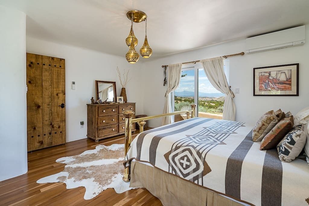 Authentic Luxury Villa with Mountains & Mesa Views (Ideal for long term bookings Summary:Our spacious pueblo home is a beautiful and unique 5-acre property in Santa Fe, New Mexico. It features amazing 300-degree views of the mesas and canyons of the Sangre de Christo and Jemez Mountains. Our home offers an irresistible invitation to adventure.Whether you’re looking for an adventure, a relaxing ge...