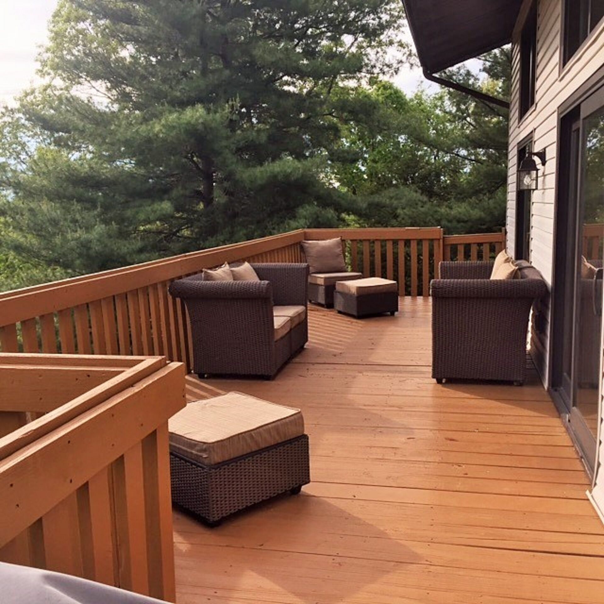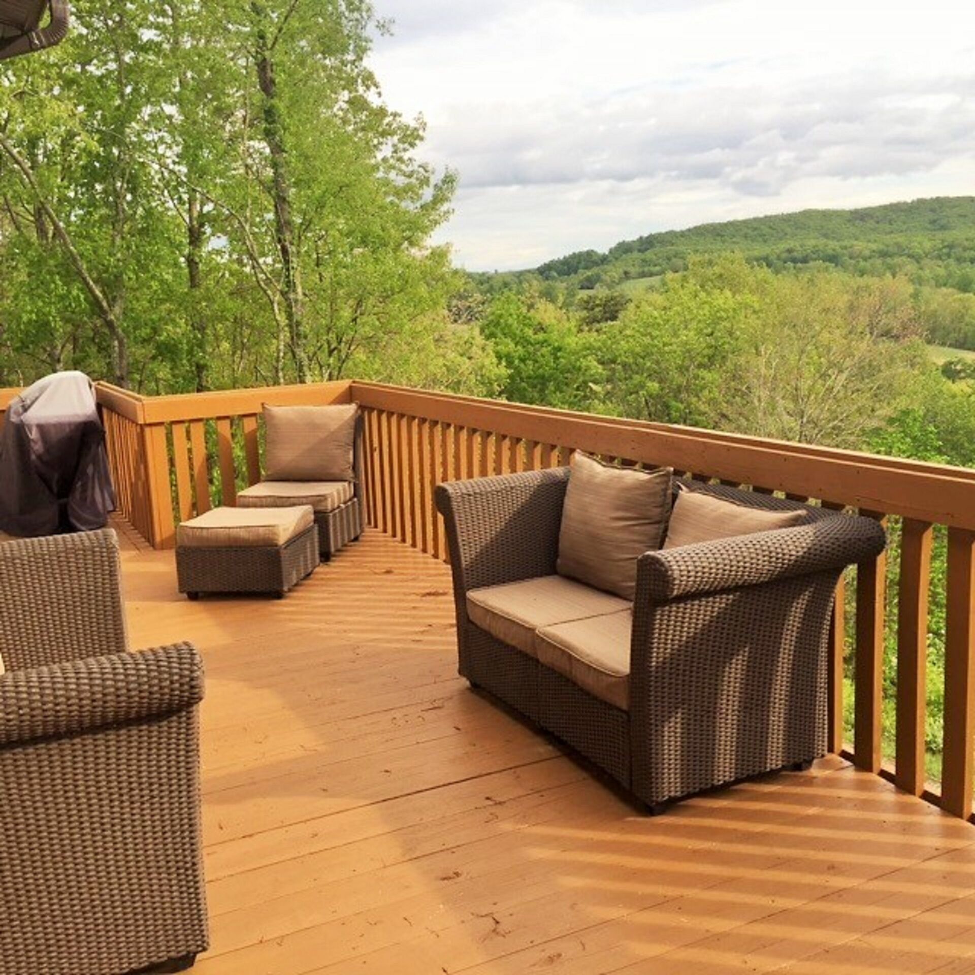 Hilltop House On 15 Acres Just 15 Minutes From Virginia Tech and Radford! BOOKING FOR VIRGINIA TECH FOOTBALL 2024 SEASON NOW AVAILABLE!This house is a great option for families coming to town for Virginia Tech or Radford University commencement every May and/or for alumni and others coming to enjoy Virginia Tech home football games every fall! Fall 2024 football schedule (home games at Lane Stadium):- Virginia Tech vs. Marshall: Saturday, September 7, 2024 - Open to book!- Virginia Tech vs. Rutgers: Saturday, September 21, 2024 (BOOKED)- Virginia Tech vs. Boston College: Thursday, October 17, 2024 (BOOKED)- Virginia Tech vs. Georgia Tech: Saturday, October 26, 2024 - Open to book!- Virginia Tech vs. Clemson: Saturday, November 9, 2024 (BOOKED)- Virginia Tech vs. UVA: Saturday, November 30, 2024 (BOOKED)The house sits at the top of a hill with amazing views. Farmland and cow pastures surround you. There are 15 acres to enjoy, including mostly wooded areas, as well as a large cleared field ideal for gatherings, evenings around the fire pit, or just sitting and watching the sunset.You will feel like you are in a mountain retreat far away from the hustle and bustle, yet you are less than five minutes from the convenience of the New River Valley Mall; stores like Walmart, Target, Lowes, Home Depot, Dick's Sporting Goods, and more; the New River Valley movie theater; restaurants like Texas Road House, Red Robin, Five Guys, and more. And you are only about 15 minutes from cozy and quaint downtown Blacksburg with tons more restaurants, shops, and, of course, Virginia Tech!The house features the following:- 15 private acres- Sleeps 9 with 4 bedrooms/3 bathrooms: large master suite with king bed, walk-in closet, en suite bath with garden tub and shower on the walk-out lower level; large bedroom with three twin beds and en suite bath/shower combo on main level; two bedrooms on upper level (one with two twin beds and the other with a queen bed) with a jack-and-jill bathroom with shower between the bedrooms.- large living room/playroom/sitting room on lower level- large living room on main level- large fireplace with wood burning stove- large modern kitchen with stainless steel appliances - large dining room with windows all around looking across the rolling hills and with large dining room table that seats 10 comfortably- large deck overlooking the rolling hills with amazing views- gas grill- fire pit- washer/dryer- central ac- ceiling fans in all rooms- wireless internet (DSL) - 50" Smart TV (NOTE: There is no cable TV; only Internet streaming available).Enjoy the seclusion and peacefulness of this hill-top house while being just 15 minutes from Virginia Tech. Come enjoy this house with family and friends!NOTE: Because this is our private home and not an investment property, we will request the names, ages, and relationships (e.g., spouse, brother, sister, friend, etc.) between and among all guests prior to confirming any booking. NO PARTIES ALLOWED.