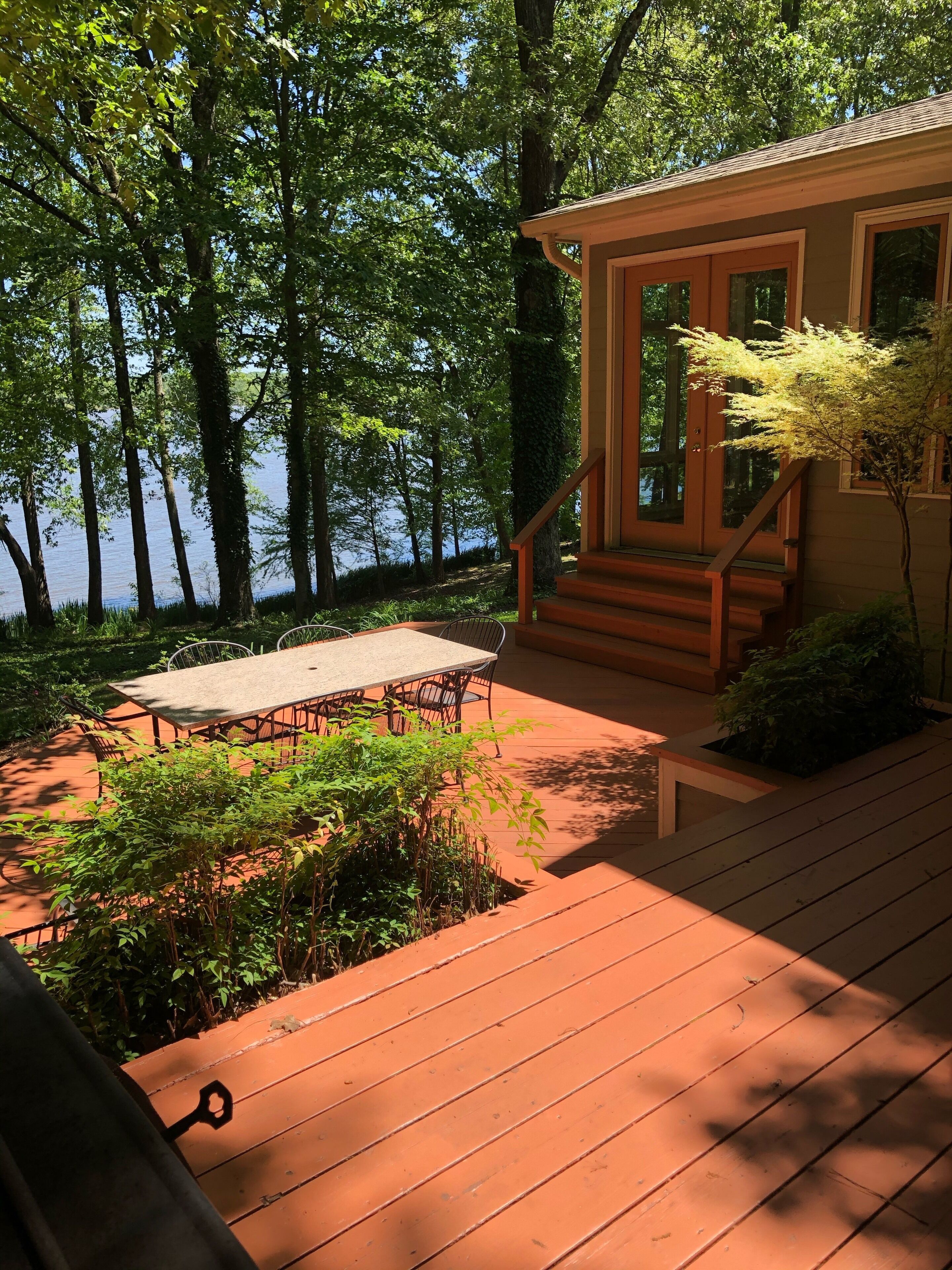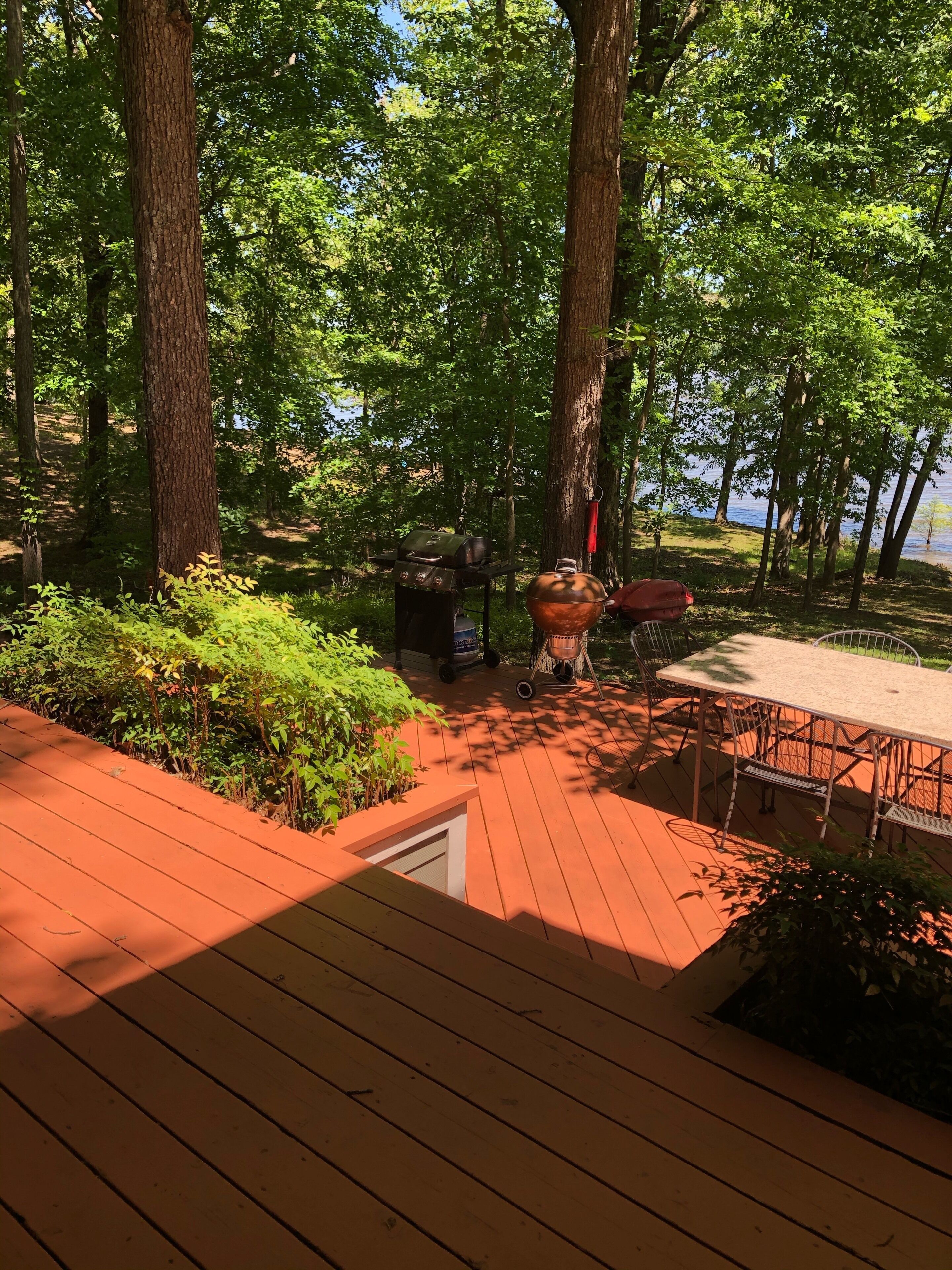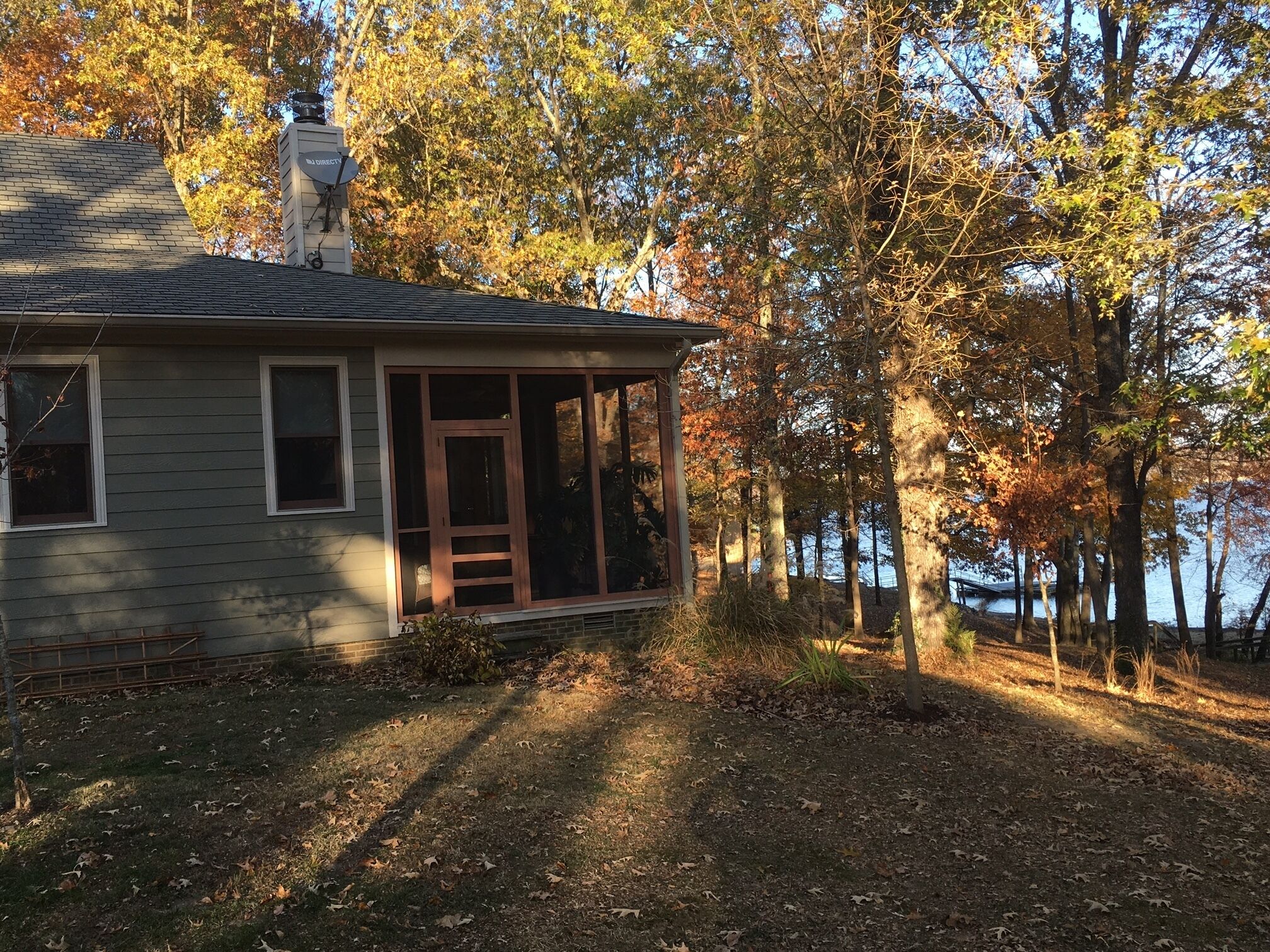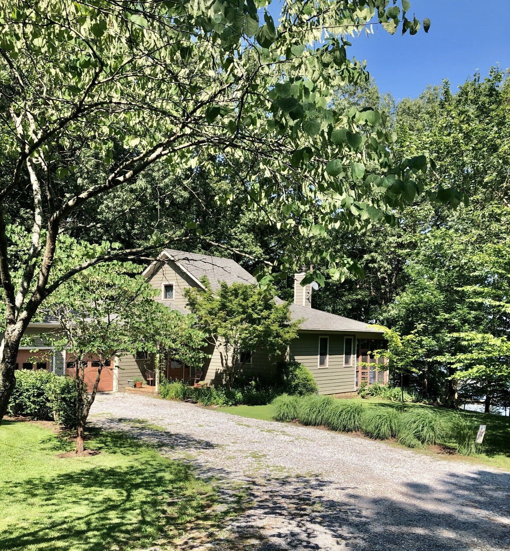I had rather be fishing 2000 square foot private Kentucky Lake front home. Beautiful views of Jonathan Creek bay from every room. Great kitchen with granite countertops. Twenty by thirty-five foot great room with floor to ceiling windows facing the lake and wood burning fireplace for chilly nights. Deck and screened porch facing lake. Satellite internet. Sits on approximately 3 1/2 acres plus TVA land. Great for families, duck hunters, fishermen, etc. Long term rentals welcome as well. The house sits directly facing the lake at the end of a long driveway. We have a lot of wildlife including deer that are there all year, pelicans that are there off and on from September through May, and bald eagles that begin appearing in October to repair their nest in the pine tree by the driveway in the front yard. The eagles begin nesting in January and both of them plus the eaglets are often seen from Late February until mid May. The nest is easiest to see from the landing of the stairs leading to the dock. If you look back from there over the top of the house, you can see the nest in the top of the pine tree. We also have the usual assortment of birds plus a family of pileated woodpeckers. If birdwatching is not your thing, fishing is available from the dock from April through September. You can also just relax with a good book or hike in the woods.