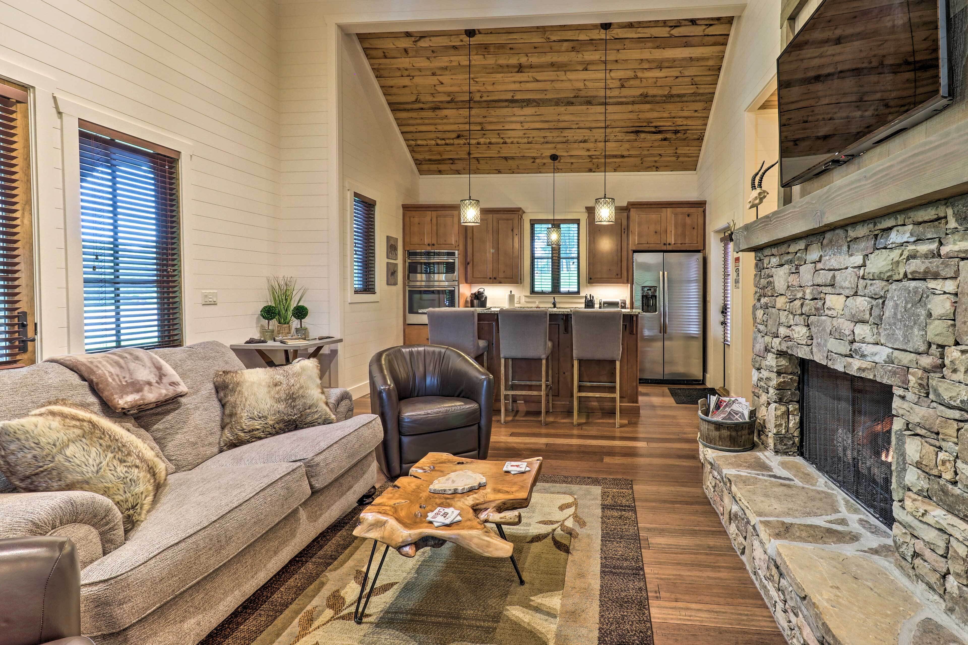 Rural Glenville Craftsman - Hike, Fish & Relax! Retreat into the woods with this rural Glenville vacation rental, nestled in the quaint Chinquapin community. Offering brand-new modern furnishings and decor throughout, the 2-bedroom, 2-bath vacation rental house exudes a welcoming-yet-upscale atmosphere. Prepare a meal in the full kitchen, then dine and sip on the mountain-view deck. With lush hiking trails, fishing ponds, a disc golf course, and a community clubhouse nearby, this home has plenty of on-site recreation options to choose from!-- THE PROPERTY --Mountain Views | Private Deck | Dog Friendly w/ Fee | On-Site Trails | Clubhouse AccessIf you’re craving all the peace and quiet of the woods, but don’t want to part with modern comforts and upscale amenities, this Chinquapin home is your perfect match!Bedroom 1: King Bed | Bedroom 2 (Loft): Queen Bed, Futon (Children Only)COMMUNITY: Access to clubhouse, fire pits, disc golf course, hiking & mountain biking trails, driving range, fishing pond w/ hammocksOUTDOORS: Covered deck & front porch, cushioned patio furniture, rocking chairs, wooded views, quiet surroundingsINDOORS: Open floor plan, modern decor, all-new furnishings, stone fireplace, Smart TVs, loft overlook, board game collectionKITCHEN: Fully equipped, high-top bar w/ seating, stainless steel appliances, cooking basics, dishware, Keurig coffee maker, dual oven, toaster, dishwasherGENERAL: Free WiFi, central A/C & heat, iron & boardFAQ: Pet fee (paid pre-trip; maximum of 2 dogs), construction in area (may hear noise)PARKING: Driveway (6 vehicles), free street parking-- THE LOCATION --ON-SITE ACCESS: Hiking trails, fishing ponds, mountain biking routes, disc golf course, sports field, live music, electric bike rentalsSCENIC SPOTS: The Pines Recreation Area (8.8 miles), Turtleback Falls (13.4 miles), Gorges State Park (13.8 miles), Whitewater Falls (18.7 miles)HIKING TRAILS: Panthertown Valley Trail (2.2 miles), Salt Rock Gap (2.5 miles), High Falls Trail (9.0 miles), Silver Run Falls Trailhead (9.7 miles), Rainbow Falls Trail (14.5 miles)DAY TRIPS: Asheville (64.4 miles), Great Smoky Mountains National Park (71.7 miles), Pigeon Forge (86.1 miles), Sevierville (91.7 miles)AIRPORTS: Asheville Regional Airport (49.4 miles), Greenville-Spartanburg International Airport (83.5 miles)-- REST EASY WITH US --Evolve makes it easy to find and book properties you'll never want to leave. You can relax knowing that our properties will always be ready for you and that we'll answer the phone 24/7. Even better, if anything is off about your stay, we'll make it right. You can count on our homes and our people to make you feel welcome — because we know what vacation means to you.-- POLICIES --- No smoking- Pet friendly with $100 fee (+ fees & taxes, maximum of 2 dogs)- No events, parties or large gatherings- Must be at least 25 years old to book- Additional fees and taxes may apply- Photo ID may be required upon check-in- NOTE: Your safety matters. This property features a Ring doorbell security camera at the front of the home. It does not look into interior spaces- NOTE: The futon is only suitable for children- NOTE: There is currently construction in the area. You may hear construction noise at the property
