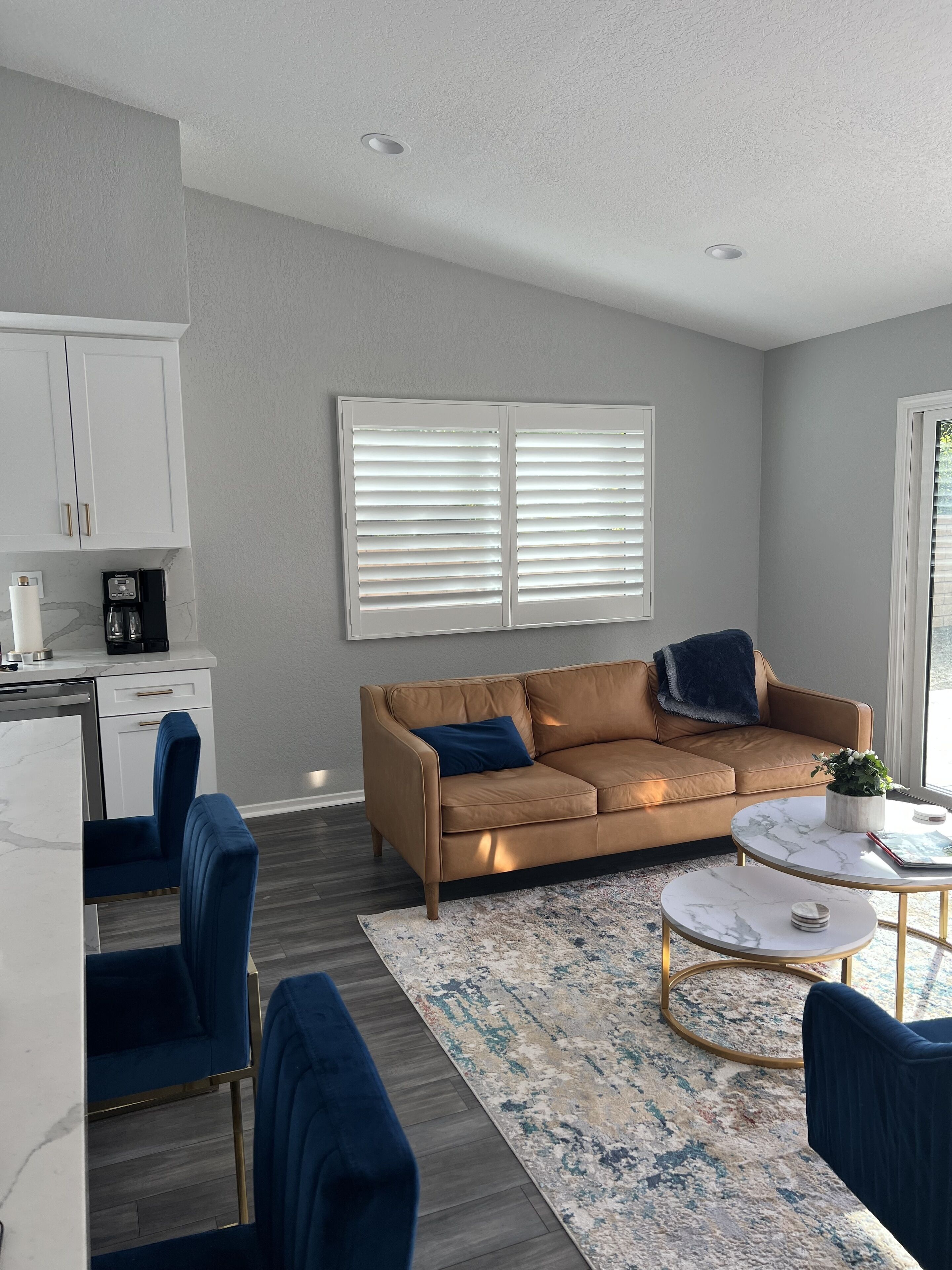 Newly renovated and furnished Lake Forest home near Orange County attractions! Newly renovated, newly and fully furnished executive home available for >1 month rental. Single-story, located end of cul-de-sac with plenty of off-street parking. In planned community with, parks, recreation and easy access to Trabuco trails. Living room, a showcase with electric fireplace, modern sculptural tiled facade and lighted quartz shelving. Leather couches and 65-inch smart TVs in both living and family rooms. New large plantation shutters in living, family and two bedrooms. Gourmet kitchen with high end new appliances and convection cooking and wine refrigerator. Open concept family room / kitchen with high ceilings and pendant lighting over waterfall quartz island. 8-foot sliders to private enclosed back yard with new hardscape, landscape and entertainment area which includes barbecue, and fire table. Separate private patio off outside sliding doors from dining room. Primary bedroom is peaceful oasis with chandelier, king bed and oversized headboard. Barn doors slide open to both walk in closet and oversized bathroom with sky light, double vanity and walk in double tiled shower. Second bedroom with new queen bed, luxury bedding, matching headboard, dresser and side table. Third bedroom with queen Murphy bed with Tempur-pedic mattress, and large lighted work desk area, to serve as in home office.Home conveniently located to 5/405 Fwy junction, shops, restaurants, Irvine spectrum and Great Park, South Coast Plaza, beaches and local hospitals.