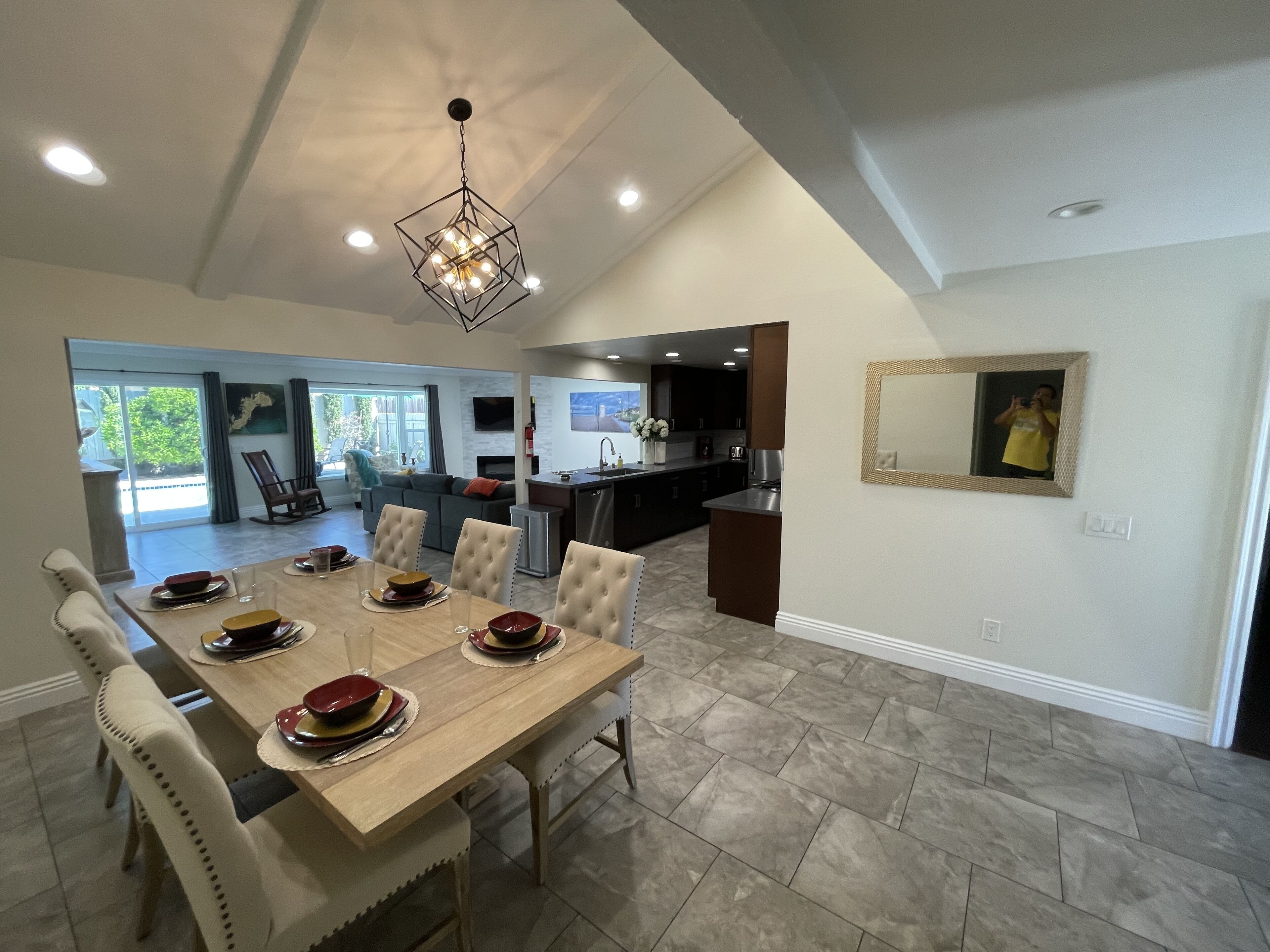 Beautiful backyard and big pool and outdoor BBQ This beautiful Orange County home is located in the city of Lake Forest. This home consists of 5 spacious bedrooms, a nice kitchen, an open dining room and a generous living room that is perfect for large families. This house is fully furnished and has a beautiful pool allowing guests to enjoy the great Southern California whether, including a bbq and an outdoor patio set. ApproximatelyThis home is less than or 30 minutes away from the beach, Disney Land, John Wayne Airport, and the Irvine Spectrum.