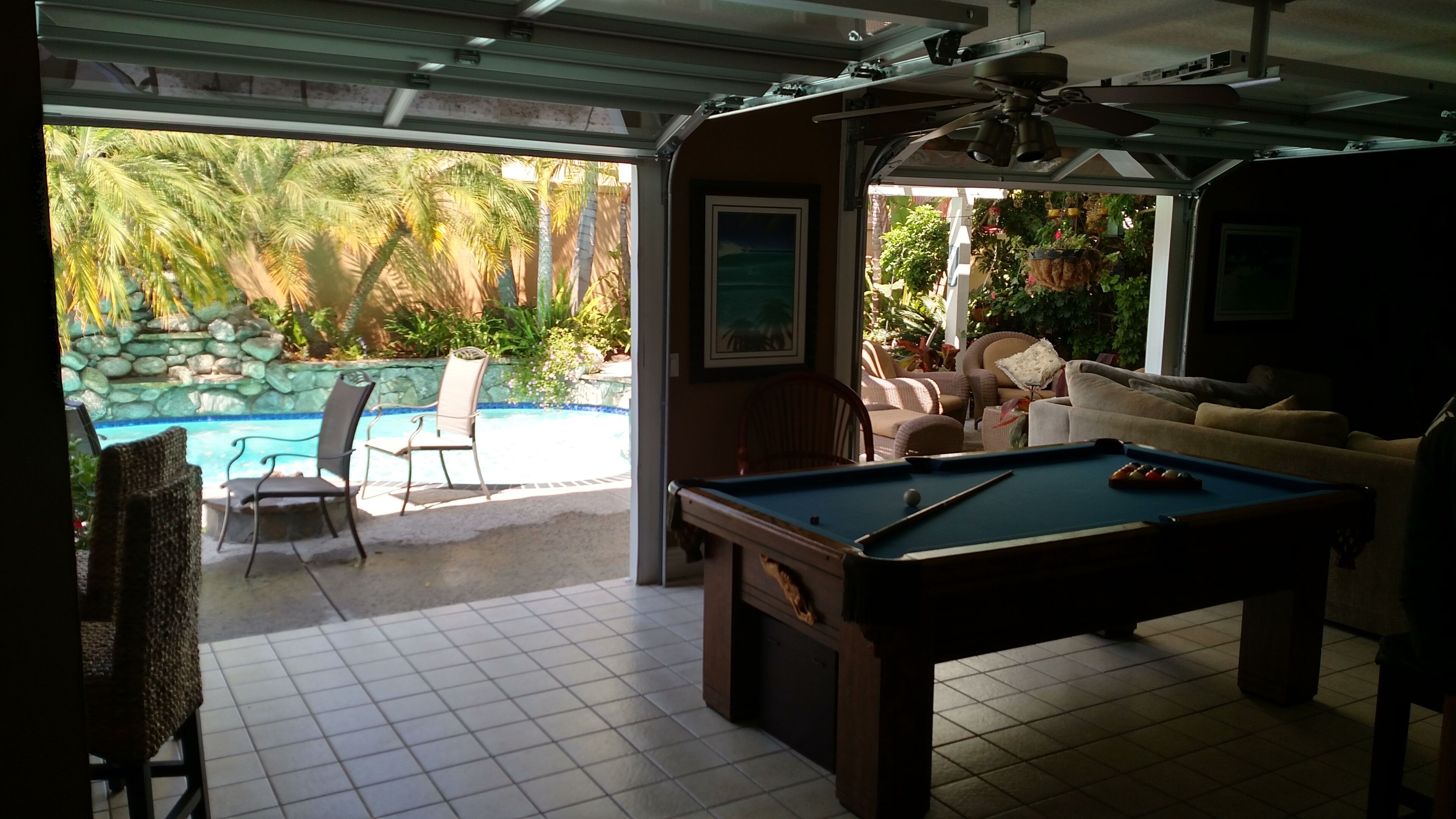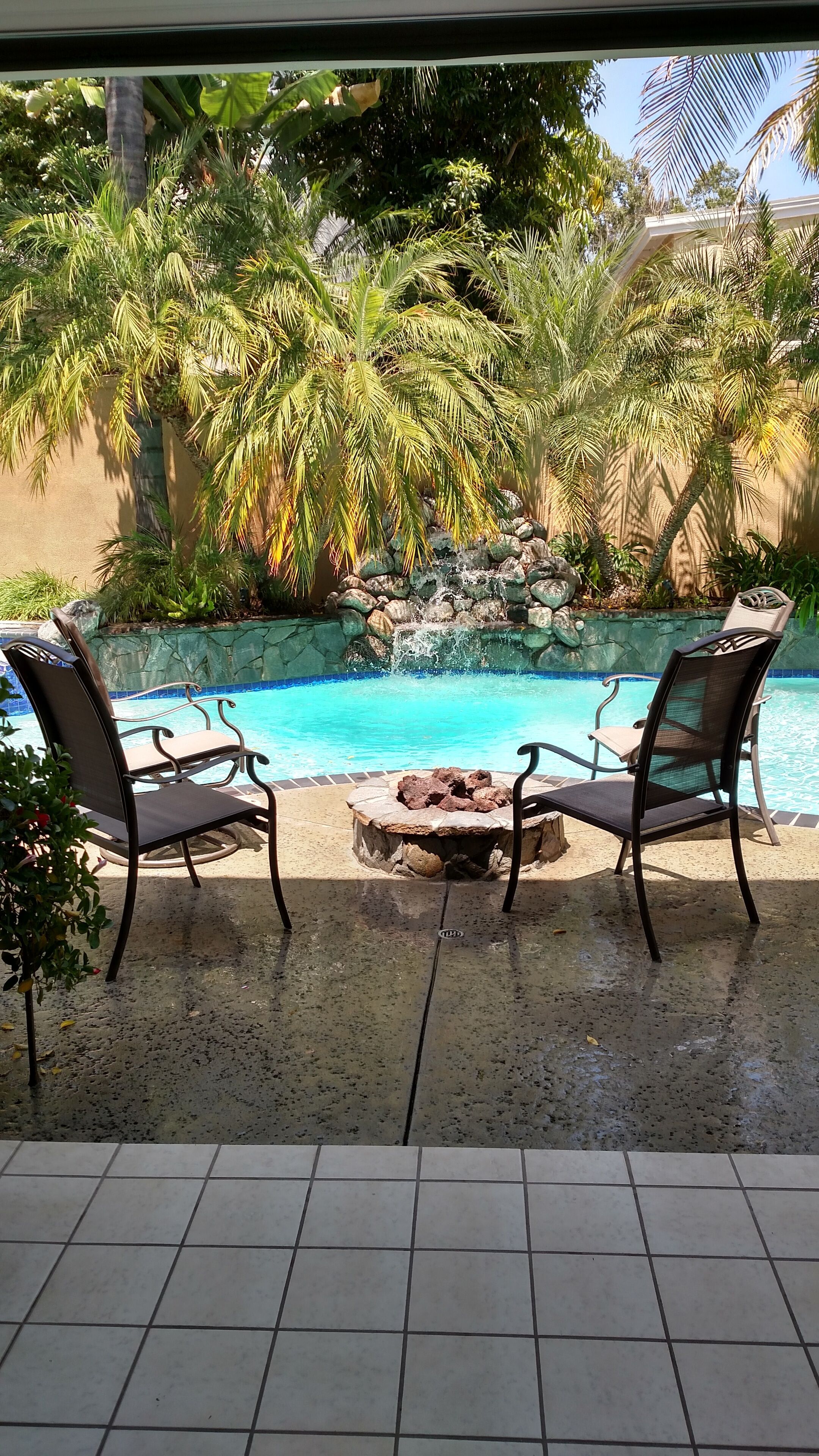 Tropical Home, Heated Pool, Spa, Fire Ring, Fireplace, Central Air, Pool table Huge Master bedroom with California King bed, balcony, fireplace, and view of tropical yard & pool.Enjoy coffee in the morning and sunbathing on deck.3 additional bedrooms with queen size beds.We recently replaced our rear sliding doors with gorgeous roll up doors. This feature really brings the California experience t...