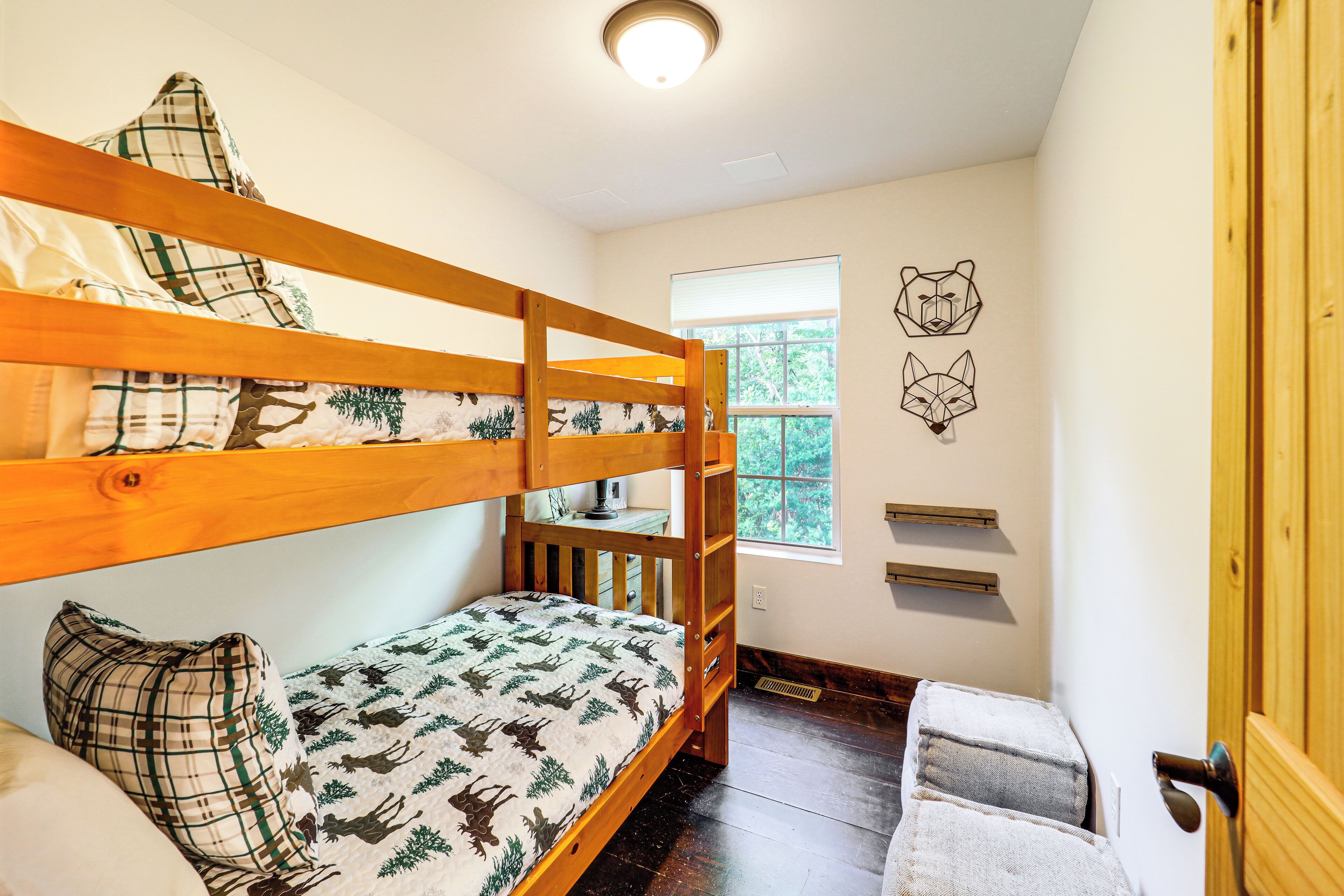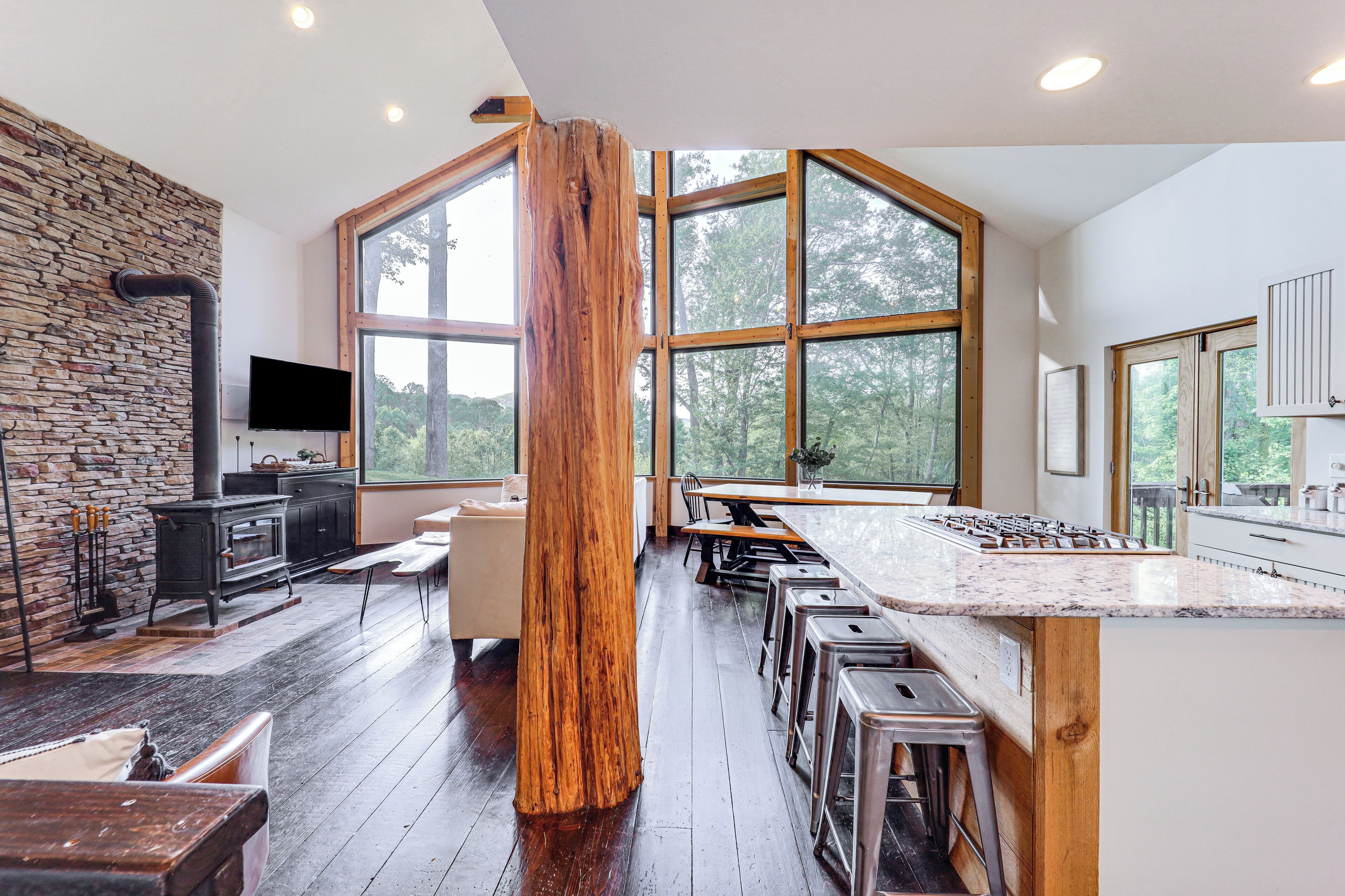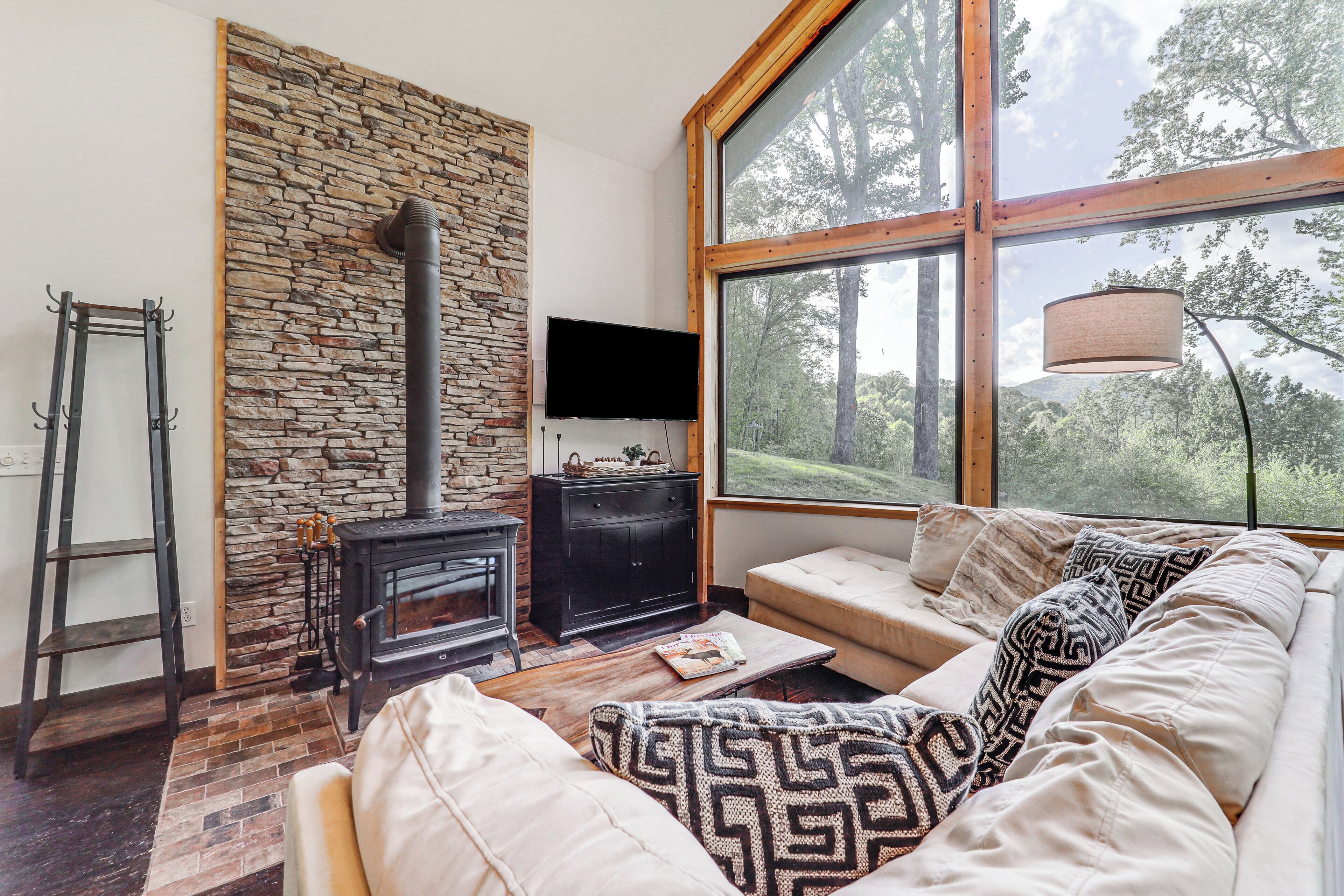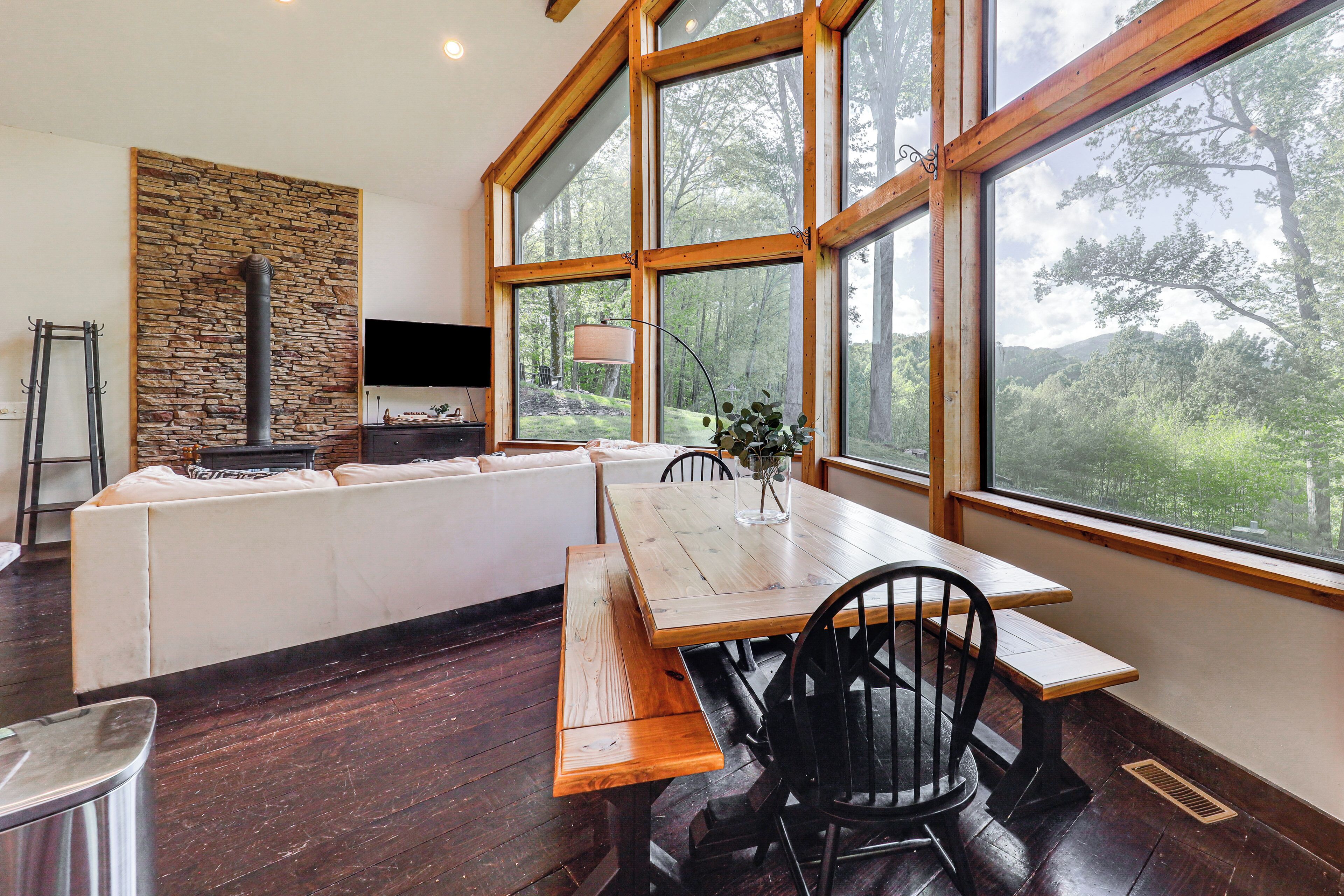 Luxe Appalachian Mountain Cabin w/ Hot Tub, Views Get off the beaten path and enjoy quality family time at this 4-bedroom, 3-bath cabin in Warrensville, NC! This vacation rental offers a true escape, with ethereal forest views from the floor-to-ceiling windows, a fire pit nestled in nature, and no neighbors as far as the eye can see. When the mountains call you outside, hike the Virginia Creeper Trail or cast a fishing line at New River State Park. Your cozy haven awaits afterwards for stargazing on the deck and a soothing soak in the hot tub!-- THE PROPERTY --Gas Grill | Nearby Hiking Trails | Quiet & SecludedBedroom 1: King Bed | Bedroom 2: Queen Bed | Bedroom 3: Queen Bed | Bedroom 4: Twin Bunk Bed (160lb Weight Limit) | Loft: Full Futon | Basement: Triple Twin Bunk Bed (160lb Weight Limit), Twin Bed | Additional Sleeping: Pack 'n PlayINDOOR LIVING: Smart TV, wood-burning stove (decorative only), dining table, board games & books, card games, mini basketball, ceiling fansOUTDOOR LIVING: 3 decks, balcony, outdoor dining area, fire pit, hot tubKITCHEN: Dishwasher, refrigerator, stove/oven, microwave, drip coffee maker, Keurig coffee maker, toaster, blender, Crockpot, cooking basics, spices, dishware & flatware, trash bags & paper towelsGENERAL: Free WiFi, complimentary toiletries, hair dryer, towels & linens, washer & dryer, iron & board, central heating & A/C (mini-split system in Bedroom 1), keyless entryFAQ: 4WD recommended in winterACCESSIBILITY: 3-story home, stairs to accessPARKING: Driveway (4 vehicles)-- THE LOCATION --HIKING TRAILS: Lansing Creeper Trail Park (9 miles), Virginia Creeper Trail Whitetop (16 miles), Cascade Falls (29 miles), E.B. Jeffress Park-The Cascades Trail (30 miles), Laurel Creek Trail (34 miles)MORE OUTDOORS: Mount Jefferson State Natural Area (14 miles), New River State Park (20 miles), Elk Knob State Park (22 miles), Appalachian Ski Mountain (40 miles)AROUND THE AREA: Lansing (9 miles), West Jefferson (11 miles), Boone (31 miles), Blowing Rock (40 miles)AIRPORT: Tri-Cities Airport (84 miles)-- REST EASY WITH US --Evolve makes it easy to find and book properties you’ll never want to leave. You can relax knowing that our properties will always be ready for you and that we’ll answer the phone 24/7. Even better, if anything is off about your stay, we’ll make it right. You can count on our homes and our people to make you feel welcome — because we know what vacation means to you.-- POLICIES --- No smoking- No pets allowed- No events, parties, or large gatherings- Must be at least 25 years old to book- Additional fees and taxes may apply- Photo ID may be required upon check-in- NOTE: This 3-story home requires stairs to access- NOTE: The ladders for all bunk beds and the bunk beds themselves have a manufacturer’s weight limit of 160lbs- NOTE: Four-wheel drive or all-wheel drive is recommended in the winter months to access the property. The driveway is one lane approximately 1/2 mile up the mountain and caution should be used during wet or winter conditions- NOTE: The wood-burning stove is not available for guest use