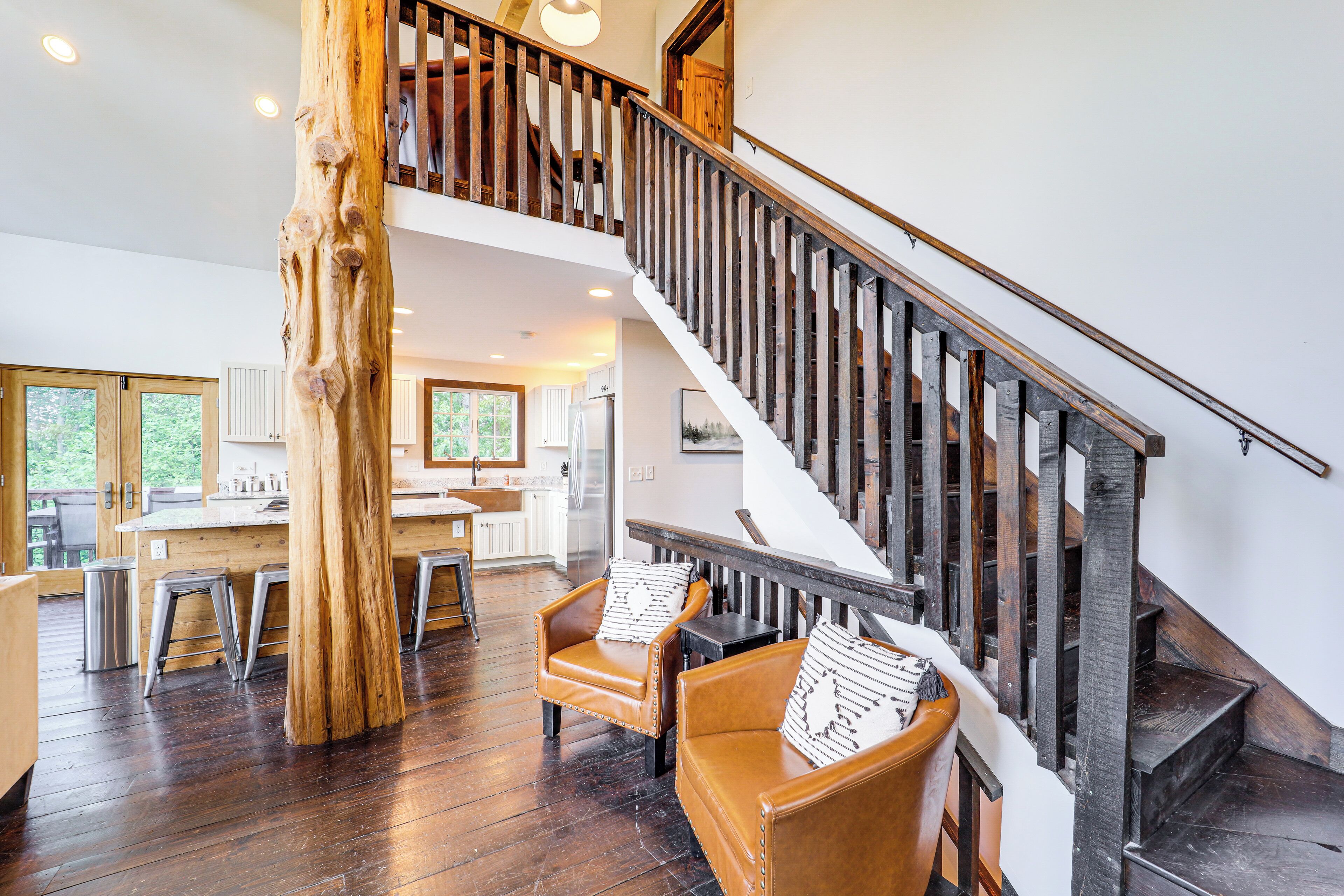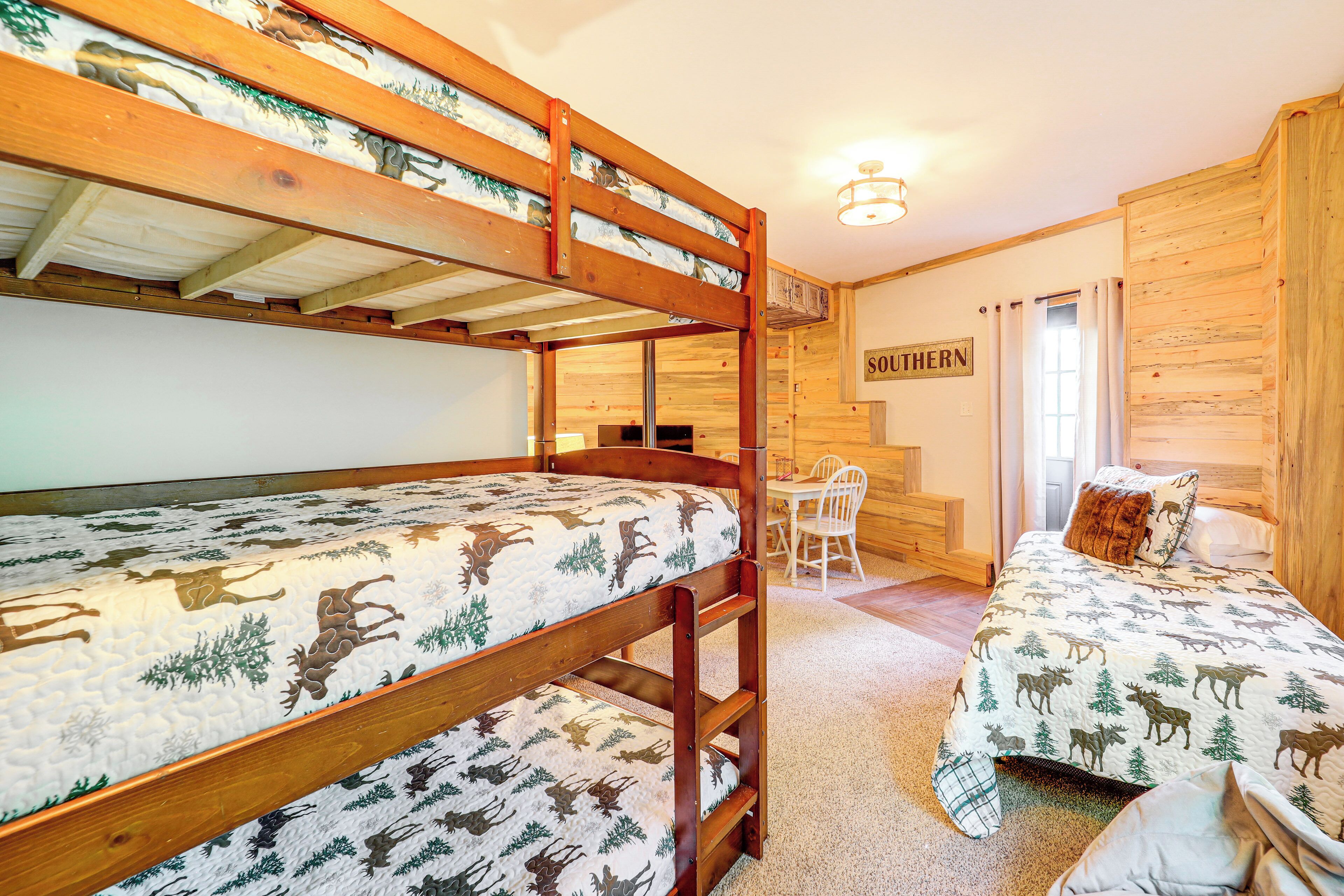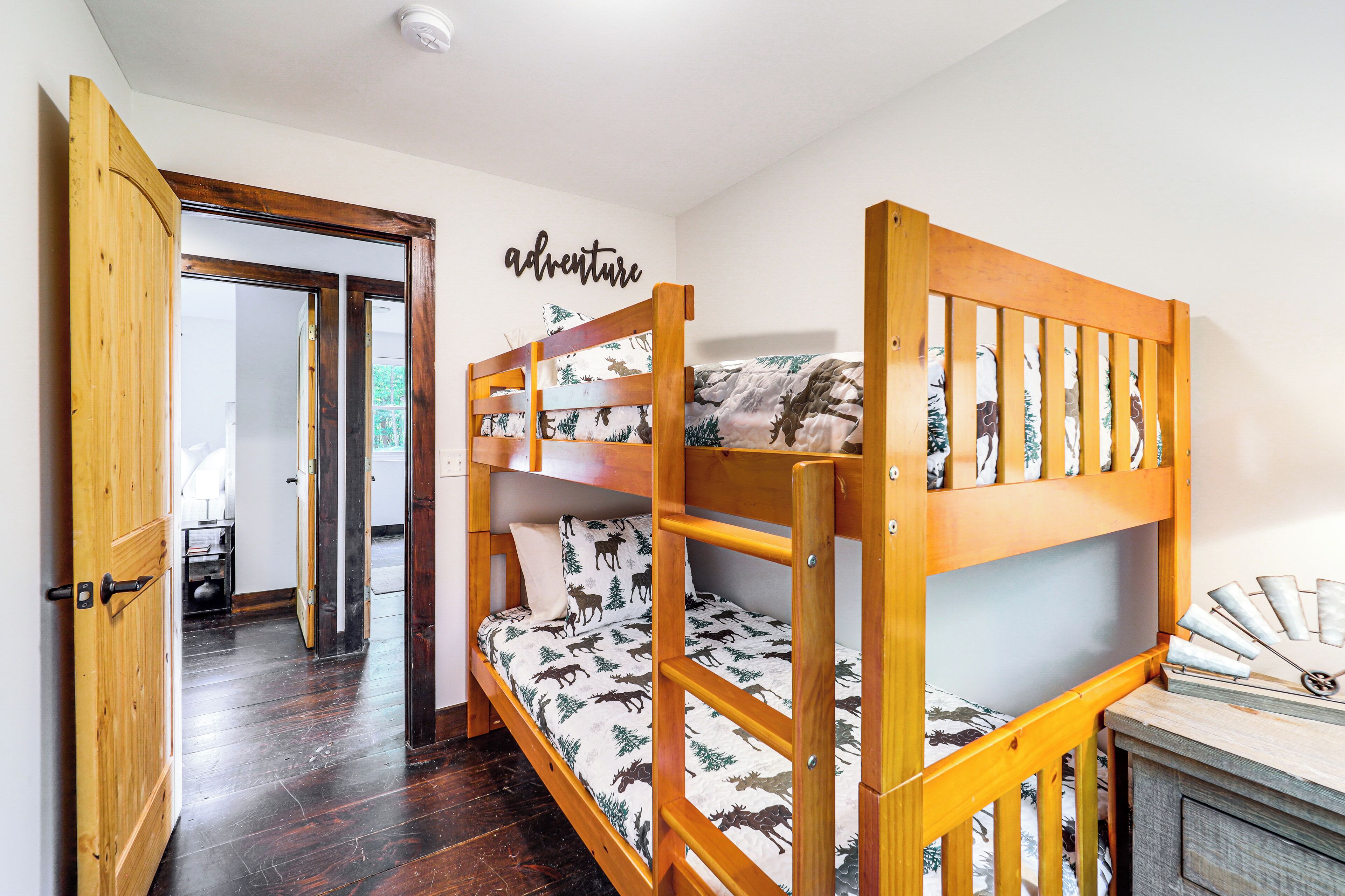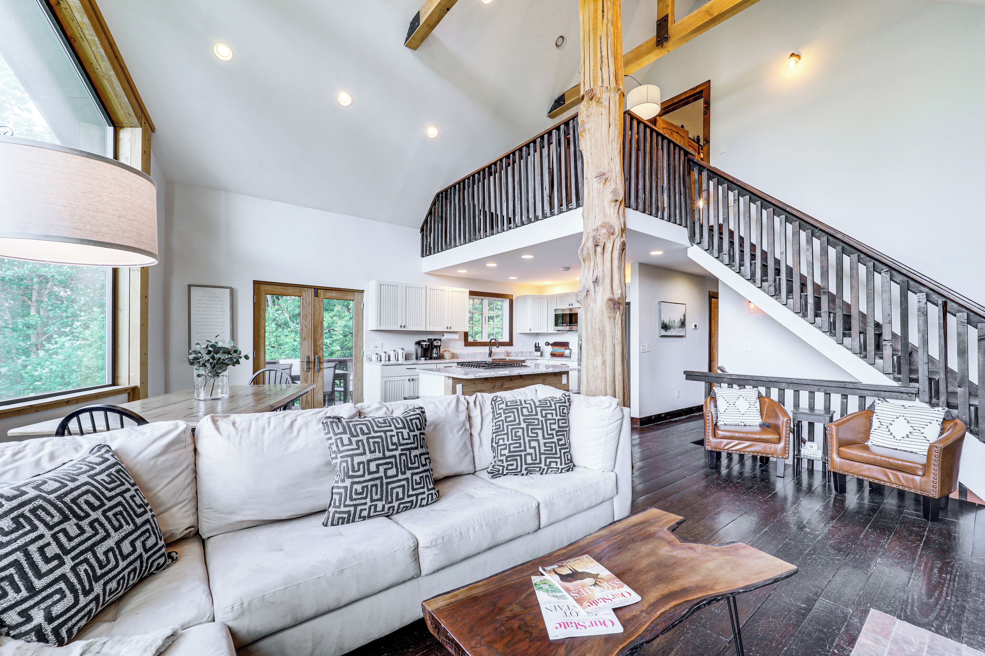 Luxe Appalachian Mountain Cabin w/ Hot Tub, Views Get off the beaten path and enjoy quality family time at this 4-bedroom, 3-bath cabin in Warrensville, NC! This vacation rental offers a true escape, with ethereal forest views from the floor-to-ceiling windows, a fire pit nestled in nature, and no neighbors as far as the eye can see. When the mountains call you outside, hike the Virginia Creeper Trail or cast a fishing line at New River State Park. Your cozy haven awaits afterwards for stargazing on the deck and a soothing soak in the hot tub!-- THE PROPERTY --Gas Grill | Nearby Hiking Trails | Quiet & SecludedBedroom 1: King Bed | Bedroom 2: Queen Bed | Bedroom 3: Queen Bed | Bedroom 4: Twin Bunk Bed (160lb Weight Limit) | Loft: Full Futon | Basement: Triple Twin Bunk Bed (160lb Weight Limit), Twin Bed | Additional Sleeping: Pack 'n PlayINDOOR LIVING: Smart TV, wood-burning stove (decorative only), dining table, board games & books, card games, mini basketball, ceiling fansOUTDOOR LIVING: 3 decks, balcony, outdoor dining area, fire pit, hot tubKITCHEN: Dishwasher, refrigerator, stove/oven, microwave, drip coffee maker, Keurig coffee maker, toaster, blender, Crockpot, cooking basics, spices, dishware & flatware, trash bags & paper towelsGENERAL: Free WiFi, complimentary toiletries, hair dryer, towels & linens, washer & dryer, iron & board, central heating & A/C (mini-split system in Bedroom 1), keyless entryFAQ: 4WD recommended in winterACCESSIBILITY: 3-story home, stairs to accessPARKING: Driveway (4 vehicles)-- THE LOCATION --HIKING TRAILS: Lansing Creeper Trail Park (9 miles), Virginia Creeper Trail Whitetop (16 miles), Cascade Falls (29 miles), E.B. Jeffress Park-The Cascades Trail (30 miles), Laurel Creek Trail (34 miles)MORE OUTDOORS: Mount Jefferson State Natural Area (14 miles), New River State Park (20 miles), Elk Knob State Park (22 miles), Appalachian Ski Mountain (40 miles)AROUND THE AREA: Lansing (9 miles), West Jefferson (11 miles), Boone (31 miles), Blowing Rock (40 miles)AIRPORT: Tri-Cities Airport (84 miles)-- REST EASY WITH US --Evolve makes it easy to find and book properties you’ll never want to leave. You can relax knowing that our properties will always be ready for you and that we’ll answer the phone 24/7. Even better, if anything is off about your stay, we’ll make it right. You can count on our homes and our people to make you feel welcome — because we know what vacation means to you.-- POLICIES --- No smoking- No pets allowed- No events, parties, or large gatherings- Must be at least 25 years old to book- Additional fees and taxes may apply- Photo ID may be required upon check-in- NOTE: This 3-story home requires stairs to access- NOTE: The ladders for all bunk beds and the bunk beds themselves have a manufacturer’s weight limit of 160lbs- NOTE: Four-wheel drive or all-wheel drive is recommended in the winter months to access the property. The driveway is one lane approximately 1/2 mile up the mountain and caution should be used during wet or winter conditions- NOTE: The wood-burning stove is not available for guest use