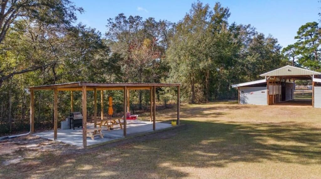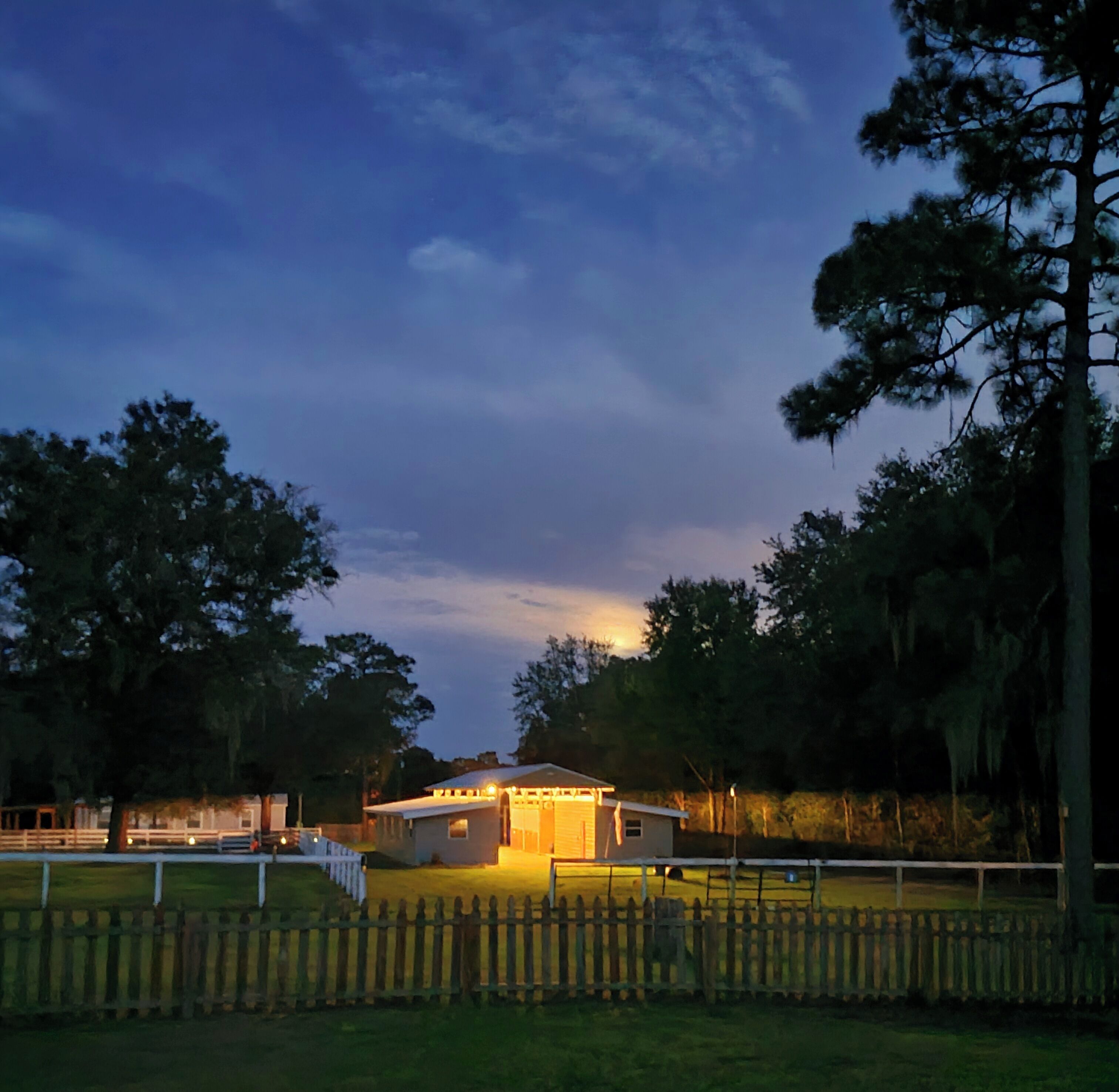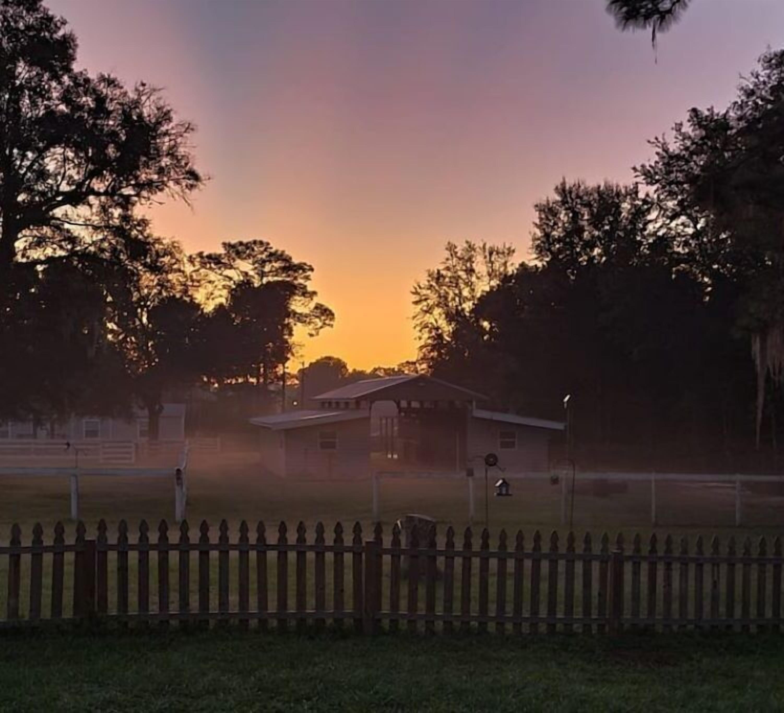 Misty Morning Acres. Reconnect with nature at this unforgettable escape. Located in central Florida 1 mile north of The Villages situated on 2.4 acres. This hobby farm has a 6-stall horse barn, a chicken paddock with our small breed of Bantam chickens and Nigerian dwarf goats. Within a short distance enjoy nighty entertainment at the squares, shopping, restaurants, golf. Silver Springs has kayaking or glass bottom boat tours. 16 milesCanyons Zip line and horseback riding. 25 milesDragon Flower Winery 2 milesSpanish Springs Square 5 miles The Villages Polo Club. 5 milesLake Sumter Landing 8 milesFlorida Horse Park 14 milesGrand Oaks Equine and special events. 11 milesOcala 19 miles This is the guest house on backside of the property. You will be greeted by the property owners who live in the main house. After checking in you will have your own private entrance to the property by keycode.This is a non-smoking property and no events allowed. No pets allowed. We can accommodate a small trailer for kayaks or a boat. Equestrian travelers are welcomed for an extra fee for your horse, and it is self-care.