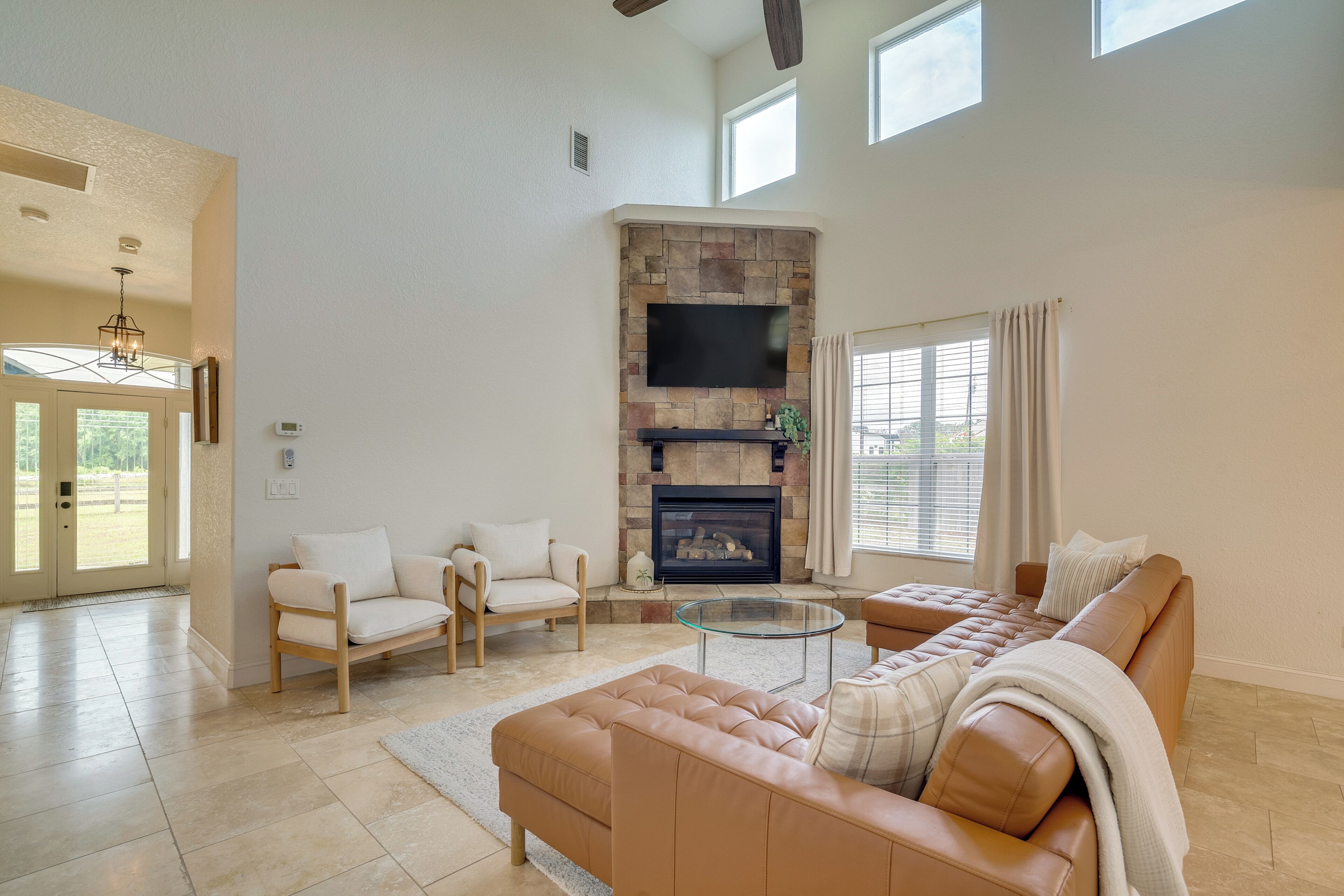 Lakefront Summerfield Getaway w/ Private Beach! Enjoy the lake life and soak up the sun at this Summerfield vacation rental! Situated on Little Lake Weir in Florida Horse Country, this 4-bedroom, 3-bath home is ideal for accessing outdoor fun with ease. Launch jet skis right from the property, take the kayaks out for a ride, or head over to Carney Island Recreation Area for a hike. If you’re an equestrian, staples like the Florida Horse Park are just a drive away, while nearby entertainment can be found at Spanish Springs Town Square!-- THE PROPERTY --Boat/Jet Ski Launch | 2 Kayaks w/ Life Vests | Screened Lanai | Fishing Poles | 2,400 Sq FtBedroom 1: King Bed | Bedroom 2: 2 Twin Beds | Bedroom 3: Full Bed | Bedroom 4: Full BedINDOOR LIVING: Smart TVs, fireplace (decorative only), dining table, en-suite bathrooms, walk-in closetOUTDOOR LIVING: Private yard, balcony, gas grill (propane provided), dining area, fire pit, 2 baby chair attachments, beach towels, telescope, standing swingKITCHEN: Cooking basics, spices, dishware/flatware, dishwasher, refrigerator, stove, microwave, Keurig coffee maker, blender, slow cooker, toaster, ice maker, water filter, garbage disposalGENERAL: Free WiFi, keyless entry, central heating & A/C, ceiling fans, complimentary toiletries, linens/towels, washer/dryer, laundry detergent, iron/board, hangers, trash bags/paper towelsACCESSIBILITY: 1 step required, 2-story home, bedroom/full bathroom on 1st floorPARKING: Driveway (4 vehicles)-- THE LOCATION --LAKE LIVING: Little Lake Weir (on-site access), private boat/jet ski launch (on-site), Carney Island Boat Ramp at Lake Weir (6 miles), Eaton’s Beach (6 miles), Hampton Beach (9 miles)FLORIDA HORSE COUNTRY: L Cross Equestrian Center (12 miles), Grandview Invitational (13 miles), Florida Horse Park (14 miles), Grey Dawn Stables (14 miles), Phil’s Farm (14 miles), World Equestrian Center — Ocala (26 miles)LOCAL FUN: Spanish Springs Town Square (7 miles), Savannah Center at The Villages (8 miles), Oxford Downs Poker Room (9 miles), Lake Sumter Landing (11 miles), Don Garlits Museum of Drag Racing (13 miles)AIRPORT: Orlando International Airport (71 miles)-- REST EASY WITH US --Evolve makes it easy to find and book properties you’ll never want to leave. You can relax knowing that our properties will always be ready for you and that we’ll answer the phone 24/7. Even better, if anything is off about your stay, we’ll make it right. You can count on our homes and our people to make you feel welcome — because we know what vacation means to you.-- POLICIES --- No smoking- No pets allowed- No events, parties, or large gatherings- Must be at least 25 years old to book- Additional fees and taxes may apply- Photo ID may be required upon check-in- NOTE: This 2-story home requires 1 step to enter but features a bedroom and full bathroom on the 1st floor- NOTE: The fireplace is not available for guest use