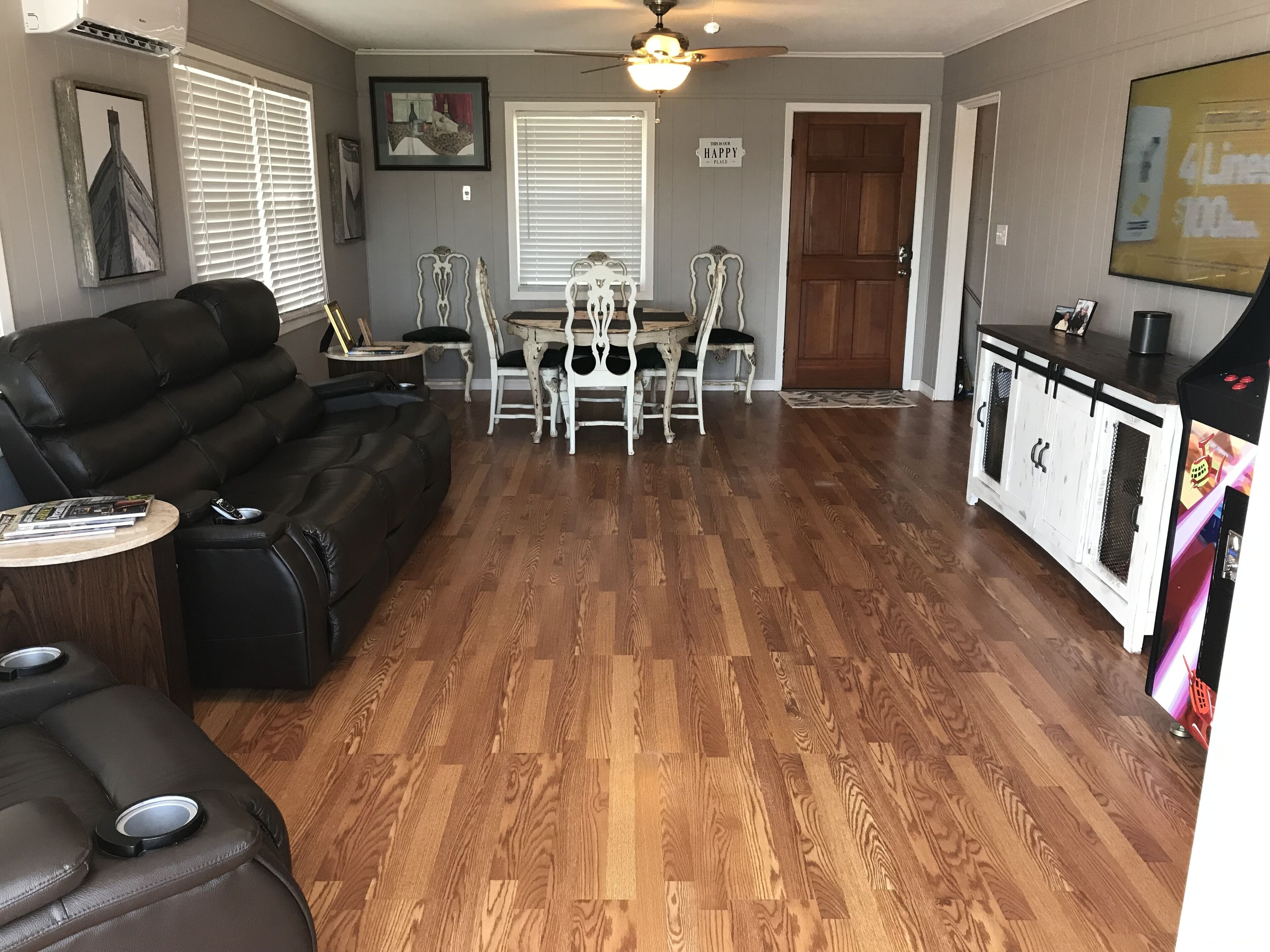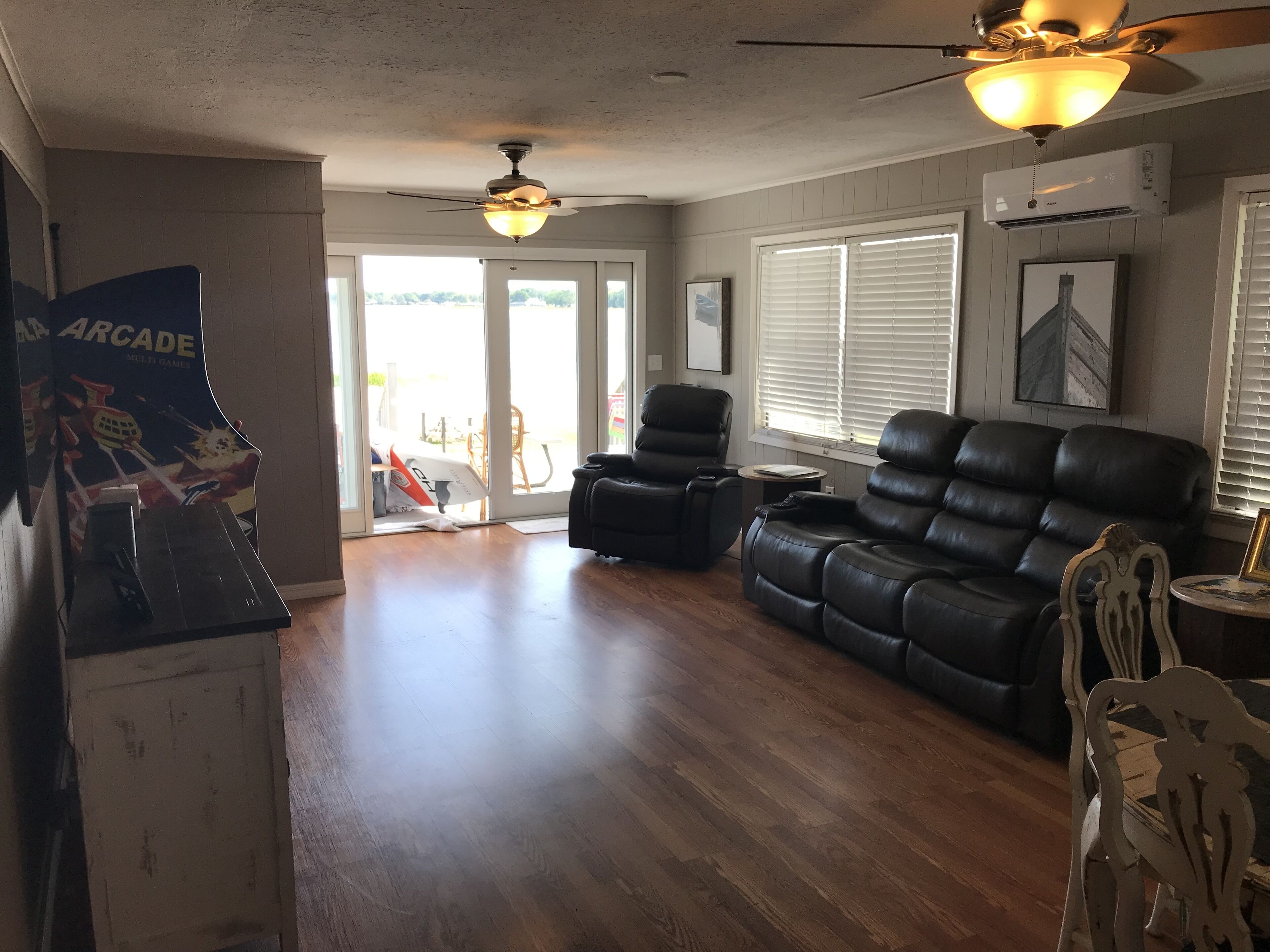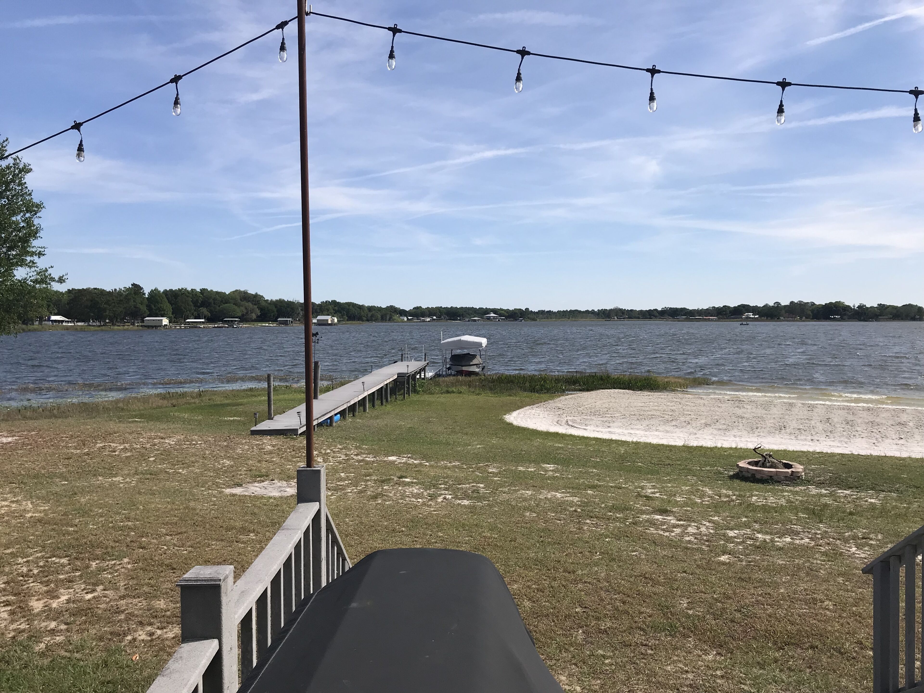 The Villages LakeFront 2/1.5 Home At Sunset Harbor/Lake Weir Hi, Thank your for Looking. This Beautiful direct LakeFront Cottage has 2 bedrooms and 1 and 1/2 baths, A large Living room and also family room with trundle bed. Kitchen has been newly appointed w/ brand new samsung appliances. The home has new flat screen tvs in all rooms w/ Roku Streaming TV: Sling TV, Youtube TV, ATT TV with HBO/Showtime and wifi access. 3 of the 4 tvs are Smart tvs for your entertainment. The cottage was refurbished in 2018 and has a new feel inside but a 1950s vintage feel also remains. The property has a dock and a beach for your lakeside enjoyment. It is a peaceful property where you can enjoy a quiet vacation along with the nature of lakeside living!