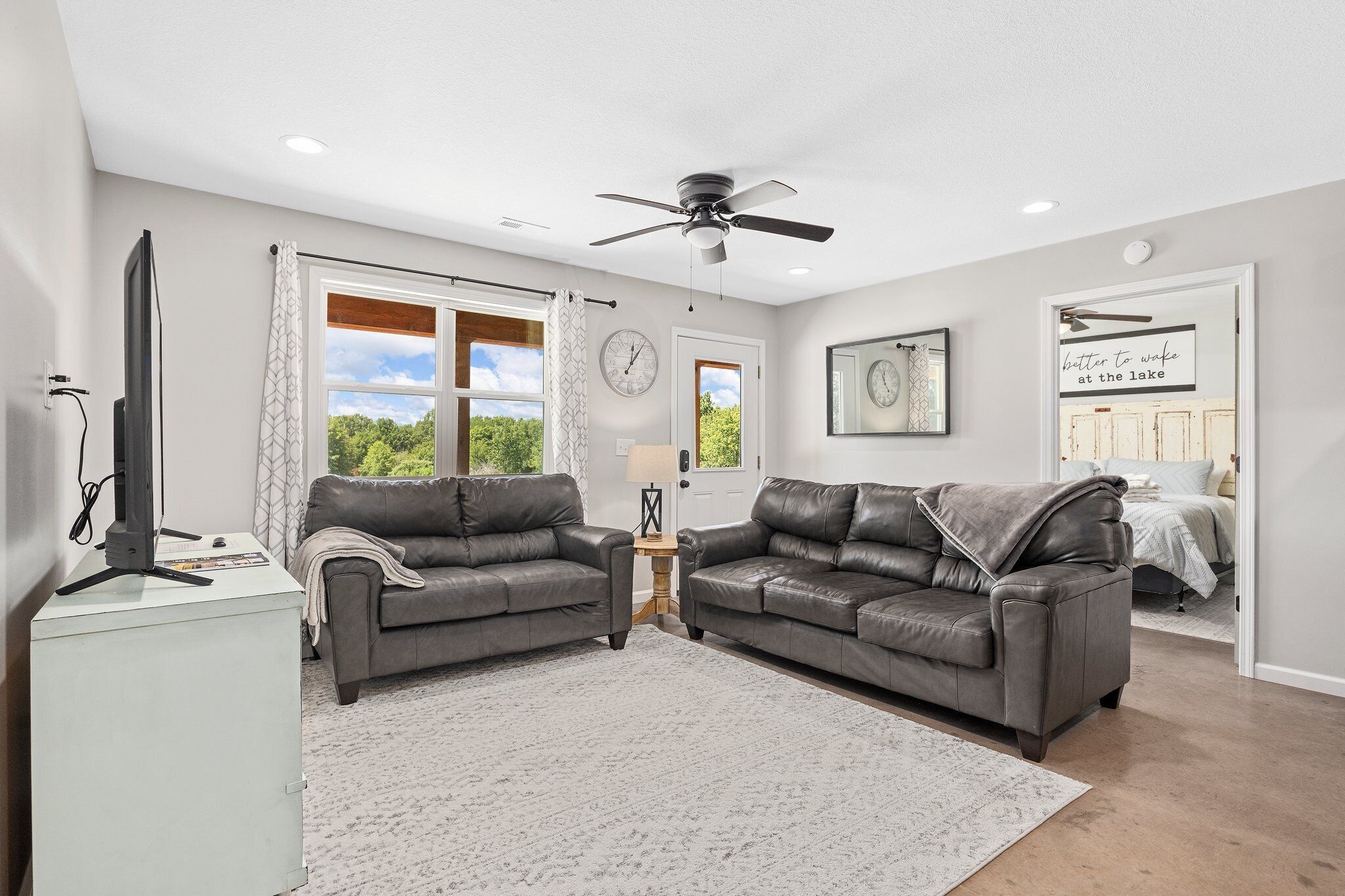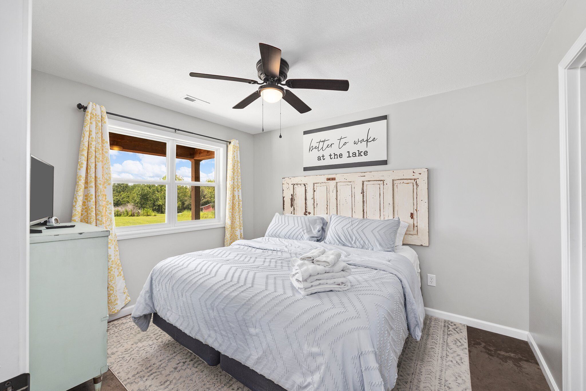 Cozy Cabin on 3 acres 1 minute from boat ramp! Whether you're looking for a holiday weekend getaway to unwind in a remote/private setting, a fishing/boating trip to explore Mark Twains 18,000 acre lake, or to hunt on 45,000 acres of National Forest, this newly built cottage on 3 acres is just for YOU! Conveniently located just 2 minutes from the neighborhood boat ramp or 5 minutes from the closest National Park. The cabin is located near local bars/restaurants, Fun Akers mini mart, local RV parks, and 15 min from dollar general!New photos coming spring 2024!A newly built 2 bed / 2 bath cottage has everything you need for your weekend getaway!**Listing says 6 Guests, but that is with two people staying on couches or an air mattress** Air mattress is located in the utility closetLiving Room AreaFeatures two couches, smart TV, storage dresser, and extra throw blankets. **Electric fireplace coming soon!*Kitchen areaFeatures seating for 6, stocked with plates, bowls, cups, cookware, utensils, coffee maker, and other misc cooking items / equipment.**Please bring your own disposable items such as paper towels, foil, plastic wrap, zip locks, etcMaster Bedroom w/ bathroomFeatures a queen bed with pillows and blankets. Extra linens and towels in the master closet. Master bathroom with tub/shower combination. Master bed also features large walk-in closet with full washer and dryer.Second bedroomFeatures two twin beds with pillows and blankets with dresser and smart tv. Closet has extra linens and blankets.Hall BathroomFeatures tub/shower comboUtility closetFeatures cleaning supplies, pack n play, first aid kit, vacuum, mop, and other misc supplies.Covered Back Patiofeatures propane fire pit and 4 chairs, bbq pit, and lighting. **Please bring your own propane. Fun Akers has propane for sale and firewood***Please use available supplies respectfully. They are available to you to use, but we ask they be used appropriately. Please notify us if something is running low.Guests have full access to the property. There is a utility closet with cleaning supplies and other misc items. We ask that you use them respectfully. Please let us know if you see something running low. We would greatly appreciate it!Other things to noteOur family just purchased this home in December 2023 and this is also our first vacation property. Our goal is to make this your families vacation designation or weekend getaway for years to come. We have plans to add a large utility shed with Kayaks, outdoor play set for your children, and plans for a future camper pad for additional family members. If you see anything that could be improved upon or see/notice something that we could do better on, please let us know! We would love for you and your family enjoy this wonderful oasis! WE APPRECIATE YOU STAYING WITH US!