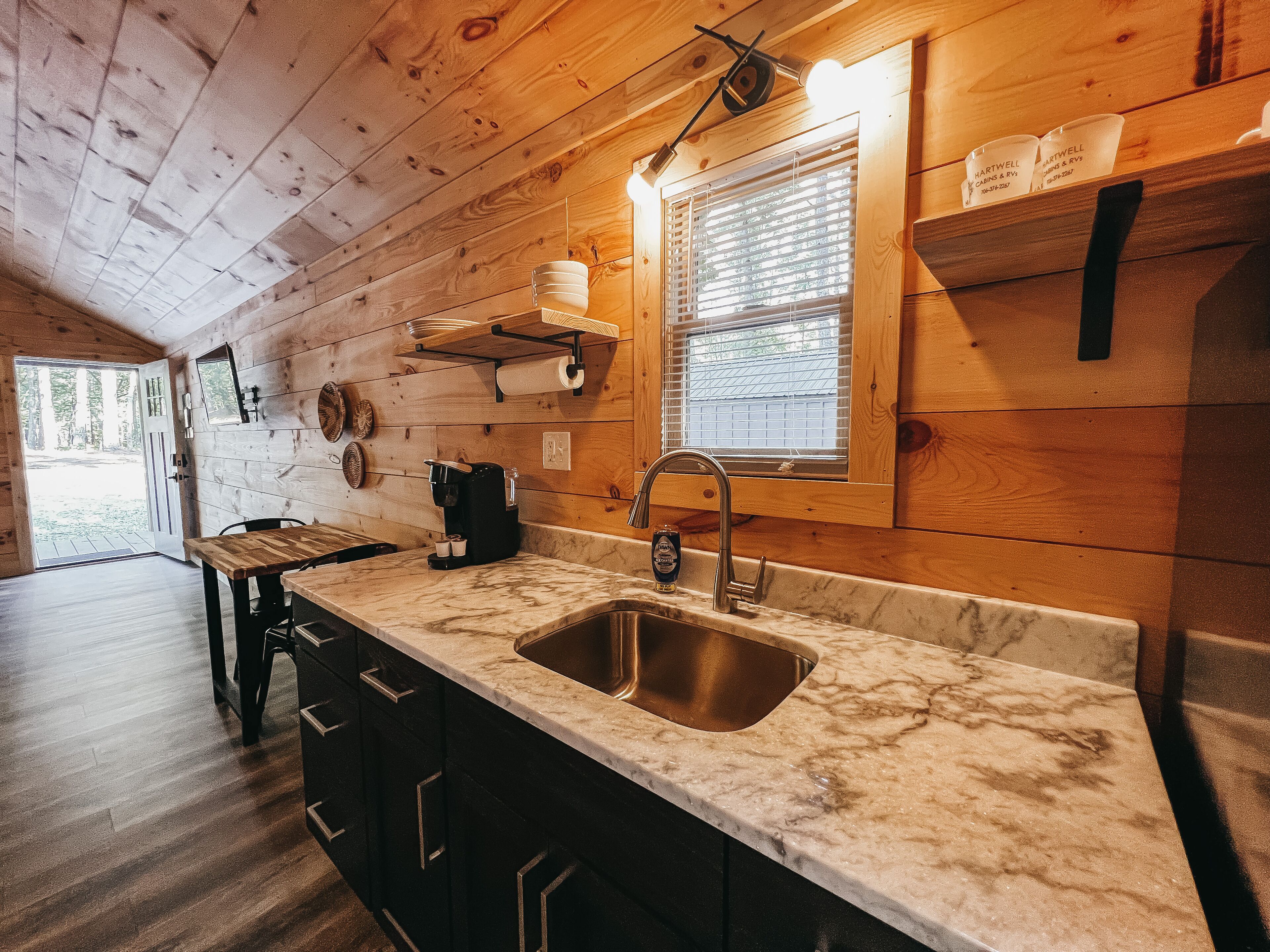 Cabin #1 Studio Style The tranquility of the woodlands is where you'll find Hartwell Cabins and RVs! Cabin #1 is a 450 square foot cabin, equipped with everything you'll need for a relaxing stay. We do not use keys. Each door is equipped with an electronic lock. The week of arrival you'll receive a check in email with a code specific to your stay. We do have cameras at the park. They're attached to the laundry facility and face the gravel driveway throughout the park. We do not have cameras inside or on the cabins you rent.WHAT WE SUPPLY: Linens, 4 towels, 6 washcloths, 2 hand towels, 2 kitchen towels, 2 dish cloths, 1 roll of paper towels, hand soap, dish detergent, 2 rolls of toilet tissue and 2 trash bags are provided in each property. Bed linens and bath towels are not changed during your stay. The startup set will not be replenished; we suggest you bring extra items for longer stays. White Oak Property Management accounts for all linens and towels provided in each unit. Any missing, damaged or stained beyond repair items will result in additional charges to the Guest. OCCUPANCY & AMENITIES:We will do everything we can to make sure your cabin is ready for your stay. It is our mission to provide you the cleanest cabin around so that you will become a guest for a lifetime. However, there are rare occasions that your cabin might not be fully presentable by 3pm. Please understand they are not hotel rooms and, therefore, from time to time, appliances, internet, TV, water, electricity, etc. will break down or malfunction. While we cannot refund any monies due to these issues that arise as they would in any property due to the life expectancy of any and all such appliances etc, we will respond as quickly as we can to make repairs and restore amenities. We are not responsible for weather conditions.Whether you're visiting for adventure or pleasure, our location is quite convenient. We are located 2 minutes outside of town and only a few miles from Lake Hartwell, Savannah River, parks, boat ramps, marinas, The Hartwell Dam, local eateries, grocery stores and so much more!24 min (18.7 mile) from Green Pond Landing8min (4.3 mile) from Gum Branch Mega RampTwo queen-size beds, a kitchenette with a full-size refrigerator, toaster, Keurig, and microwave, a tub/shower combination in the bathroom, and a covered front porch.We do not provide cable, however, we do have great internet and smart TVs to make streaming services easy!There are no stairs or ladders to navigate inside of this cabin.There is a self-pay washing facility here.There is plenty of room next to your cabin to park your boat or trailer. We've conveniently installed plugs on the outside of each cabin in the boat parking area to make charging batteries and such for the next adventure easy! Please call the office to request special monthly pricing.