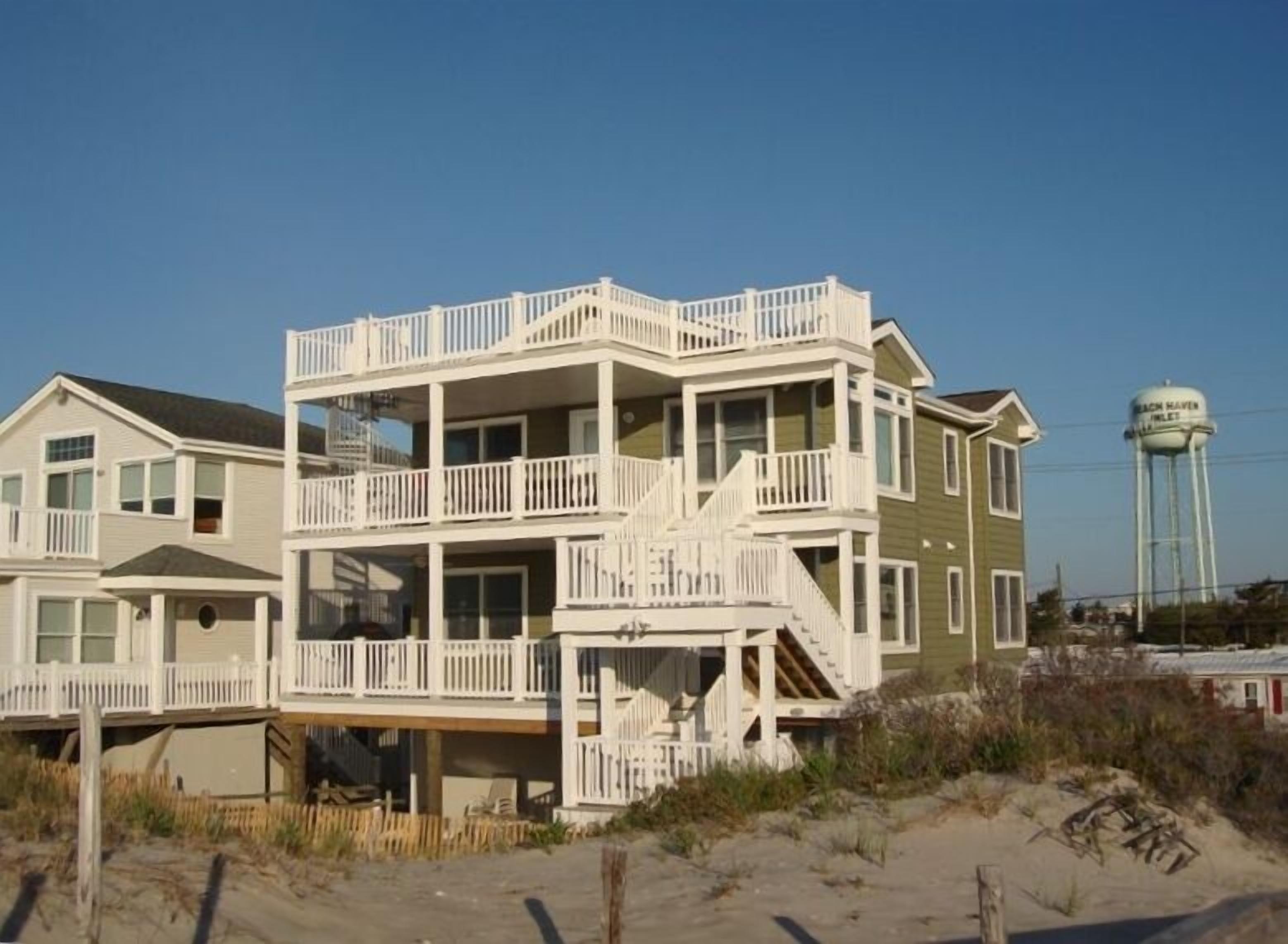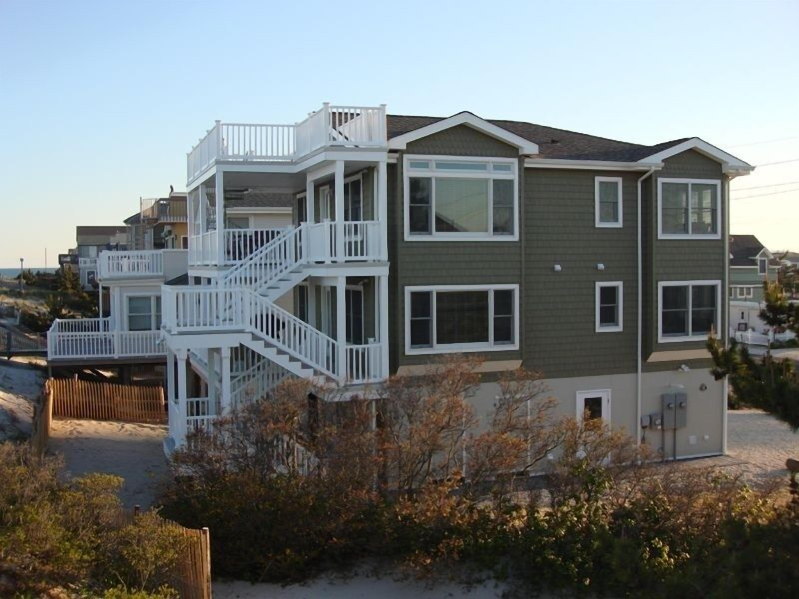 Oceanfront Duplex Oceanfront Duplex, 1st floor, located at 5101 Long Beach Blvd. (corner of Pershing Ave). This house is immaculate . The unit has 3 bedrooms, 1.5 baths and all the amenities of home plus an outdoor shower with dressing room and oceanfront decks with a table and chairs. The house has direct access to the beach and includes seasonal beach badges. It is located one block from the local deli, park, tennis court and bay for fishing. 2024 Rates for July and August are $4,400/week . Discounted rates available for weeks or weekends in May, June, September and October; please inquire for these special rates.Keywords: House