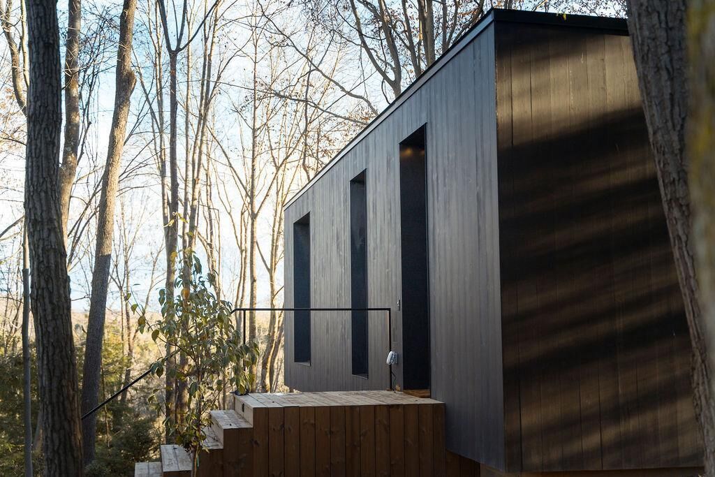 Idyll Reserve 4 | The Hillside - new, luxe, hot tub and fireplace In the heart of Hocking Hills, a collection of 5 modern, sustainable and luxurious vacation rental cabins has opened! This stunning private property features hiking trails, treetop views, caves, and beautiful cabins, each with its own distinct character and features.● Electric car chargers● Hot tubs● Dog friendly (The Hillside & The Cabin)● Fireplaces● Soaking tubs● Chefs’ kitchens● Netflix, HBO Max, Disney Plus● Sonos● Fire pits● Contact-free entry● Foot access to miles of groomed state hiking trails● Dedicated DSL line to each cabinIdyll Reserve features a contact-free check-in and stay, however we are available 24/7 by phone and SMS for any issues, questions, or service needs. Phone number and key code will be provided 48 hours prior to check-in. In advance of your stay, we are available at info(at)idyllreserve.com. The Hocking Hills region boasts some of the most unique and beautiful landscape in the Northeast. This stunning private property features walking trails, treetop views, cliffs and caves. The surrounding area includes state parks, national forests, hiking trails, caves, canoeing, adventure parks, zip-lining, rock climbing, horse trails, as well as year-round festivals, winery and brewery events. Idyll Reserve is minutes away from the area's main attractions.● Hocking Hills Visitor Center (4 min)● Old Man’s Cave (4 min)● Conkles Hollow (2 min)● Cedar Falls (7 min)● Rock House (10 min)● Ash Cave (12 min)● Cantwell Cliffs● Clear Creek Metro Park● Rock Bridge● Lake Logan State Park● Lake Hope State Park● Tar Hollow State Forest● Wayne National ForestA local guidebook will be emailed to you at reservation confirmation.The Hillside cabin has 30 yards of stone and wooden steps leading from the parking area to the cabin.The South and The Main Cabin (Idyll Reserve | 1 and 2) were built with guests with limited mobility in mind; a step-less ramp from parking to main entrance, a flat floor plan, and wide hallways and doors allow easier access. Please let us know directly if there are any other accommodations we can provide to make your stay more enjoyable.Warm and cozy, The Hillside Cabin is the perfect place to unpack your favorite book and open a bottle of wine. This cabin sleeps up to 4 and features a large great room with fully equipped kitchen, a large living and dining area and a gas fireplace. A sunken hot tub, fire table, gas grill and a cozy lounge area complete your outdoor paradise on your deck nestled into the treetops.A 30-yard stone staircase leads the way from the parking area up to this treetop cabin, if steps are a problem for you, we advise you to look into booking our similar cabins, The South (IR 1 - no steps, wheelchair accessible) or The North (IR 5 - about 10 steps). Extraordinarily well-behaved dogs are welcome in The Hillside Studio. ● 1 queen bedroom● 1 queen sleeper sofa in living room● 1 bathroomWe recommend driving your own vehicle as ride-sharing and public transit are limited in our area. This cabin offers parking space for 2 cars. Two EV chargers are located on the property and available for your use.A 4x4 car is recommended for the Hillside Cabin in winter (Idyll Reserve | 4 and 5) as it is at the end of a long drive which may be slippery in muddy or snowy conditions. If desired, 2-wheel drive cars can be parked near the upper cabins and the drive walked. Cell coverage in the Hocking Hills region can be spotty. We recommend downloading the directions before heading out. Propane for gas grill and firewood for fire pit provided - you may want to bring a fire starter log or two. There is a pack-n-play with bedding, a high chair, and children's dishes and utensils stored in each cabin. Well-behaved dogs are welcome at The Cabin and The Hillside Studio (Idyll Reserve | 3 and 4).