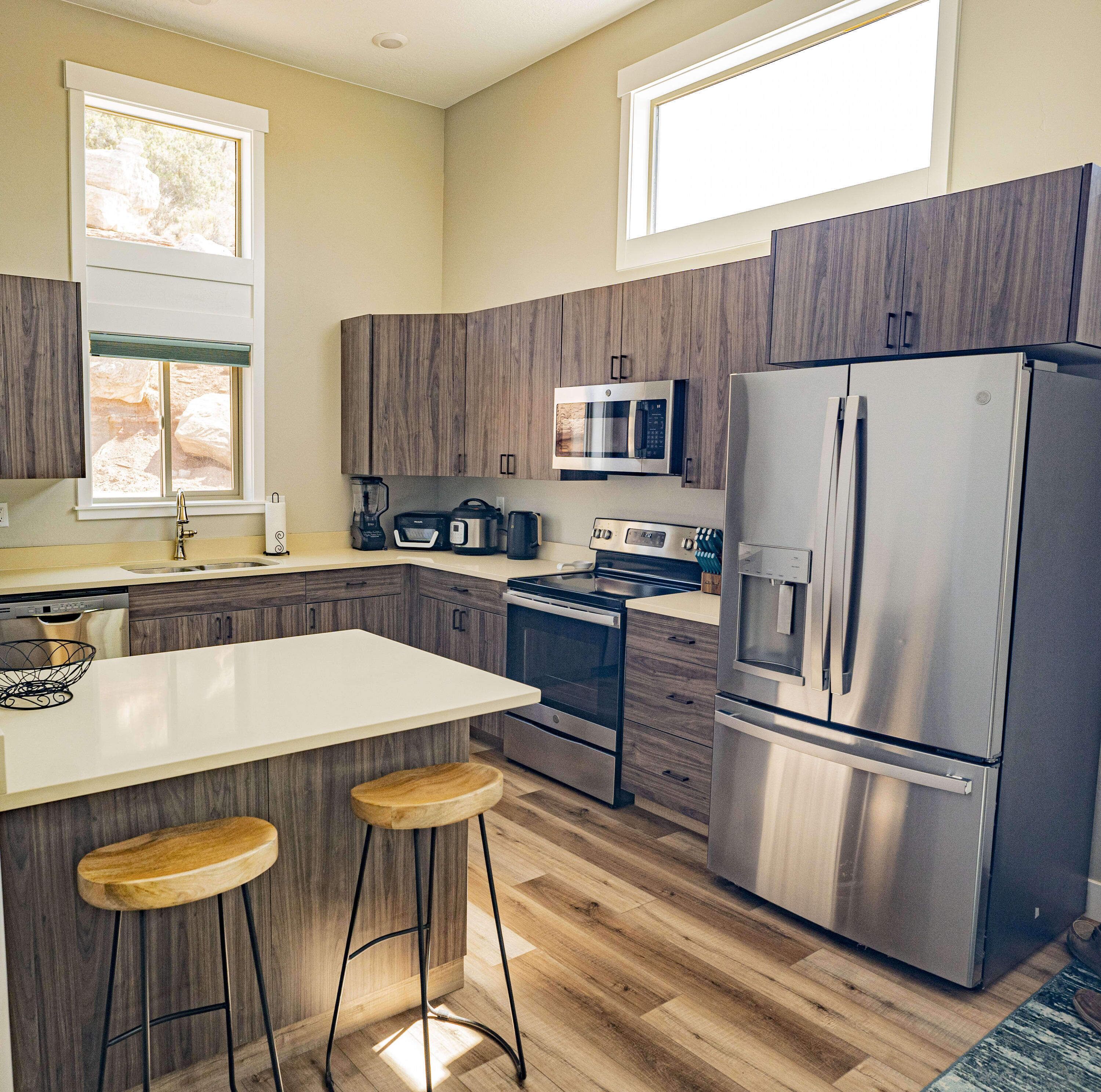 Nestled in the Cliffs Summary:Nestled in the Cliffs is a very cozy and secluded property located in Fredonia, Arizona which is just outside of Kanab about 5 miles. This house is a 2 bedroom/ 2 bath with a kitchen that is well stocked with small appliances. Hosts love families and have even provided a toddler hiking backpack for guests to use!! Each bedroom includes a loft! Enjoy using the BBQ out back during your stay!The Space:We offer a free concierge with some great recommendations:) Kanab is situated in the "Grand Circle" area, centrally located among Vermilion Cliffs National Monument, Bryce Canyon National Park, the Grand Canyon (North Rim), Zion National Park, Pipe Spring National Monument, Coral Pink Sand Dunes, Kodachrome Basin, Lake Powell, the Wave, Horseshoe Bend and so much more.Both bedrooms have 1 king bed and one queen bed! The queen beds are located in the lofts above the king beds. Full kitchen, dining area and living room!Guest Access:Guests will receive check in code prior to reservationThe Neighborhood:This home is located 5 minutes from the town of Kanab. Owners of the home live next door so please be courteous. Be sure to contact the property managers if any assistance is needed.Getting Around:Hwy 89 is less than a mile away providing access to our world-renowned national parks and recreational areas surrounding Kanab.Page, AZ airport is 1 hour away; St. George, UT airport is 1.5 hours away; Las Vegas airport is 3 hours away.Other Things to Note:Kanab is known as the "Hub of the Parks', and is the gateway to three national parks, Zion (30 Miles), Bryce Canyon (70 miles) and the Grand Canyon North Rim (70 miles). Visit the Grand Staircase - Escalante Monument, Lake Powell/Glen Canyon Recreation Area, Coral Pink Sand Dunes, The 'Wave'/Paria Wilderness, Pipe Springs National Monument, Kodachrome State Park, Cedar Breaks and Cedar Mountain. Also tour Best Friends Animal Sanctuary, or hike in the red rock country nearby through the many trails such as Squaw, Bunting, and K-Hill trails. Equestrian and biking trails are also available. Relax with a dream vacation and re-live life in the west where dozens of western movies were made, Kanab otherwise knows as 'little Hollywood' is home to the Western Legends Roundup, every August and features vendors, great food, two live stages and the National Cowboy Poetry Rodeo. This event honors the western movie industry and highlights the 'High Noon' western parade, and much, much more. Please come, bring the family, a few great friends, have wonderful adventures, build some lasting memories and let our home be yours.