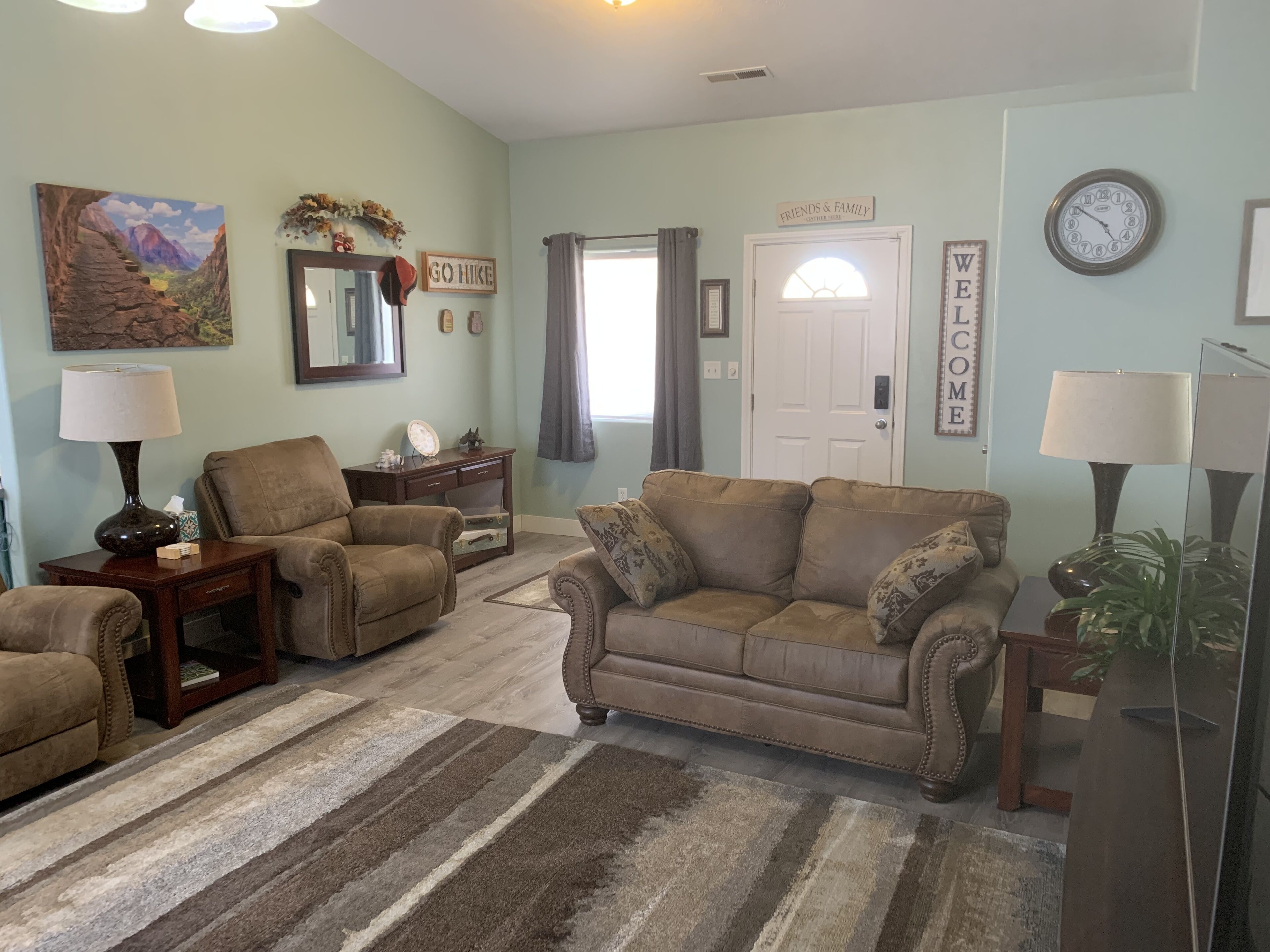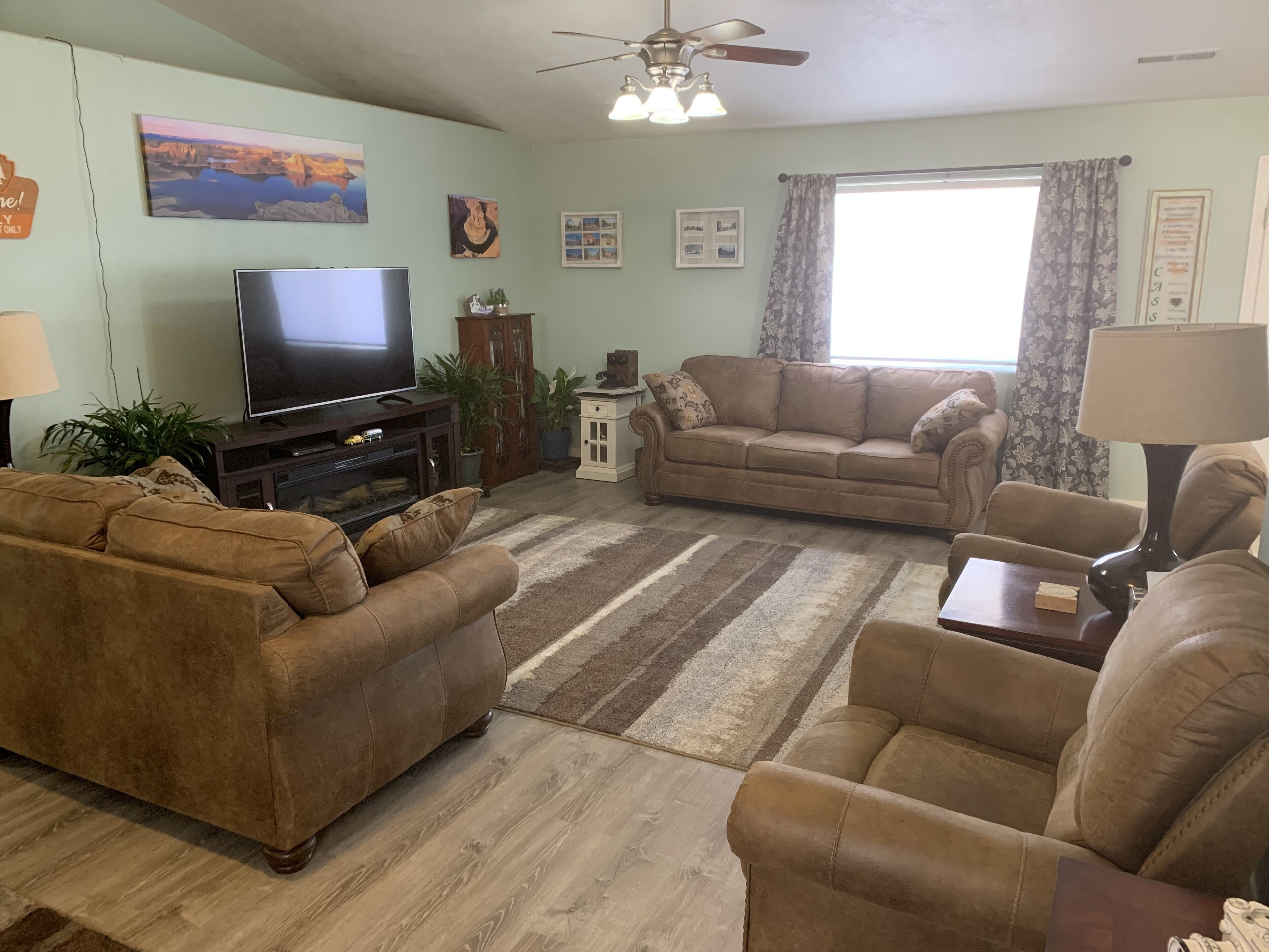 Large home, close to National parks, hiking & sightseeing. sleeps up to 10. Great home base as you travel Southern Utah/Northern AZ or a hidden getaway to relax and unwind. Quiet neighborhood, large home, comfortable beds, plenty of room for large families, sleeps up to 10 people. Five minutes from Kanab. Large front parking area. Backyard Oasis with kids play area, outdoor kitchen, 12 x 16 Pergo...