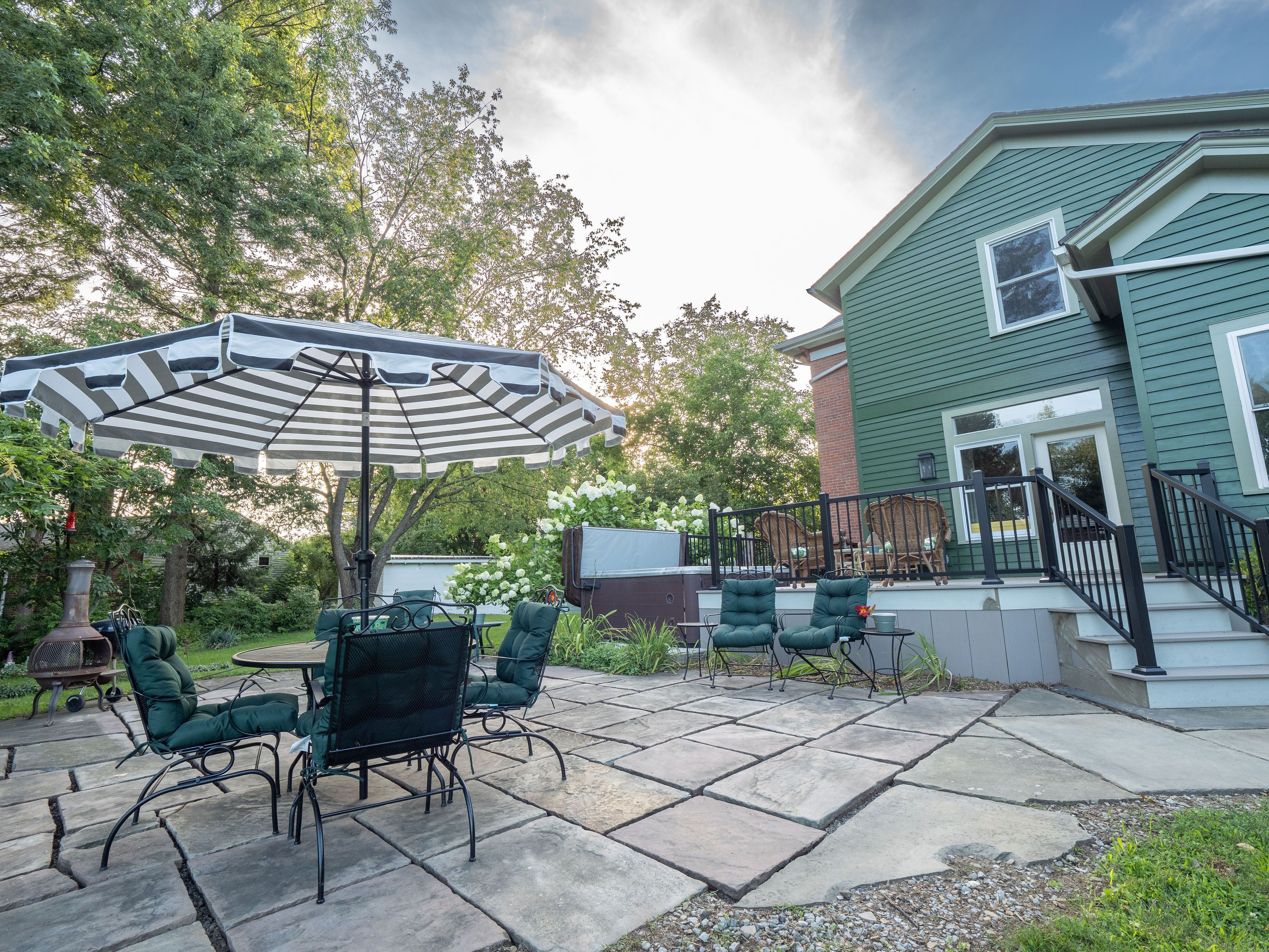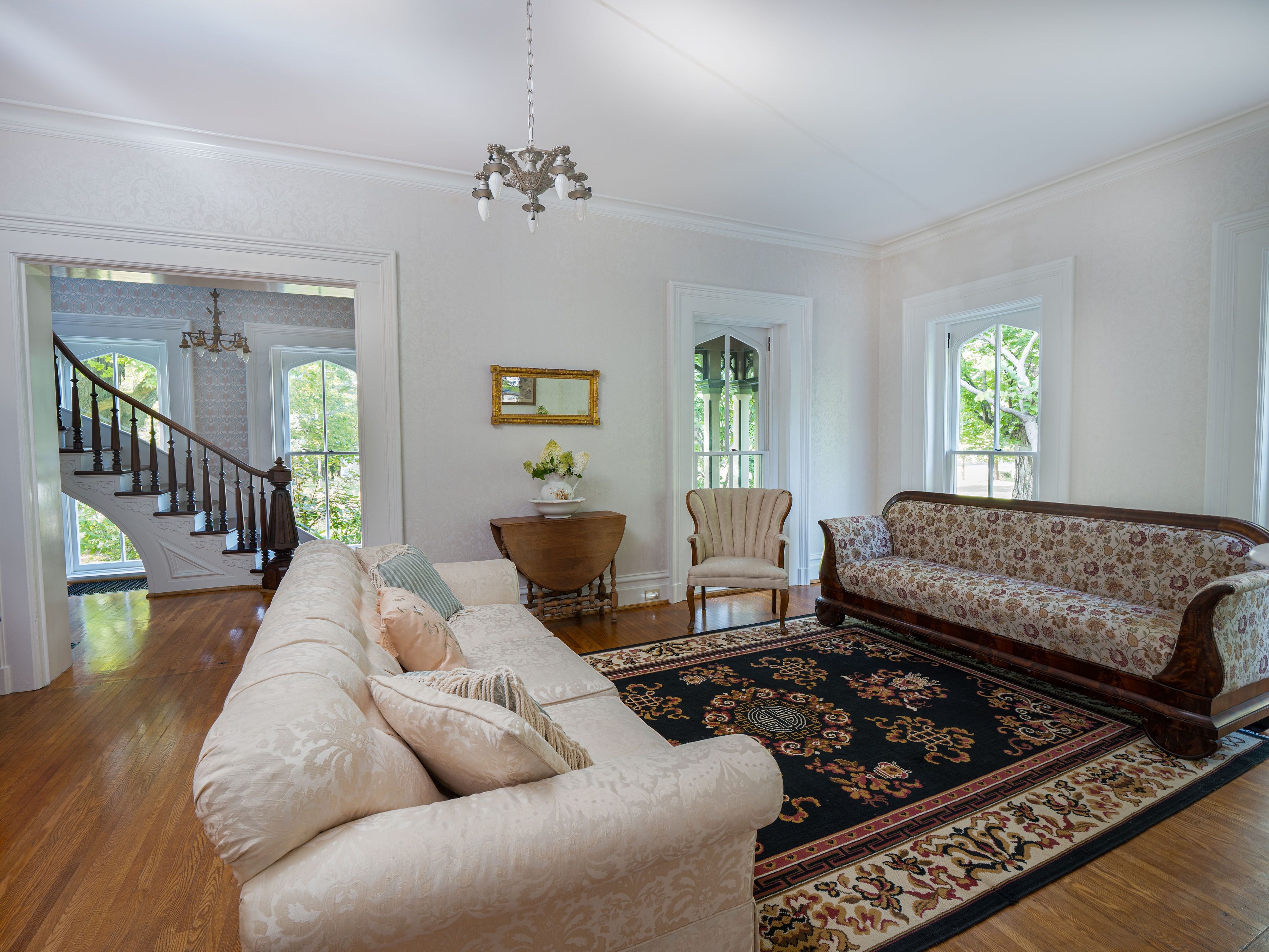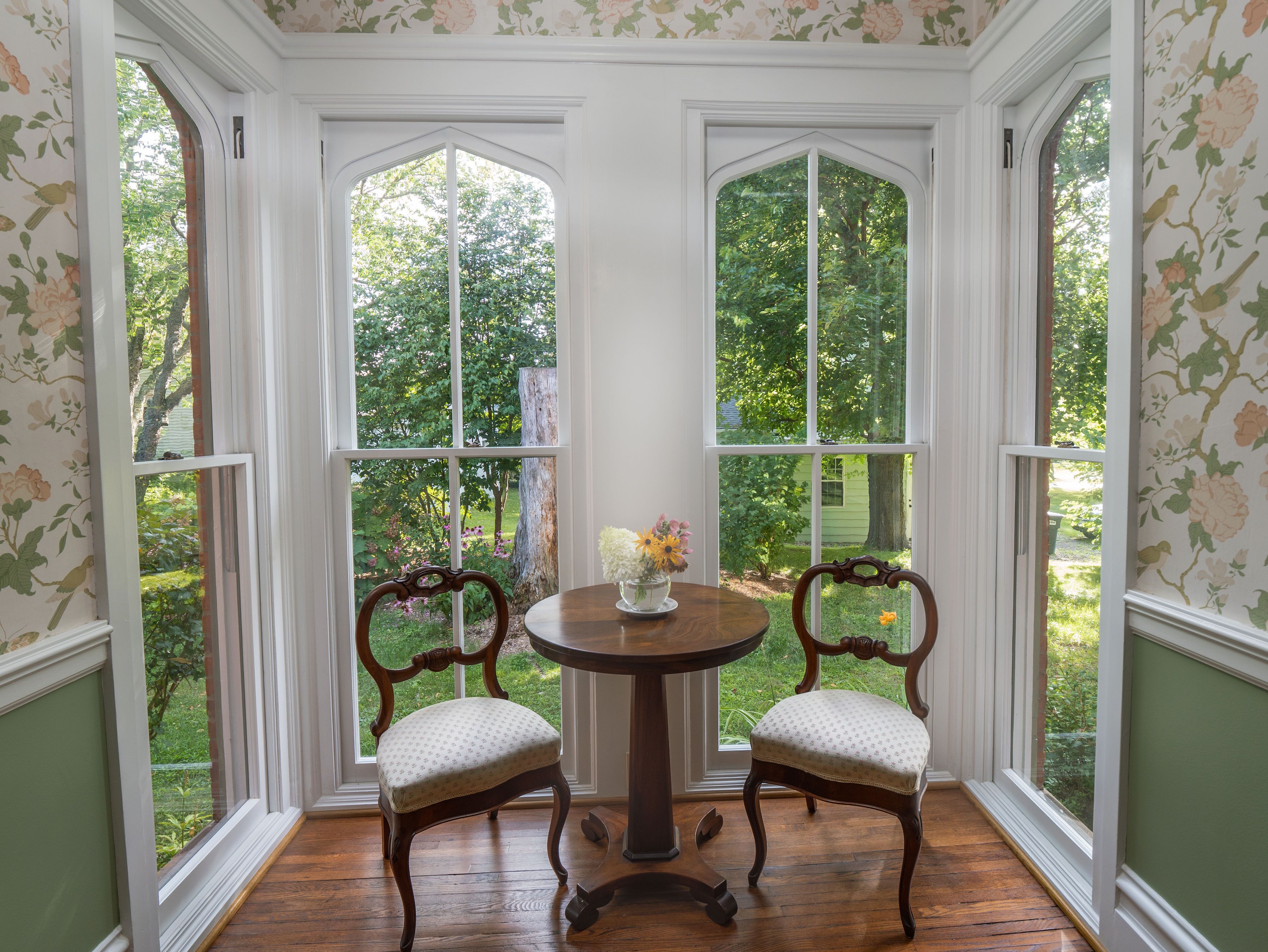 The Daisy Farm- A Victorian Manor on 79 acres w/ vineyards, gardens & hot tub Chautauqua/SUNY Fredonia/ Lily Dale/Lake Erie/Large Groups/Wine & Antique Trail Follow us and check for more pics on Instagram and Facebook @thedaisyfarm716Host family & school reunions/bridal & baby showers/weddings/photoshoots/clubs/bachelorette & bachelor parties/graduation/birthday/holidays/wine weekends/outdoorsmen & so much more!Welcome! We are a charming 1875 Victorian Estate which has been lovingly restored to its original grandeur! The Daisy Farm is set on 79 luscious acres which include an on site antique store in a fully renovated barn, lavish gardens & endless vineyards to walk, three porches to enjoy & a hot tub to soak with your family & friends. We are located in the heart of Chautauqua wine country & only 2.7 miles from SUNY Fredonia & Lake Erie, 9 miles to Lily Dale & 40 minutes to Highmark Stadium (Go Bills!) & Buffalo.INTERIOR FEATURES~This home has been lovingly restored to include fine details of a bygone era while mixing old fashioned craftsmanship with modern convenience and a cozy atmosphere. You’ll have everything you need to cook large meals in our state of the art kitchen, brand new mattresses, lines and bedding in all five bedrooms, luxury amenities for our 2.5 bathrooms including fresh white towels, soaps and body wash, & full access to the new washer and dryer to launder your personal items. There is so much you do to need to pack or worry about in order to stay comfortably with us! You will have full access to the entire property (minus the attic & basement) which gives you a total of 17 spaces to make yourselves at home! OUTDOORS~Mosey over to The Barn next door to do some antiquing (10% off your bill when you book a stay!), stroll the magnificent well kept gardens, sit on our three separate porches, two patios & seating areas through the yard! Located on the back porch with sweeping views, take a soak in our 8-10 person hot tub all year round! We provide you fixins for s’mores to enjoy with your family & friends around the large gas fire pit and enjoy a meal cooked on your choice of a charcoal or propane grill. Take an exploration to the back of the property to find creeks, wildlife & acres of vineyards. From this vantage point you can appreciate the wind turbines operating in the hills just beyond the vineyards which creates an extremely relaxing feeling. We have picnic tables throughout the property as well as picnic baskets for you to pack up a meal and a bottle of wine & enjoy the breathtaking views. If the season is right, you can go apple, pear, dogwood berry, pumpkin or chestnut picking! We even have a firefly catching net to create memories with your little ones for a lifetime. In the winter, bring your snowshoes or ski-doo and hit the trails!Kitchen~In the kitchen, you’ll have the best time making large meals with your group with brand new appliances including the massive stovetop, stainless fridge, dishwasher, microwave and cooking utensils galore. We provide your morning coffee with a variety of creamers and a large drawer of teas. There is an expansive pantry with everything you need to make cookies, a crockpot, magic bullet, blender, cookbooks, aprons, pots and pans, muffin tins… the list goes on! Enjoy a girl’s weekend in this space with a fun morning mimosa, have an alumni weekend get together with a wine tasting, or brew up some hot chocolate on a chilly night. You’ll love the rustic vibe with original 1875 floors, the gorgeous eye catching floral wallpaper and the show stopping large center island and chandelier that were both made by our on-site craftsman from wood that was sourced during the kitchen tare out. Spectacular! Dining Room~The formal Dining Room contains an 8-10 person dining room table with a large buffet next to it for all of your home cooked (or store bought) meals. If you have more than 10 guests, we are happy to set up extra tables and set with tablecloths so you can host all of your friends and family without worry. Original scalloped floor to ceiling windows allow for glistening sunlight to radiate off of the show stopping Italian chandelier above the long table. Enjoy another beautiful floral wallpaper as well as a fireplace that you can see through to the next room. This is yet another amazing space to create phenomenal memories.Living Room~The formal living room is a great space to unwind with your group after a big meal to play some board games, enjoy more local wine, have some dessert or play some songs on the gorgeous grand piano. This space was made for entertaining and enjoyment. Floor to ceiling windows light this space up and makes the original 1875 tiling by the fireplace glow!The Den~This marvel of a room is the perfect place to gather to watch a movie or game, grab a book from the library, bird watch with binoculars or pick out some games to play from the game cupboard or the “kids corner”- a hidden panel in the wall with goodies to entertain your little ones. This “masculine” space dons wooden walls with inlays and a brick fireplace that shows through to the living room. The crown gem of this space is the completely restored wet bar with functioning sink, glassware, shakers, bar tools and gadgets galore! Enjoy an after dinner drink and impress your group by showing off your mixology skills, imbibe in the local wine from one of many wineries that surround you, or crack a brew. Complete relaxation is the name of the game!The Office~Just off of the living room sits an office area with a desk & high speed internet access (which is throughout the house), just incase you have to get some work done. Another beautiful two sided fireplace sits in this space as well as the original blueprints to the house in massive frames, perfect for history and architect lovers. Fully restored hardwood floors run throughout the first floor giving this space as well as the others a warm, clean feel. This space can also be used as an 
