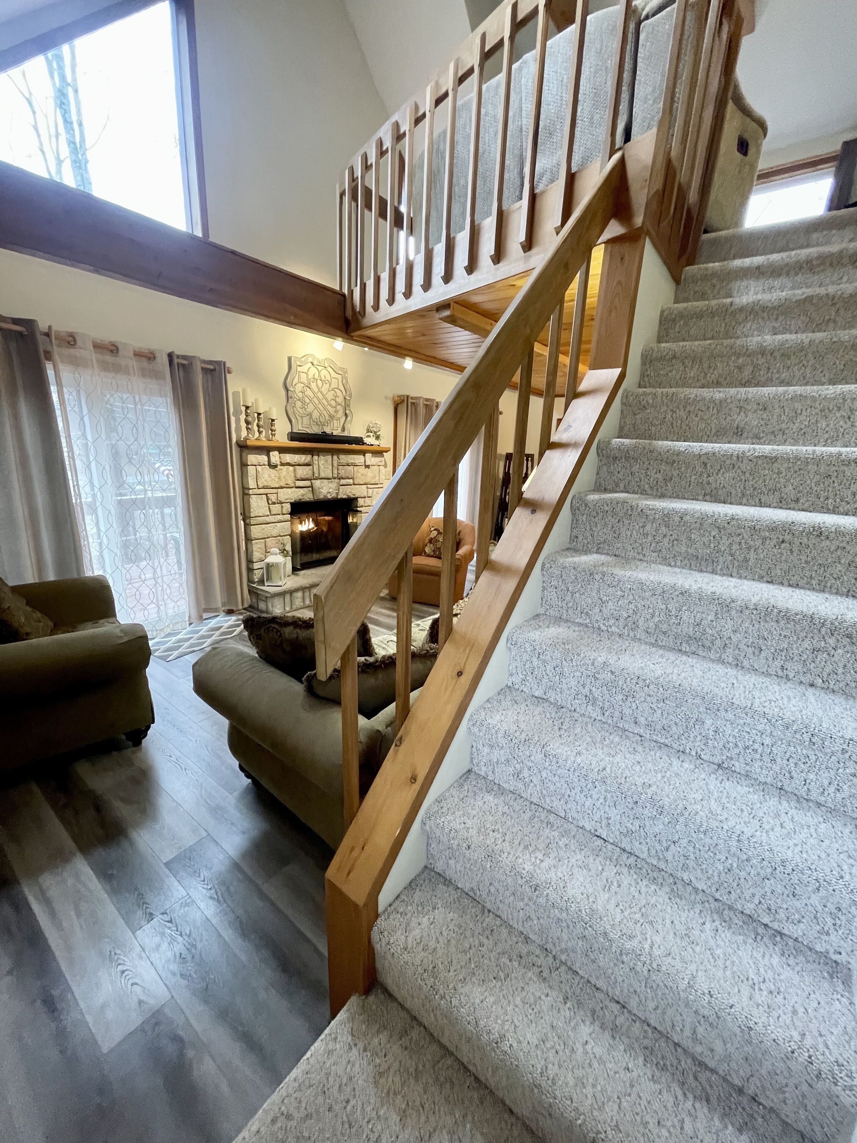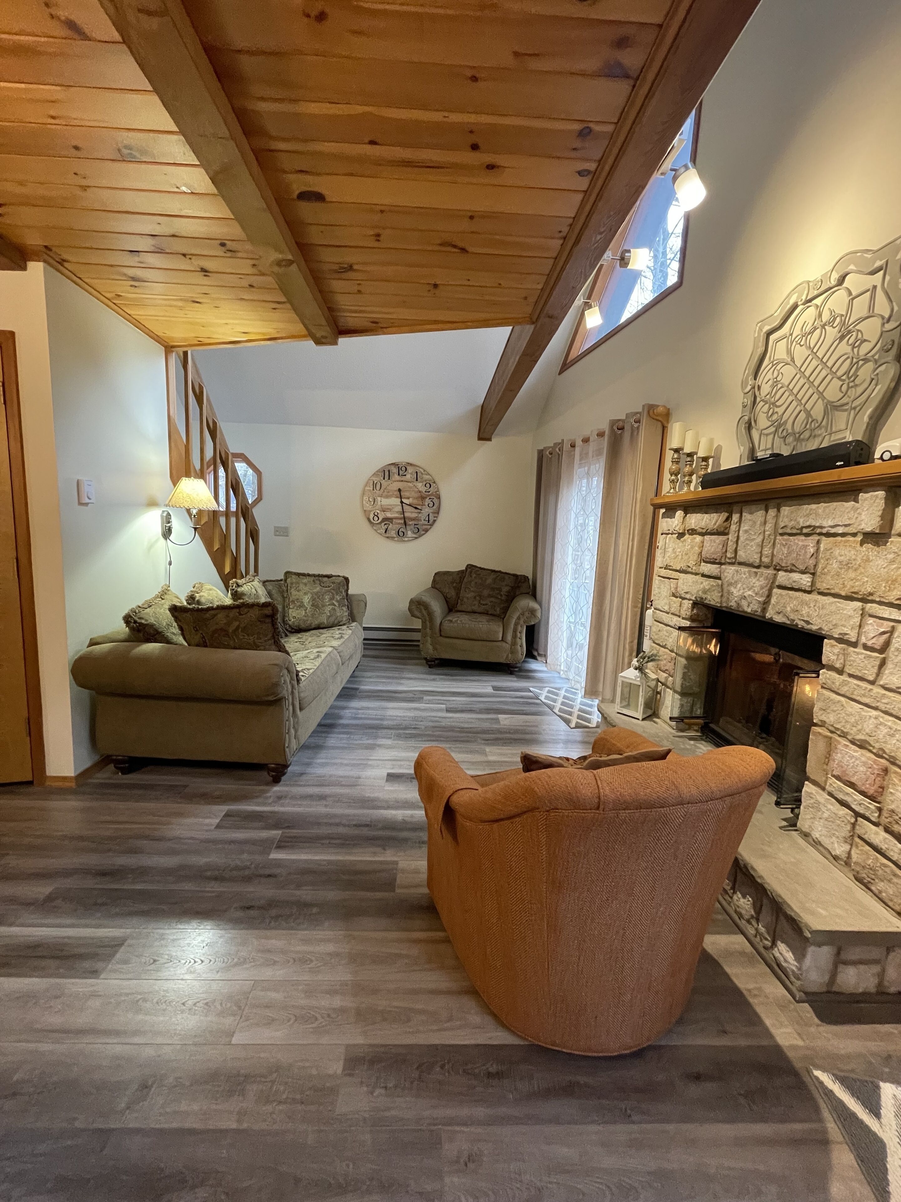 An Ultimate Pocono Lake retreat awaits, 3 Level home with 4 Bdr, & 3 Baths Come make priceless memories at The Green House. This Ultimate Pocono Lake retreat is a 3 Level home with 4 Bedrooms and 3 Bathrooms. Arrowhead Lakes is a gated community with 4 Beaches lake front, 3 Pools, Lodge, Gym, Billiard Room, Tennis courts and Basketball Courts. Arrowhead community has fun filled weekend events all year around, it is also a gated community with 24 hour security. As well as security cameras around the houseThis lovely 1,970 sq. ft. home has 4 Bedrooms and 3 Full bathroomsSleeping Accommodations *First Floor Bedroom HasTwo, Twin Beds.*Second Floor Bedroom On Main Floor Has A King Size Bed And A Queen Sofa Pullout In Living Room. *Third Floor Has Two Bedrooms, Each Room Has A Queen Bed. *The Loft Living Area Also Has A Pull Out Queen Sofa.*Every Floor Has It's Own Full Bathroom. Each Level Has There Own Living Room Area, 3 flat-screen TVs ( One in master bedroom, One in main entry level and Third in the loft ) Outdoor Fire Pit To Roast Marshmallows Or Make S'mores. It’s The Perfect Place ForA Family Or Gathering With Friends .--THE LOCATION AND AMENITIES --As a guest you have full access to the entire house, backyard and deck. Your wrist bands that must be purchased separately with Arrowhead Association prior to your arrival will give you access to events at the lodge as well as all amenities in Arrowhead.ARROWHEAD LAKE has 3 heated swimming pools, 4 beaches, a clubhouse, fitness room, game room with pool tables, tennis & basketball courts, beach volleyball court.Exact distance from this home- Lodge at Arrowhead Lake (2.0 miles), Island Pool & Tennis (1.7 miles), Chotaw Pool (0.3) Miles 1 minute from the houseMinisink Pool (0.8) 3 min from the house Beach #1 (1.8 miles), Beach #2 (1.0 mile), Beach #3 (2.6 miles),Beach #4 (1.0 miles) Community activities, boat & bike rentals, beaches, playgrounds, & pools.Fishing is allowed at Arrowhead Lakes. As a reminder, all anglers must possess a valid PA fishing license (digital copy is acceptable) and comply with all PA Fish & Boat Commission laws and regulations. Stop in at the Welcome Center to pick up a copy of the Fishing & Boating Summary Book! To purchase a fishing license and for more information about fishing regulations, visit fish and boat website https://www.fishandboat.com/LearningCenter/FAQs/Pages/FishingLicensesRegulations.aspxLearningCenter/FAQs/Pages/FishingLicensesRegulations.aspxHappy Fishing!KITCHEN: Fully equipped w/ essential appliances. Gas fireplace, with, 6-person dining table near kitchen and four more additional seating at the counter. Entry level also has six-person dining on 1st floor and additional four seats stools at the bar. OUTDOOR LIVING: Gas grill, fire pit, furnished deck in the front of the house & additional large outdoor seating on the side deck near gas grill.GENERAL: Free WiFi, air conditioning unit in two bedrooms on third floor, ceiling fans and fans in bedrooms, Smart Tv on first floor and Apple Box in main bedroom & in the loft living room. PARKING: Driveway ( 5 vehicles) Provided By Us; Linens, Towels, Shampoo, Basic Soaps,Starter Toilet Paper, Starter Paper Towels GasFireplace, Parking, Wireless Internet & Hair Dryer, - POLICIES --- No smoking, if evidence of smoking is found there is a $500 fine- No pets allowed- Must be at least 25 years old to book- Additional fees and taxes may apply- No parties/ large gatherings- Photo ID required upon check-in- NOTE: Amenity fees are mandatory and not included in the original booking fees. Fees must be paid to Lake Arrowhead at least 10 days prior to arrival or else late fees will apply. - NOTE: Arrowhead Lake pools are only open between Memorial Day and Labor Day. Important Information Regarding Fees at Arrowhead LakePlease be aware that there are mandatory fees required for entry into the gated community of Arrowhead Lake. Before your arrival, a $20 renter registration fee and form must be submitted. Additionally, each vehicle entering the community will need to pay for a gate pass and a temporary membership fee to access all amenities at Arrowhead Lake.Here is a breakdown of the fees at Arrowhead Lake, and I am available to answer any questions you may have:- Gate Card Fee: $20 per vehicle- Registration Fee: $20- Wristbands for Amenities: $8.50 per person, per day for guests over the age of 6 (children 5 and under are free) $8.50 for wristbands from May 21- September 22$2.00 for wristbands from Sept 23- May 20 $20.00 registration fee*Wristbands grant access to amenities such as swimming pools, beaches, tennis courts, the Lodge with a gym, library, and billiards room. Additionally, guests can rent bicycles, boats, and paddle boards. Fishing is allowed with a license, which can be easily obtained. Fishing License- LearningCenter/FAQs/Pages/FishingLicensesRegulations.aspx)Guests may enter the community on the day of arrival to use amenities, but access to the house will be available at 4pm. Wristbands must be worn throughout your stay. After booking through VRBO, I will reach out via text, phone or email to arrange temporary membership fees for your stay at Arrowhead Lake.** NOTE: Bookings made within 5 days prior to arrival are subject to late registration fees by Arrowhead due to time restraints. LAST MINUTE RENTALS Arrowhead community will not allow any last minute rentals without prior registration.** All renters must be registered at least THREE DAYS in advance. While I am the homeowner, it is important to adhere to the rules set forth by the community in which my home is located.-NOTE: prior to check out, you will be responsible for; stripping the linens of the beds and place in the laundry room. All garbage, personal property, etc. must be removed from the premise, both indoors and outdoors. *Grill, must be cleaned.House RulesCheck in after: 4:00 PM Check out before: 10:00 AM* Children allowed* No pets * No parties/events* No smoking* Max guests: 12 * Minimum