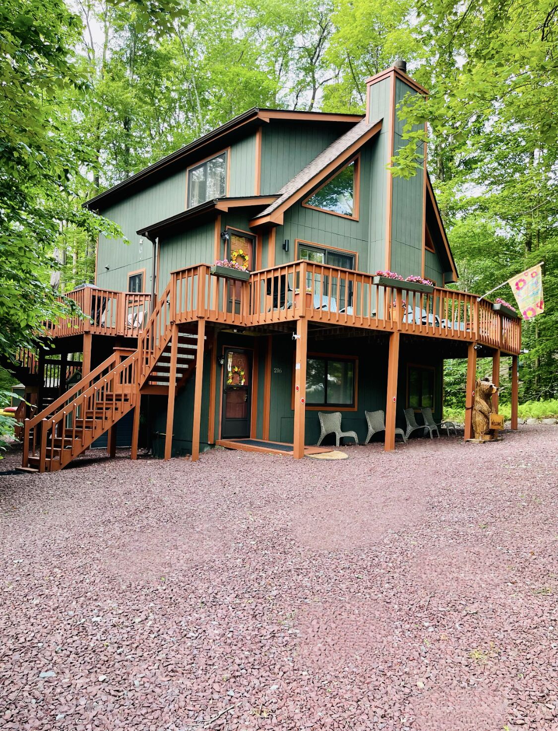 An Ultimate Pocono Lake retreat awaits, 3 Level home with 4 Bdr, & 3 Baths Come make priceless memories at The Green House. This Ultimate Pocono Lake retreat is a 3 Level home with 4 Bedrooms and 3 Bathrooms. Arrowhead Lakes is a gated community with 4 Beaches lake front, 3 Pools, Lodge, Gym, Billiard Room, Tennis courts and Basketball Courts. Arrowhead community has fun filled weekend events al...