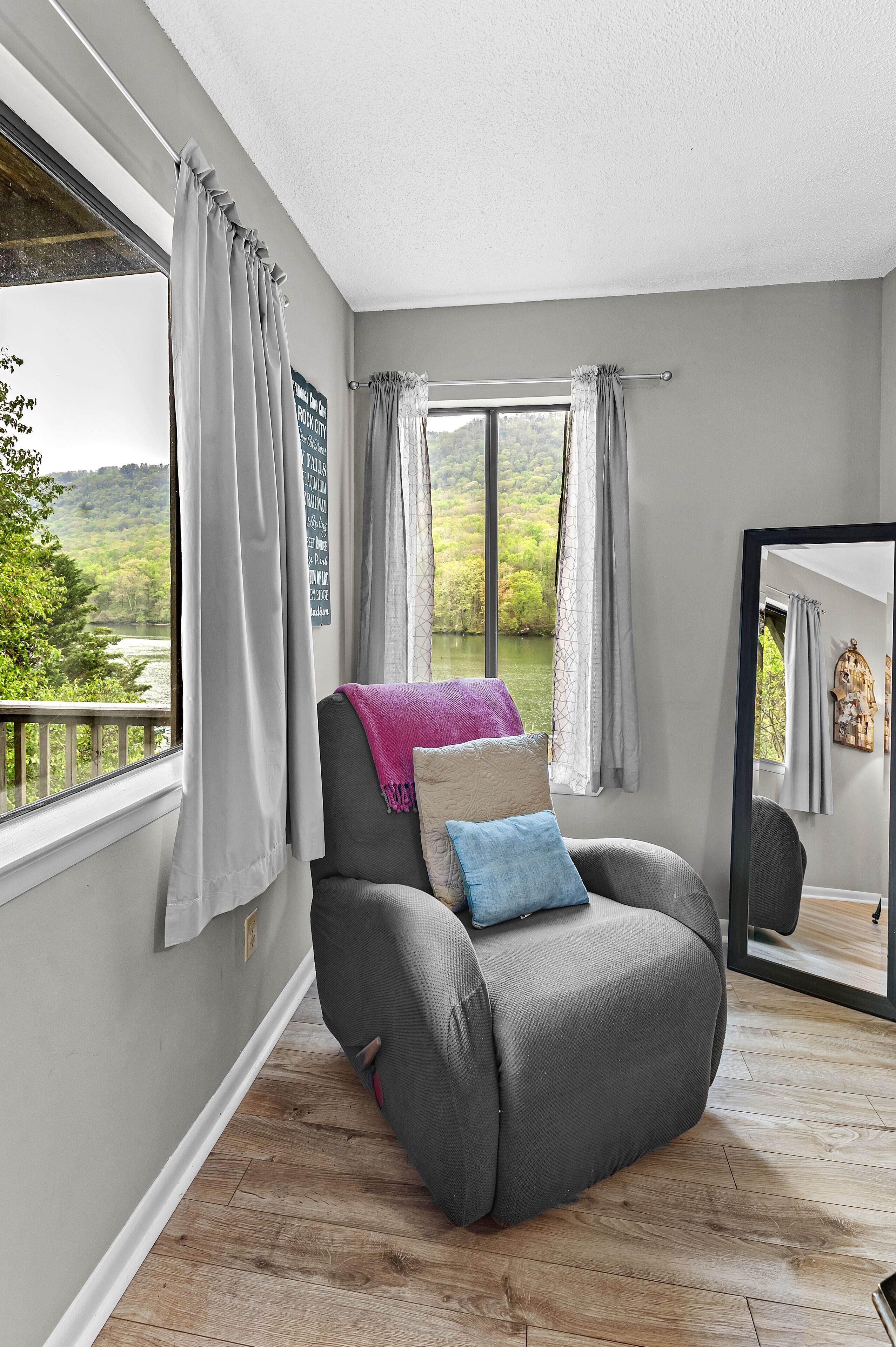 Unit I - River/Mountain View Condo! Water/Dock Access, Free Kayaks/Paddle Boards Unit EYE - Located just 10 Minutes from Downtown Chattanooga! We operate on eastern standard time even though our condo is located in central. We are just over the time zone line. After a full day of sightseeing, come relax by the river, watch your kids play on our river front playground area from your front porch or kayak over to the rope swing across the river and unwind. There is something to do for everyone. 10-Gigabit WiFi-Speed Smart TVs with Roku and Netflix are available while you’re on vacation. Our friends and neighbors next door, River Gorge Excursions, rent pontoon boats as low as $200.00 guided and unguided! Contact owner Jesse Gaylor (423) 987-1711 for rates and availability.Conveniently located only 10 minutes from downtown, this condo is two bedrooms and one bathroom. It has views of Elder Mountain, Signal Mountain and the beautiful Tennessee River Gorge. You will get the feeling of a relaxing vacation on the countryside, while still being close to everything you have planned on your itinerary. It is just minutes away from restaurants, grocery stores, shops, hiking trails and all of Chattanooga’s popular attractions. This newly updated condo is the perfect vacation destination for couples, families, friends and business travelers coming to visit the wonderful city of Chattanooga. Onsite you will have access to docks, a covered grill and dining area, fire pits, great fishing, hiking, and immediate water access for a great fun filled getaway and family vacation! We have kayaks and paddle boards to use May-October. We will have a kayak attendant on site to assist you with your boats. Please do not bring a motorized boat, we do not have enough parking. .NOTE: We operate on eastern standard time even though our condo is located in central. We are just over the time zone line. Please visit our other riverfront listings at this same location! 588721, 694818, 684768, 691857,737536