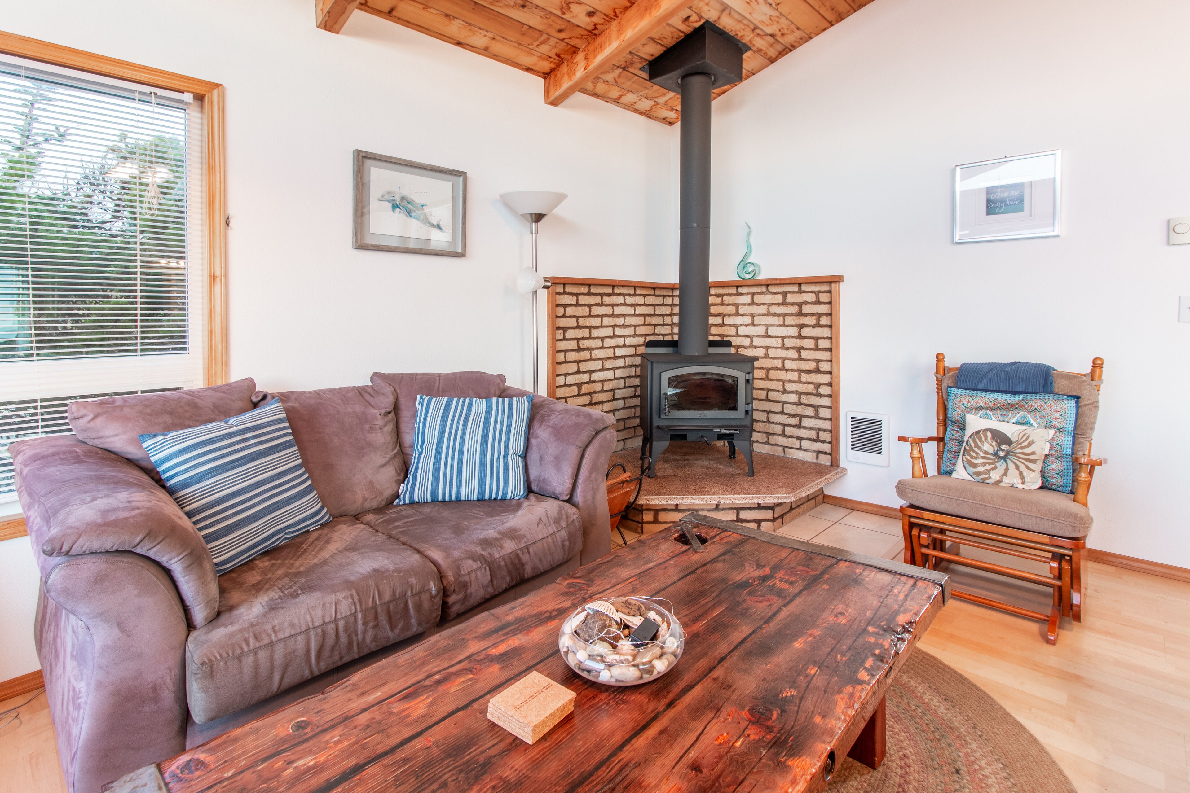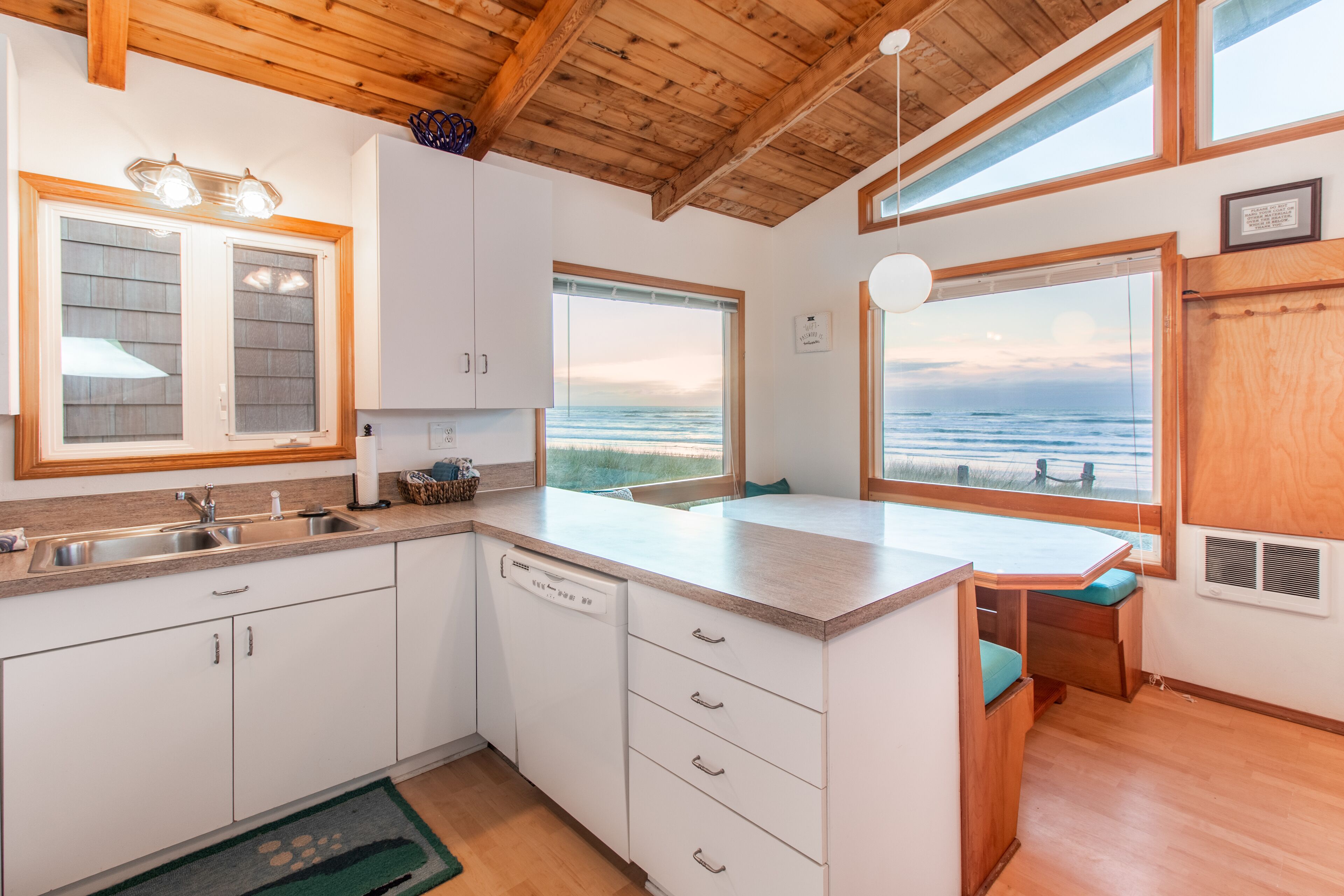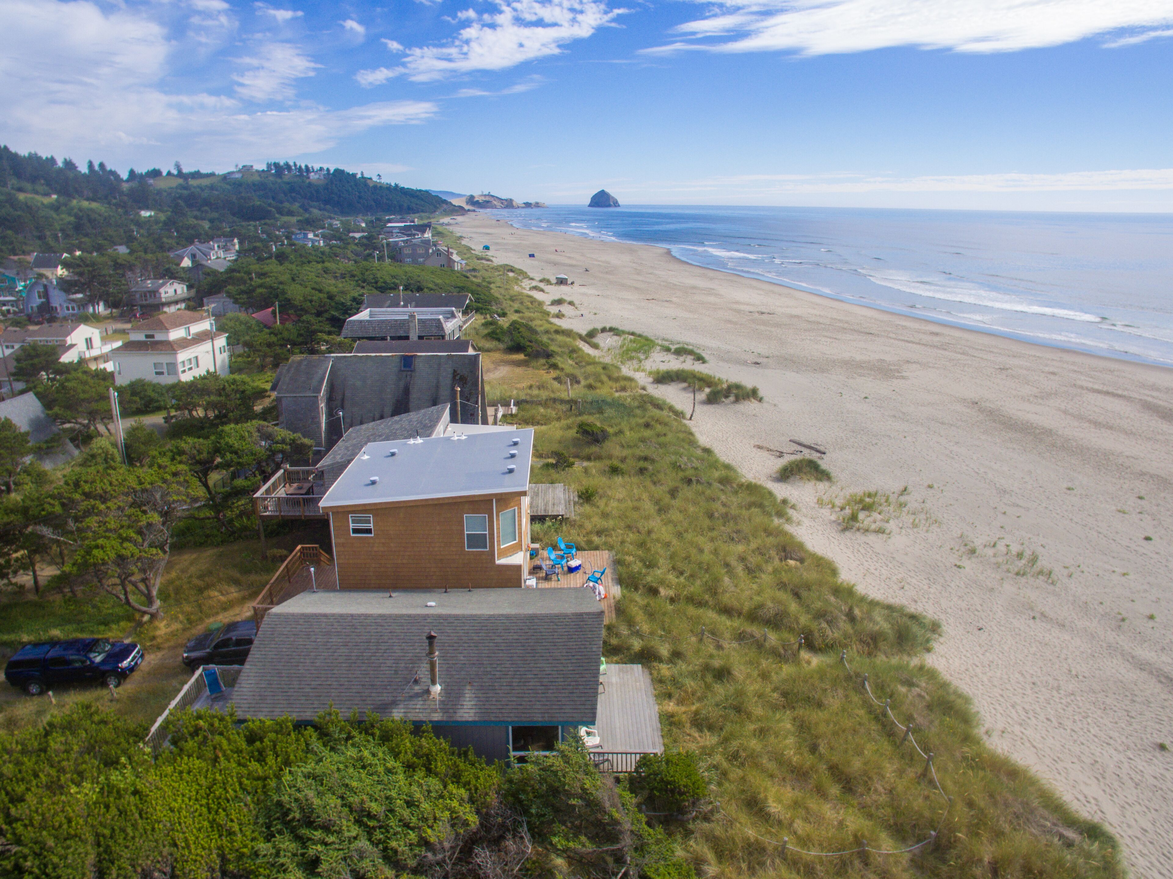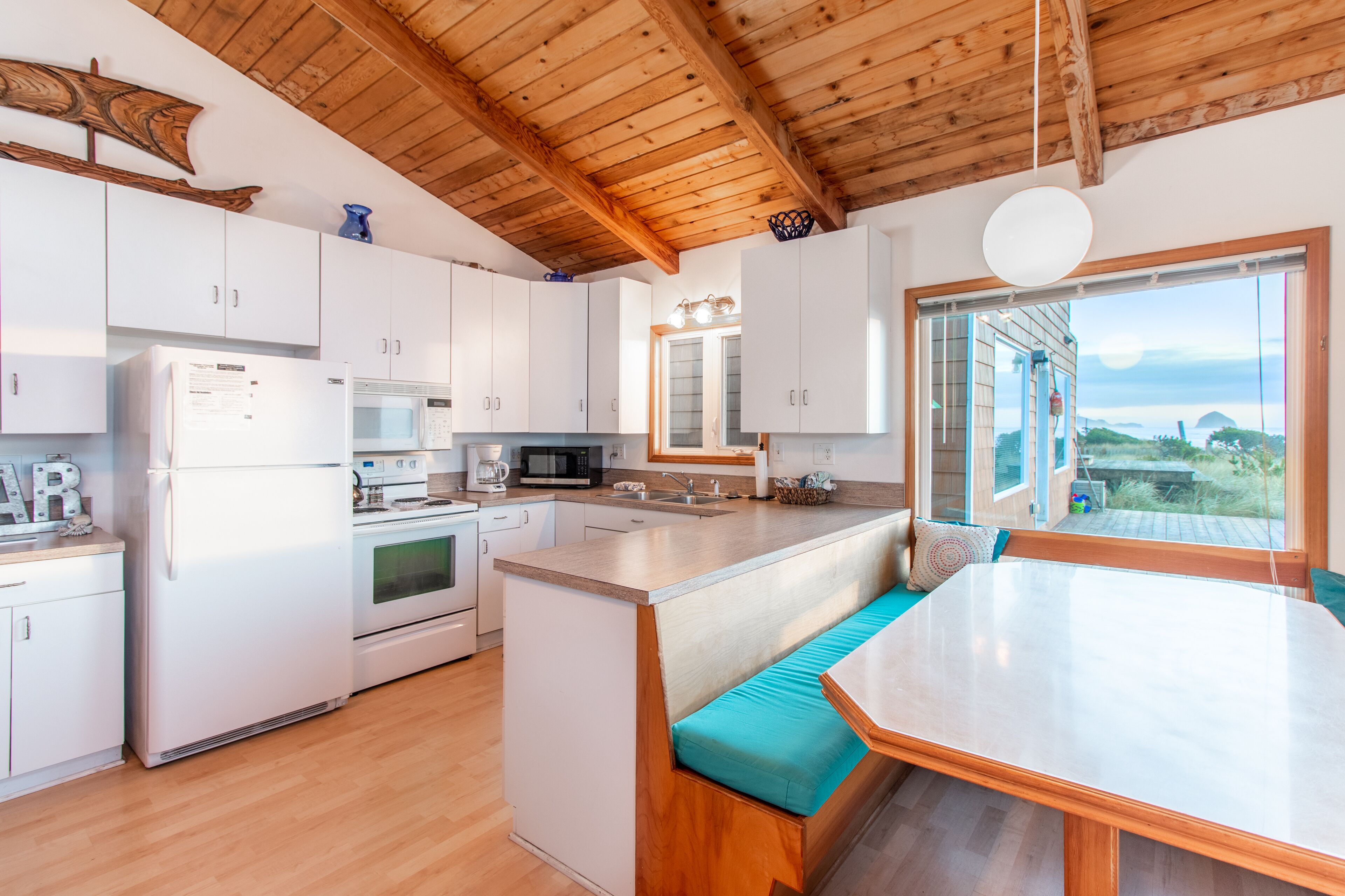 Ocean Annie #128 - oceanfront cabin, great views and direct beach access in Tierra Del Mar With beachfront access and views, Ocean Annie is hard to improve upon. But the new owners have made some great updates to the home to make your stay even more memorable. Ocean Annie has been updated throughout the interior with new art and carpet and has been stocked with new games, puzzles and a DVD library of ocean- and beach-themed DVDs. New, colorful cushions on the wrap around dining benches bring additional color to the home and more comfort for sharing a meal with friends and family or putting together a puzzle while watching the waves roll in. It's also been updated with a new wood stove for cozy evenings at the Oregon coast.Features:Oceanfront deckGas BBQExtended Cable TV with HBOlaundry roomWIFIMax cars 2 (Contact us if additional parking space is needed)Pet friendlyLayout:2nd level entry. Living room, dining area and kitchen. Back & front deck space. Master bedroom with queen bed and full bath. 2nd bedroom has queen bed 3rd bedroom has double bed. Full hall bath. Laundry area downstairs.Neighborhood:The village of Tierra Del Mar is a small community of traditional beach homes 3 miles north of Pacific City along the Three Capes Scenic Route. There are several quiet lanes lined with both historic cabins and larger beach homes that all lead to direct beach access. All homes in Tierra Del Mar are a quick, easy walk to the beach. The beach here is quiet and long—beachcombers can walk for hours down this lengthy stretch that is relatively undiscovered. It is a good spot for beachcombers who often find agates and Japanese glass floats. Sandlake Dunes recreation area is 4 miles to the north.Tillamook STVR#851-10-0281Access:Kiwanda Coastal Properties is a local, professional Oregon Coast vacation rental management company that offers over 50 homes in the Pacific City area. We have been offering beach rental homes for more than 30 years. Reliable management means responsive service, insider guides to the area and a better vacation experience. Our nearby office is staffed 7 days a week ensuring that homes and guests are taken care of if any needs arise. We look forward to accommodating your next beach trip. Please contact us anytime for more information. Most homes require guests be at least 24 years old. This home is on a small slow street. Please respect speed limits.This home is pet friendly for one or two dogs. Please let us know if you will be bringing a pet so that we can add the non-refundable pet fee of $10/night. Only well-behaved dogs are allowed. Pets are not allowed on the furniture, or left in the house unattended.Occupancy rules are strictly enforced and apply to the entire property during the stay. Additional day-use guests may be allowed with management pre-approval. After your booking is confirmed, you will be sent the full rental contract and terms.The safety of our staff, guests and local community is our top priority. This home is professionally managed and cleaned to strict standards in line with CDC guidelines, including supervised housekeeping and post-clean sanitation.Cancellation policy: 1/2 the total cost of the booking is subject to forfeiture if reservation is canceled or changed within 30 days of arrival. 100% of rental rate is charged if cancelled (or no-show) within 7 days of arrival. If the house is fully rebooked by another renter, cancellation charges (less $35) will be refunded. Reservation cancellation fee is $35. (If you book with a 3rd party, different charges may apply).