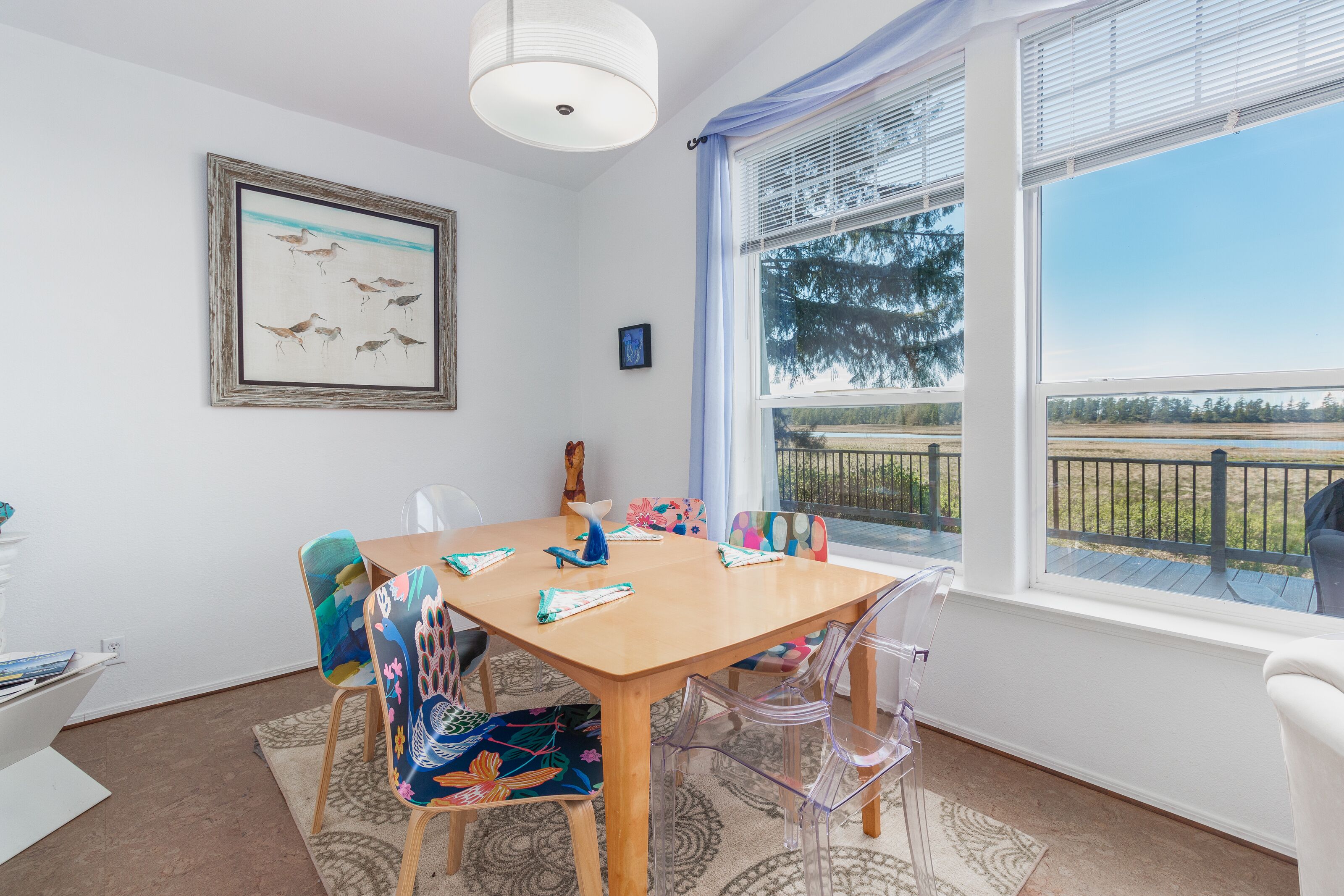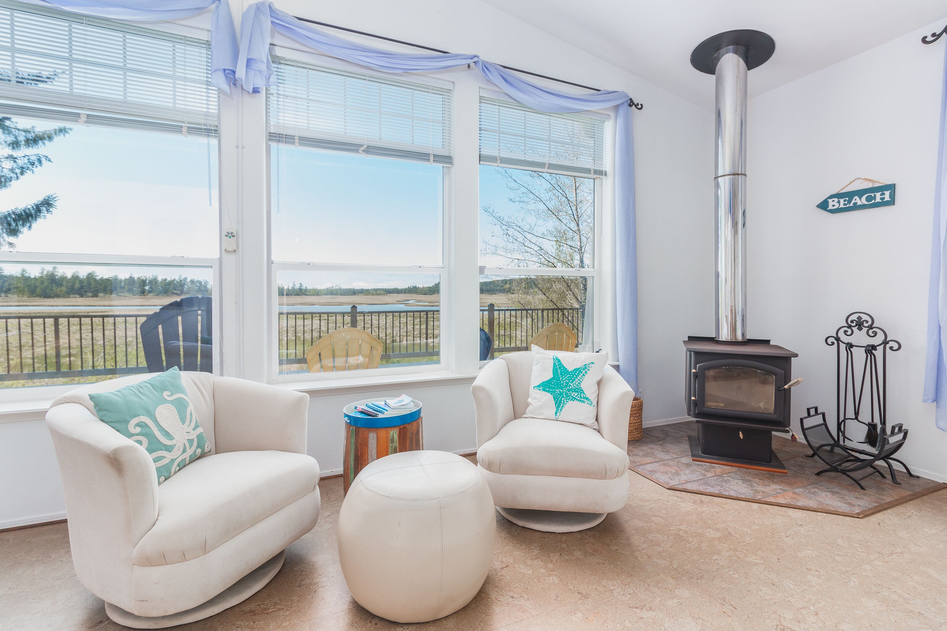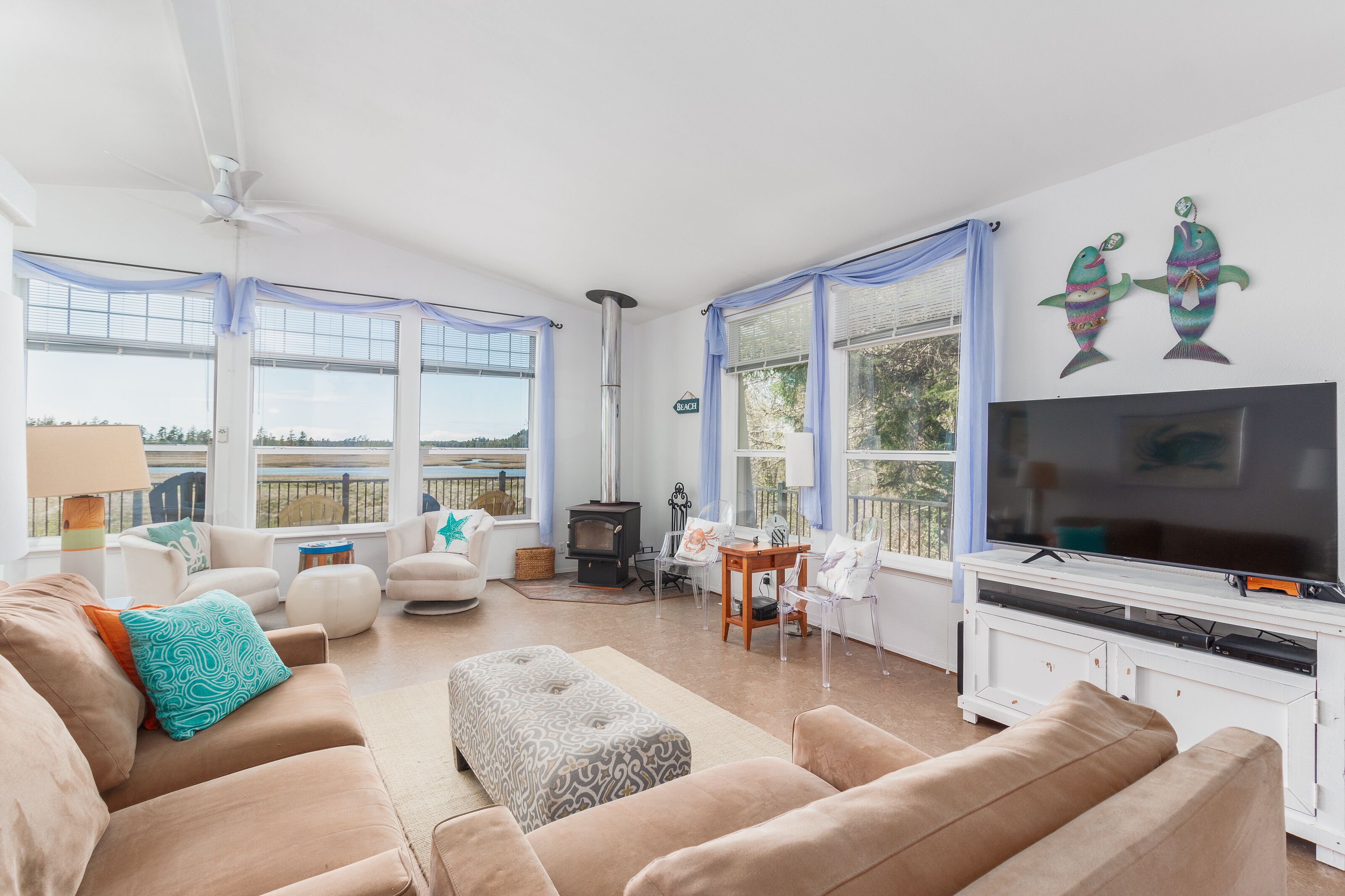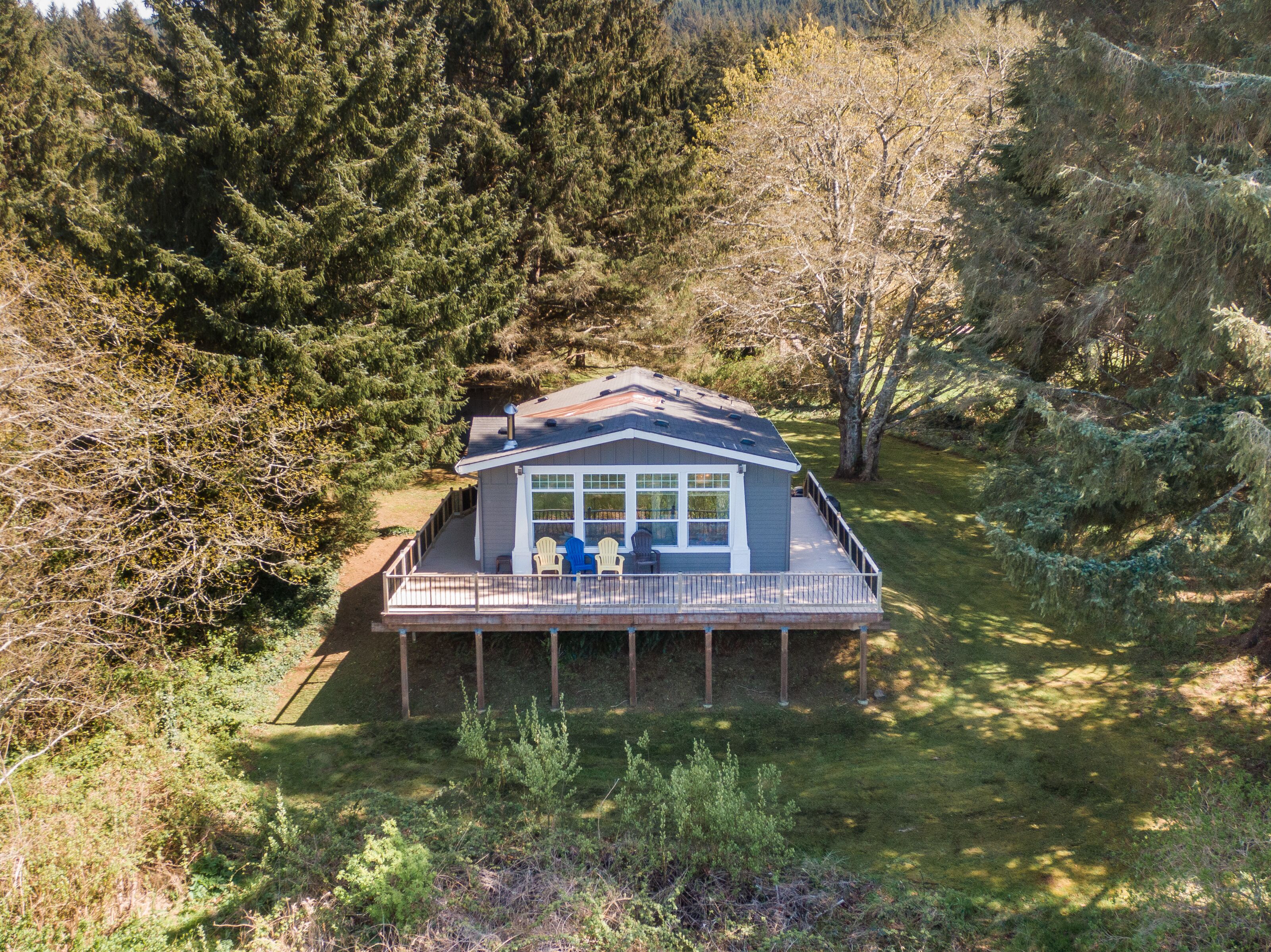 Sandlake Views #186 - Peaceful, secluded retreat. Pet friendly with views Sandlake views is a single level home on over an acre of property overlooking the Sandlake estuary near the Sandlake Dunes recreation area. Spacious and quiet, this home accommodates up to 7 guests in 3 bedrooms on one level. There is a ramp access. The parklike, flat yard provides lots of space for outdoor fun. Inside is cozy with large picture windows showcasing the peaceful views.Features:WIFISmart TV & CableLarge peaceful flat yardGorgeous viewsPet friendlyWood stoveLots of games and booksMax cars 3 (contact us about more parking)Near Sandlake dunes recreation area with room for toy parking.Layout:Single level home with ramp access. Main floor has open living room with woodstove, dining area, kitchen and laundry room. Deck wraps around the front of the house. Master bedroom with king bed and bathroom with big soaking tub. 2nd bedroom has queen bed. 3rd bedroom has twin/twin bunks and additional twin. Full hall bath with tub/shower.Location:This home is off of Sandlake road past the village of Tierra Del Mar. The nearest beach access would be a 1-2 mile drive to Tierra del Mar. Whalen Island park, and Sitka Sedge state natural area are both nearby with a fun hiking trails and natural areas. The house is close to all the fun and Sandlake dunes. Pacific City is 4 miles away.Tillamook STVR#851-15-000077-STVRKiwanda Coastal Properties is a local, professional Oregon Coast vacation rental management company that offers over 50 homes in the Pacific City area. We have been offering beach rental homes for more than 30 years. Reliable management means responsive service, insider guides to the area and a better vacation experience. Our nearby office is staffed 7 days a week ensuring that homes and guests are taken care of if any needs arise. We look forward to accommodating your next beach trip. Please contact us anytime for more information. Most homes require guests be at least 24 years old.This home is pet friendly for one or two dogs. Please let us know if you will be bringing a pet so that we can add the non-refundable pet fee of $10/night . Only well-behaved dogs are allowed. Pets are not allowed on the furniture, or left in the house unattended.Occupancy rules are strictly enforced and apply to the entire property during the stay. Additional day-use guests may be allowed with management pre-approval. After your booking is confirmed, you will be sent the full rental contract and terms.The safety of our staff, guests and local community is our top priority. This home is professionally managed and cleaned to strict standards in line with CDC guidelines, including supervised housekeeping and post-clean sanitation.Cancellation policy: 1/2 the total cost of the booking is subject to forfeiture if reservation is canceled or changed within 30 days of arrival. 100% of rental rate is charged if cancelled (or no-show) within 7 days of arrival. If the house is fully rebooked by another renter, cancellation charges (less $35) will be refunded. Reservation cancellation fee is $35. (If you book with a 3rd party, different charges may apply).