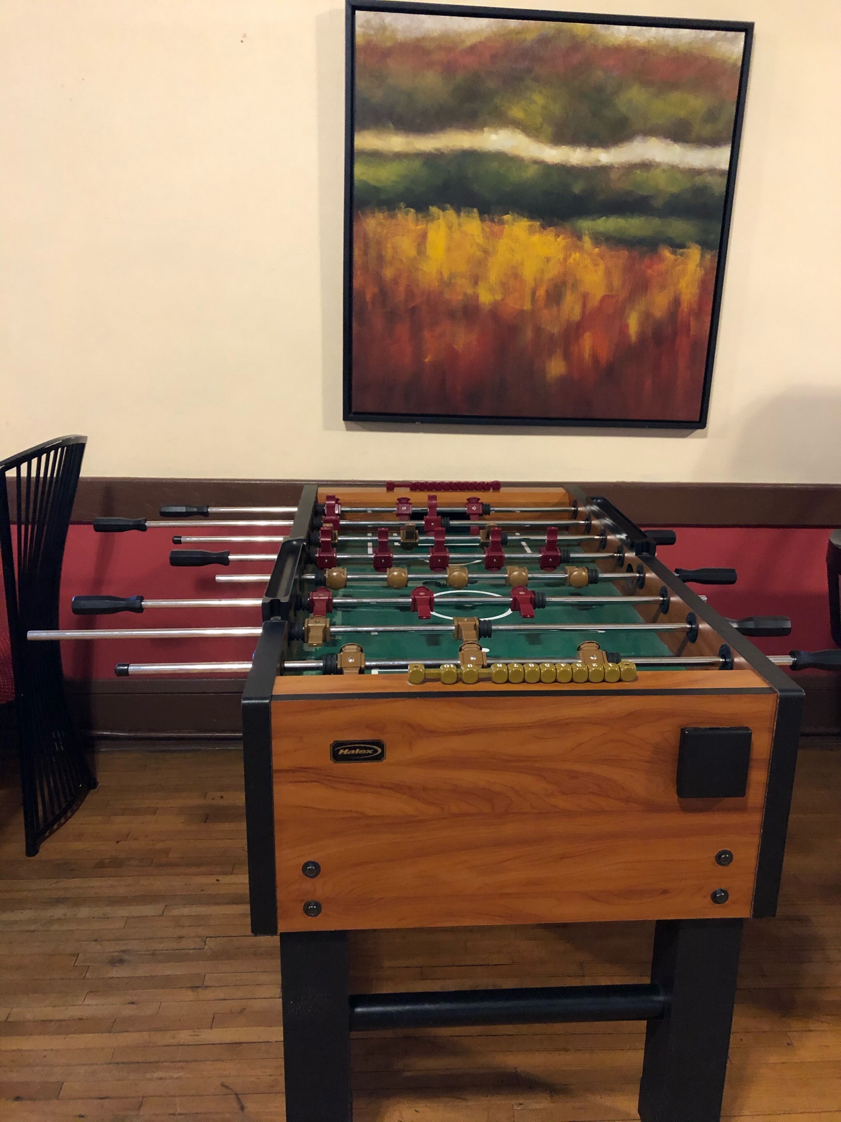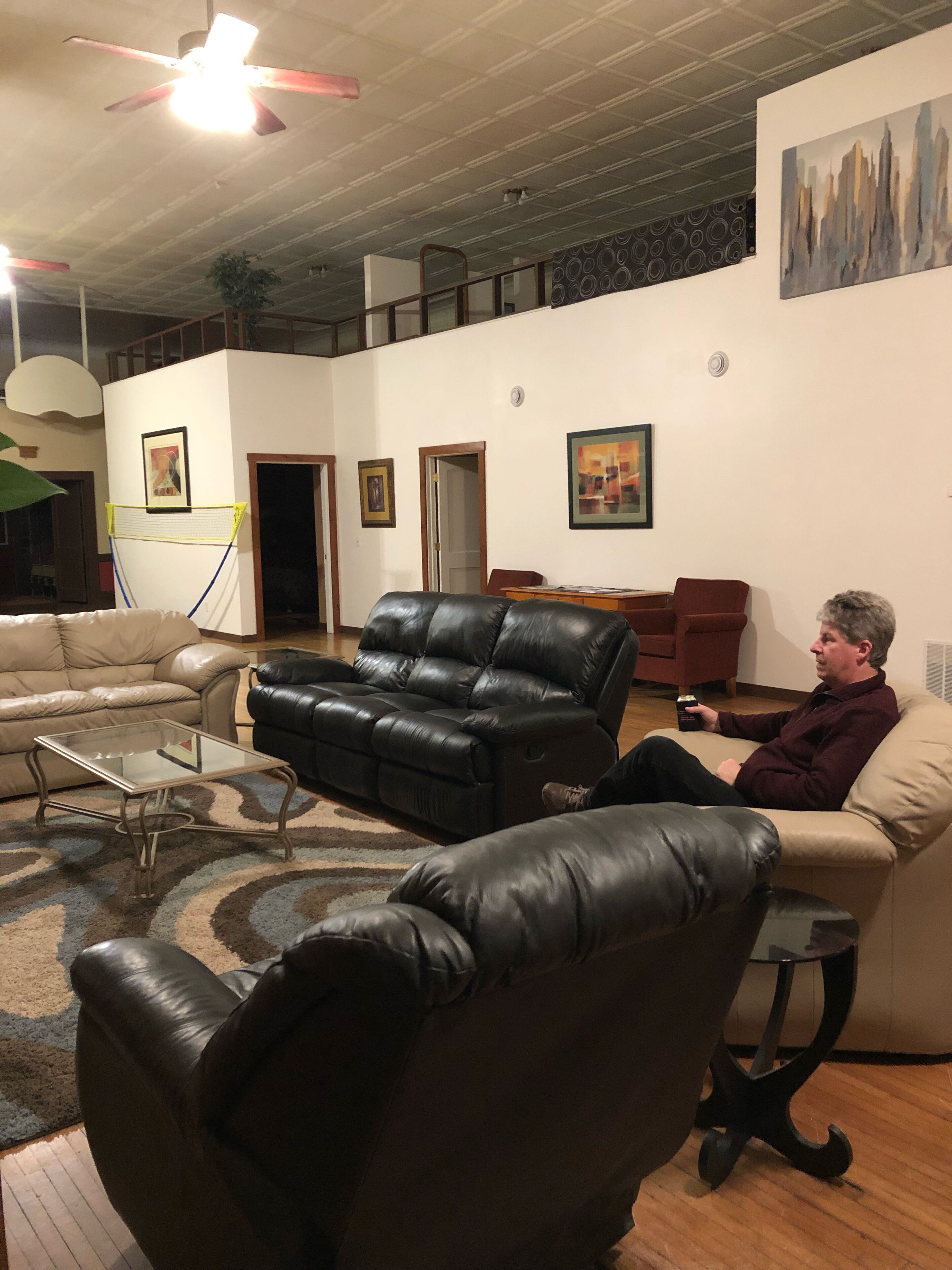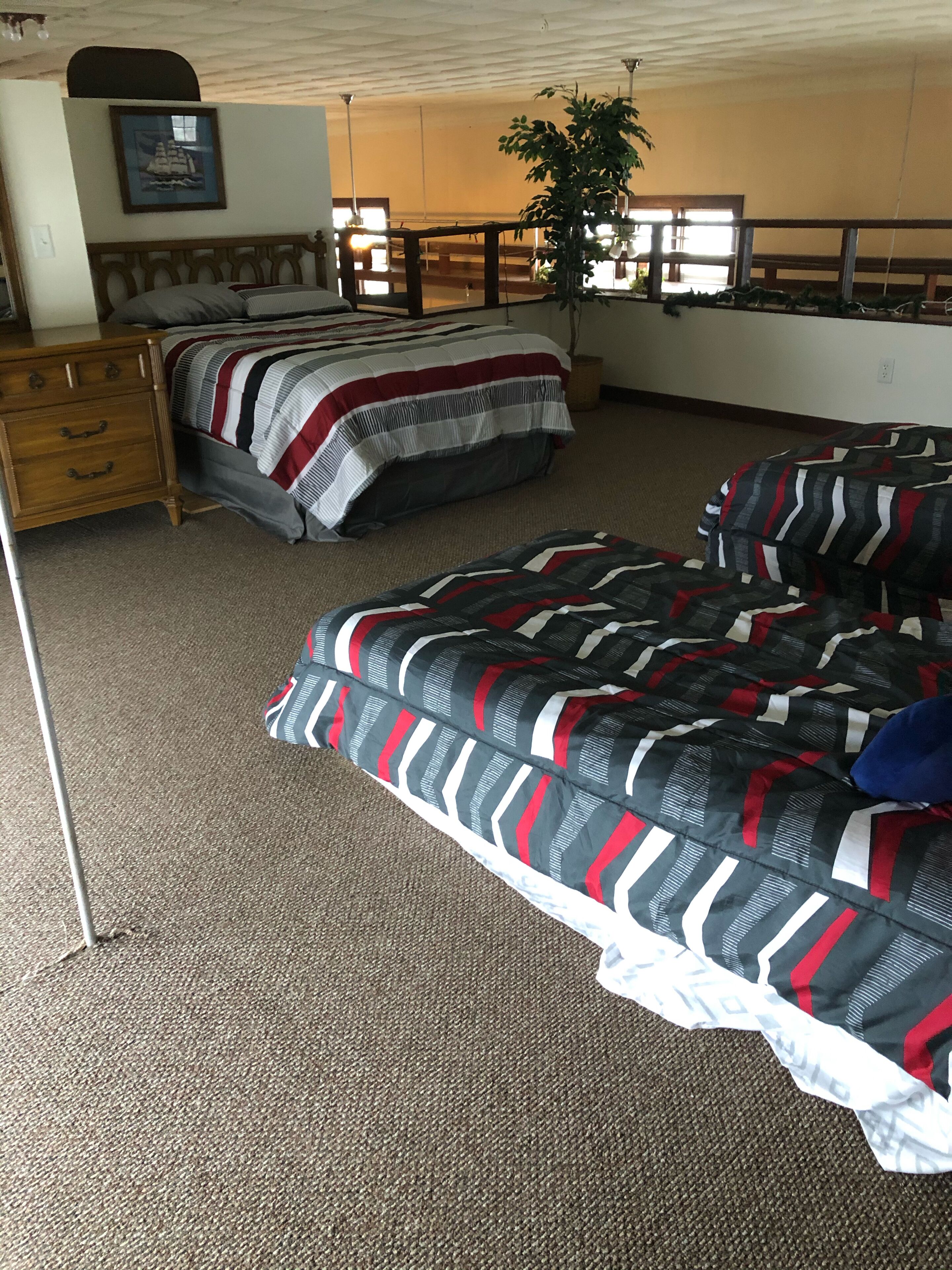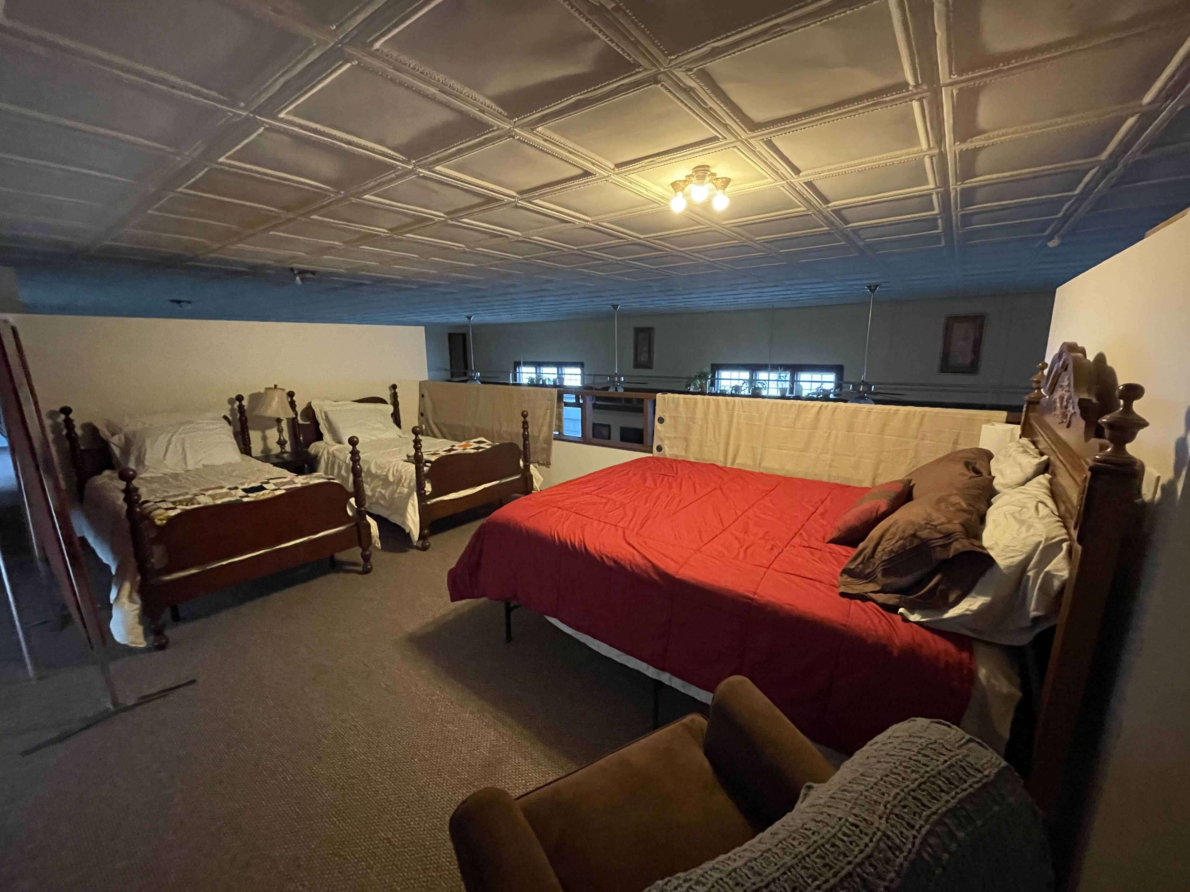 Stay in a unique and original Old Town Hall with hardwood floors.. Stay in a unique and original Old Town Hall with hardwood floors and 16' tall ceilings. Each bedroom has a unique feel and the loft spaces are amazing.The building is a converted 3/4 basketball court that has had bedrooms and bathrooms added. This building is set up for large or small groups with plenty of space to spread out. Handicap accessible with a lift in the garage for main floor access.Includes Washer and dryer, wireless internet, modern kitchen, Jacuzzi tub in one of the bathrooms and a dining area large enough to feed everyone.Located in SW Douglas County, MN there are over 20 lakes within 15 minutes and the Kensington Runestone Park is about 10 minutes away. In the winter, Andes Tower Hills Ski Area is 15 minutes away and the DATA snowmobile trails (Douglas Area Trails Association) right on the edge of town.