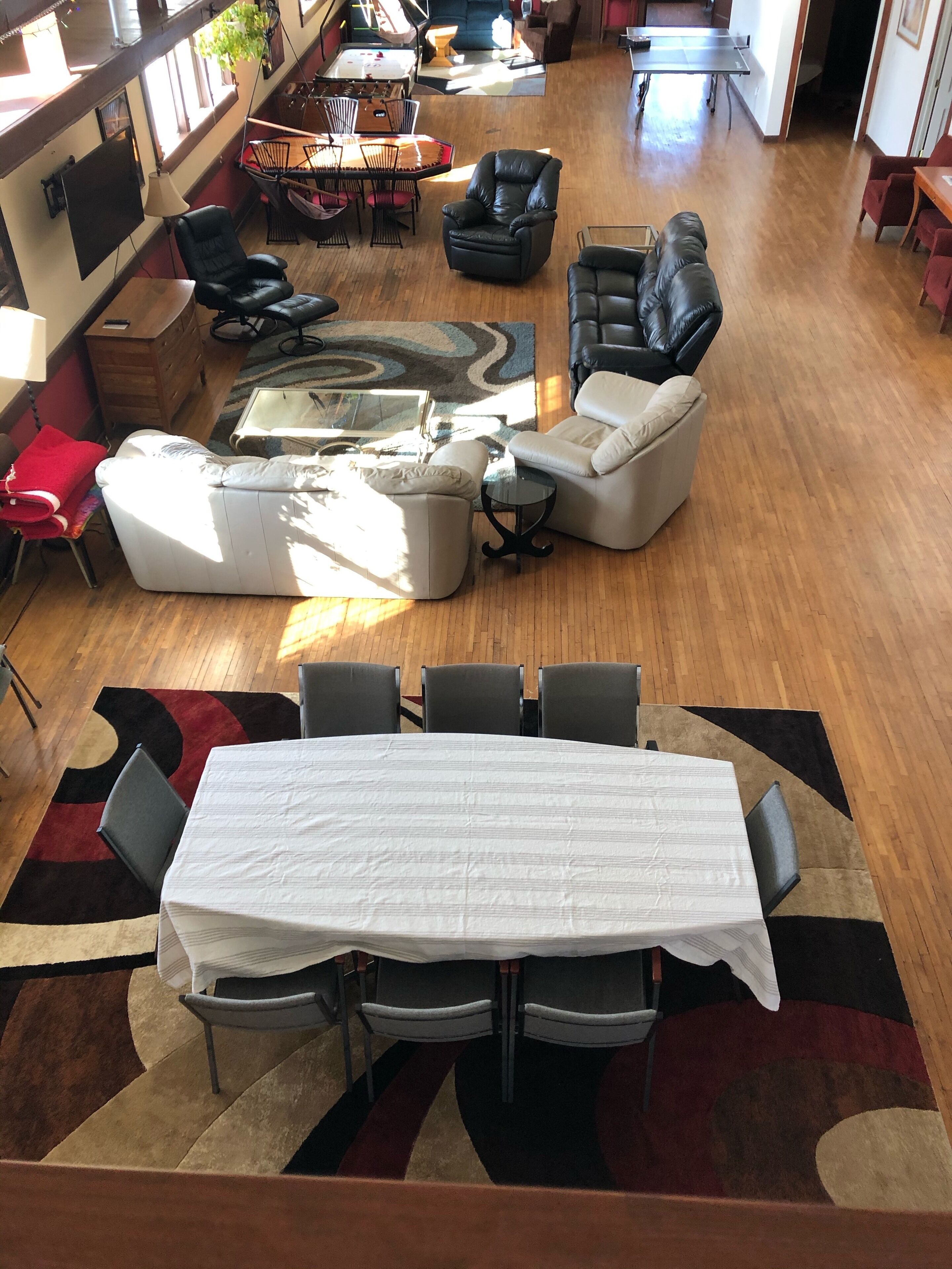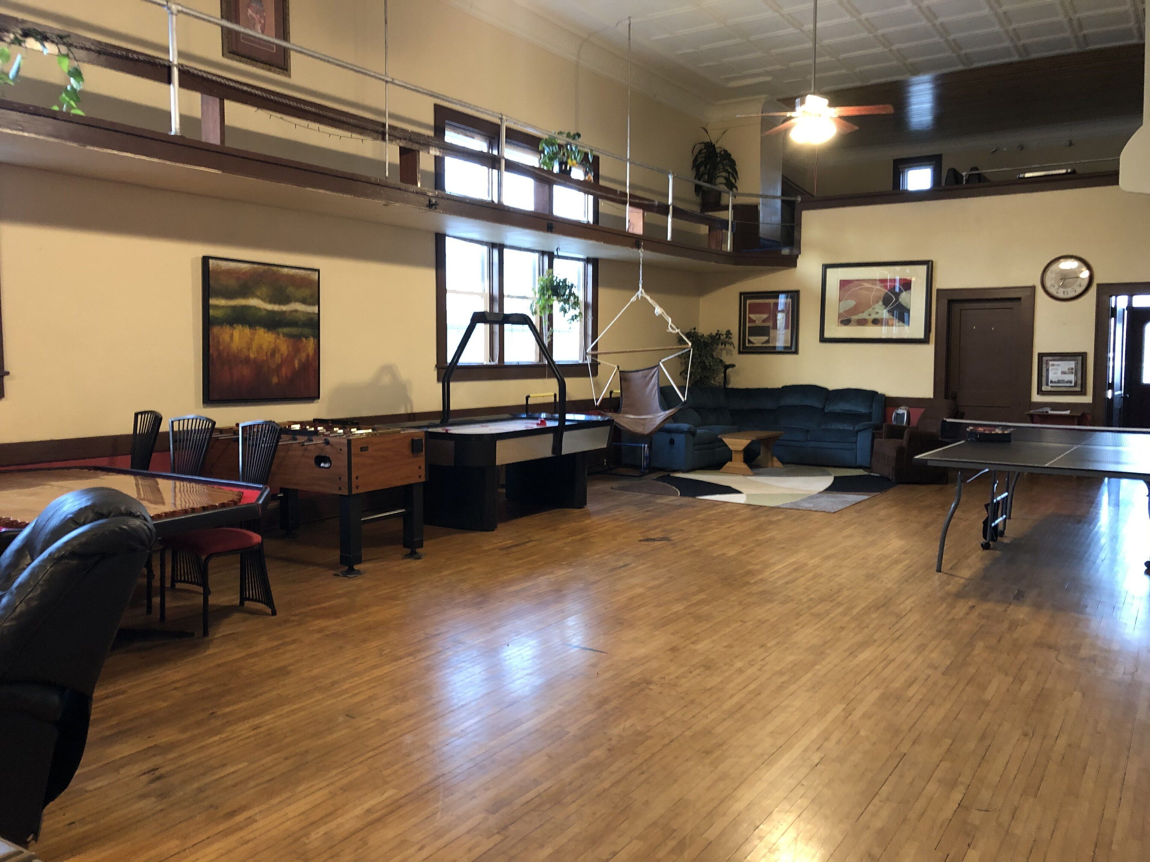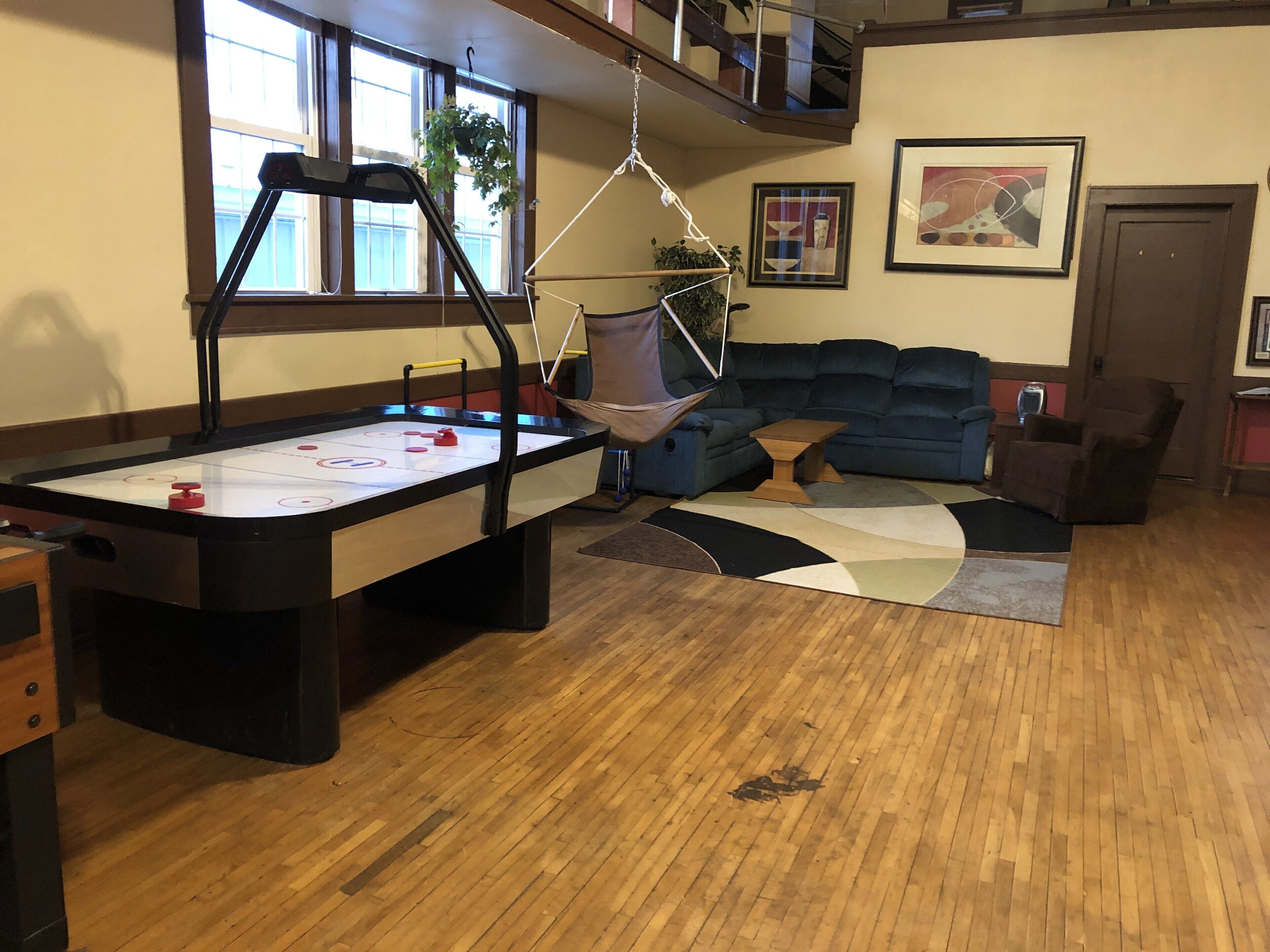 Stay in a unique and original Old Town Hall with hardwood floors.. Stay in a unique and original Old Town Hall with hardwood floors and 16' tall ceilings. Each bedroom has a unique feel and the loft spaces are amazing.The building is a converted 3/4 basketball court that has had bedrooms and bathrooms added. This building is set up for large or small groups with plenty of space to spread out. H...