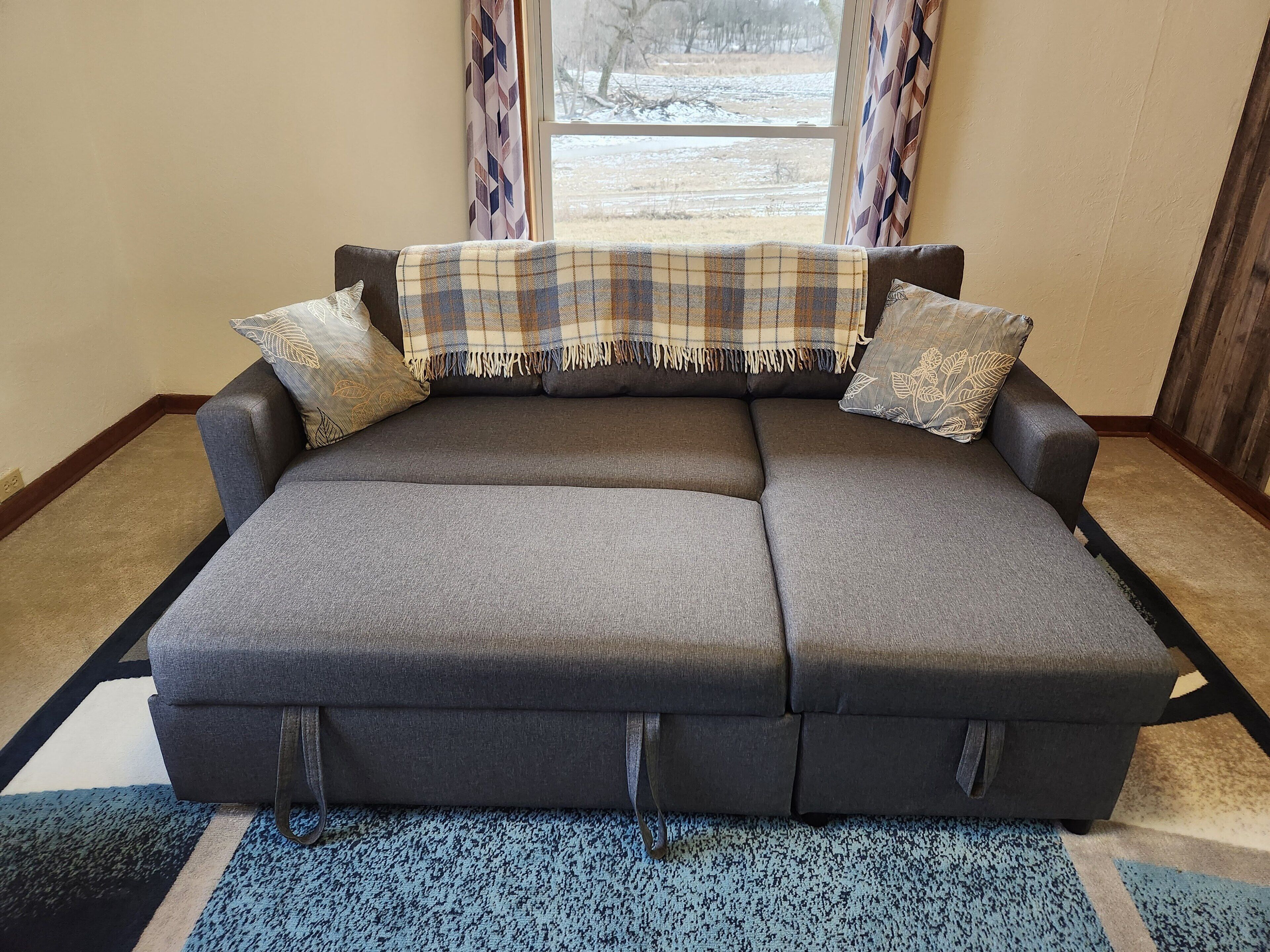 Charming, rustic farm house located right next door to Andes Tower Hills This is an older rustic farm house located right next door to Andes Tower Hills Ski Resort & Campground where you are able to see the ski runs from the front porch. This is a working farm on 32 acres in Kensington MN with the data trail running along the property for snowmobiles. This is a great location surrounded by area lakes, hunting wildlifes, and the Kensington Runestone Park 5.2 miles away. The rental property only consists of the main floor of the house, the out buildings are prohibited due to farming. Owners may come on the property daily to check on livestock. There are outside security cameras for safety and protection. The layout consist of:1 bedroom - queen size bedThere are air mattresses for additional sleeping arrangements.Livingroom - 2 full size sofa beds, electric fireplace, 43 inch TV, Roku, DVD playerKitchen - refrigerator, microwave, toaster oven, hotplate burners, Kuerig coffee maker, toaster, dishes, Crockpot and other basic cooking essentialsBathroom - sink with vanity mirror, shower, toilet, towelsEach room has it's own electric baseboard heater with it's own adjustable thermostat to personalize room temperature.No pets allowed.Limited Wi-fi through a jetpack to provide essential controls for electronics
