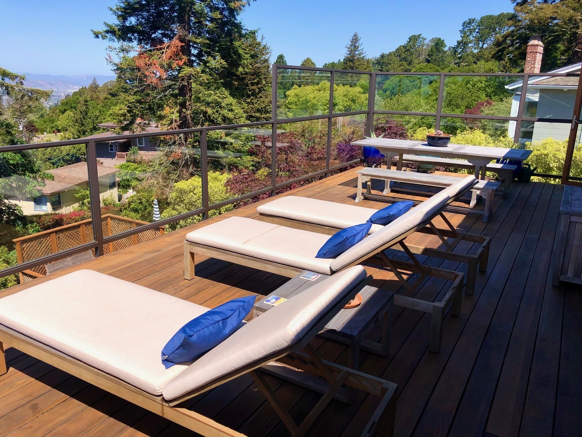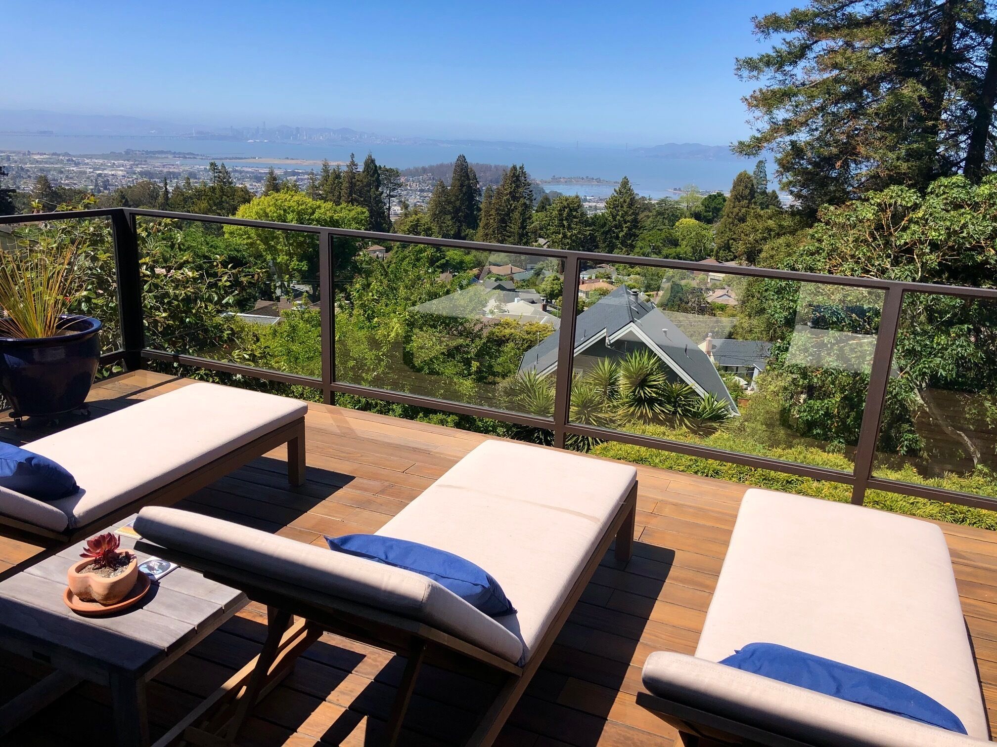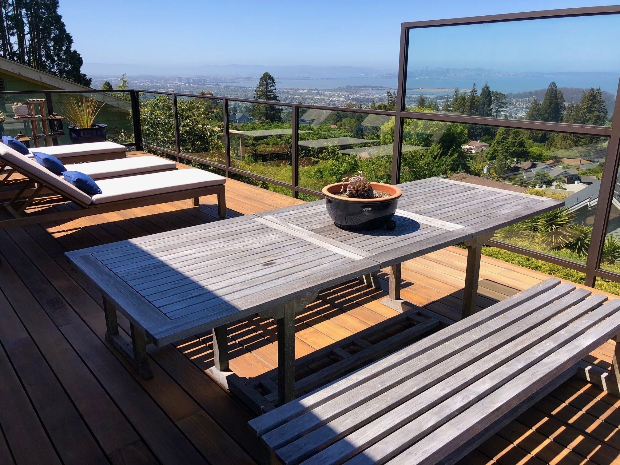 "Bay View Hilltop Retreat, Indoor/Outdoor Living" Gorgeous 3+bed, 2.5 bath home in great Kensington/Berkeley Hills.Sun filled living room & dining room w/ panoramic Bay views.Family room & office on lower level.Large decks around the house w/ multiple seating/outdoor kitchen/entertainment areas .Great for families that want to experience Berkeley, San Francisco & Bay Area. 2min walk to playgrounds...