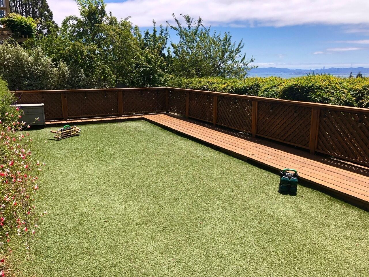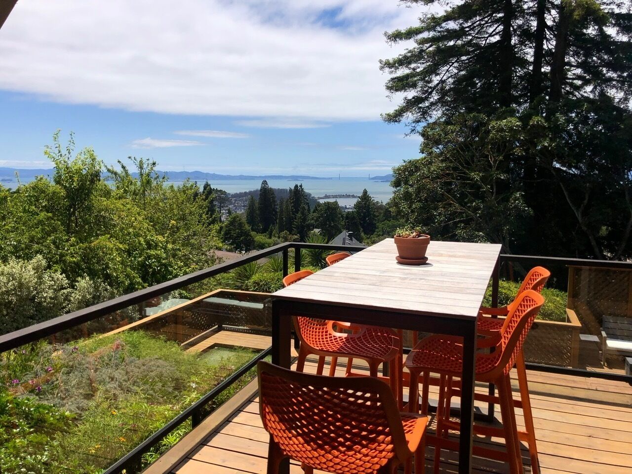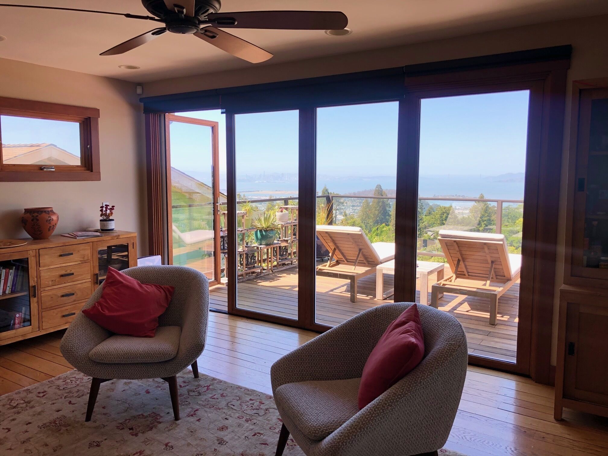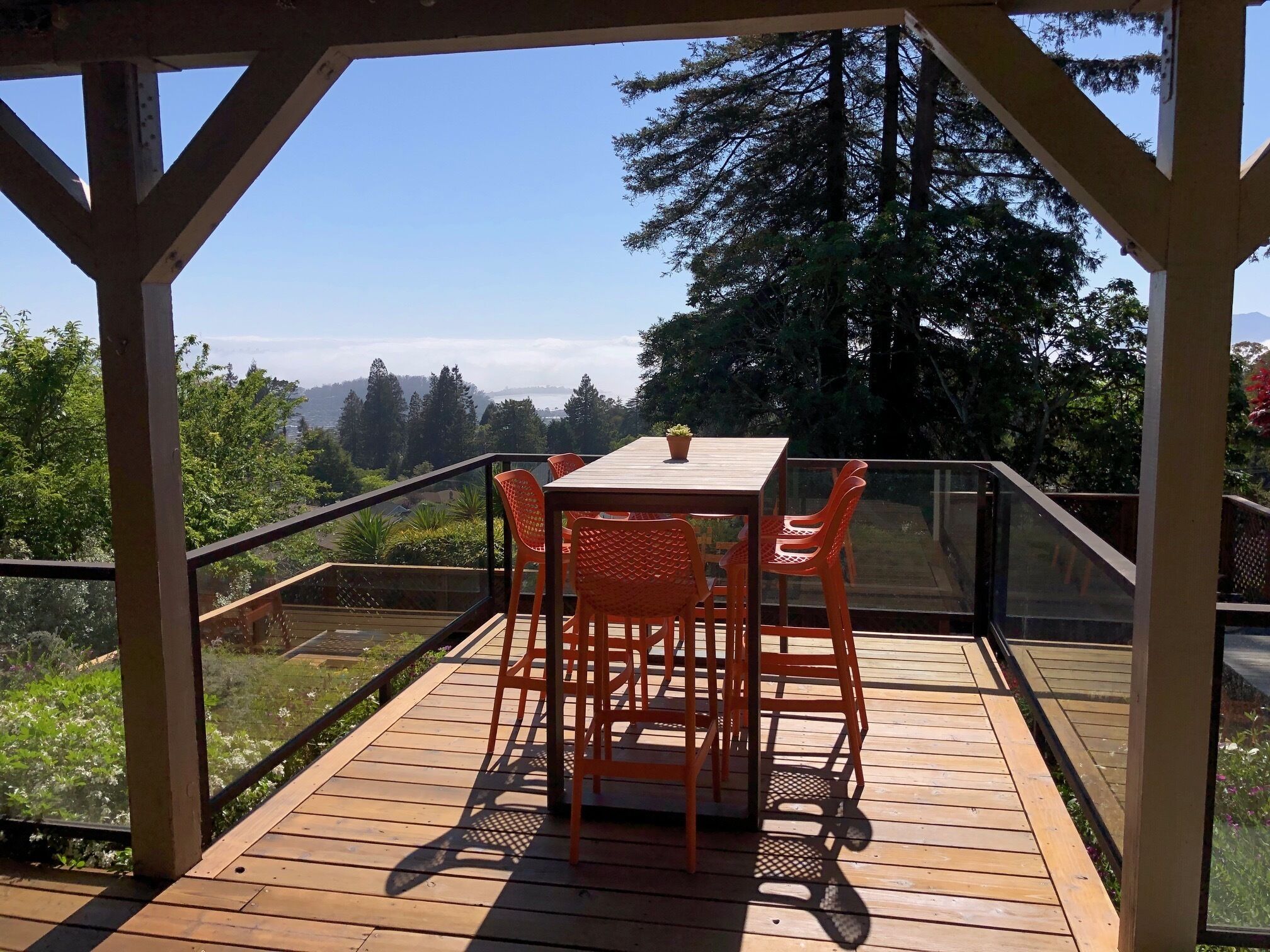 "Bay View Hilltop Retreat, Indoor/Outdoor Living" Gorgeous 3+bed, 2.5 bath home in great Kensington/Berkeley Hills.Sun filled living room & dining room w/ panoramic Bay views.Family room & office on lower level.Large decks around the house w/ multiple seating/outdoor kitchen/entertainment areas .Great for families that want to experience Berkeley, San Francisco & Bay Area. 2min walk to playgrounds, tennis & basketball courts, 10min walk to Kensington Shops & restaurants. 10min drive to UC Berkeley & 25min drive to San Francisco.The spaceMain floor has sunlit living room & dining room & kitchen(w/ flatscreeen smart tv) w/ folding glass doors to deck- let the inside out & the outside in-lounge inside or outside & enjoy the Bay views. Sonos sound system thru out home.Three bedrooms(one w/ flatscreen smart tv), 1.5 baths -one w/ tub, & laundry room, also on the main floor.Downstairs has comfy family room with flatscreen smart tv, wet bar area, office, full bath w/ walk in shower & bonus room w/ queen murphy bed.Sliding doors to covered deck w/ full outdoor kitchen & dining & lounge areas. Steps down thru beautiful garden to turf yard -play bocce & croquet surrounded by deck w/ lounge area w gas firepit & another dining area in private fenced in backyard.Home Gym in garage w/ Peloton Bike,(must have your own membership) weights, & other equipment.