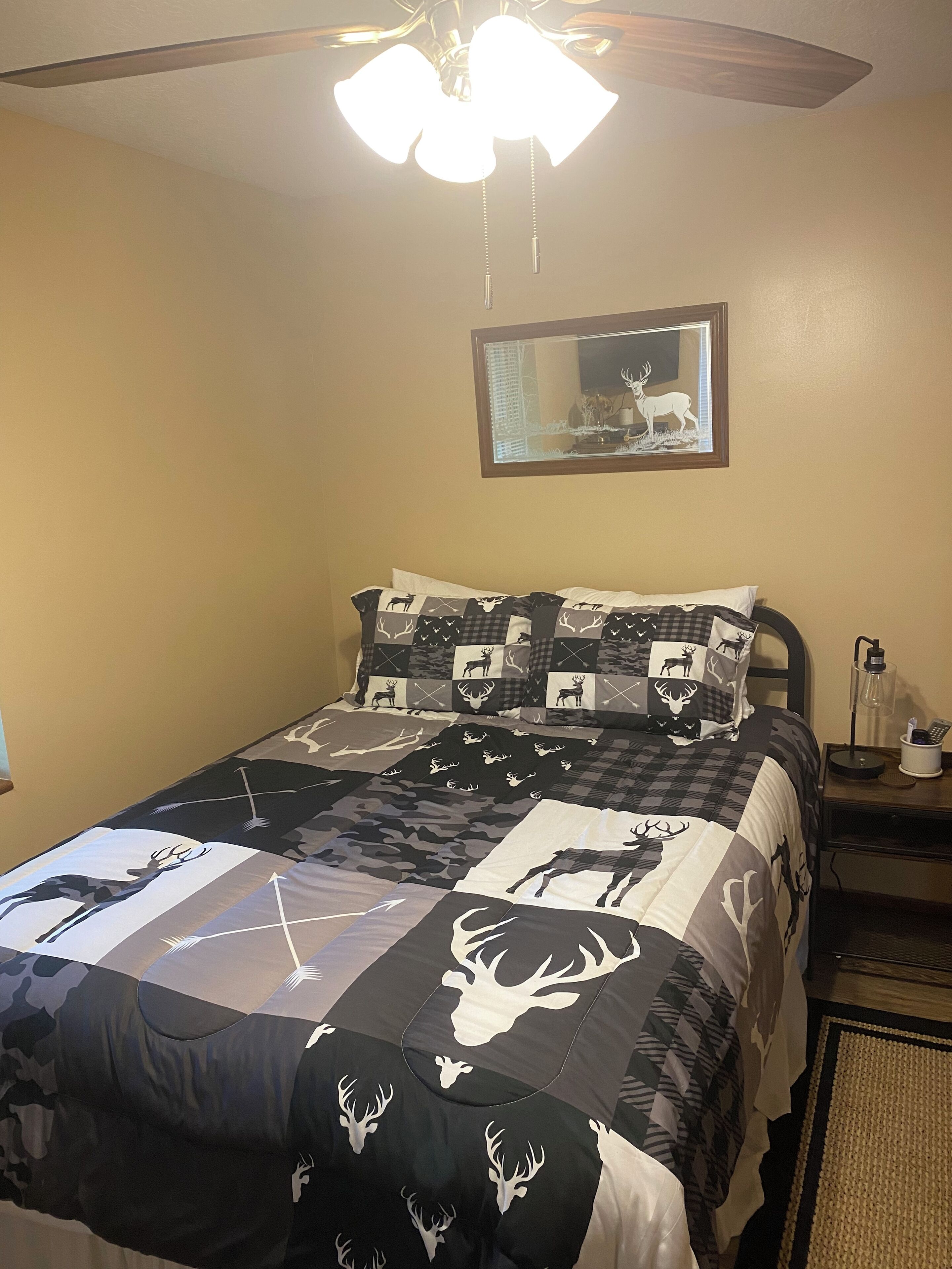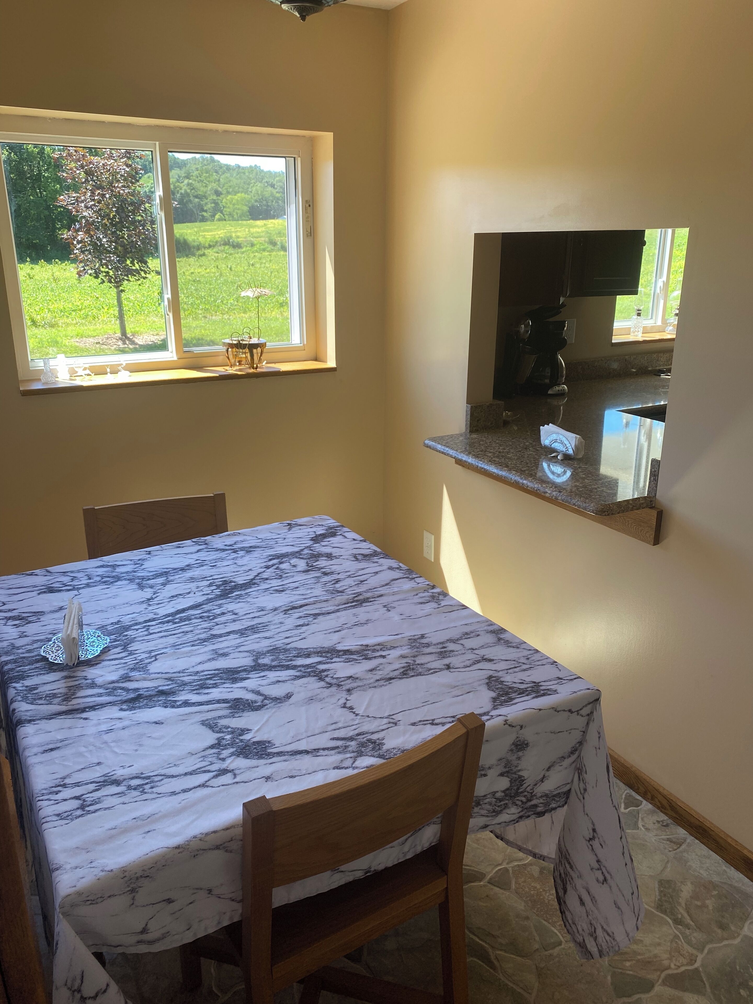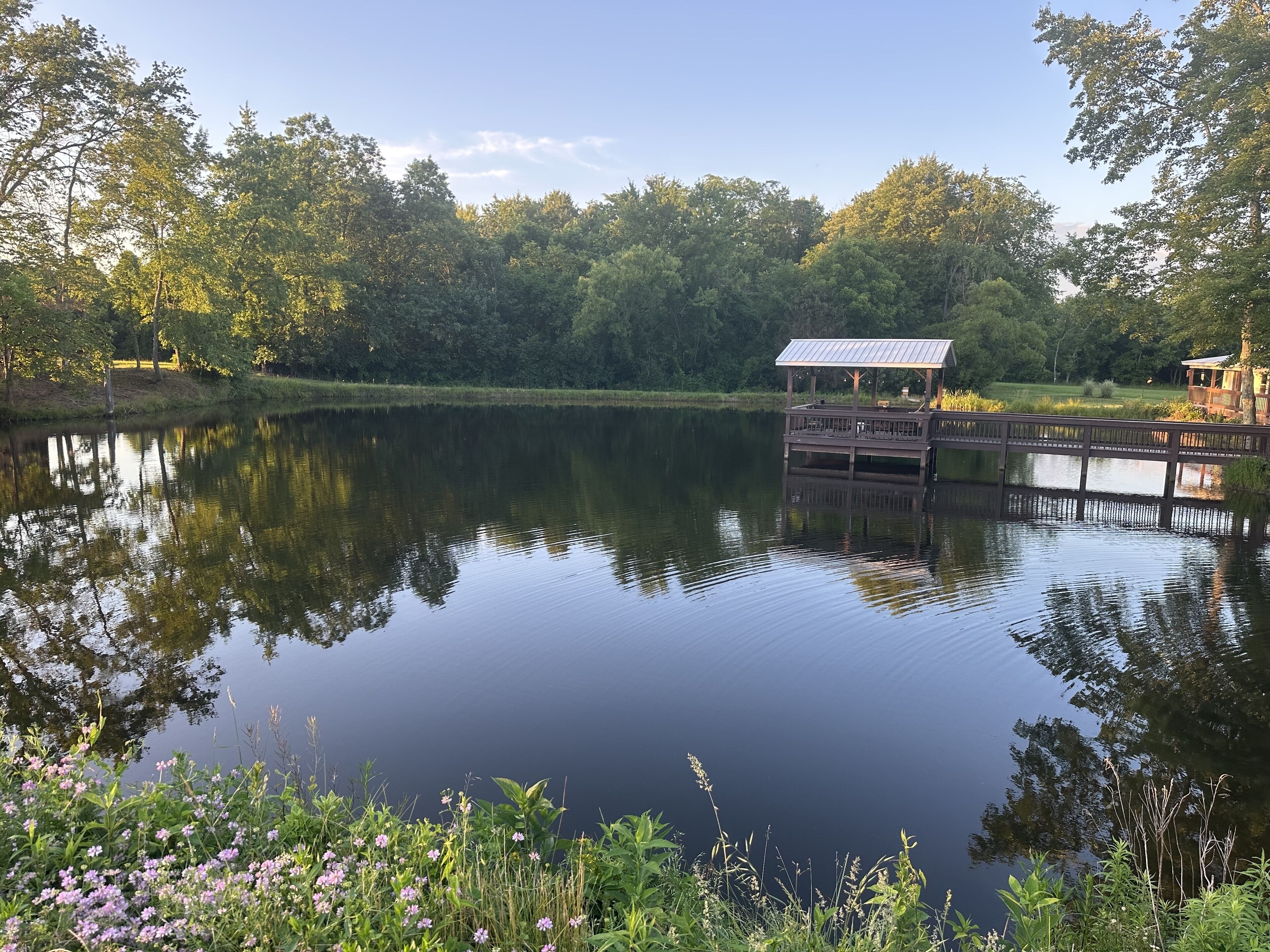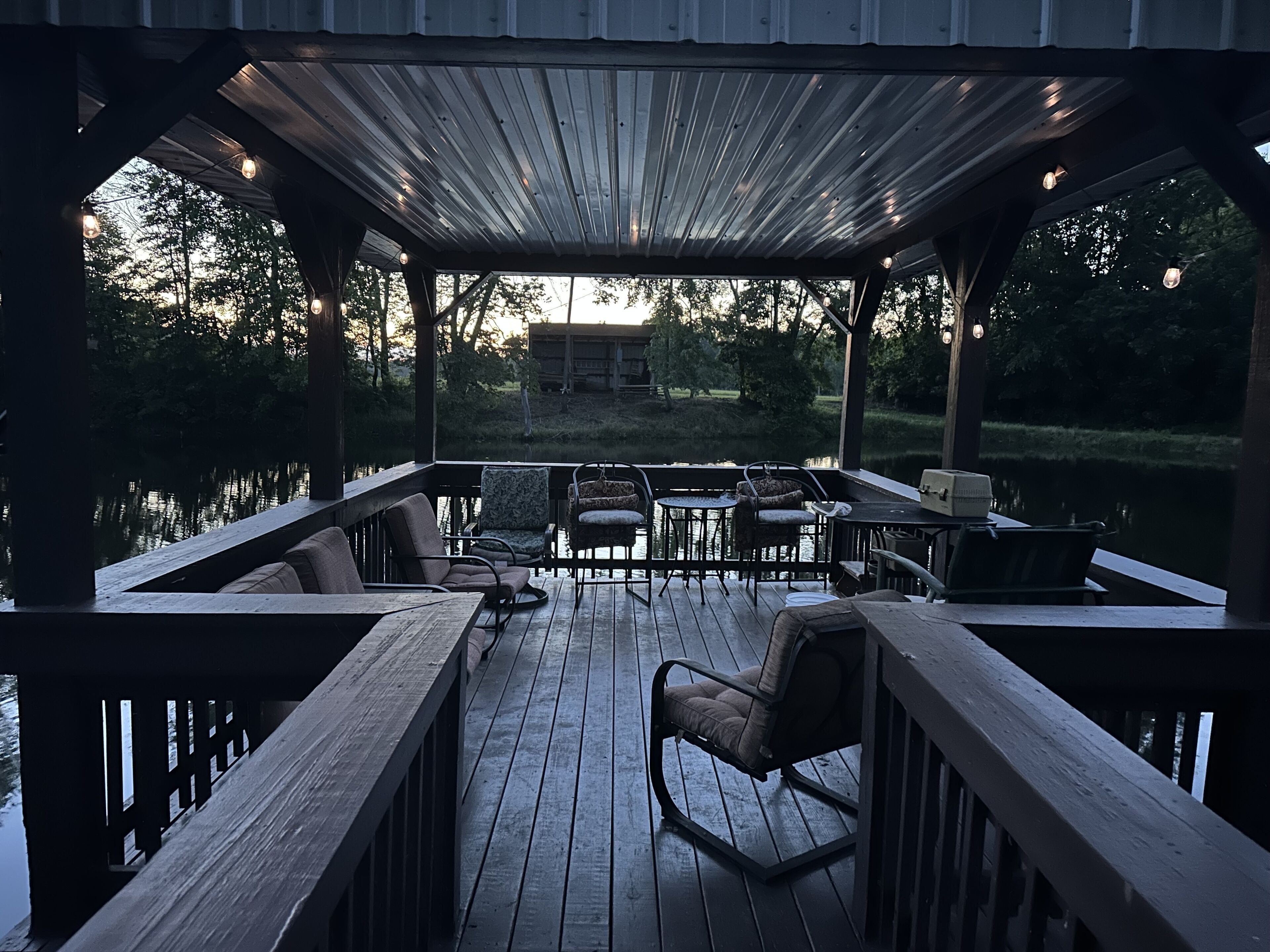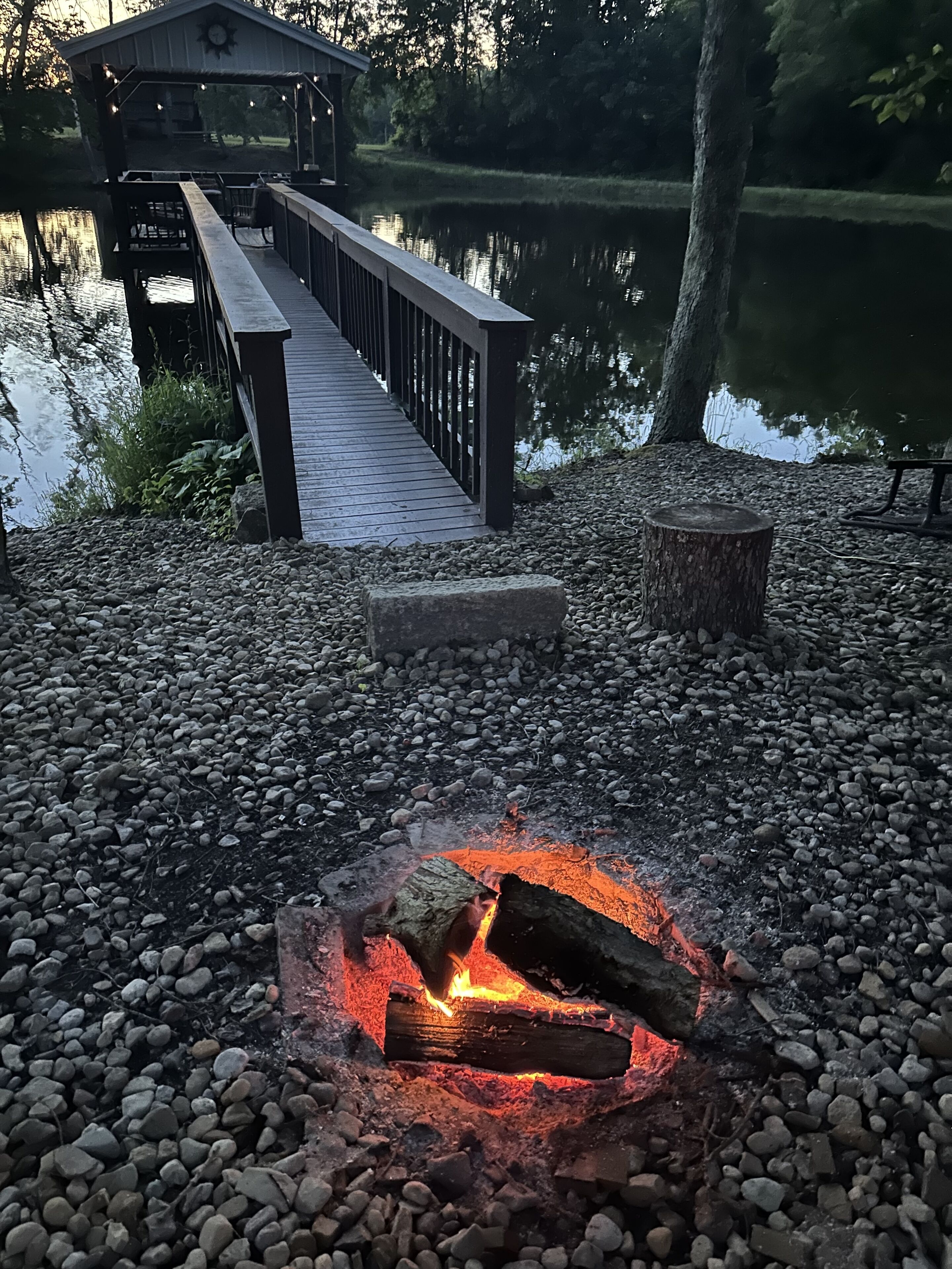 Country Home with Pond and Great Outdoor Space Do you love the outdoors and country feel? If so, this country cottage is perfect for you! Spend a weekend or week enjoying the outdoors with activities ranging from fishing at the pond located inches from the back porch, sit around a warm fire or enjoy some time relaxing on the dock. This property directly touches the east side of Dillon Wildlife Area. When seasonably available, our guests are treated to a take home gift that includes honey from the property and soap made from our honey. If you are looking for local attractions, kayak or canoe down the Licking River (with access within a mile of the property), golf or dine at Virtue's Golf Course (5 miles), hike or bike at Flint Ridge Ancient Quarries and Nature Preserve (10 miles) or Black Hand Gorge (2.6 miles) or spend time at the Dillon Sportsman Center (2.5 miles). Golf enthusiasts may also want to visit Crystal Springs Golf Course (7.6 miles) and Vista View Golf Course (12 miles). The area is also home to local breweries and wineries including Old Fool Brewery (11 miles), Stone Crest Vineyard (10 miles), Killing Tree Winery (20 miles) and some others located in neighboring towns. Accommodations include 4 bedrooms (3 queen beds, 2 twin beds) with two full bathrooms. The kitchen includes a dishwasher, microwave, refrigerator, stove and coffee maker. The laundry room includes a washer and dryer. There is a three car attached garage with a large back deck overlooking one of the ponds. Additional rooms include a breakfast room, living room, large bonus common area with four futons and our unique "It's 5 o'clock somewhere" bar room complete with small bar and mini fridge. The property also includes a covered dock/seating area over one of the ponds. Additional points to note - -this property can be accessed without steps-almost all of the wood used in the woodwork inside the house originates from the property-the back deck is 82 feet long and right up against the water! -we are pet friendly and welcome up to two pets per stay-our ponds are catch and release fishing only-we do not rent to large parties and ask that our guests treat our space as their home while they are here -we do not have kayaks and canoes on site so please bring yours from home if you plan to enjoy these activities-we requests fires to be made in fire pit only -families with small children may want to bring life jackets as this property is very close to water-there are outside security cameras located on the south and east sides of the cabin facing the driveway. No other cameras are in use on the property. We welcome anyone who wants to take in nature and relax along the way. Please let us know if you have questions and we look forward to your stay!