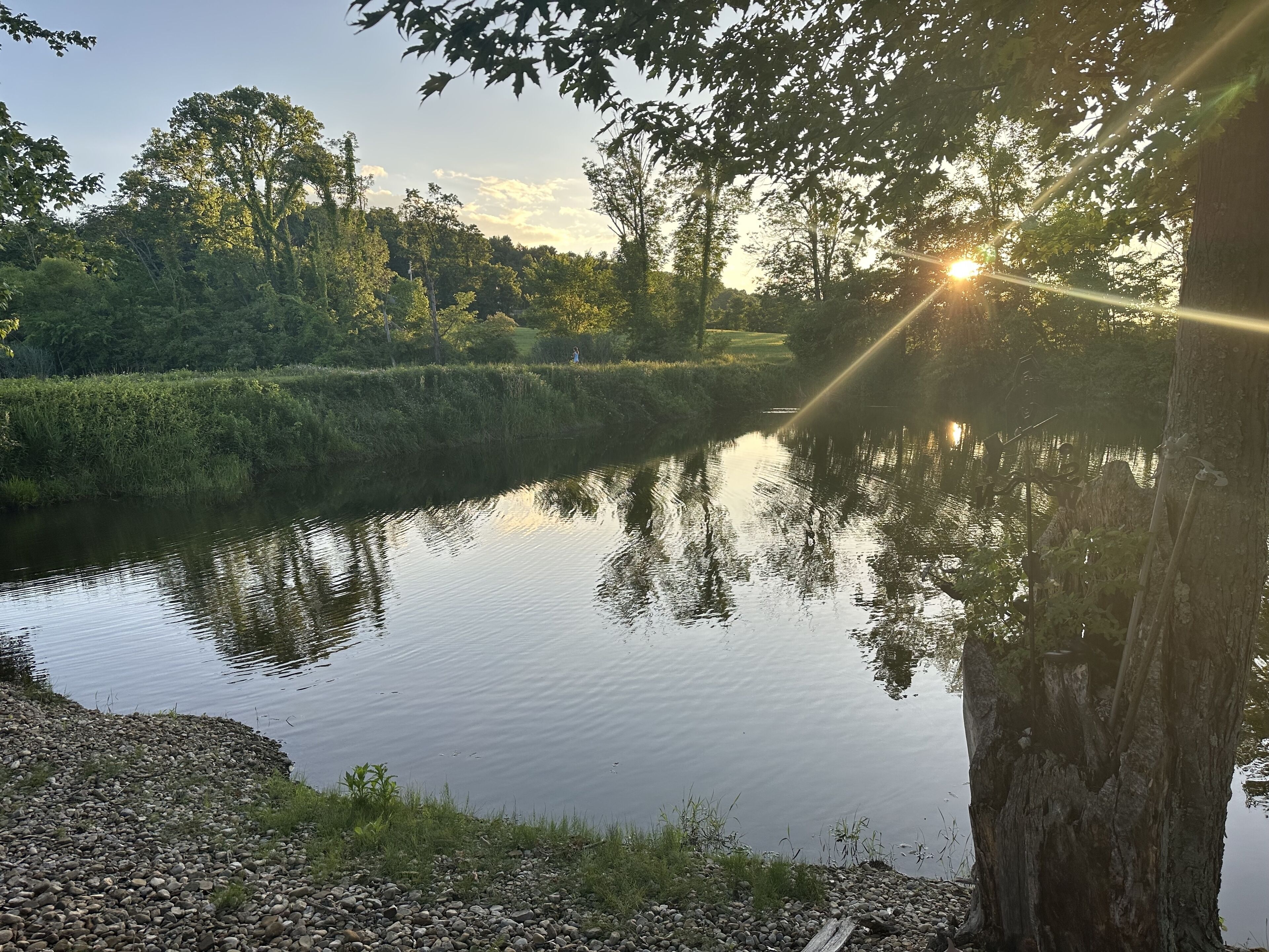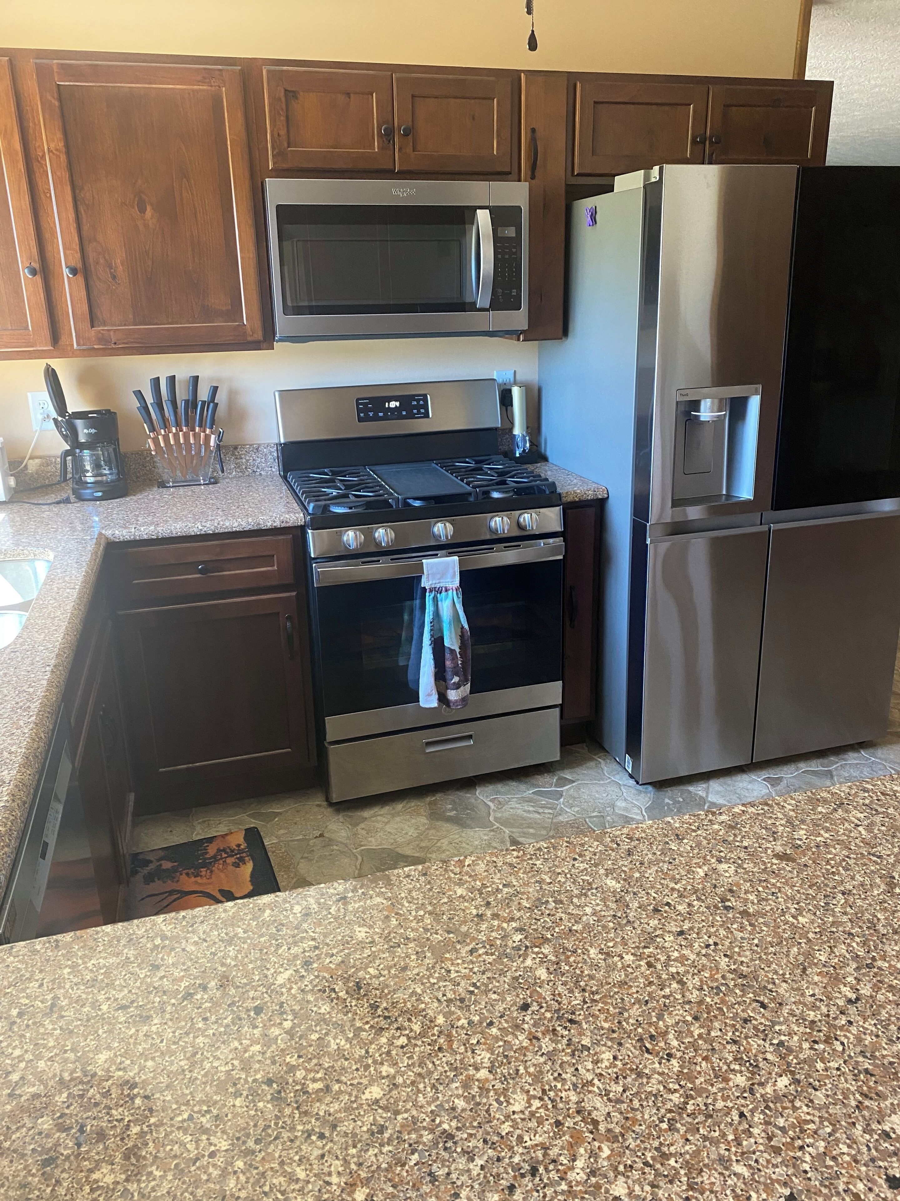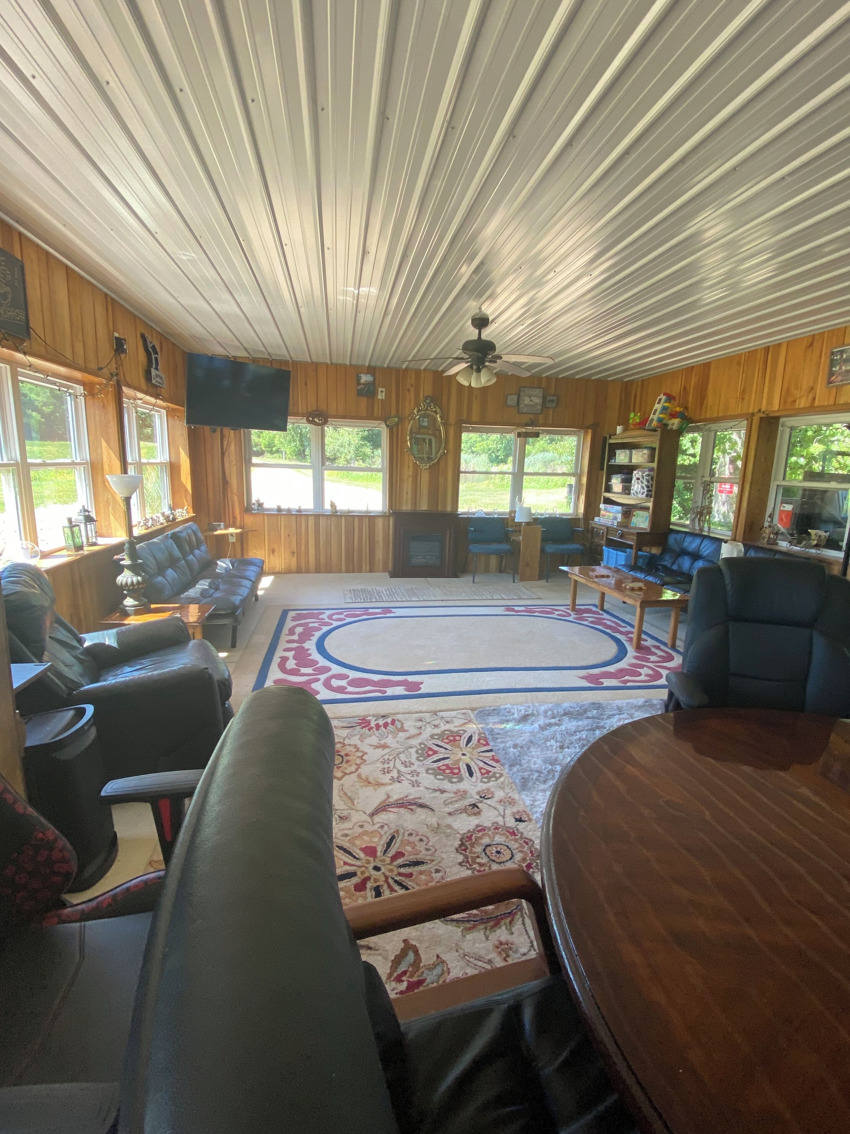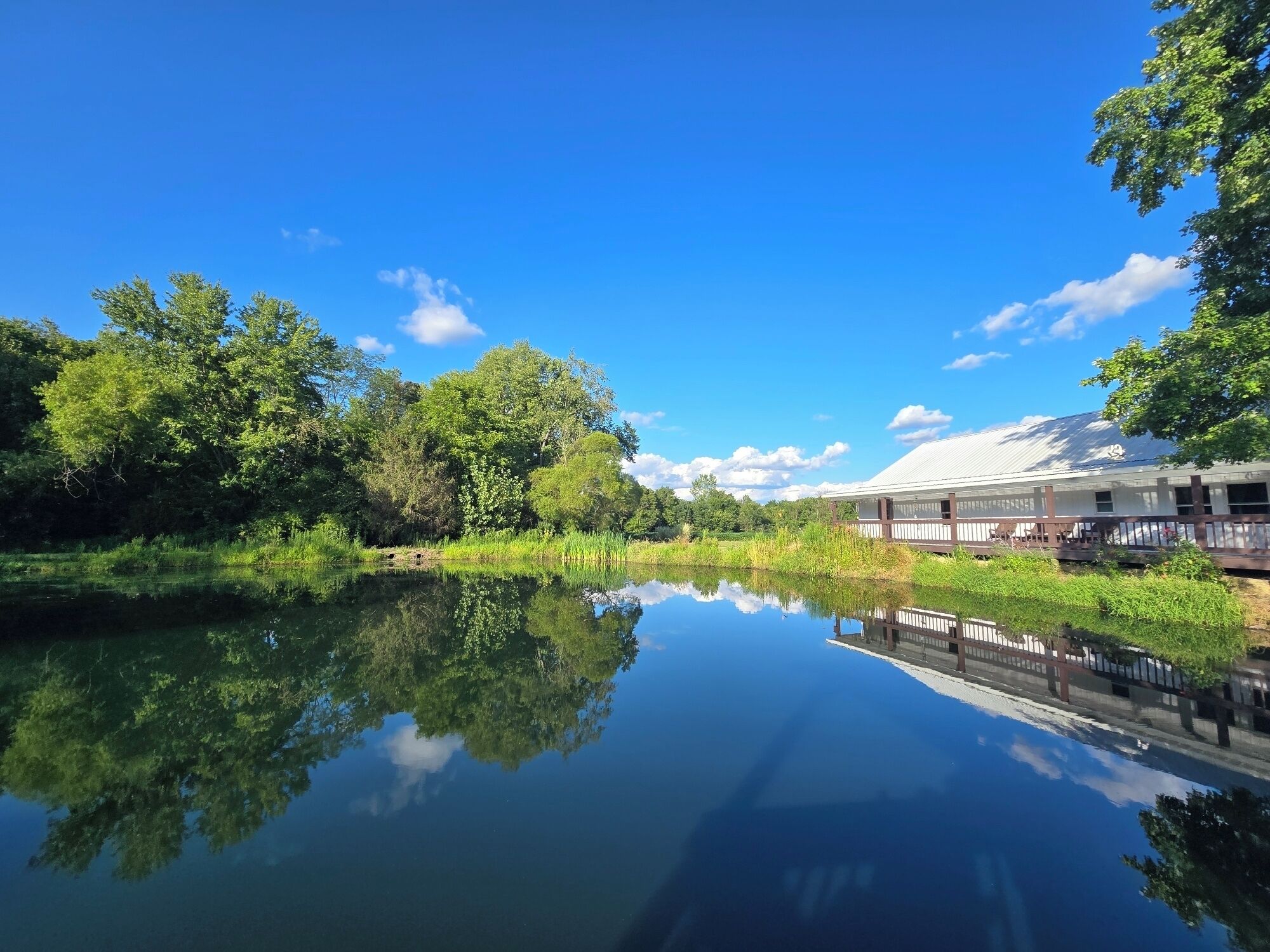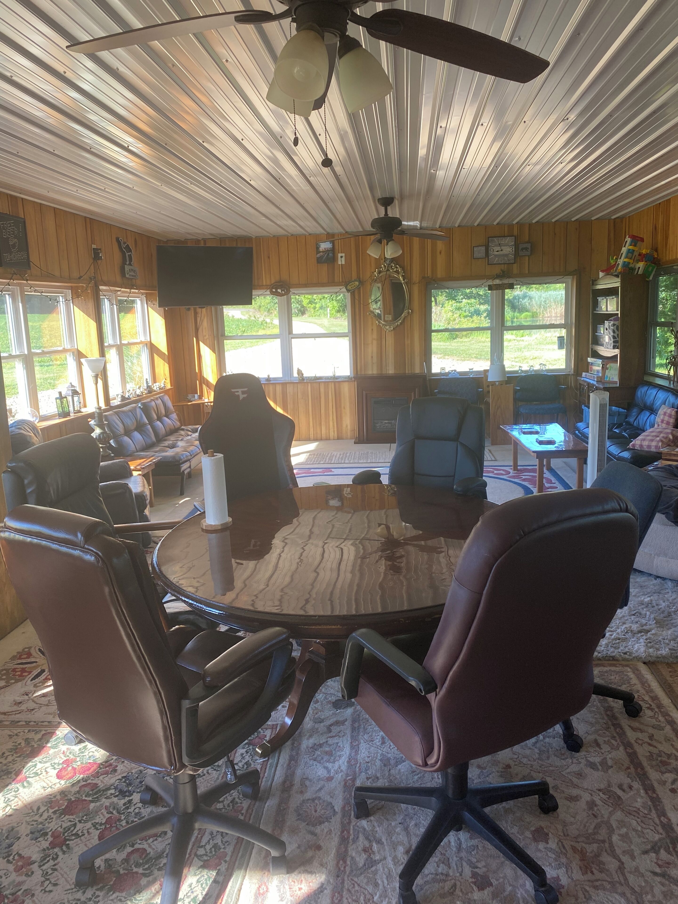 Country Home with Pond and Great Outdoor Space Do you love the outdoors and country feel? If so, this country cottage is perfect for you! Spend a weekend or week enjoying the outdoors with activities ranging from fishing at the pond located inches from the back porch, sit around a warm fire or enjoy some time relaxing on the dock. This property directly touches the east side of Dillon Wildlife Area. When seasonably available, our guests are treated to a take home gift that includes honey from the property and soap made from our honey. If you are looking for local attractions, kayak or canoe down the Licking River (with access within a mile of the property), golf or dine at Virtue's Golf Course (5 miles), hike or bike at Flint Ridge Ancient Quarries and Nature Preserve (10 miles) or Black Hand Gorge (2.6 miles) or spend time at the Dillon Sportsman Center (2.5 miles). Golf enthusiasts may also want to visit Crystal Springs Golf Course (7.6 miles) and Vista View Golf Course (12 miles). The area is also home to local breweries and wineries including Old Fool Brewery (11 miles), Stone Crest Vineyard (10 miles), Killing Tree Winery (20 miles) and some others located in neighboring towns. Accommodations include 4 bedrooms (3 queen beds, 2 twin beds) with two full bathrooms. The kitchen includes a dishwasher, microwave, refrigerator, stove and coffee maker. The laundry room includes a washer and dryer. There is a three car attached garage with a large back deck overlooking one of the ponds. Additional rooms include a breakfast room, living room, large bonus common area with four futons and our unique "It's 5 o'clock somewhere" bar room complete with small bar and mini fridge. The property also includes a covered dock/seating area over one of the ponds. Additional points to note - -this property can be accessed without steps-almost all of the wood used in the woodwork inside the house originates from the property-the back deck is 82 feet long and right up against the water! -we are pet friendly and welcome up to two pets per stay-our ponds are catch and release fishing only-we do not rent to large parties and ask that our guests treat our space as their home while they are here -we do not have kayaks and canoes on site so please bring yours from home if you plan to enjoy these activities-we requests fires to be made in fire pit only -families with small children may want to bring life jackets as this property is very close to water-there are outside security cameras located on the south and east sides of the cabin facing the driveway. No other cameras are in use on the property. We welcome anyone who wants to take in nature and relax along the way. Please let us know if you have questions and we look forward to your stay!