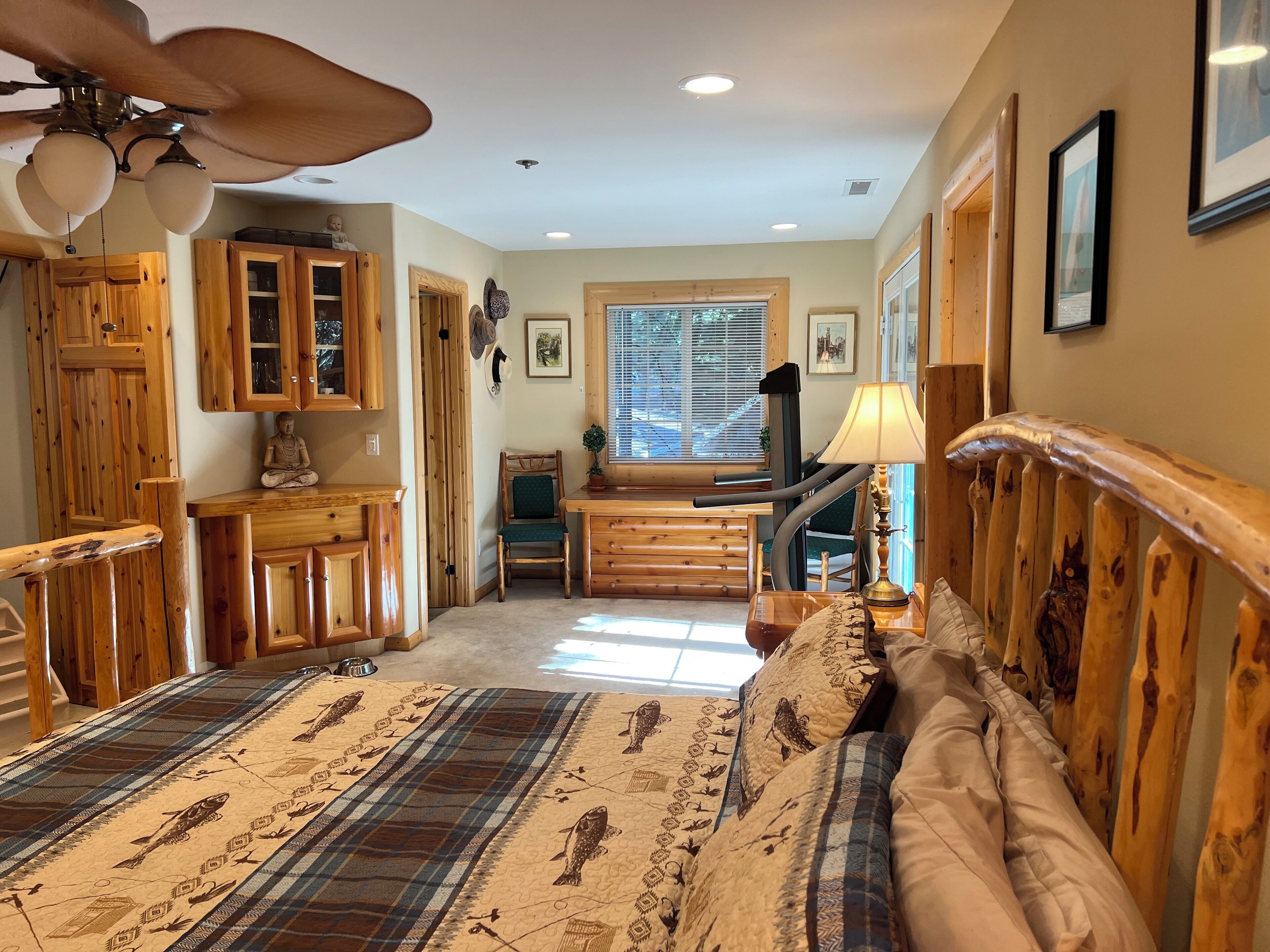 Custom Home in Almanor Pines WEEKLY RENTALS ONLY PLEASEPaved driveway to front door. Front entry takes you to office/guest bedroom, master bedroom and stairs leading to downstairs main area. Great room is open with beautiful stone fireplace, commercial kitchen and 20 foot bar. one small sofa sleeper.Note: No Traditional Living RoomSpace is designed bar & grill style with a commercial style kitchen...