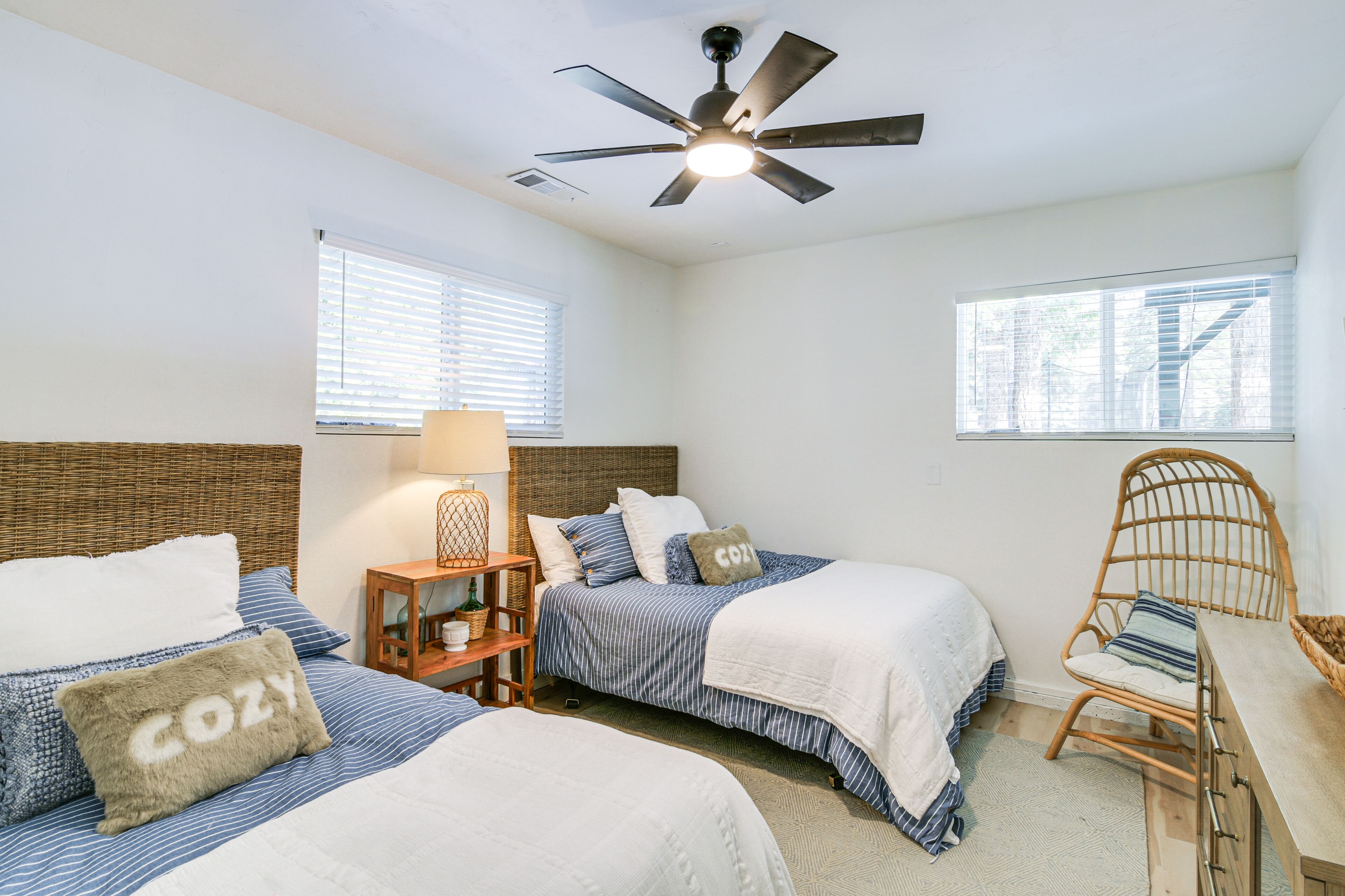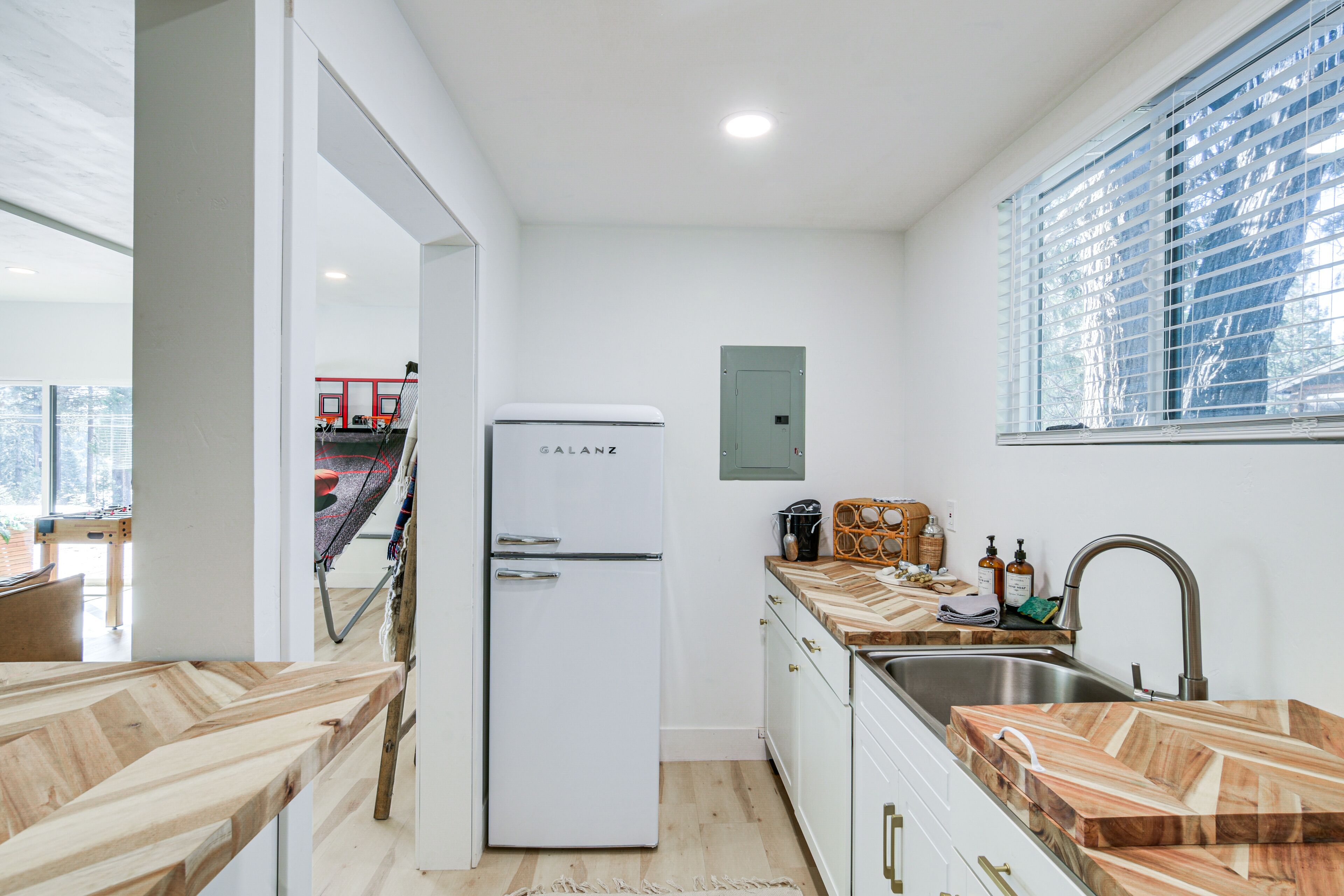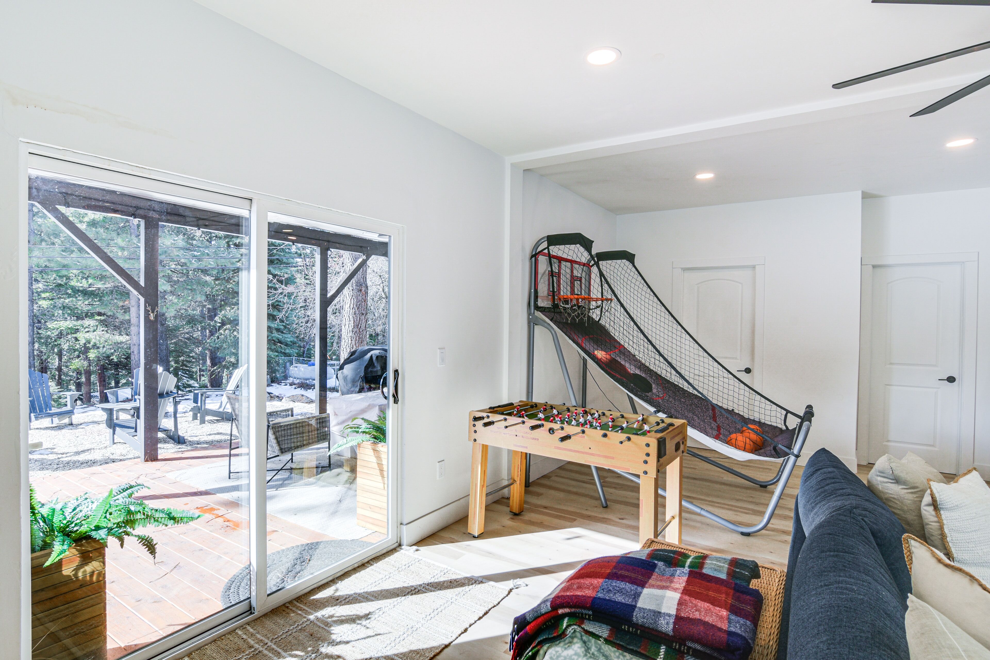 Westwood Cabin: Lake Almanor Across the Street! Escape to this newly renovated vacation rental in Westwood, CA! This 3-bedroom, 2-bath retreat features a furnished patio perfect for morning coffee and evening cookouts by the fire pit. Enjoy indoor amenities, like Smart TVs, a game room, and a cozy pellet stove! You'll be within easy reach of lake access, golf courses, and scenic hiking trails. Whether you're here for the summer sun or winter snow, this cabin offers a perfect blend of relaxation and recreation for families and small groups.-- THE PROPERTY --Pellet Stove | Game Room | Gas Fire Pit | ~ 38 Mi to Lassen Volcanic National Park | 1/8 Mi to MarinaBedroom 1: King Bed | Bedroom 2: 2 Queen Beds | Bedroom 3: 2 Queen BedsOUTDOOR LIVING: Gas grill & griddle, covered patio w/ lounge seating, balcony, cornhole, trampoline, swing set, basketball hoopINDOOR LIVING: Smart TVs, DVD player, wet bar, foosball table, arcade basketball game, board games, dining bar, ceiling fans, skylightsKITCHEN: Cooking basics, dishware/flatware, dishwasher, stove/oven, refrigerator, microwave, drip coffee maker, Keurig combo drip & pod coffee maker, kettle, toaster, air fryerGENERAL: Free WiFi, linens/towels, washer/dryer, complimentary toiletries, window A/C units, central heat, laundry detergent, clothes steamer, hair dryer, trash bags/paper towelsFAQ: 2 exterior security cameras (outward facing), steep drivewayACCESSIBILITY: 2-story cabin, step-free entry, 1 bedroom & 1 full bath on 1st floorPARKING: Driveway (3 vehicles), boat trailer parking-- THE LOCATION --LAKE ALMANOR: Knotty Pine Resort Marina (0.4 miles), Lake Cove Resort & Marina (7 miles), PG&E Picnic Park (9 miles)GOLF DAYS: Bailey Creek Golf Course (2 miles), Lake Almanor Country Club (3 miles), Lake Almanor West Golf Course (15 miles), Mt. Huff Golf Course (25 miles)OPT OUTSIDE: Pacific Crest Trail (16 miles), Lassen National Forest (23 miles), Feather River Hot Springs (35 miles), Lassen Volcanic National Park (38 miles), Plumas National Forest (48 miles)AIRPORT: Reno-Tahoe International Airport (119 miles)-- REST EASY WITH US --Evolve makes it easy to find and book properties you’ll never want to leave. You can relax knowing that our properties will always be ready for you and that we’ll answer the phone 24/7. Even better, if anything is off about your stay, we’ll make it right. You can count on our homes and our people to make you feel welcome--because we know what vacation means to you.-- POLICIES --- No smoking- No pets allowed- No events, parties, or large gatherings- Must be at least 30 years old to book- Additional fees and taxes may apply- Photo ID may be required upon check-in- NOTE: This 2-story cabin features step-free entry with a bedroom, a full bathroom, and a living area on the 1st floor. Stairs are required to reach the upstairs bedrooms, living area, and kitchen- NOTE: Your safety matters. The property features 2 exterior security cameras located at the front door facing the entrance and on the side of the home facing the driveway. The cameras are outward facing and do not look into interior spaces. The cameras record video and sound when activated by motion