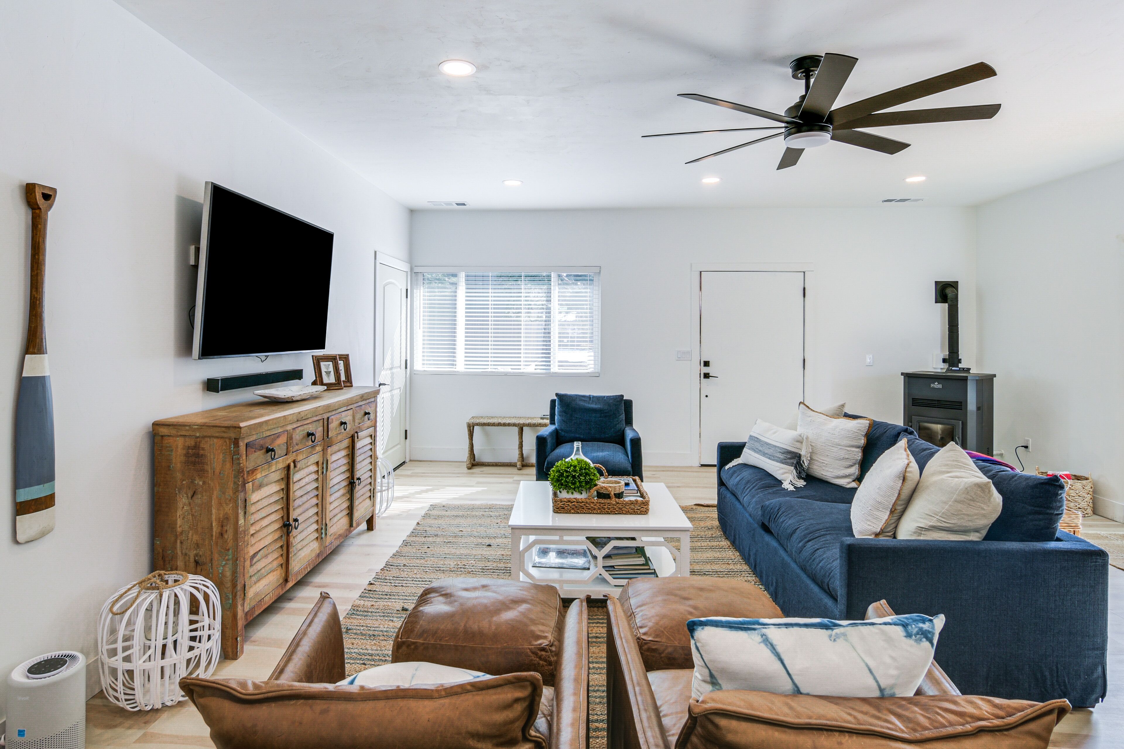 Westwood Cabin: Lake Almanor Across the Street! Escape to this newly renovated vacation rental in Westwood, CA! This 3-bedroom, 2-bath retreat features a furnished patio perfect for morning coffee and evening cookouts by the fire pit. Enjoy indoor amenities, like Smart TVs, a game room, and a cozy pellet stove! You'll be within easy reach of lake access, golf courses, and scenic hiking trails. Whe...