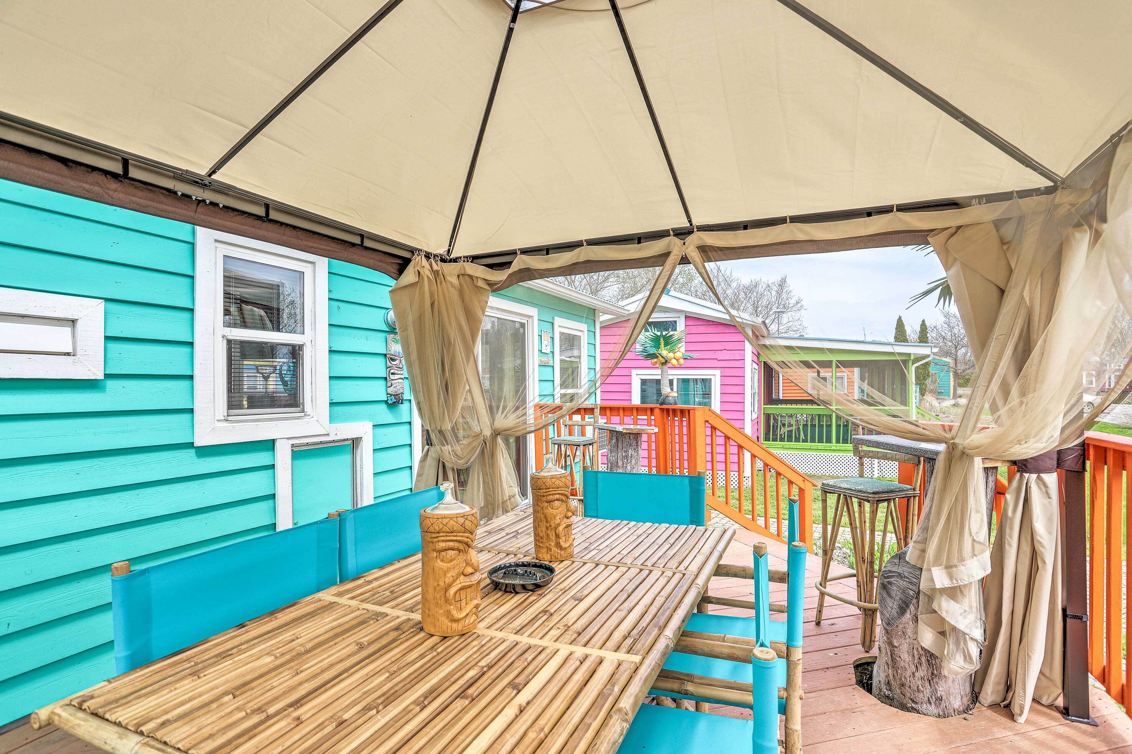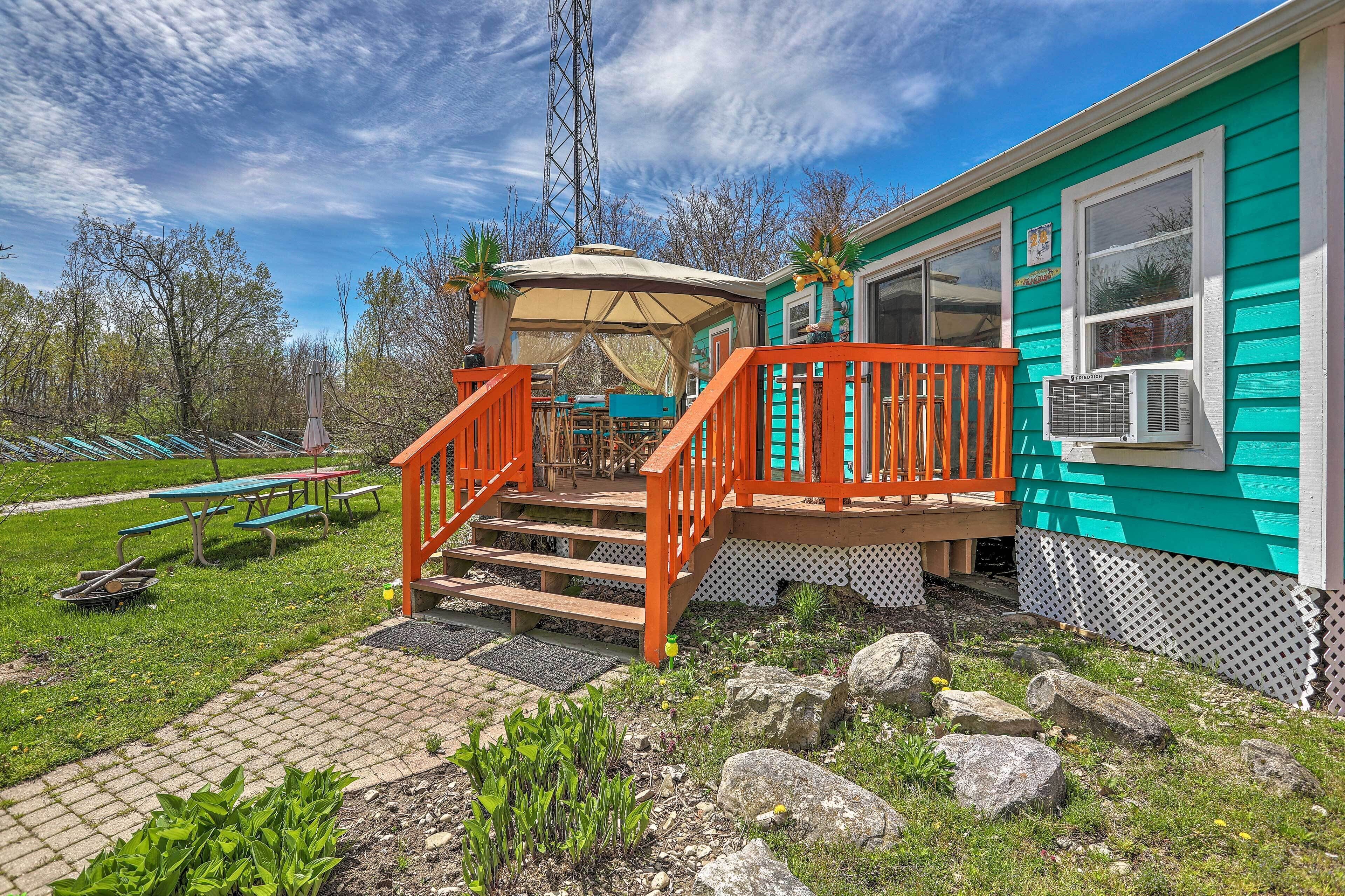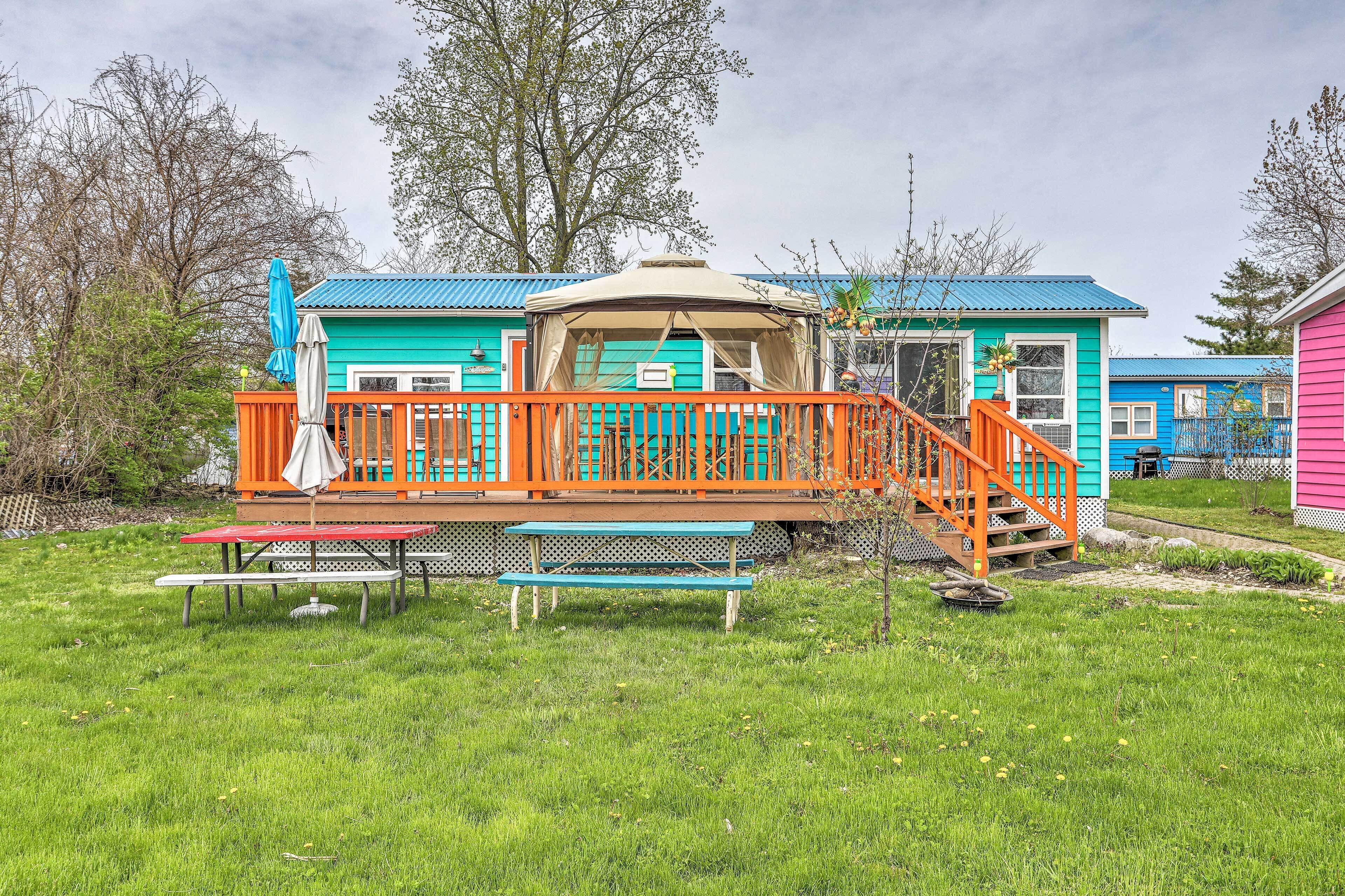 Middle Bass Resort Villa w/ Grill + Deck! Dive into a tropical escape to Lake Erie’s Middle Bass Island at this 1-bedroom, 1-bath home in St. Hazards Resort! This island-themed vacation rental offers access to the resort pool, hot tub and bar, and features plenty of space for you to kick back with the family! Relax in the shade of the cabana on the deck while the grill is fired up, or take the Son...