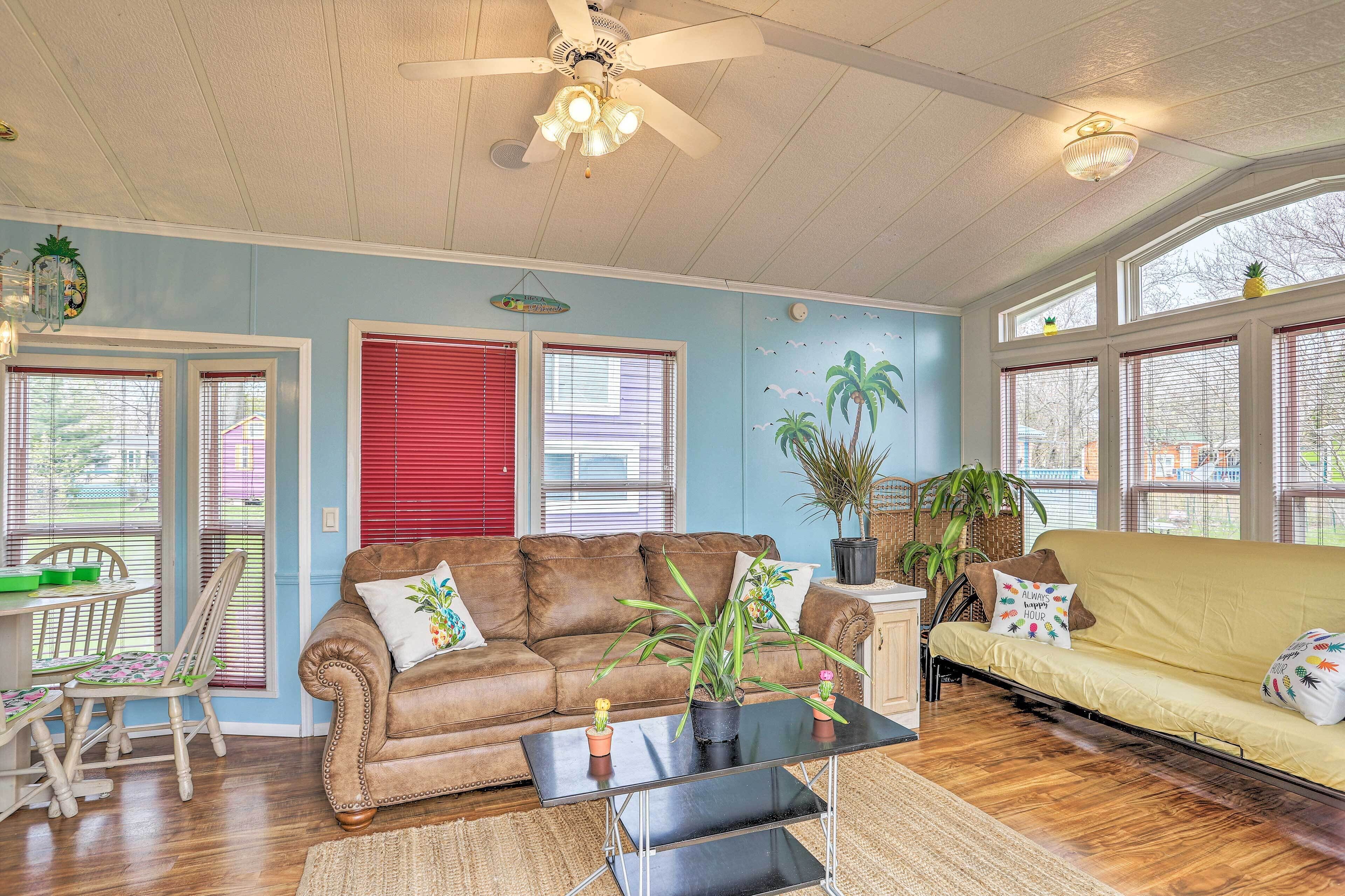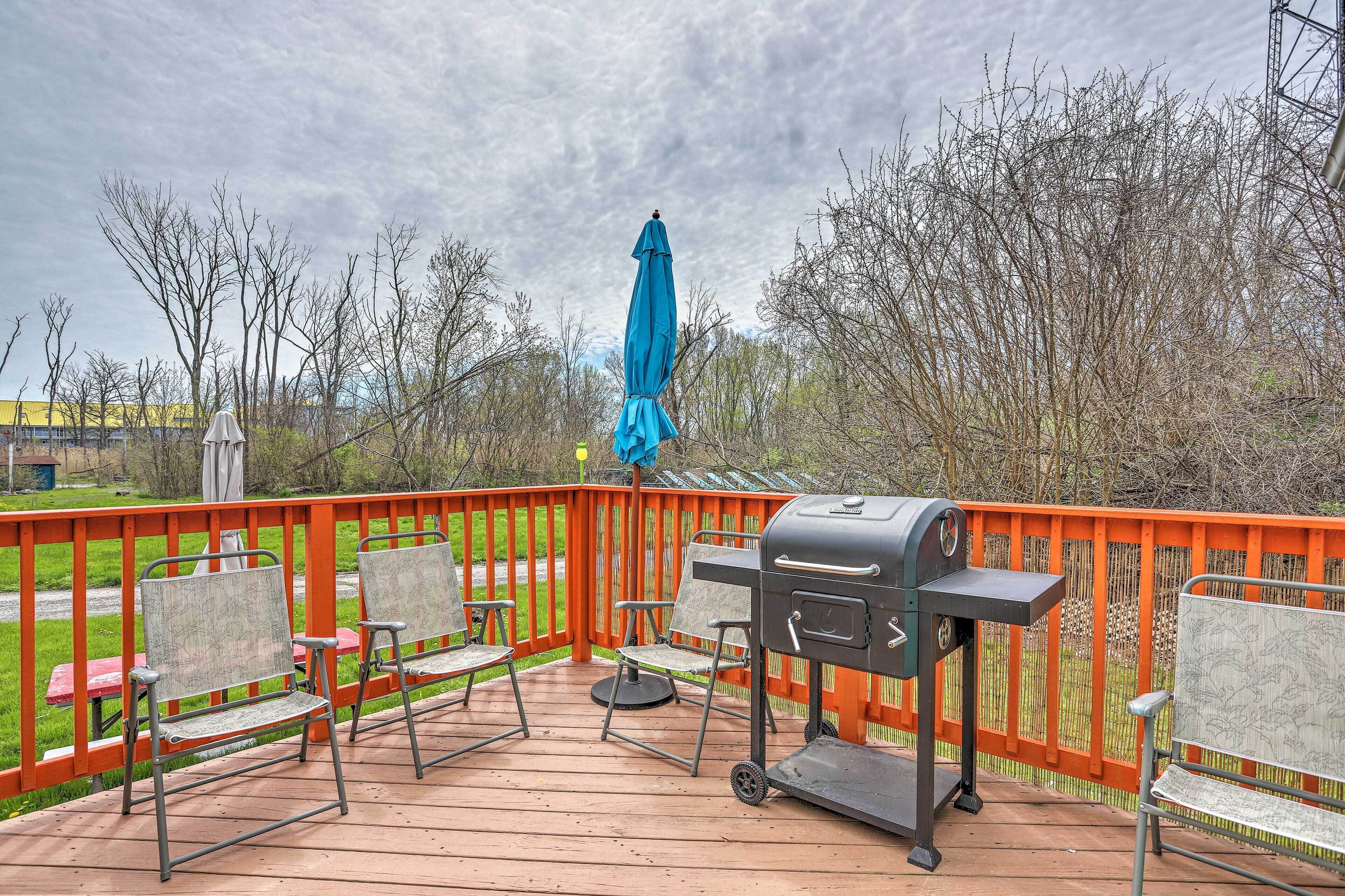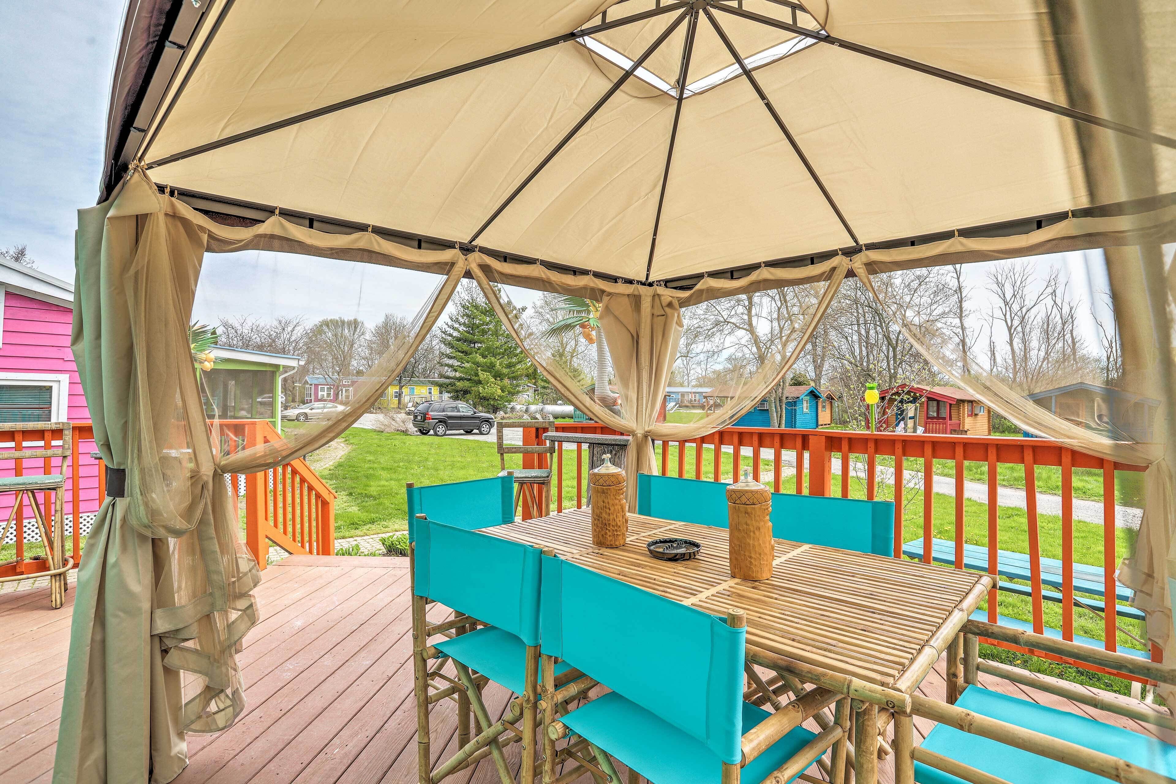 Middle Bass Resort Villa w/ Grill + Deck! Dive into a tropical escape to Lake Erie’s Middle Bass Island at this 1-bedroom, 1-bath home in St. Hazards Resort! This island-themed vacation rental offers access to the resort pool, hot tub and bar, and features plenty of space for you to kick back with the family! Relax in the shade of the cabana on the deck while the grill is fired up, or take the Son...