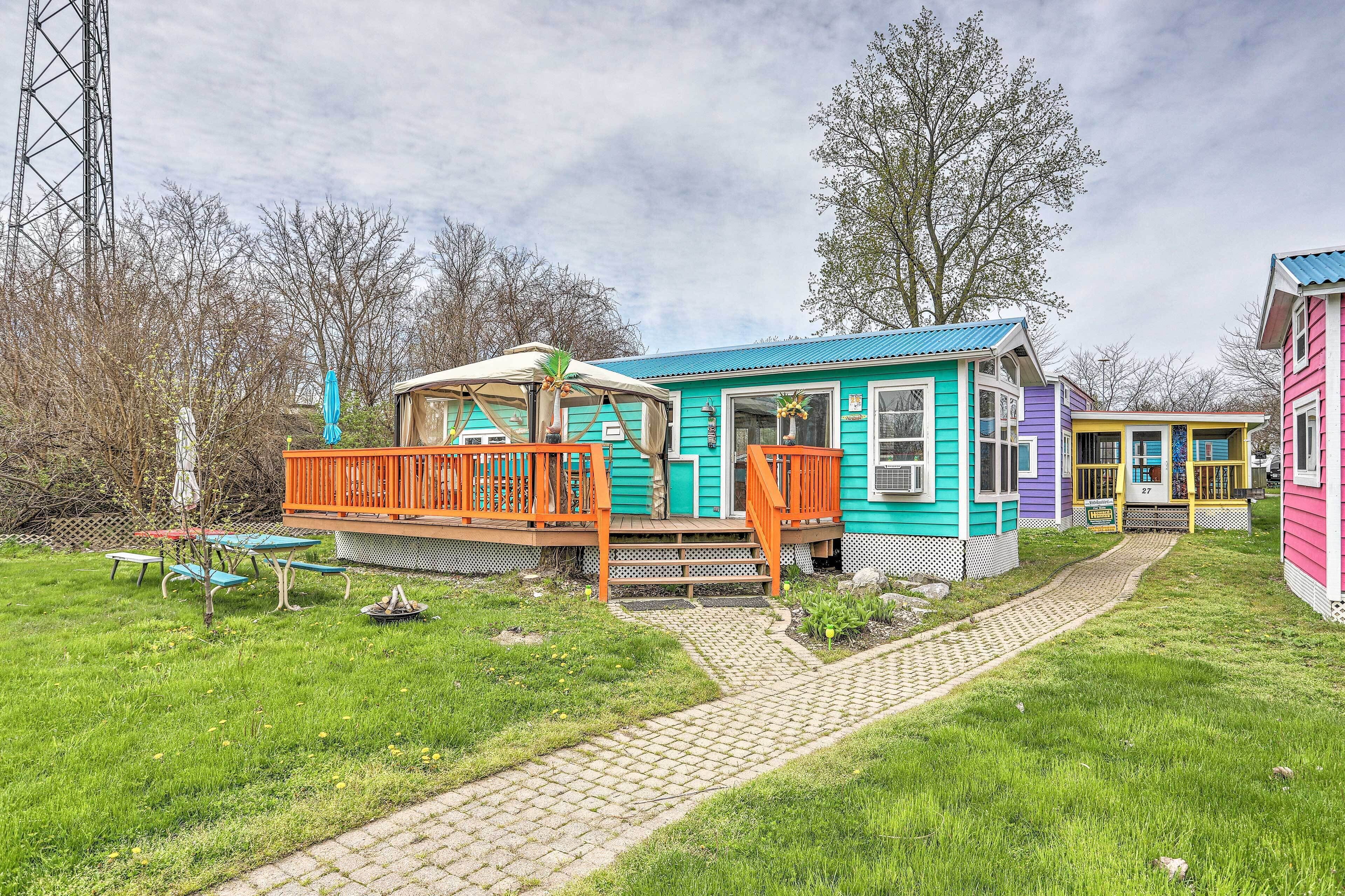 Middle Bass Resort Villa w/ Grill + Deck! Dive into a tropical escape to Lake Erie’s Middle Bass Island at this 1-bedroom, 1-bath home in St. Hazards Resort! This island-themed vacation rental offers access to the resort pool, hot tub and bar, and features plenty of space for you to kick back with the family! Relax in the shade of the cabana on the deck while the grill is fired up, or take the Sonny S Ferry to Put-in-Bay where nightlife awaits, frozen drinks are mixed, and golf carts are the main form of transportation!-- THE PROPERTY --Resort Amenities | Free WiFiThis colorful home will transport you to a vacation state of mind, boasting breezy tropical decor, all the essentials for a good time, and resort amenities just steps away!Bedroom: Queen Bed | Loft: Queen Bed | Living Room: FutonOUTDOOR LIVING: Furnished deck, fire pit, cabana, propane grill, picnic tables, bicyclesKITCHEN: Well-equipped, drip coffee makerINDOOR LIVING: 2 antenna TVs, floor-to-ceiling windows, island-themed decorGENERAL: Trash bags, paper towels, window A/C unitsSUITABILITY: 4 steps to access, single-story homePARKING: Free parking is available at the St. Hazards Resort-- THE LOCATION --ST. HAZARDS RESORT: Pool access, hot tub access, tropical resort bar, 15 minute walk to ferryLAKE ERIE: Fishing (Walleye, Perch, Smallmouth Bass), watersports, Kelleys IslandBEACHES: Middle Bass Island State Park (0.8 miles), South Bass Island State Park (6.7 miles)RESTAURANTS: Uncle Joe’s Pizza (0.3 miles), J F Walleyes (0.6 miles), St. Hazards Resort (on-site), Hazards Microbrewery & RestaurantSOUTH BASS ISLAND (20-minute ferry ride): Bars, restaurants, nightlife, boat and jet ski rentals, golf cart rentalsAIRPORT: Cleveland Hopkins International Airport (78.4 miles)-- REST EASY WITH US --Evolve makes it easy to find and book properties you'll never want to leave. You can relax knowing that our properties will always be ready for you and that we'll answer the phone 24/7. Even better, if anything is off about your stay, we'll make it right. You can count on our homes and our people to make you feel welcome — because we know what vacation means to you.-- POLICIES --- No smoking- Not pets allowed- No events, parties or large gatherings- Must be at least 25 years old to book- Additional fees and taxes may apply- Photo ID may be required upon check-in- NOTE: Bringing a vehicle onto the island is possible by ferry with additional costs- NOTE: Linens and one towel are provided for each guest but it is recommended that they bring their own- NOTE: Resort amenities may or may not be available due to resort scheduled maintenance- NOTE: Due to the location of this property on an island, internet, power, and utility outages can occur- NOTE: This property requires 4 exterior stairs for access