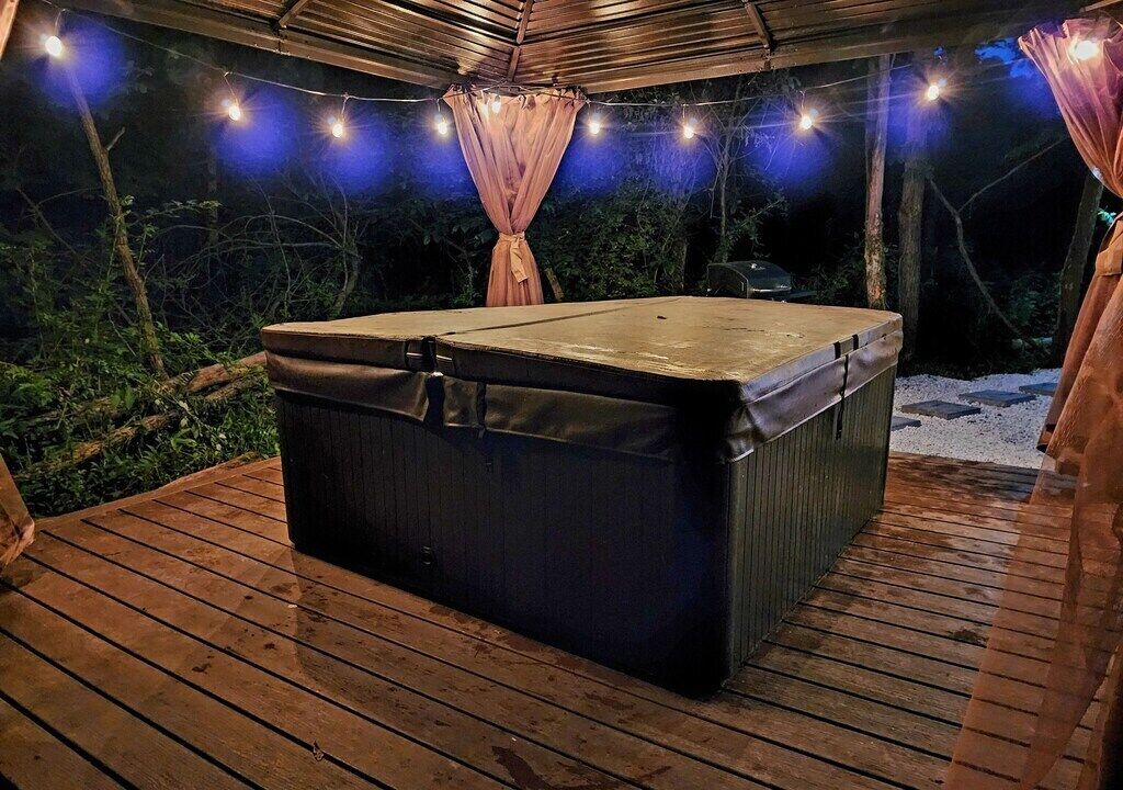 Bunny Bungalow Geodome in the woods near Hocking Hills, for intimate get away. Newer 30ft diameter (700sq ft), 15foot ceiling height geodesic dome with a huge panoramic window overlooking the 20 acres of forested area. The geodome is located on the twenty acres, part of 62 acres. The acreage goes behind and to the side. There is a gazebo with 2-3 person hot tub. Specifically built for 2 ADULTS age...