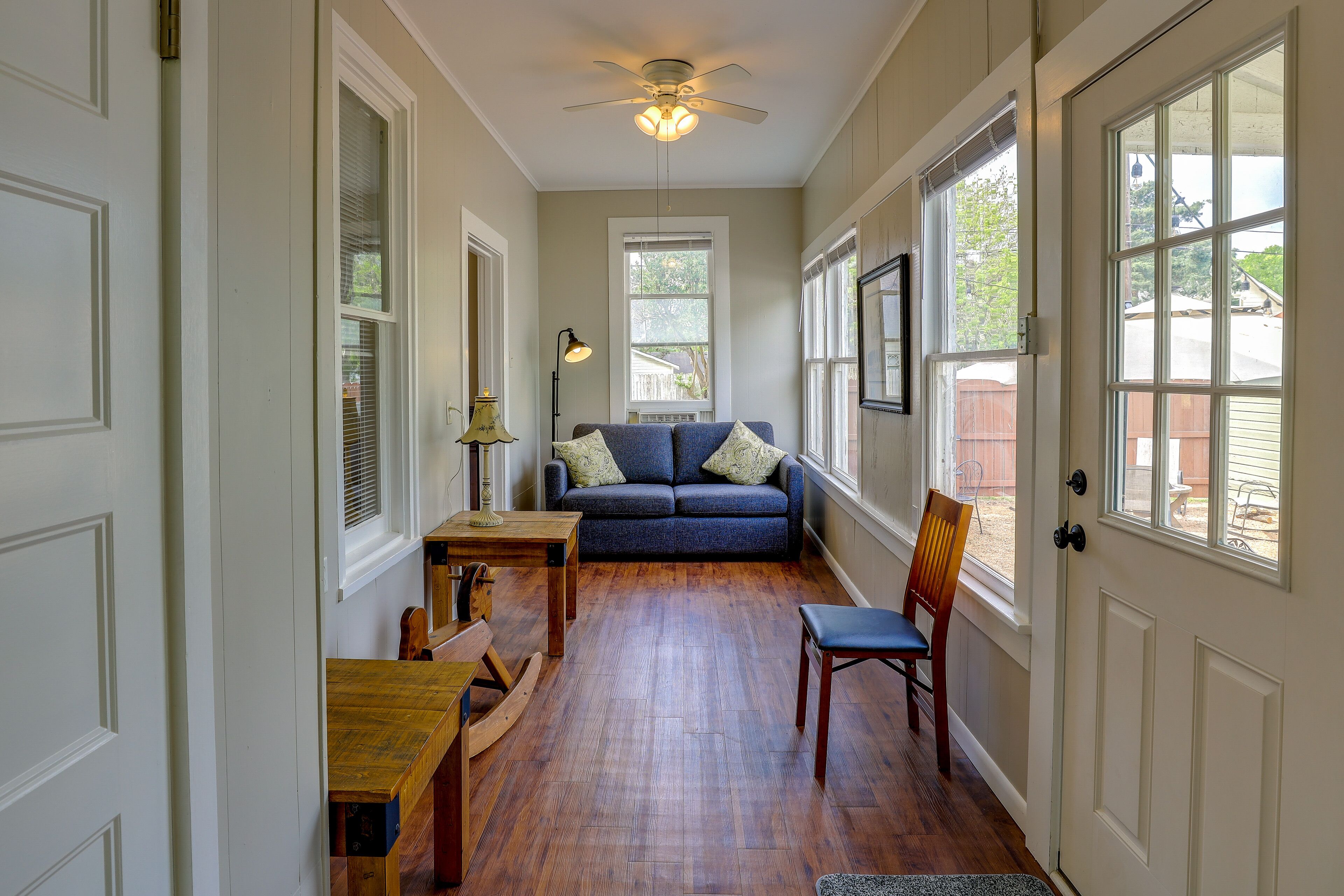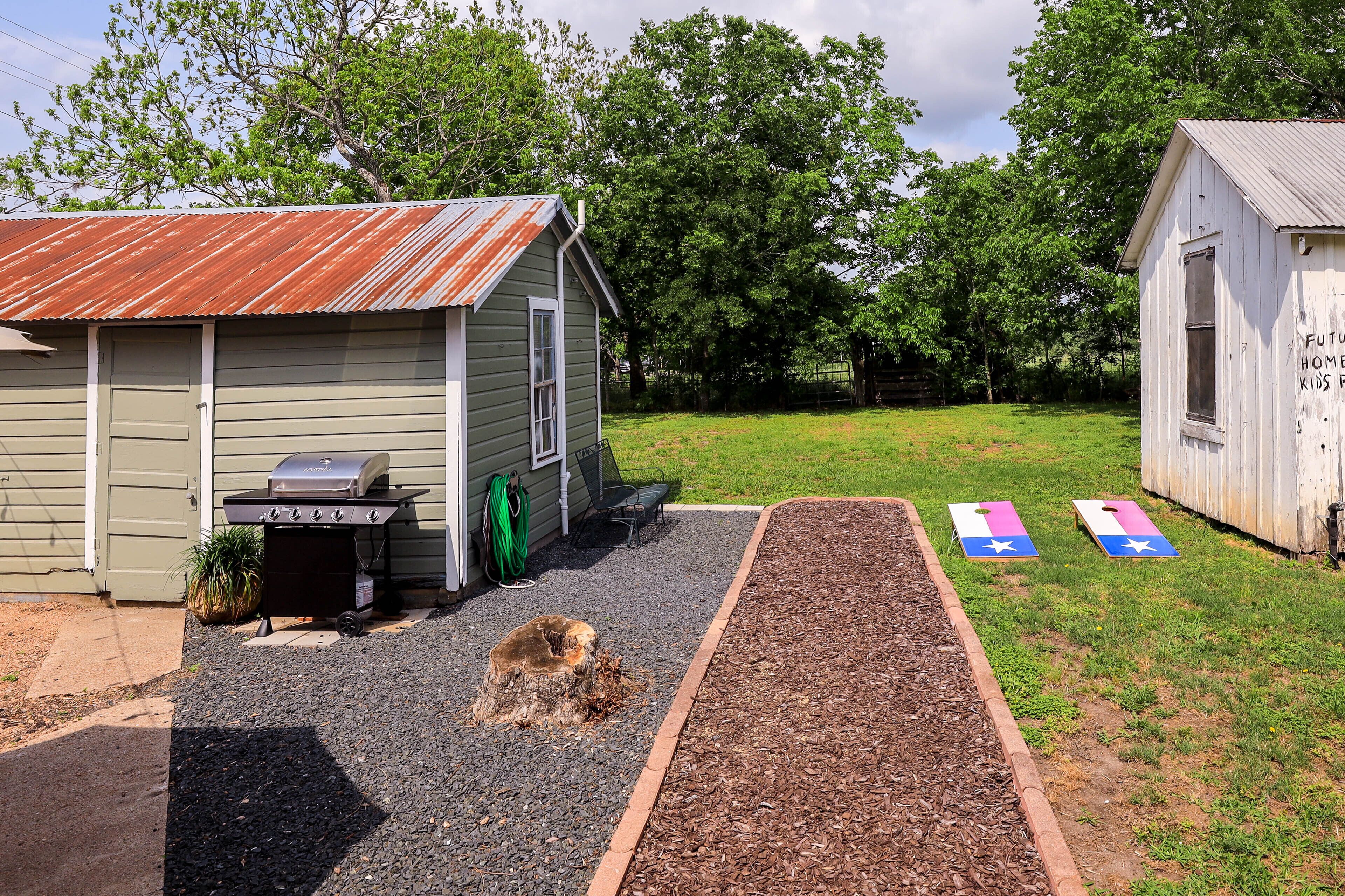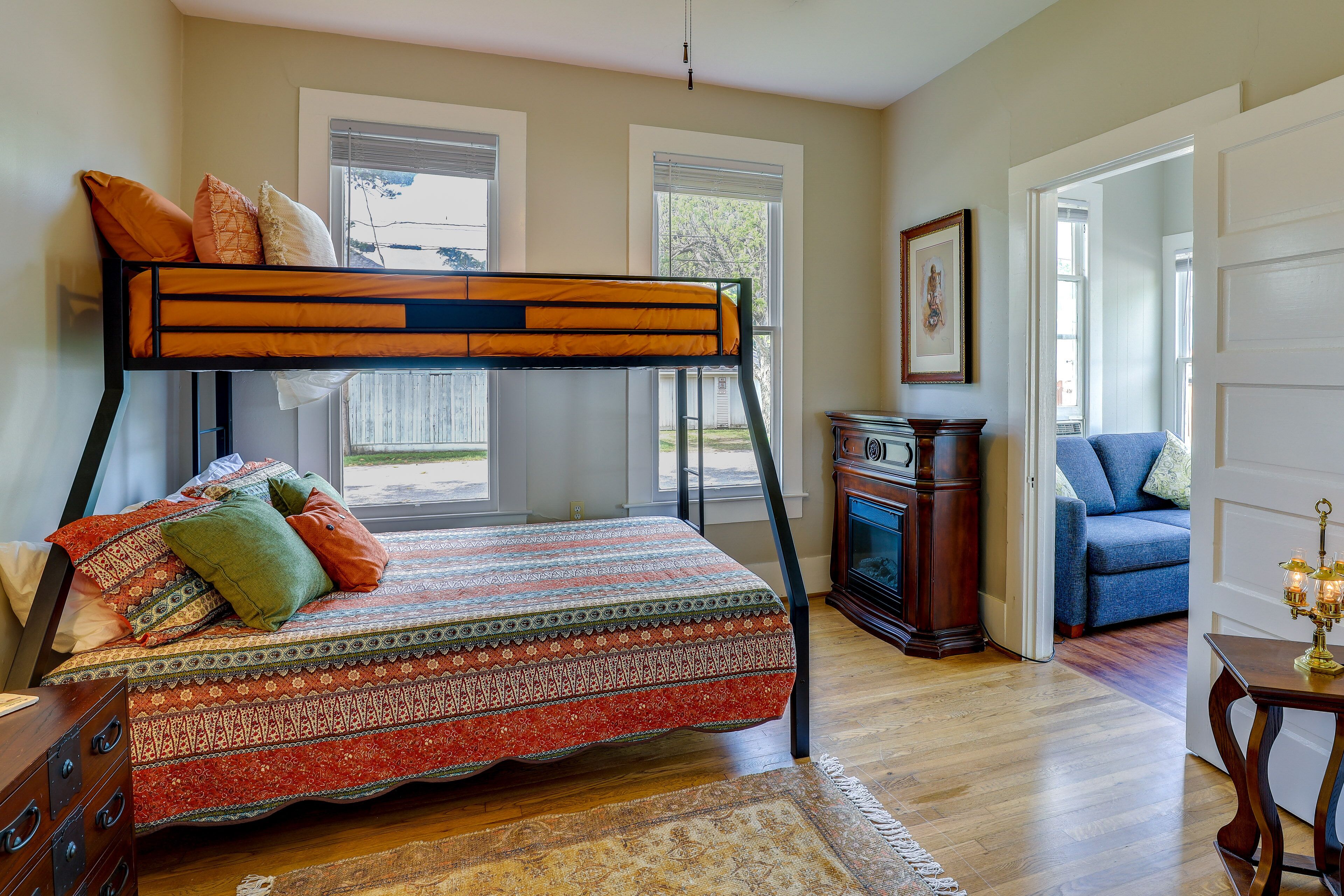 Cozy Bellville Home w/ Gas Grill + Private Yard! Get away from the hustle and bustle of the city at this peaceful and quiet Bellville vacation rental! Be sure to check out the Austin County Fair Convention & Expo when it’s in town, pack your clubs for afternoons on the greens of the Bellville Golf & Recreation Club, or discover your new favorite glass of red or white at a nearby winery. Then, return to this 2-bedroom, 1-bath home for a good old-fashioned Texas barbeque on the gas grill and roast marshmallows on the fire pit with the kids!-- THE PROPERTY --Free WiFi | Fire Pit (Wood Provided) | Espresso MachineBedroom 1: King Bed | Bedroom 2: Twin/Queen Bunk Bed | Sitting Room: Queen Sleeper SofaOUTDOOR LIVING: Gas grill (propane provided), patio, outdoor dining area w/ umbrella, private yard, porch swing, corn holeINDOOR LIVING: Flat-screen TV w/ cable, fireplace, dining tables, bathtub/showerKITCHEN: Refrigerator, microwave, stove/oven, Keurig coffee maker, kettle, cooking basics, dishware/flatwareGENERAL: Ceiling fans, window A/C unit, linens/towels, washer/dryer, complimentary toiletries, hangers, iron/board, trash bags/paper towelsFAQ: Steps required for accessPARKING: Free street parking (first-come, first-served)-- THE LOCATION --AREA ATTRACTIONS: Historic Austin County Jail Museum (0.7 miles), Austin County Fair Convention & Expo (2 miles), Giant Head Of Stephen Austin (2 miles), Newman’s Castle (5 miles), Stephen F. Austin State Park (18 miles), Horseshoe Junction Family Fun Park (20 miles)TEE TIME: Bellville Golf & Recreation Club (2 miles), Legendary Oaks Golf Course (18 miles), Brenham Country Club (23 miles), Sand Hill Farm (28 miles)FINE WINE: Texas Star Winery (18 miles), Pleasant Hill Winery (18 miles), Cast Iron Winery (20 miles), Tasting Room at The Vine (21 miles), Windy Winery (25 miles)AIRPORT: Austin-Bergstrom International Airport (99 miles)-- REST EASY WITH US --Evolve makes it easy to find and book properties you’ll never want to leave. You can relax knowing that our properties will always be ready for you and that we’ll answer the phone 24/7. Even better, if anything is off about your stay, we’ll make it right. You can count on our homes and our people to make you feel welcome--because we know what vacation means to you.-- POLICIES --- No smoking- No pets allowed- No events, parties, or large gatherings- Must be at least 25 years old to book- Additional fees and taxes may apply- Photo ID may be required upon check-in- NOTE: Steps are required for access
