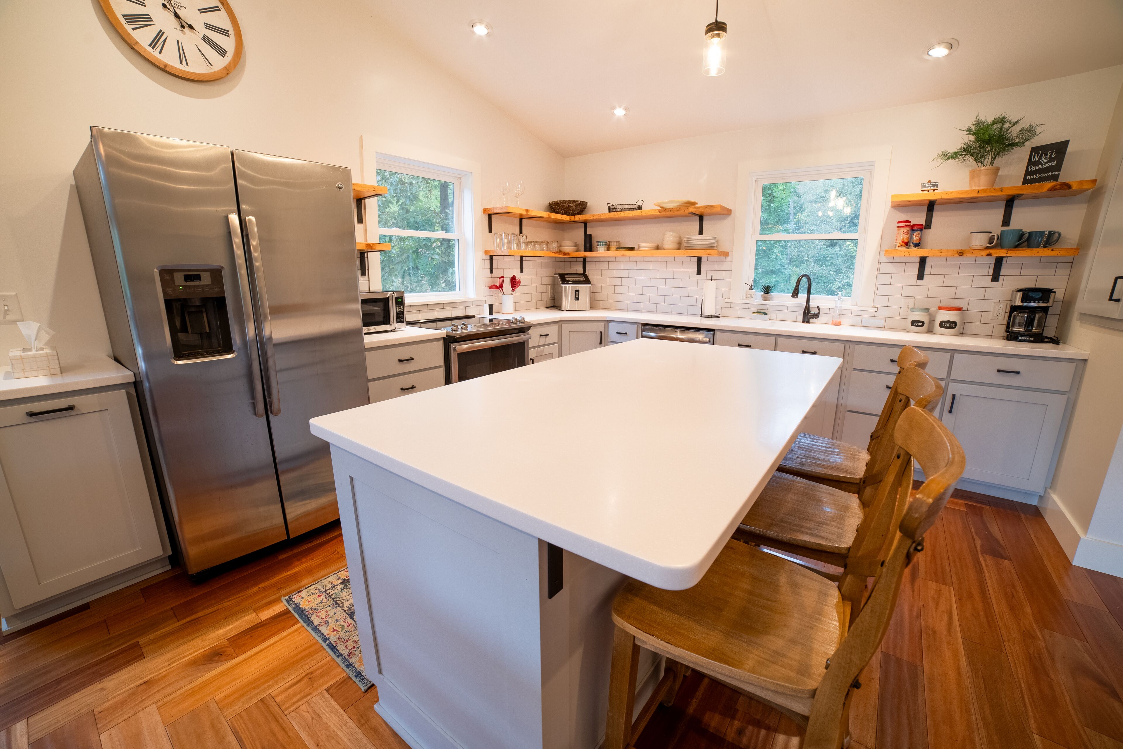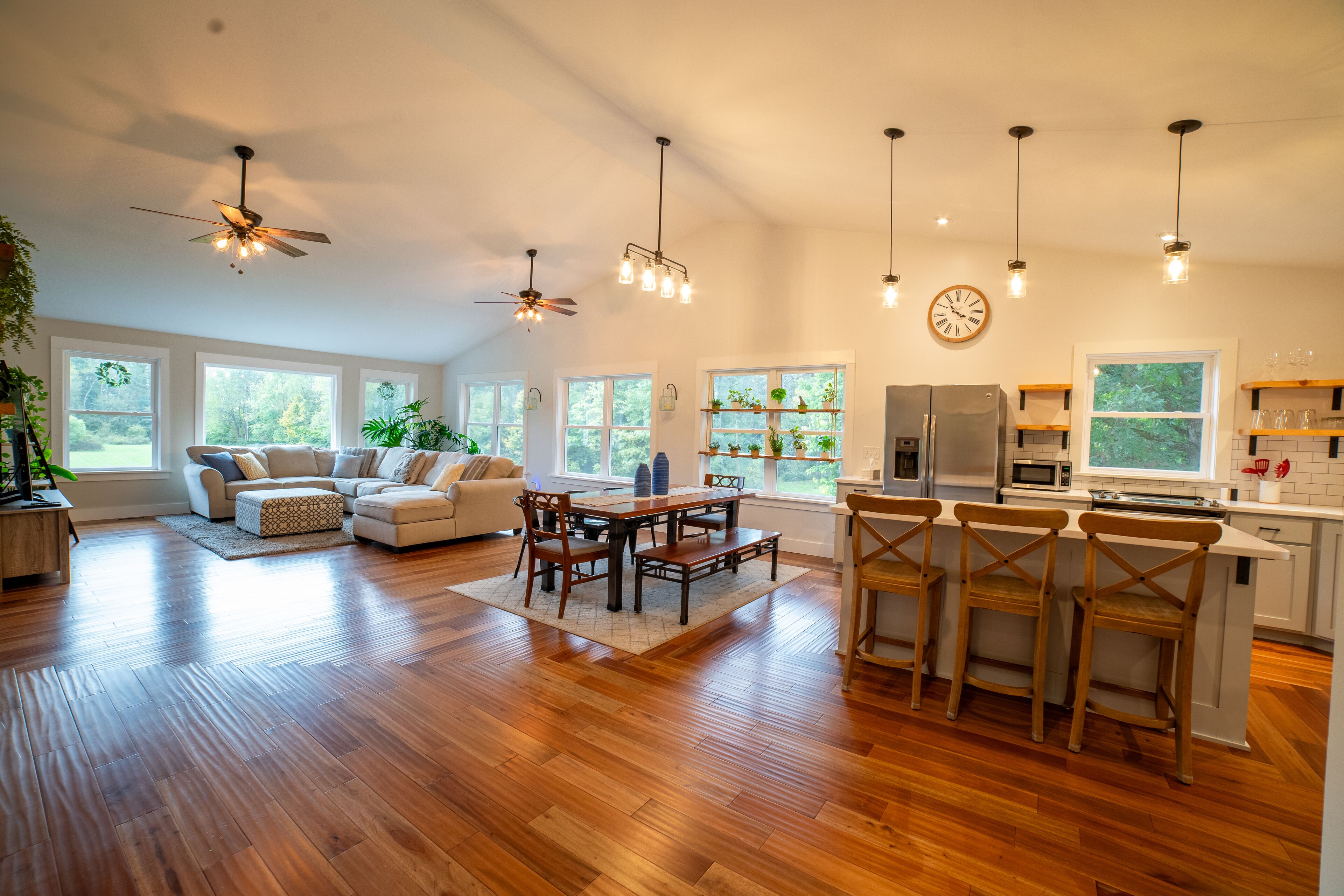 Cedar House at The Meadowood The Cedar House is located on a secluded 25 acre property, offering a perfect escape from the hustle and bustle of your everyday life.Step into a spacious and inviting home that seamlessly blends modern convenience with the rustic charm of the woods. The living areas are bathed in natural light, creating a warm and welcoming atmosphere. Welcome to your home away from home!