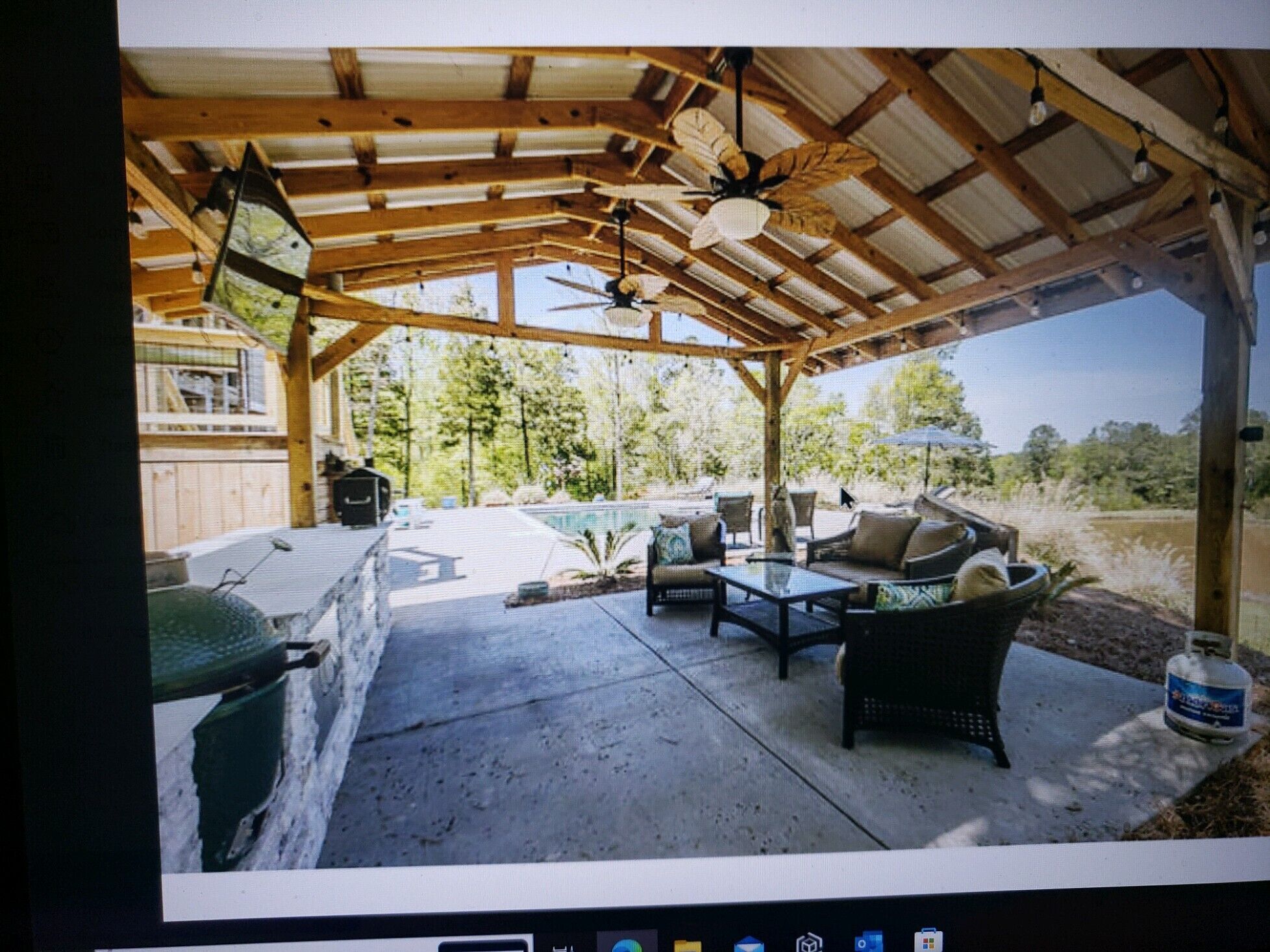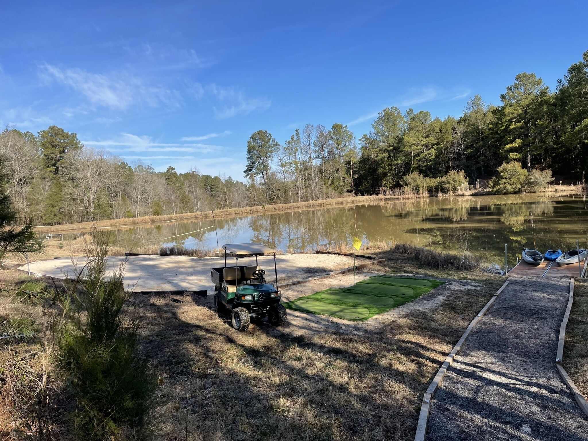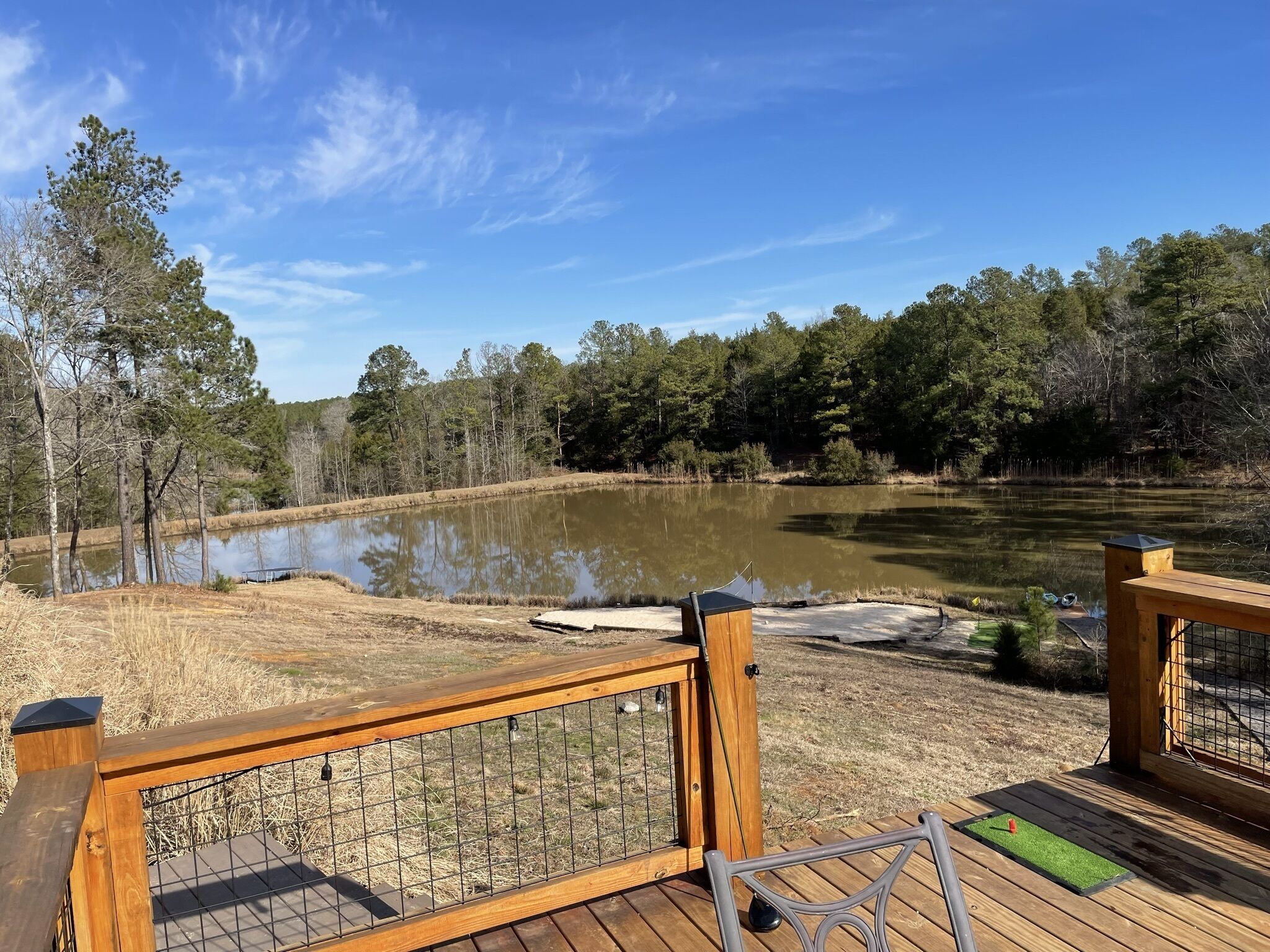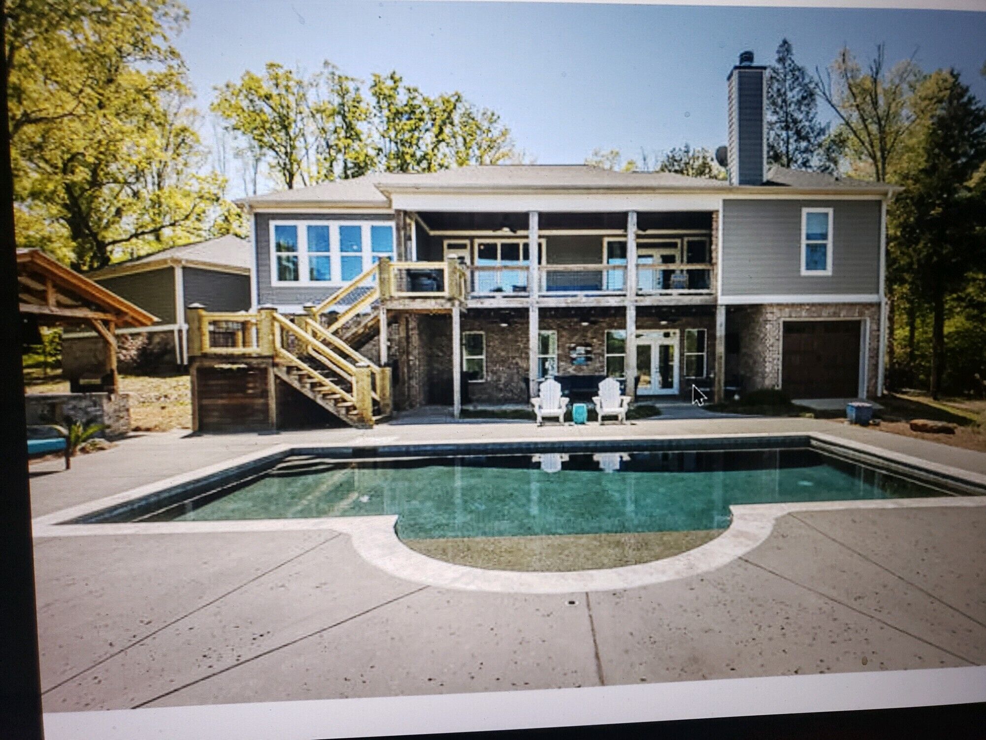 Masters 2023 Executive Retreat Home Private gated driveway enters 25 ACRES with a stunning craftsman style home, expansive covered porches with rare attention to detail inside and out. Walk-in to an open floor plan with a wall of windows allowing natural light from the covered porches, it takes you by surprise showing off a beautiful rolling landscape with 2 Ponds full of fish, gunite heated pool with slide, nice outdoor kitchen, kayaks, fishing, beach volleyball court, skeet available upon request, artificial grass chipping off of new 20 x 30 deck appr 60 yards, practice net, plenty of golf balls for competitions, frisbee disk golf course, hot tub, pool table, and much more. Inside hosts gorgeous HARDWOOD flooring, high ceilings, fireplace with built-ins. A beautiful kitchen with high end SS appliances granite countertop island, breakfast room , Lg. pantry - too much to list! The Owner's Suite, stunning with Lg walk in tile shower, spacious for double sinks, large walk-in closets all with french door access to the outdoor porch and stone fireplace with TV. Downstairs comes with a kitchenette, a 2nd master suite with private bath, den, 3 additional bedrooms and another full bath. Please ask for additional details, can provide other services such as transportation for your entire stay, cleaning and/or cooking for an additional charge. Make the Masters 2023 unforgettable for you and your guests. GO Big!