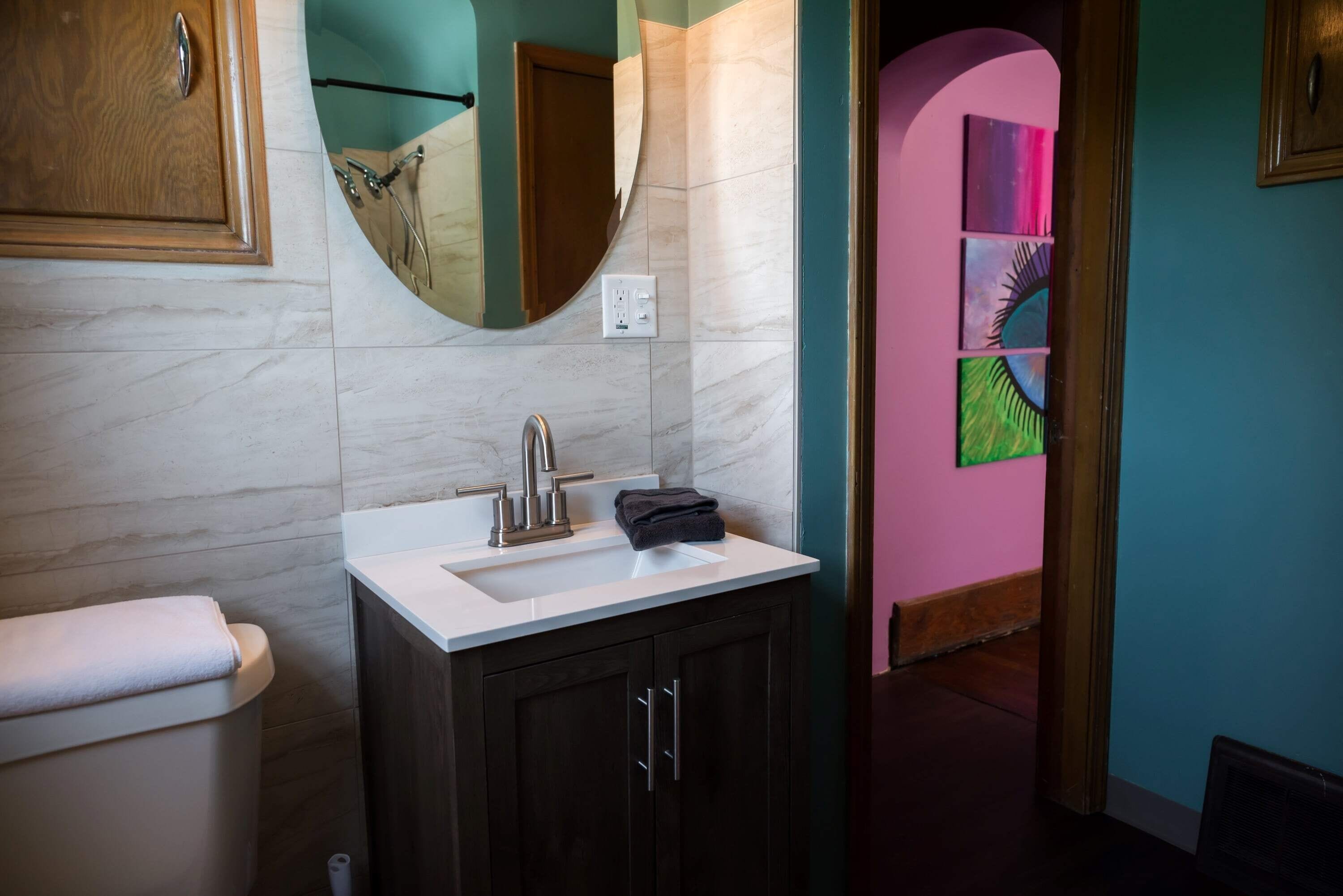The Utopian Groove Studio Summary:This is an add-on space to the Cherry Nirvana Space. It can also be rented independently. This is the downstairs unit, and as such there is a bit of sound transfer from the upstairs. We do have posted quiet hours for both units. The [Utopian] Groove studio can accommodate 4+ guests to sleep, but also be turned into a bit of an event space, for dinner gatherings and paint parties.** No cleaning feesWell behaved / quiet pets are permitted with an additional pet deposit and prior approval.The Space:This suite was created to host paint parties for the Utopian Bizarre owner, Jill. However, we created a convertible space to allow for a guest stay, but also add on to the Cherry Nirvana Suite to create a whole house rental that can accommodate a small dinner or paint party. The downstairs "Groove" has a wheelchair ramp and spacious front porch. The room that guests enter through can be used as a living room to watch the TV, or the furniture can be moved to accommodate chairs and tables to create a dinner party of paint party space. To the right, is the stairs that lead to the second suite (which are locked off if only renting one of the suites), Then moving to the left there is a door to the kitchen and a small bedroom (with a bunk bed), and finally to the left is a door to the bedroom with a murphy queen bed and the bathroom. The queen sized murphy bed can be collapsed to create additional space for tables / chairs.Guest Access:Guests will share the driveway, but have exclusive access to the downstairs unit and front porch.Other Things to Note:There are no cleaning fees, however if extra "elbow grease" is required to clean the suite, it will be charged back to the guest. Regular wear and tear is included in the guest cost. A cleaning list is supplied should there be any questions or concerns.Interaction with Guests:The basement is used as storage for the hosts, so you may periodically see the hosts on the property to access the basement. However, the suite is independent of the basement entrance and guests are given privacy