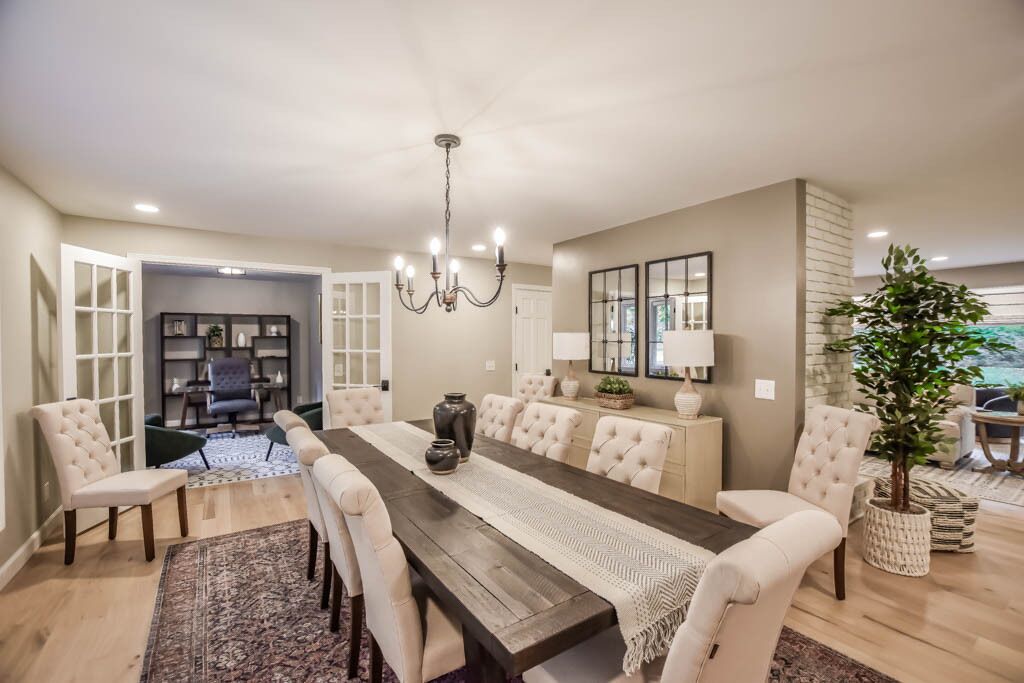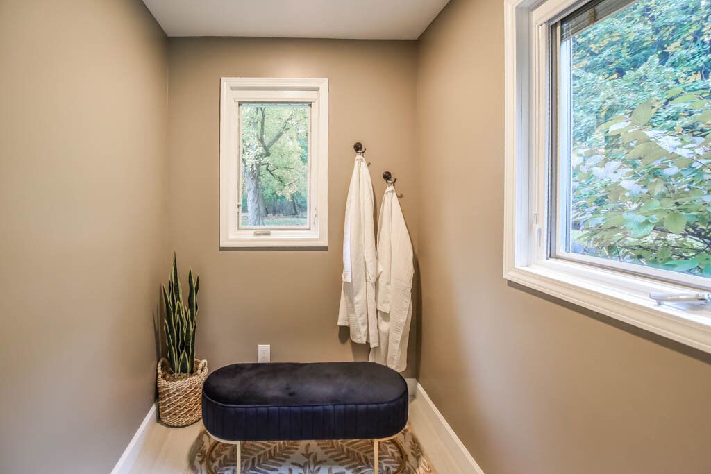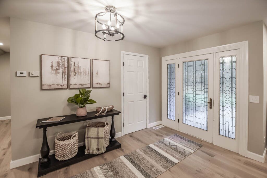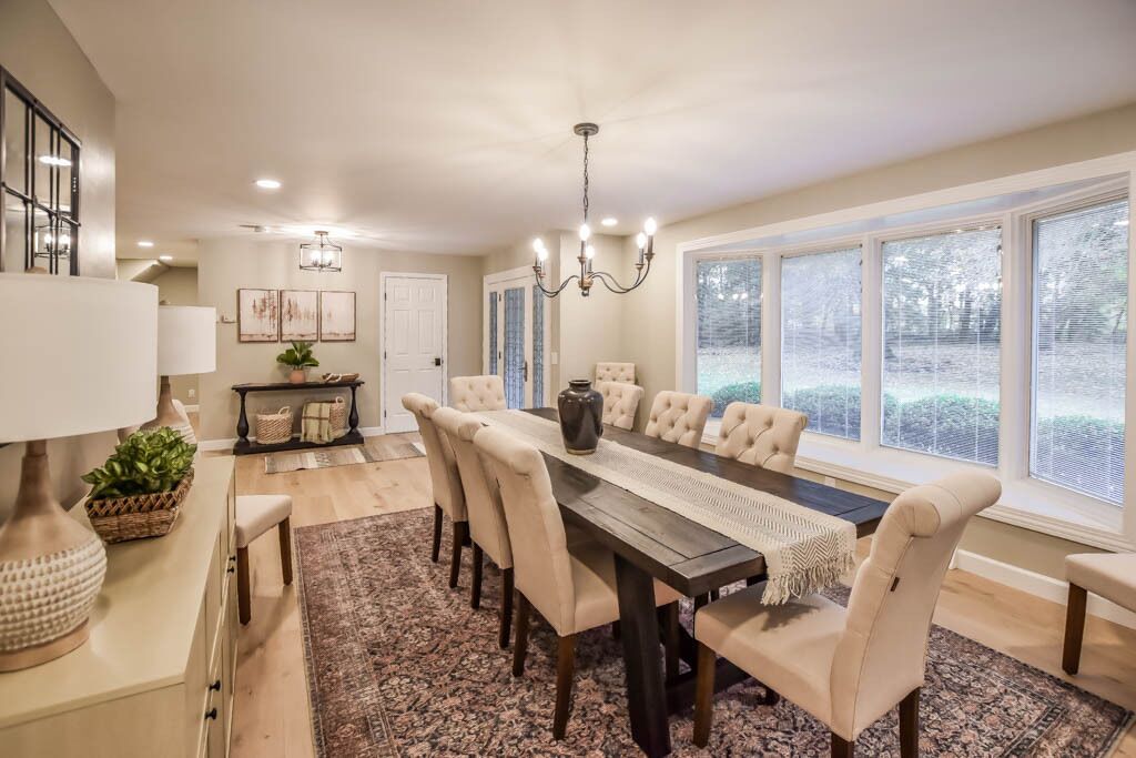 City estate offering privacy & seclusion near many attractions Welcome to your own private and secluded city estate surrounded by woods and nature. Enjoy the grounds from the back patio, covered porch or through the large windows on the main level that let the natural light pour into the newly remodeled 5BR/3BA home. The focal point of the main floor is the fireplace surrounded by the open kitchen, dining and living area. The first floor main bedroom suite features a huge bathroom with dual head shower, double vanity sinks, sitting area and toilet closet. The main floor is completed with an office, full bath, mudroom, and laundry. The second floor features four bedrooms and a full bath each complete with a ceiling fan and smart TV. The finished basement space provides a second living area with fireplace and smart TV.