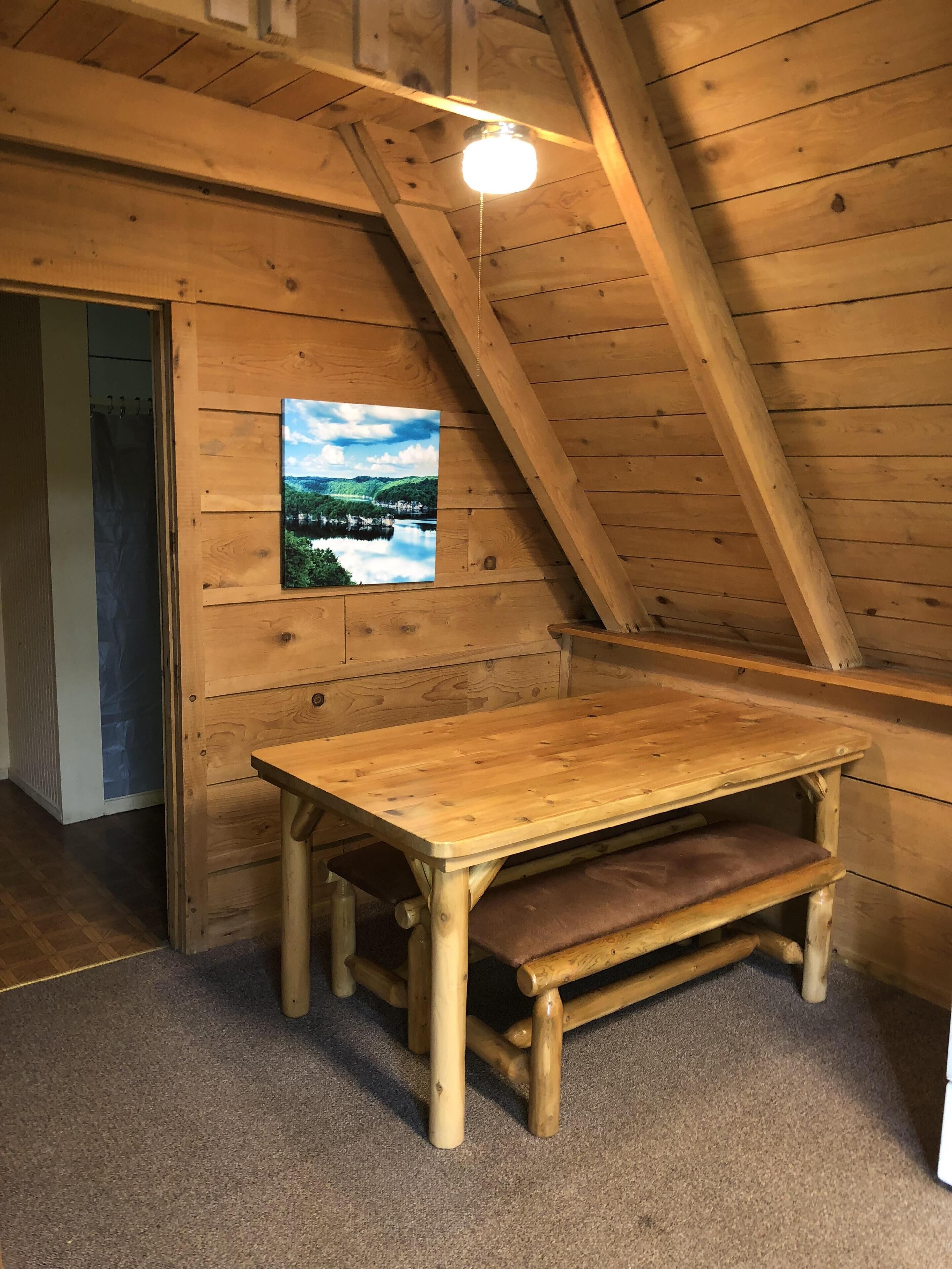 All Decked Out - Pet Friendly with Hot Tub All Decked Out is located on 20 acres of semi secluded West Virginia wilderness. It's distinctive A-frame, in the chalet style is perfect for the wooded environment of the Gauley River National Recreation Area and the New River George Region. Cabin includes a private deck, sleeping loft, master bedroom, a full bathroom, living room, full kitchen and dinette area. All Decked Out also includes free WiFi, smart TV, air conditioning, gas heat, fire ring, picnic table, gas grill, and a 5 person hot tub.