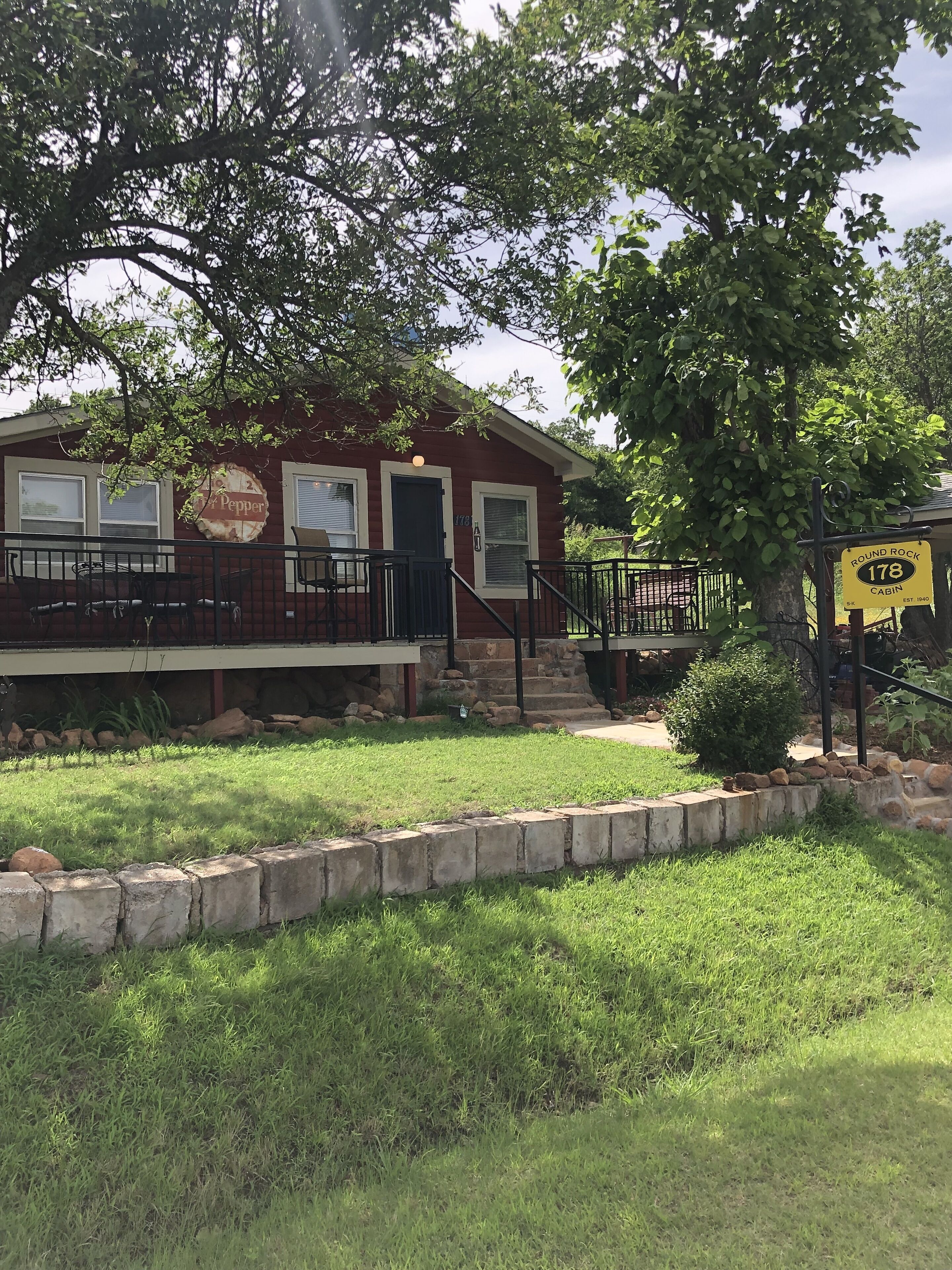 Cheerful 2 bedroom cabin in beautiful Medicine Park! Welcome to Round Rock Cabin! Our 2 bedroom, 1 bath cabin combines vintage touches with modern amenities. Explore all that Medicine Park has to offer as this cabin is directly across the creek from downtown. Quaint shops and yummy restaurants are mere steps away. Enjoy a day at the Medicine Park Aquarium, visiting the Wichita Wildlife Refuge, and swimming in Bath Lake. Or sit on the deck with your beverage of choice and relax!
