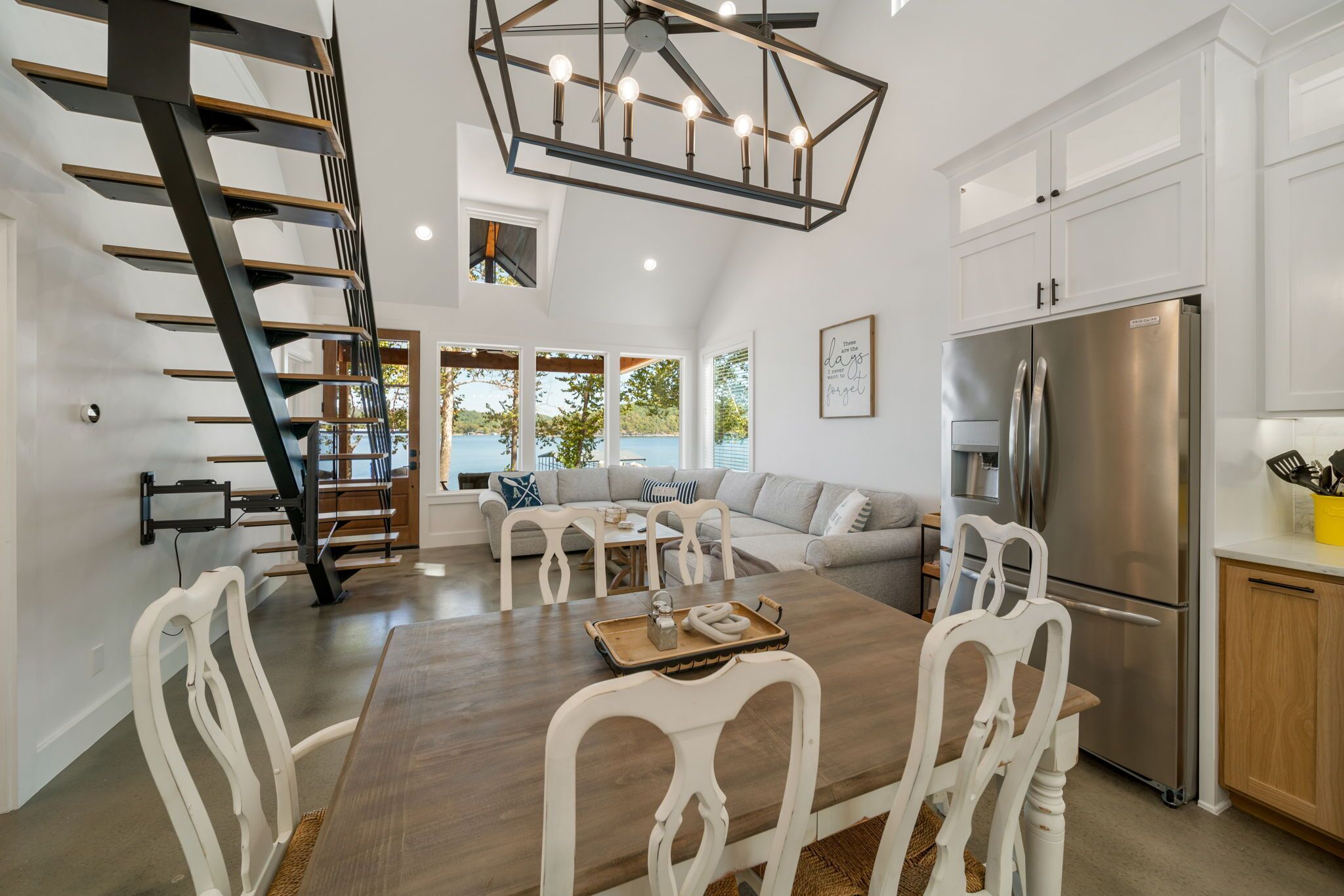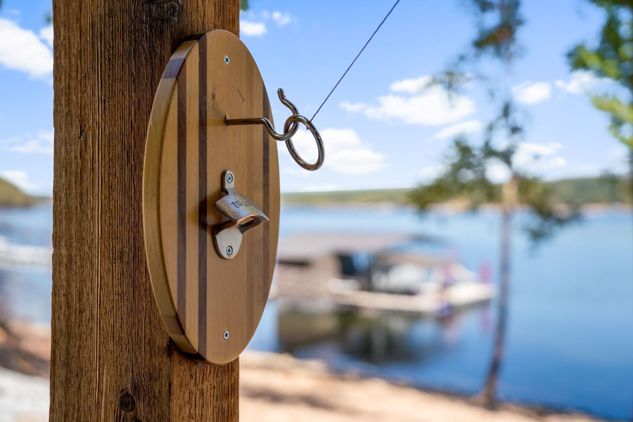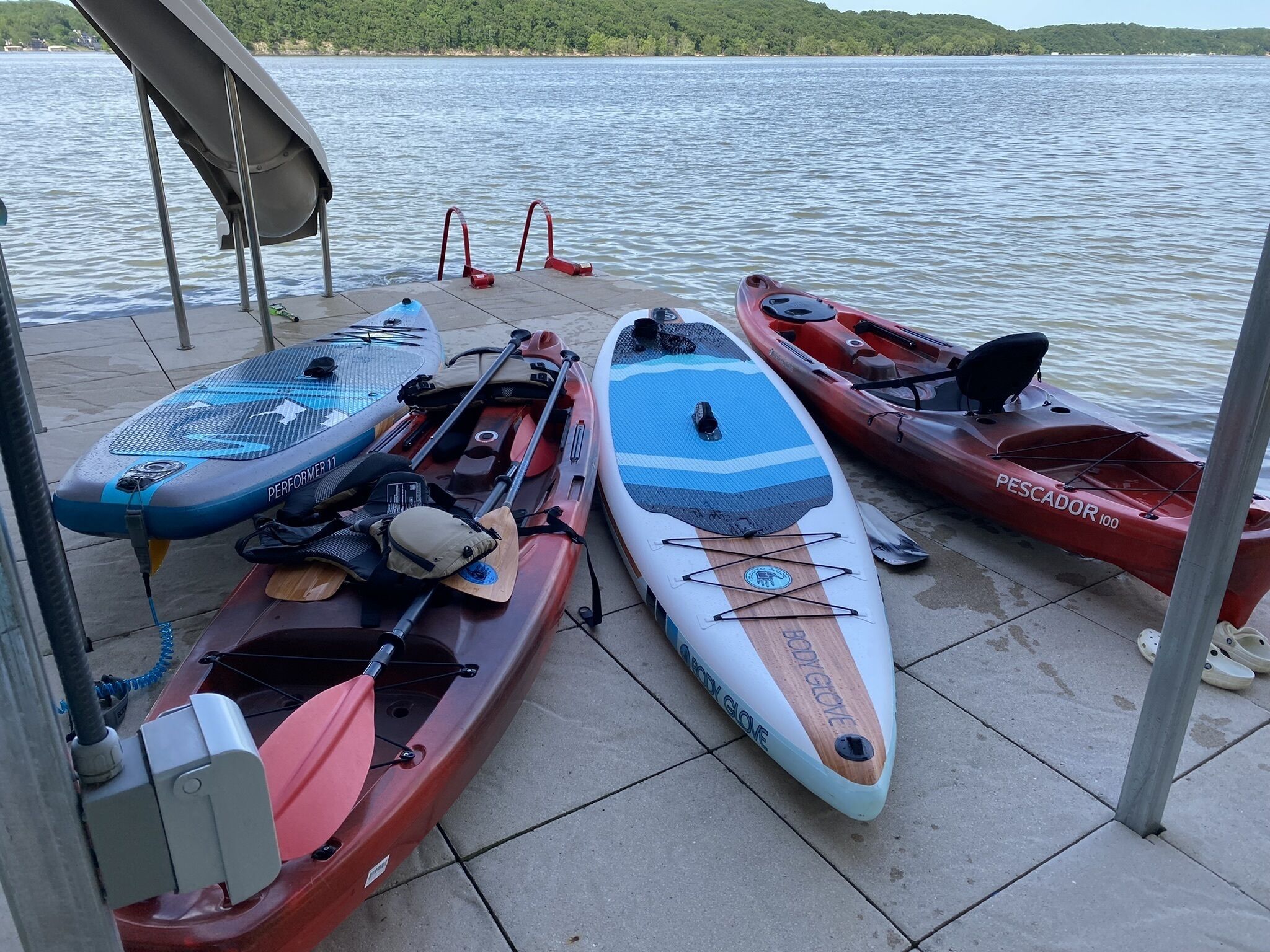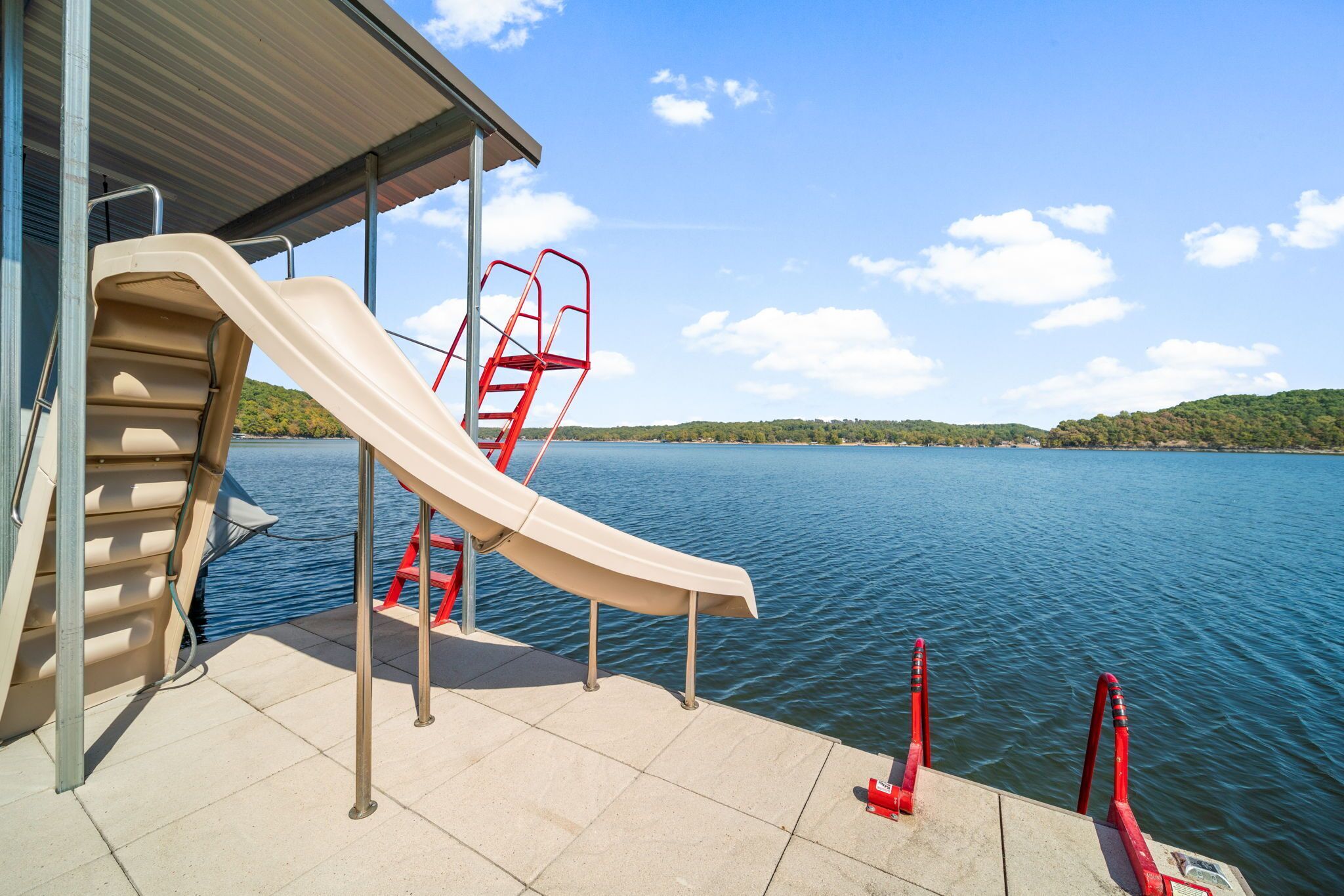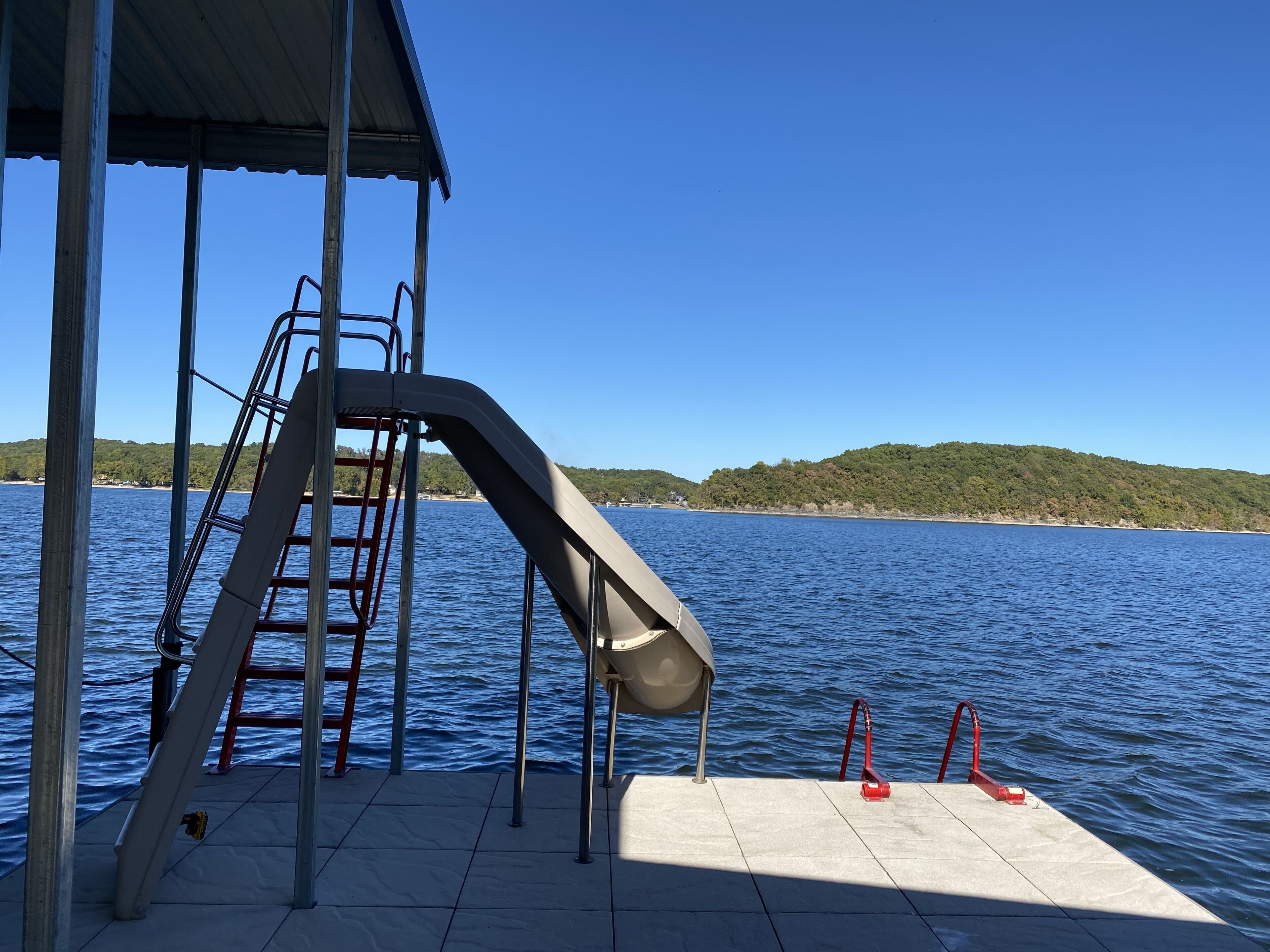 Grand Lake Waterfront Grand Lake O’ the Cherokees waterfront paradise. Located on Drowning Creek, just 5 miles east of Disney enjoy all the amenities we have to offer. Boat dock to tie up, swim deck, water slide, high dive, kayaks, paddle boards and fish cleaning station. This property has a gentle slope to water, outdoor shower, fire pit and patio to enjoy the amazing views! This is a brand new build. Enjoy all of the 46,500 acres of water or rock climbing and trail riding below the dam. If there is a weekend or weekday that you are interested in that is not available please contact us.